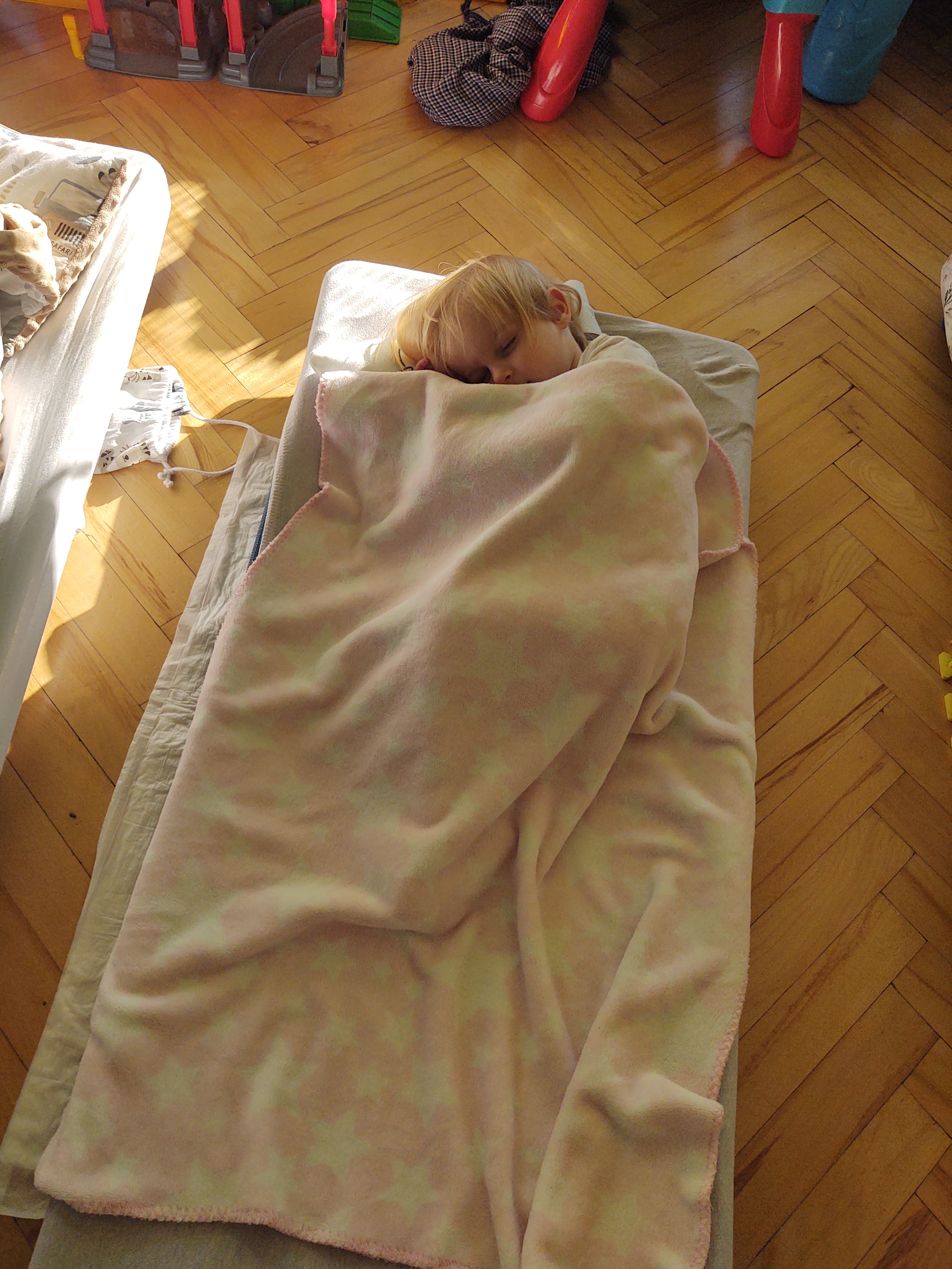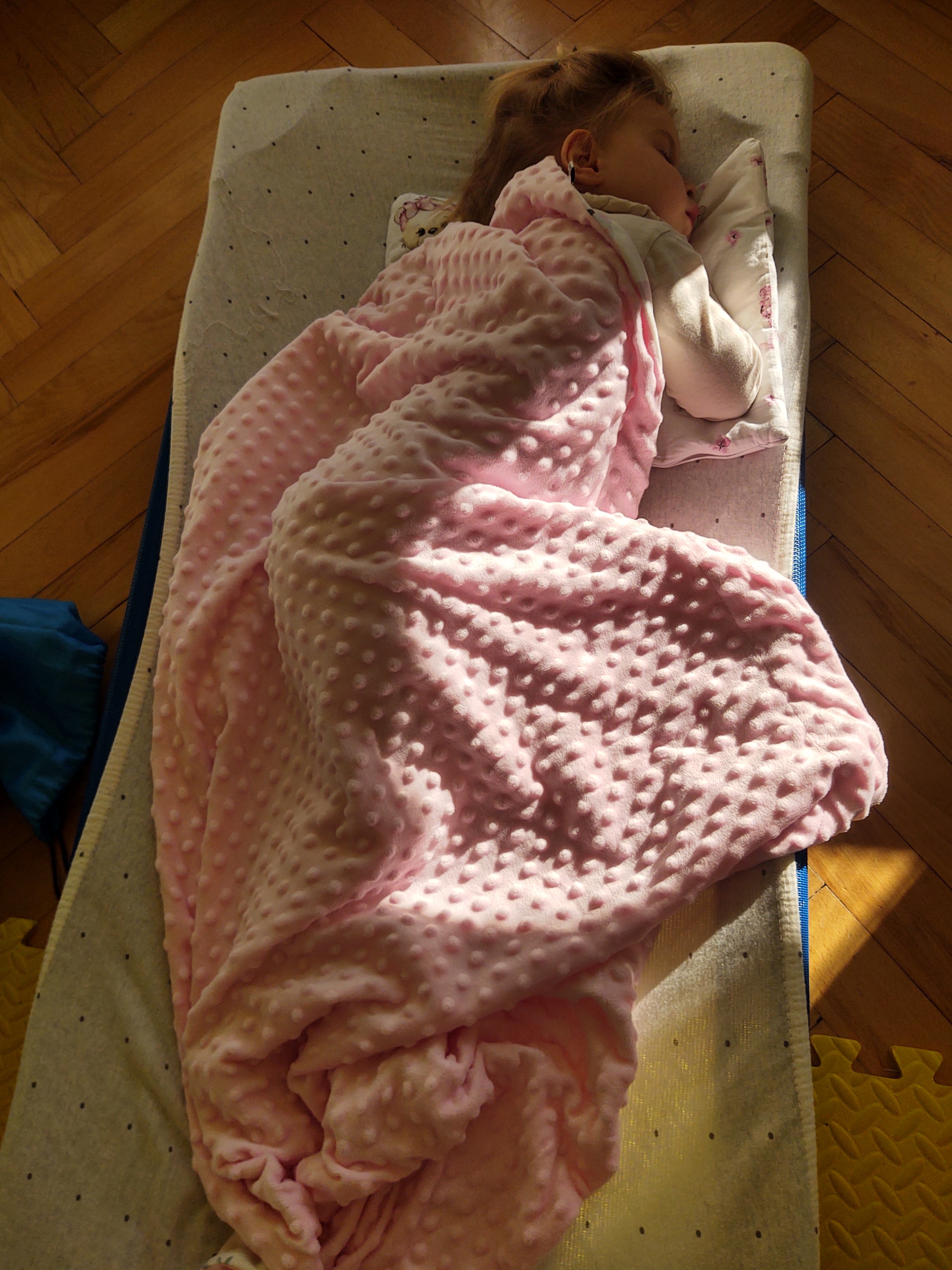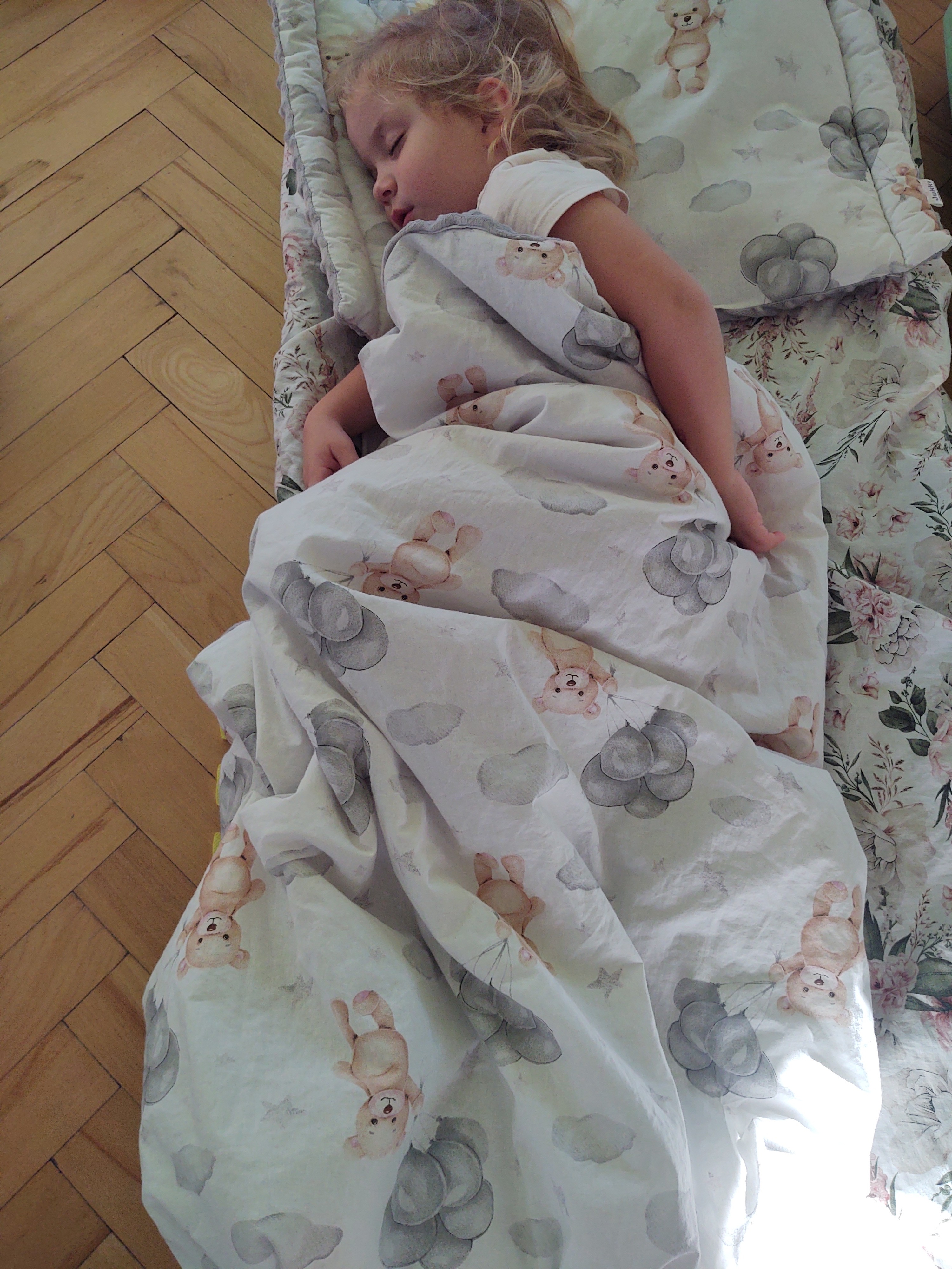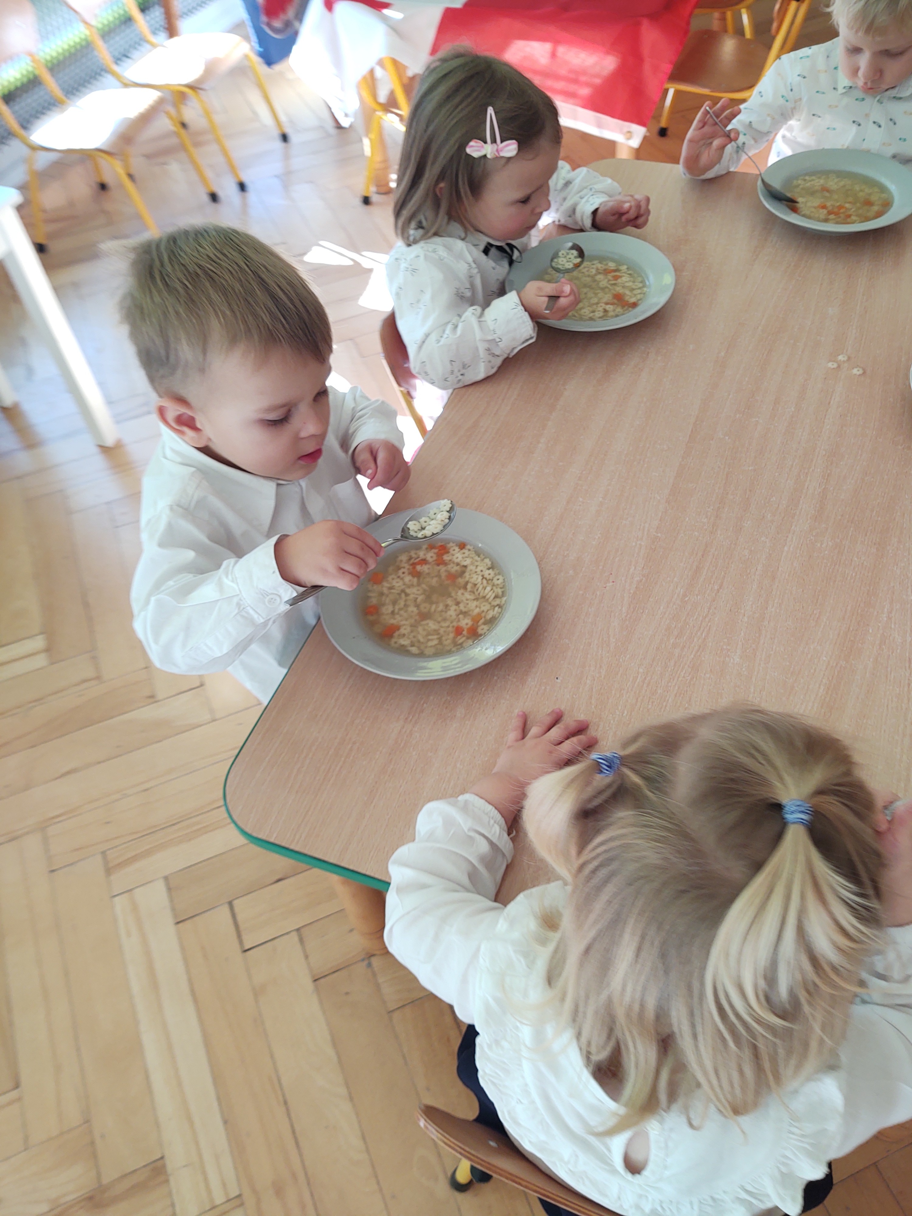 Po spacerku obiadek smakuje lepiej, zjadamy go sami, łyżka, widelec nam nie straszny. A teraz hop na leżaczek- drzemka to czas na regenerację sił po aktywnym poranku, spacerze, który jest ważny dla naszego rozwoju, ponieważ wpływa na koncentrację, pamięć i samopoczucie.