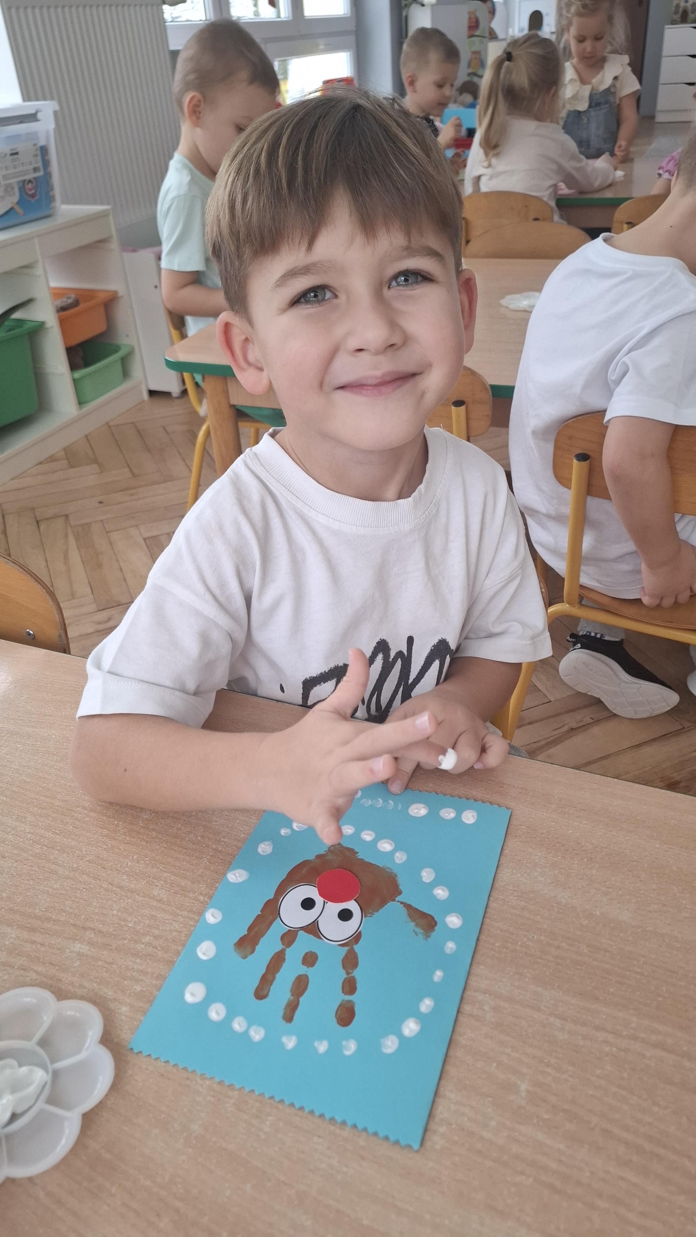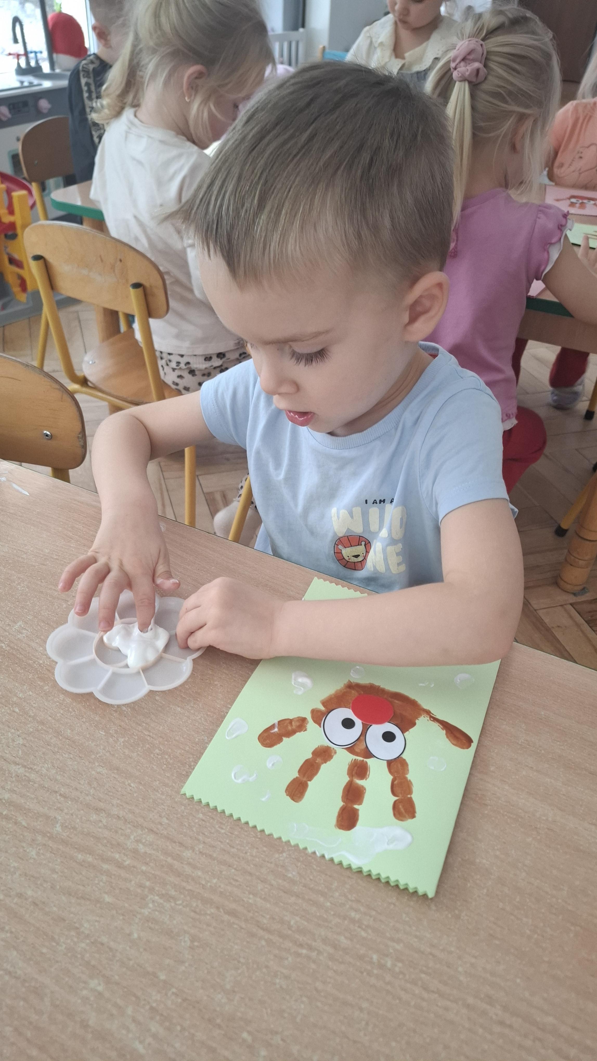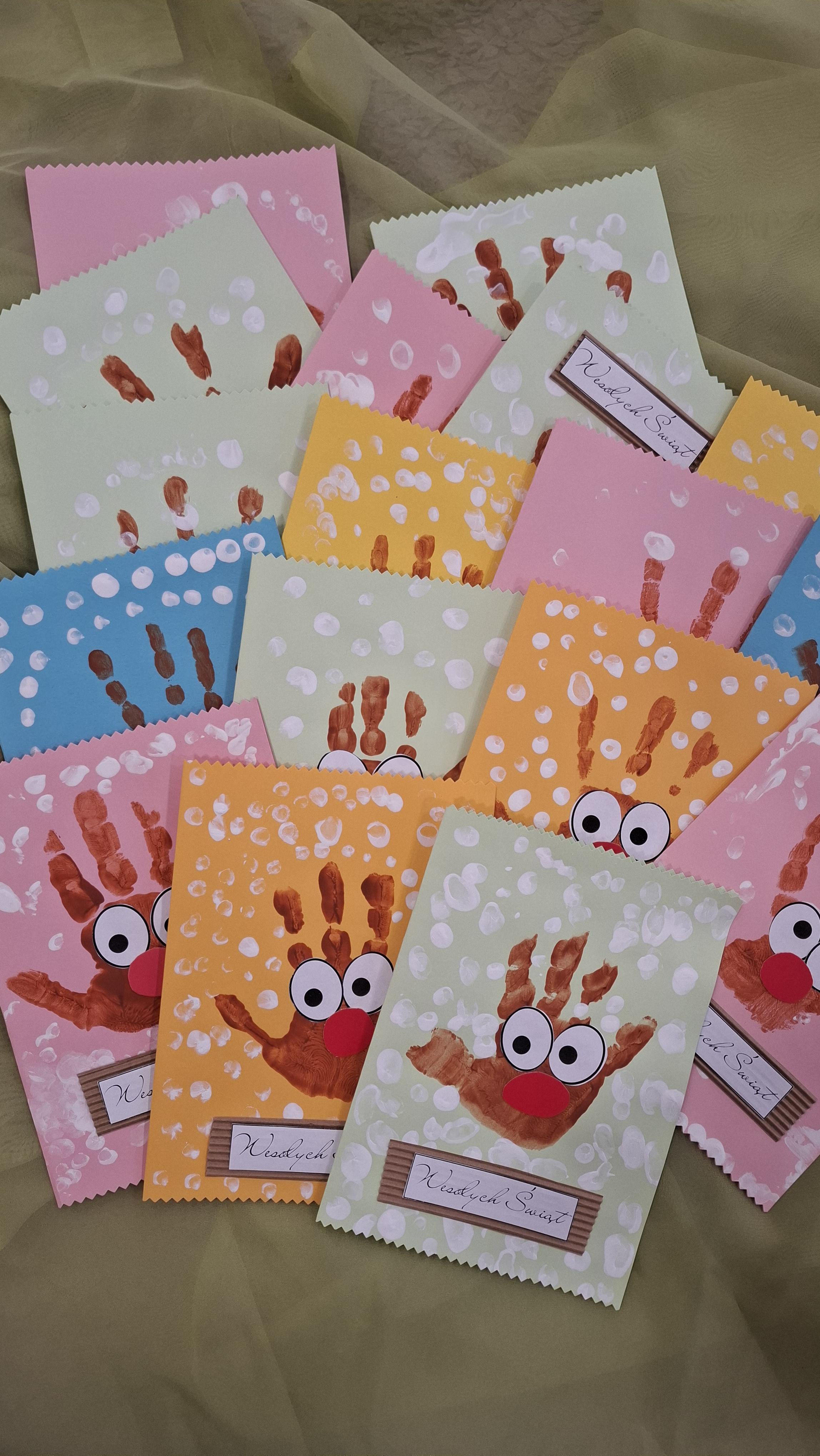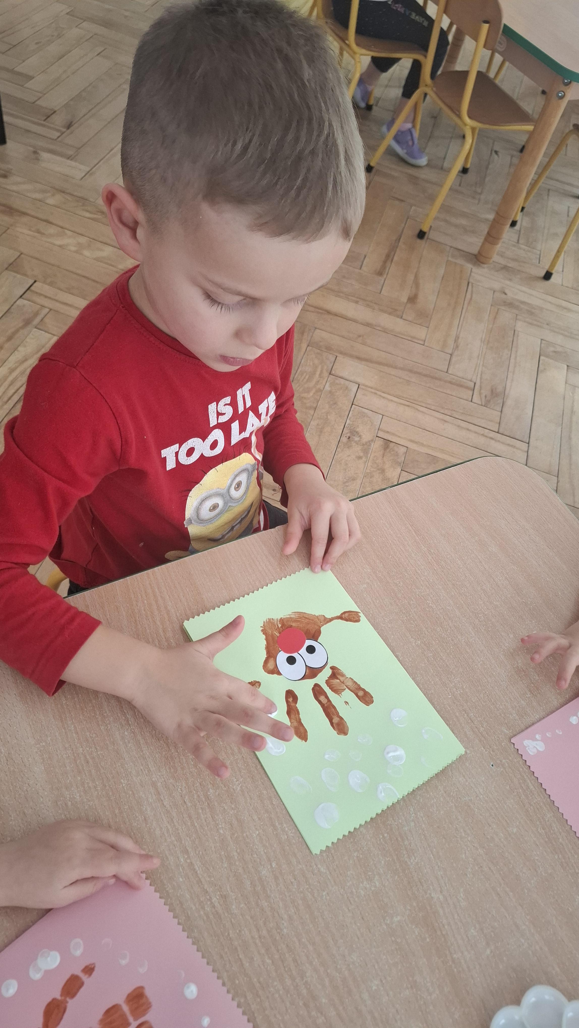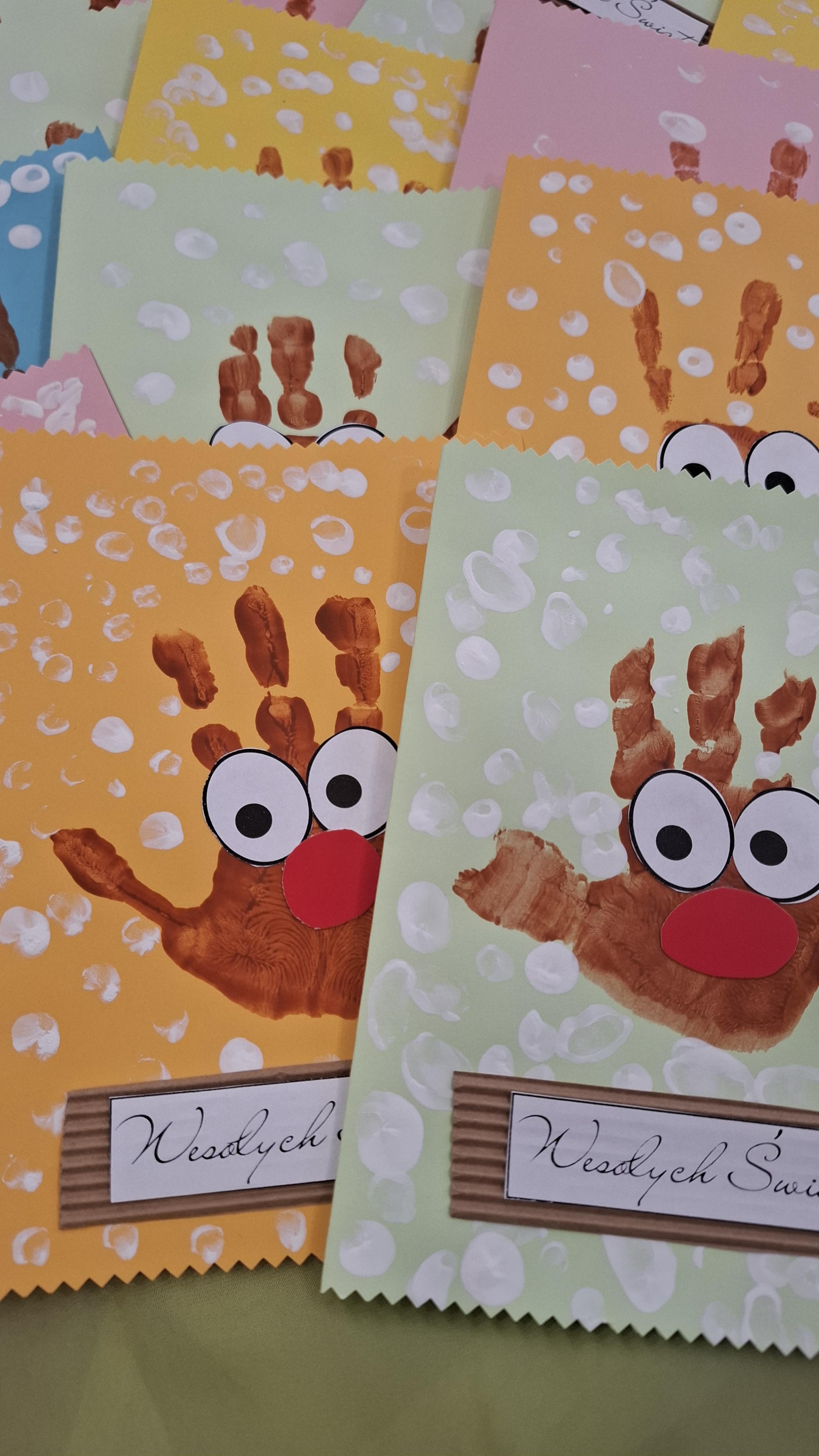 W ramach akcji „Serce za Odwagę”, której celem jest wyrażenie wdzięczności weteranom II wojny światowej, nasze przedszkolaki przygotowały wyjątkowe kartki świąteczne. Dzieci projektowały i tworzyły swoje prace z dużym zaangażowaniem, a wyjątkowego uroku kartkom dodały urocze reniferki wykonane z odbitych dłoni.