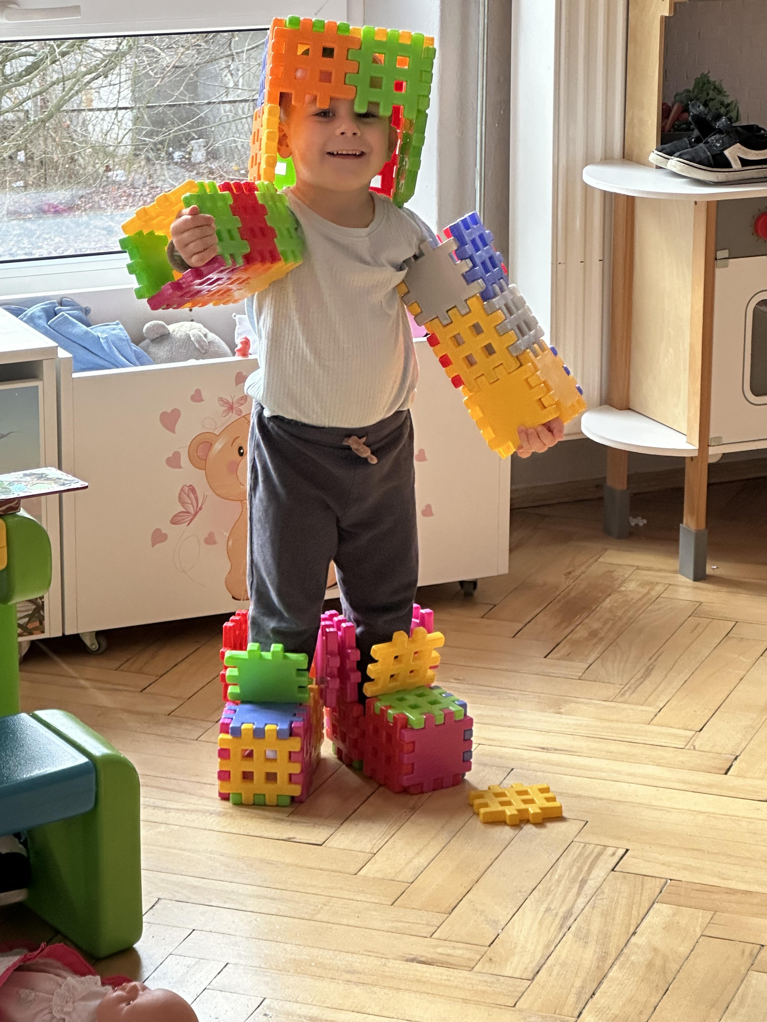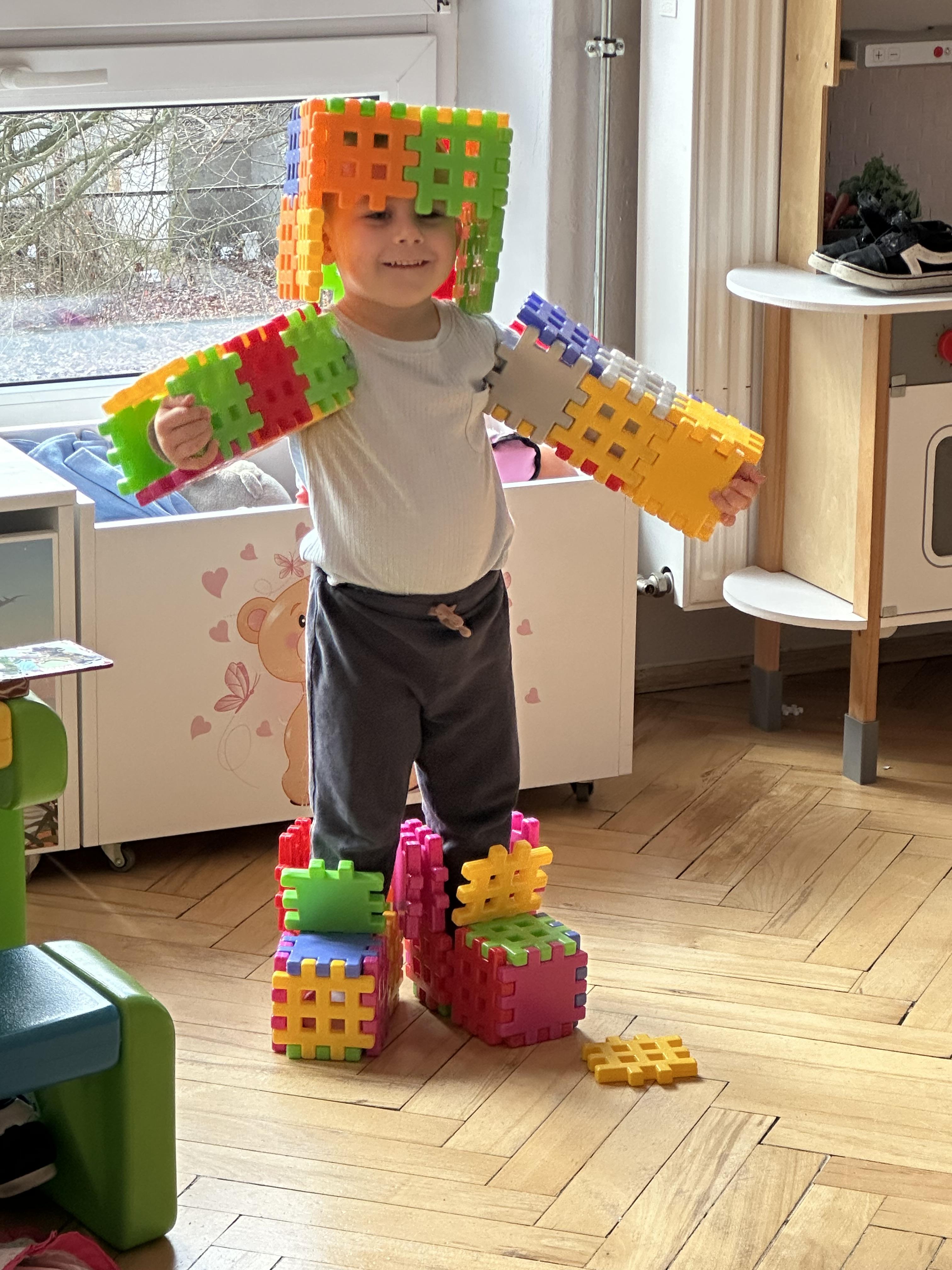 W trakcie minionego tygodnia aktywnie uczestniczyły w zabawach ruchowych, ćwiczeniach porannych oraz planowanych zajęciach gimnastycznych. Każdego dnia wykonywały prace plastyczno-techniczne przy stolikach, rozwijając motorykę małą i kreatywność. W czasie wolnym bawiły się zgodnie ze swoimi zainteresowaniami oraz dbały o porządek w sali.