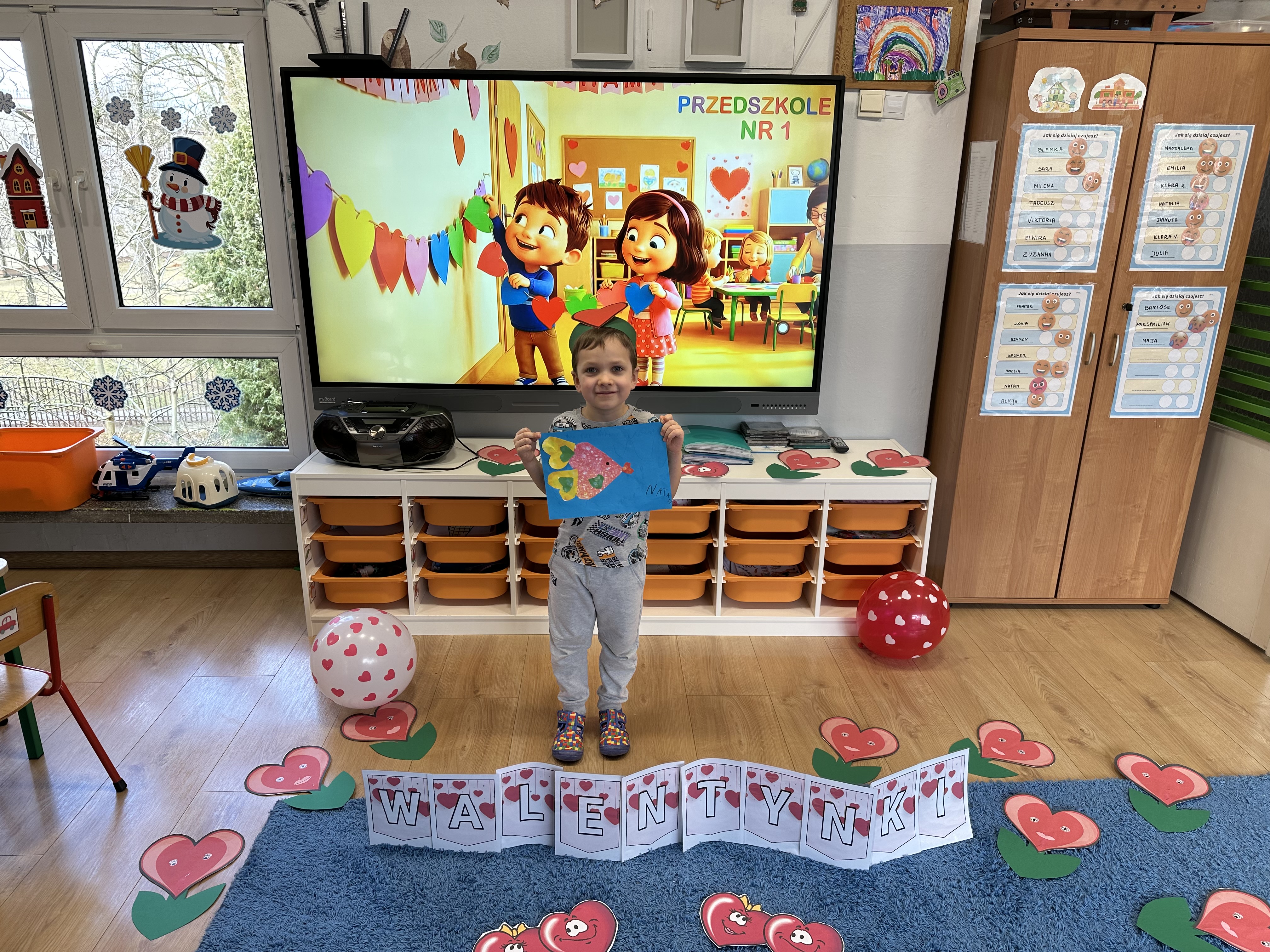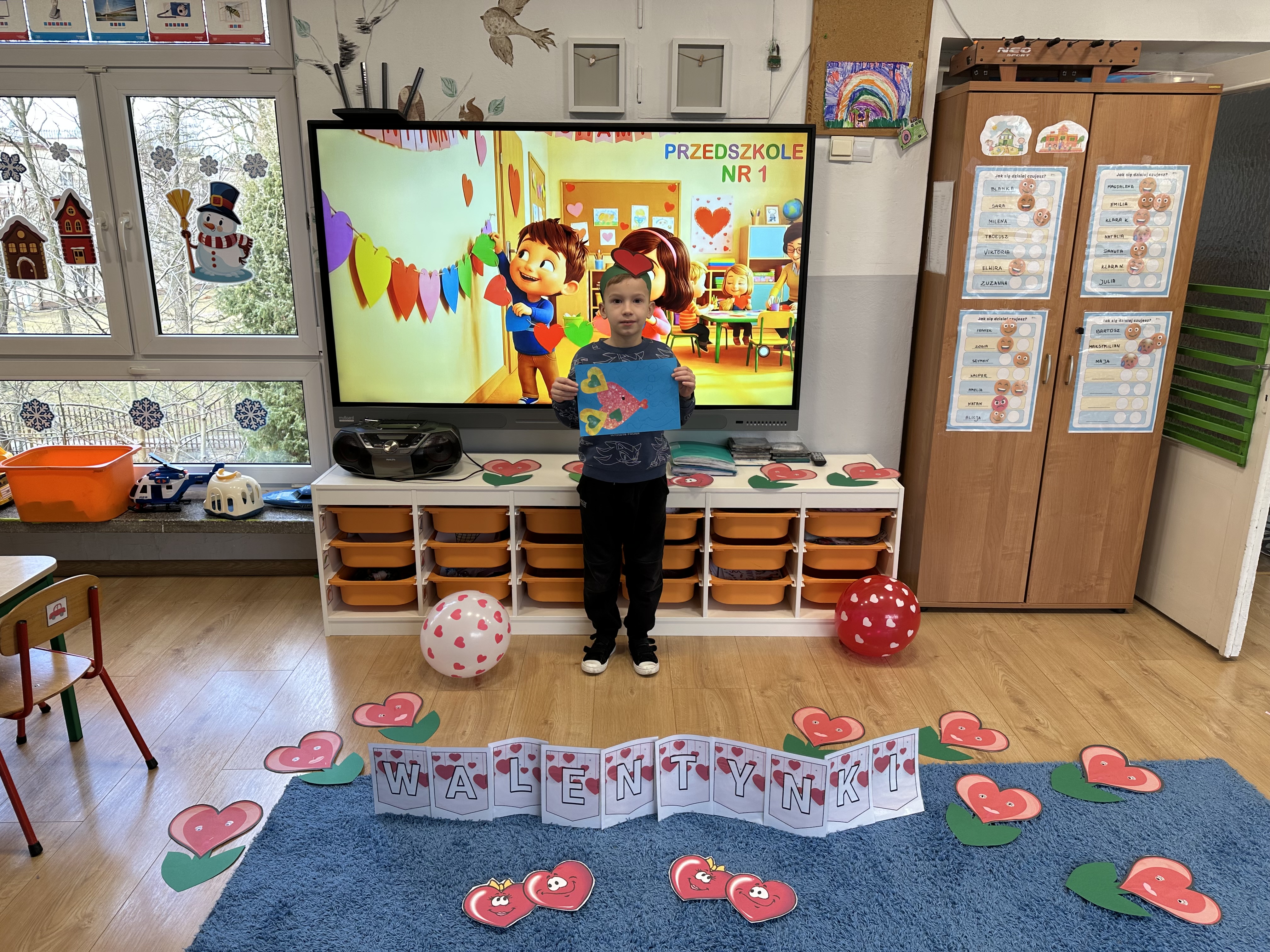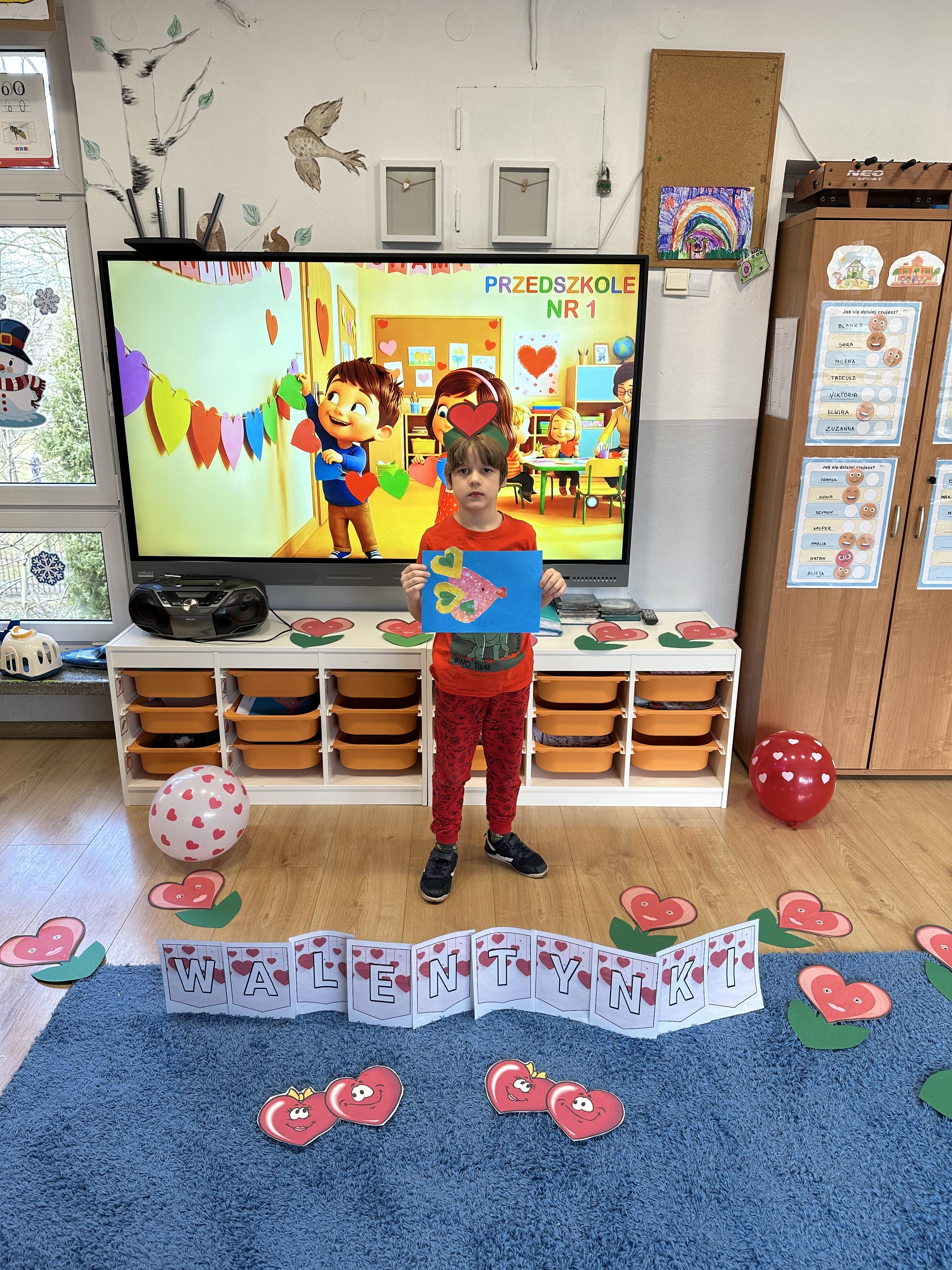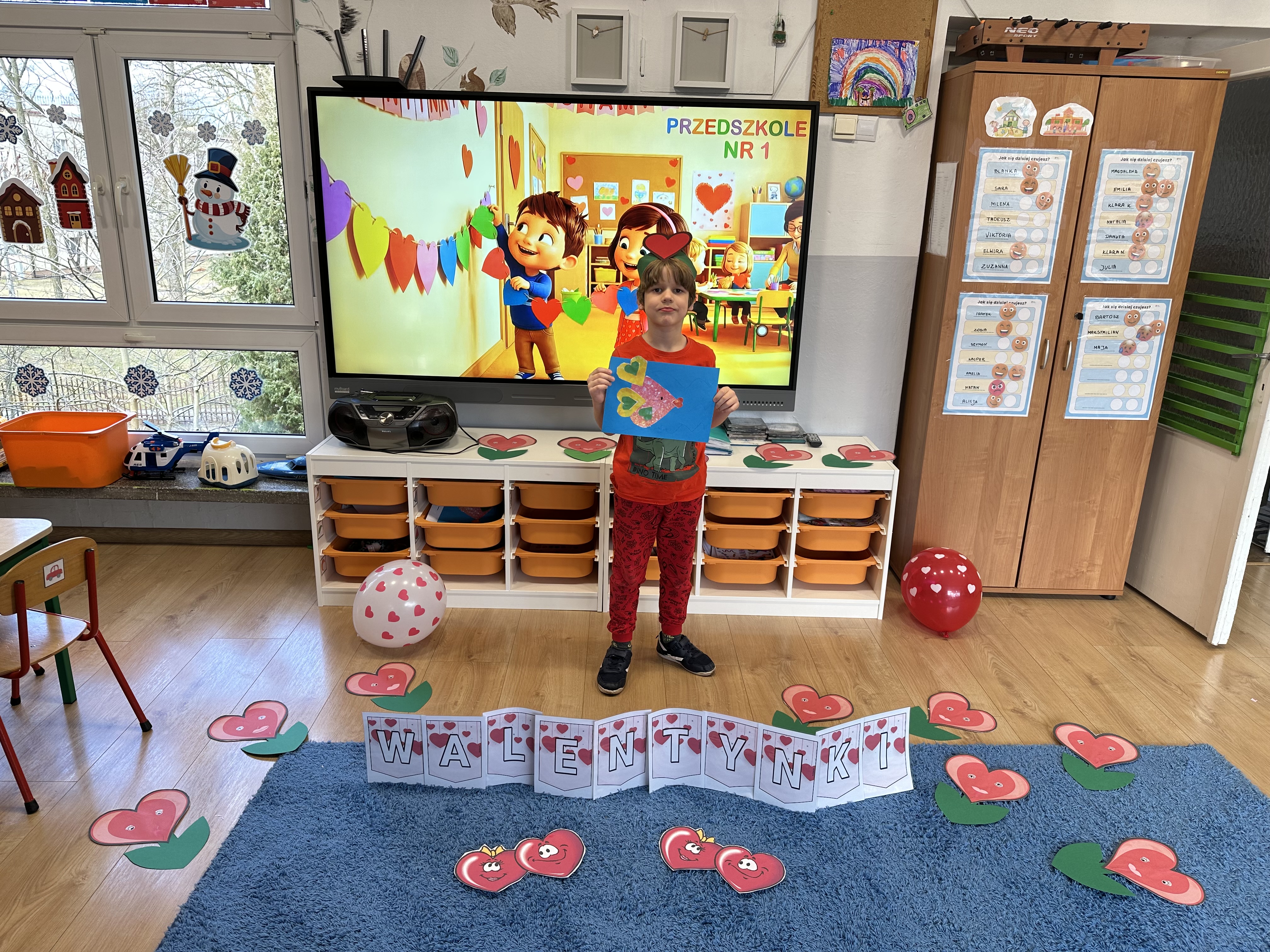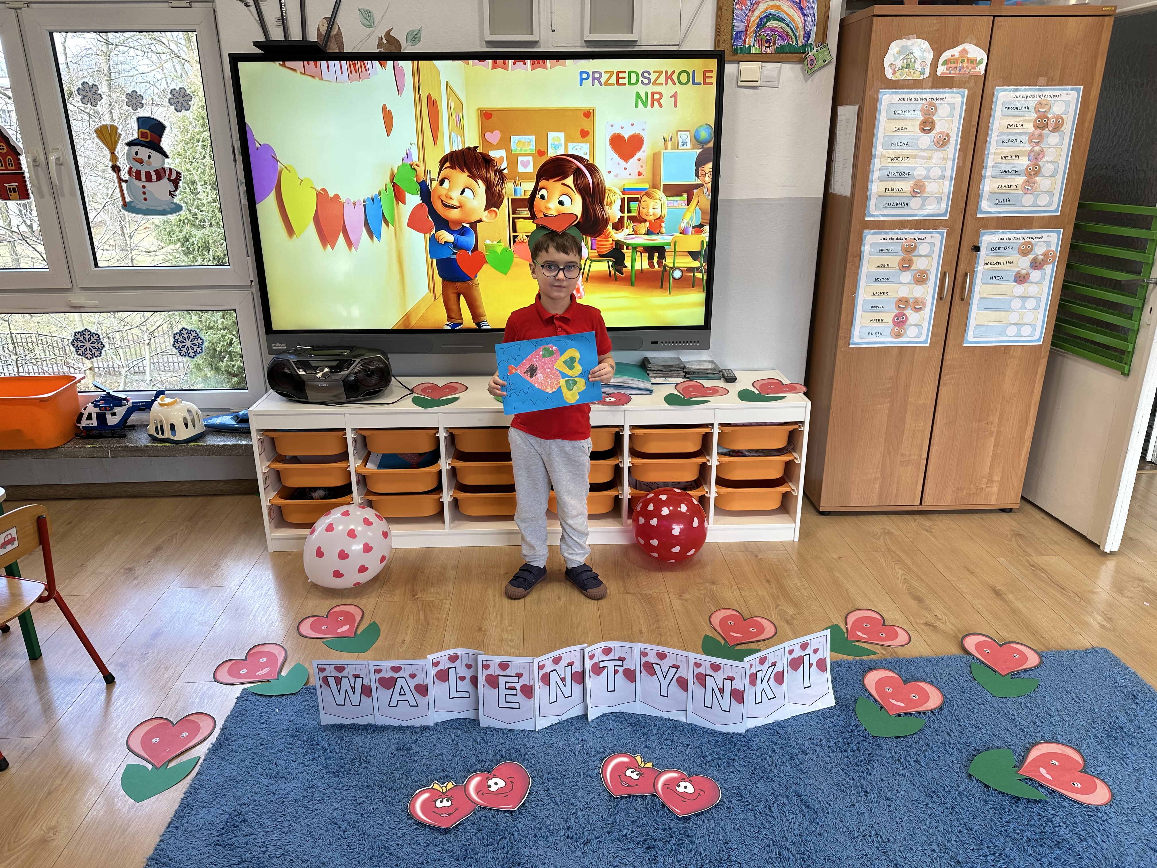 w kalamburach, doskonaliły umiejętność niewerbalnego wyrażania uczuć, rozwijały logiczne myślenie i równowagę. Podczas zabaw przy stolikach dzieci kształtowały umiejętność rozpoznawania i nazywania uczuć i emocji, ćwiczyły ruchy dłoni i rozwiązywały zadania. We wtorek przedszkolaki dowiedziały się, czym jest rym i podały jego przykłady. Poznały literę „s” małą i wielką, drukowaną i pisaną, dzieliły na sylaby słowo ,,serce” i przeliczały je, wysłuchiwały pierwszą głoskę w tym słowie i ją powtarzały, a także odtwarzały słyszalny rytm dźwiękowy. Dodatkowo dzieci samodzielnie układały schemat głoskowy i wymieniały imiona rozpoczynające się głoską s. W środę podczas zabawy „Smaczne i zdrowe” dzieci wychwytywały daną sekwencję