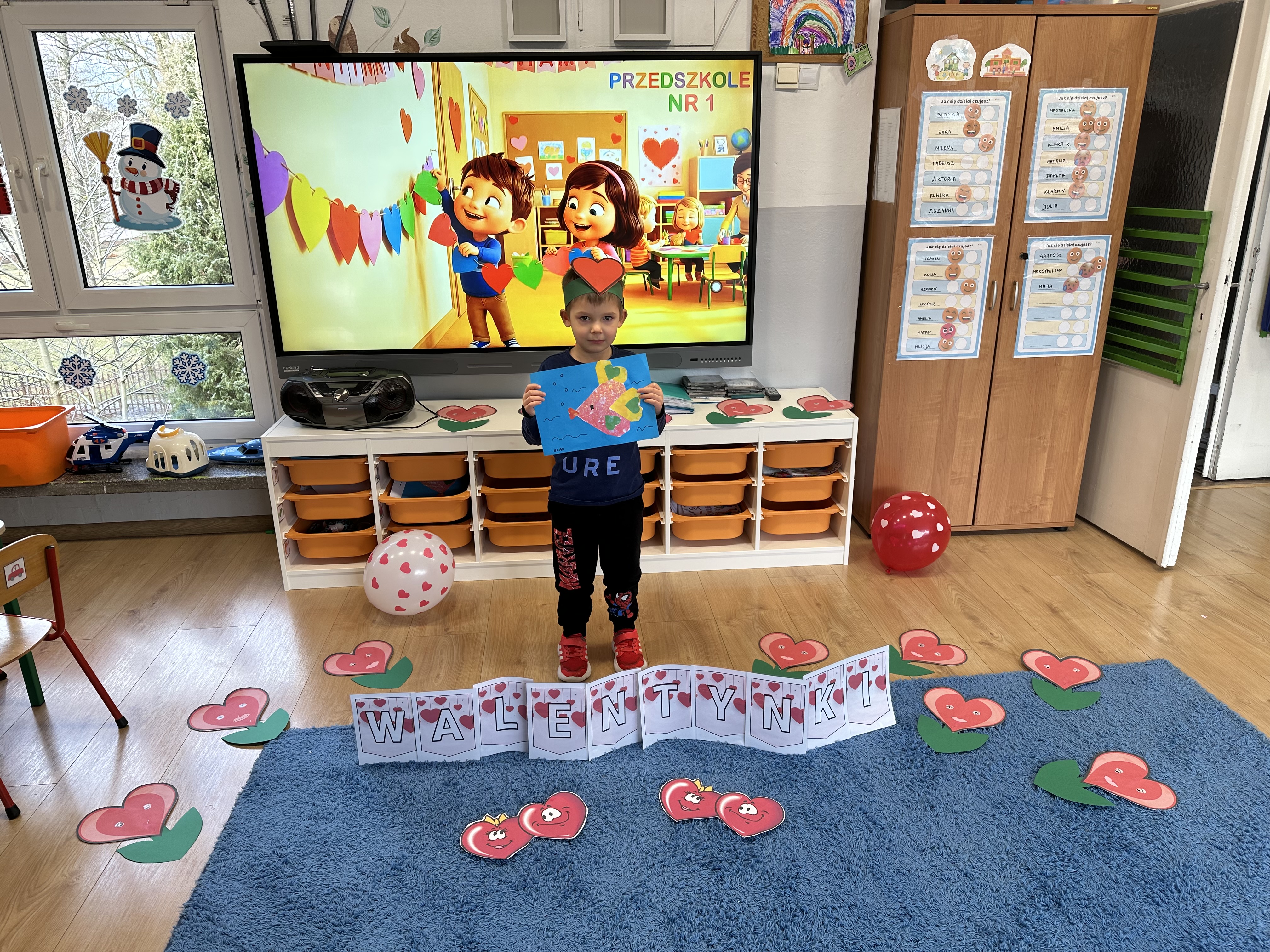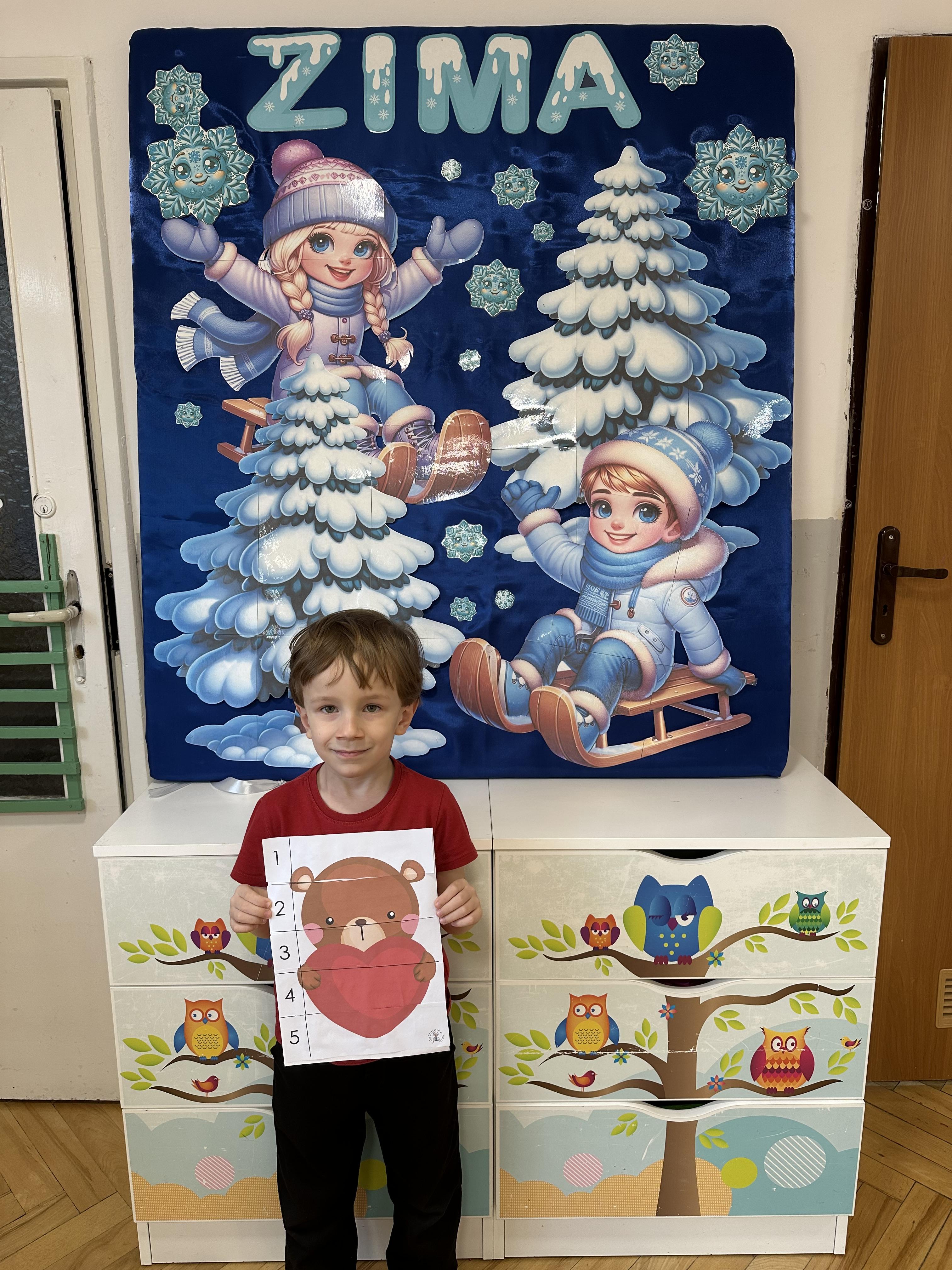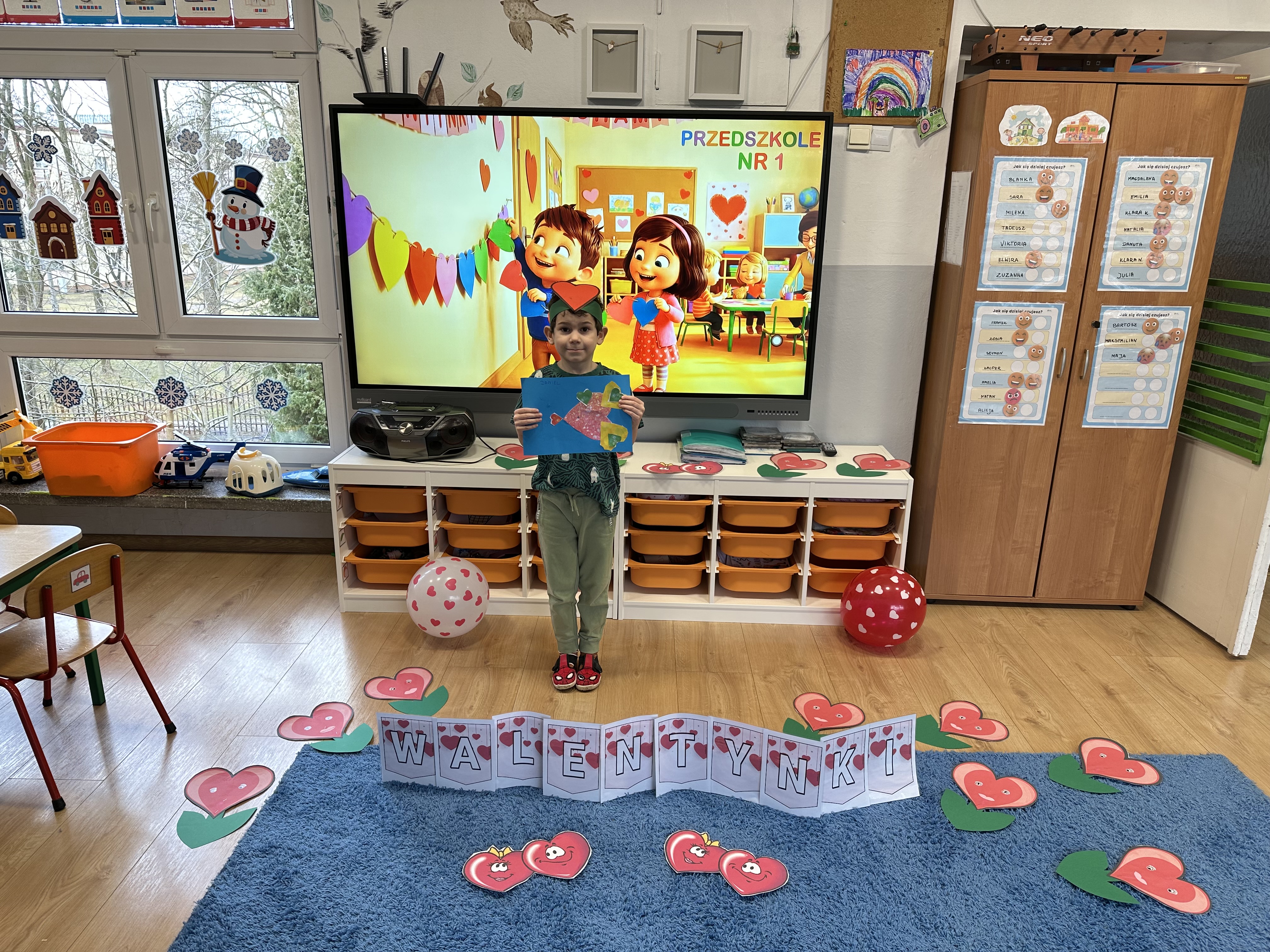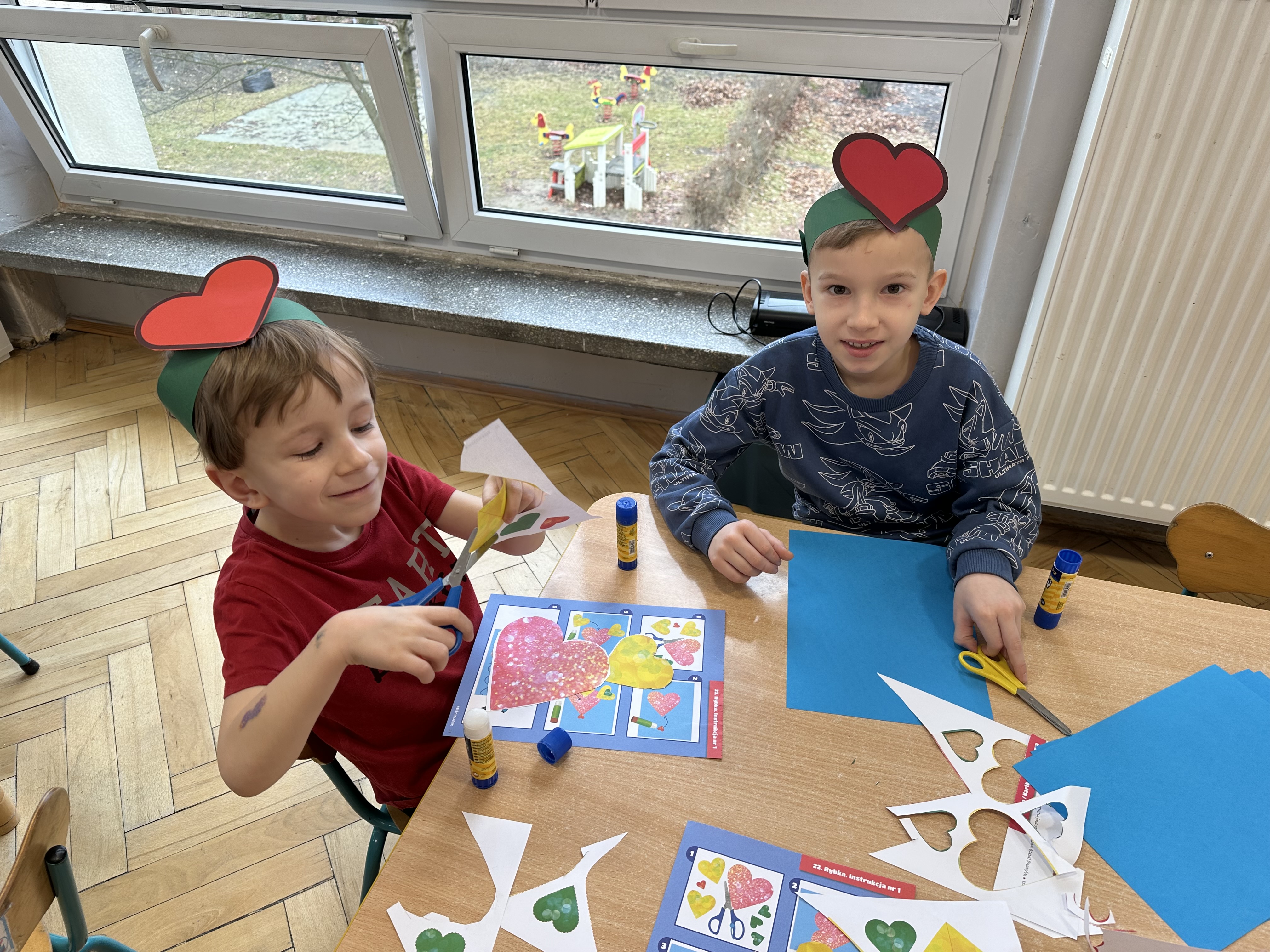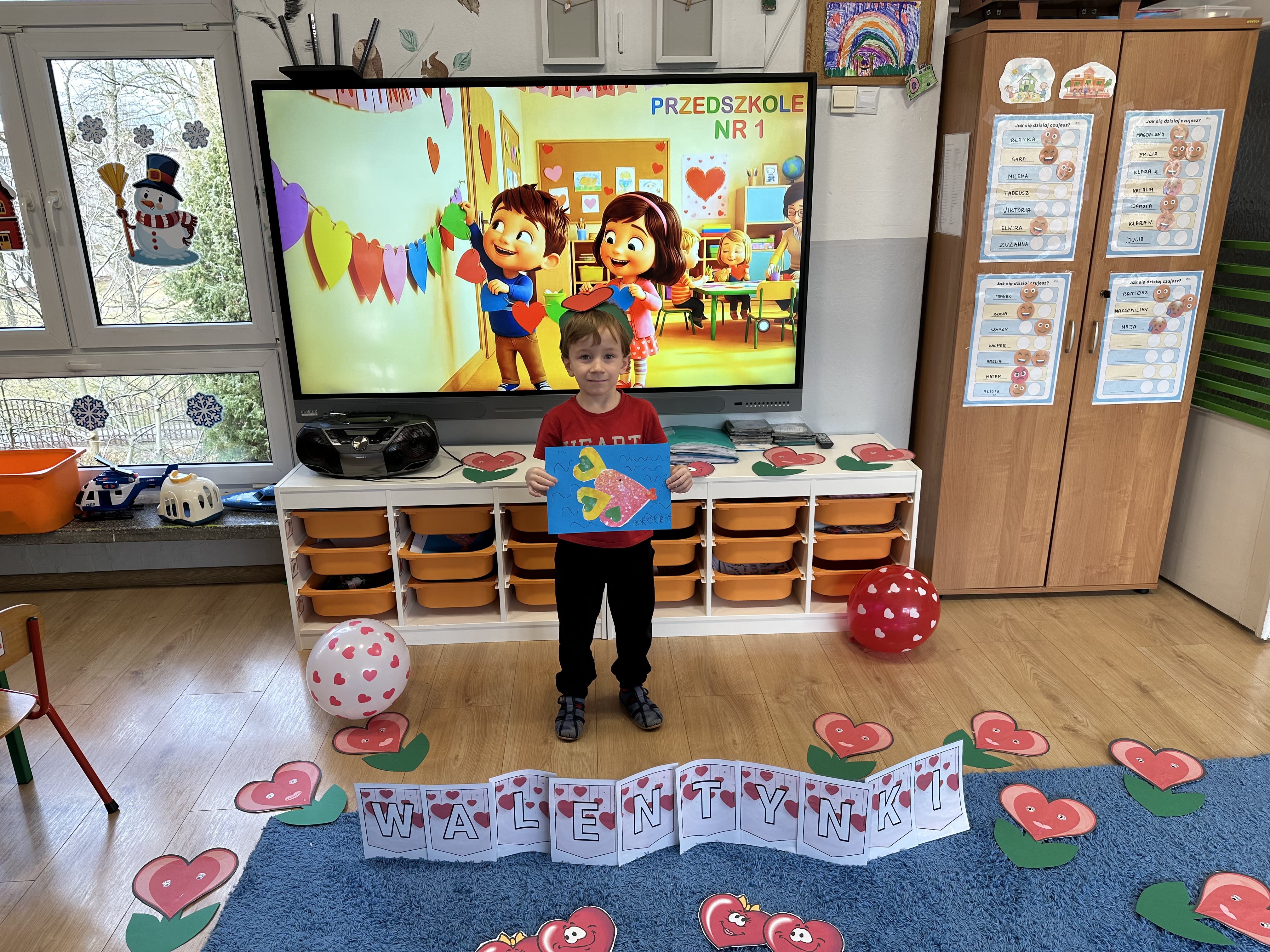 w kalamburach, doskonaliły umiejętność niewerbalnego wyrażania uczuć, rozwijały logiczne myślenie i równowagę. Podczas zabaw przy stolikach dzieci kształtowały umiejętność rozpoznawania i nazywania uczuć i emocji, ćwiczyły ruchy dłoni i rozwiązywały zadania. We wtorek przedszkolaki dowiedziały się, czym jest rym i podały jego przykłady. Poznały literę „s” małą i wielką, drukowaną i pisaną, dzieliły na sylaby słowo ,,serce” i przeliczały je, wysłuchiwały pierwszą głoskę w tym słowie i ją powtarzały, a także odtwarzały słyszalny rytm dźwiękowy. Dodatkowo dzieci samodzielnie układały schemat głoskowy i wymieniały imiona rozpoczynające się głoską s. W środę podczas zabawy „Smaczne i zdrowe” dzieci wychwytywały daną sekwencję