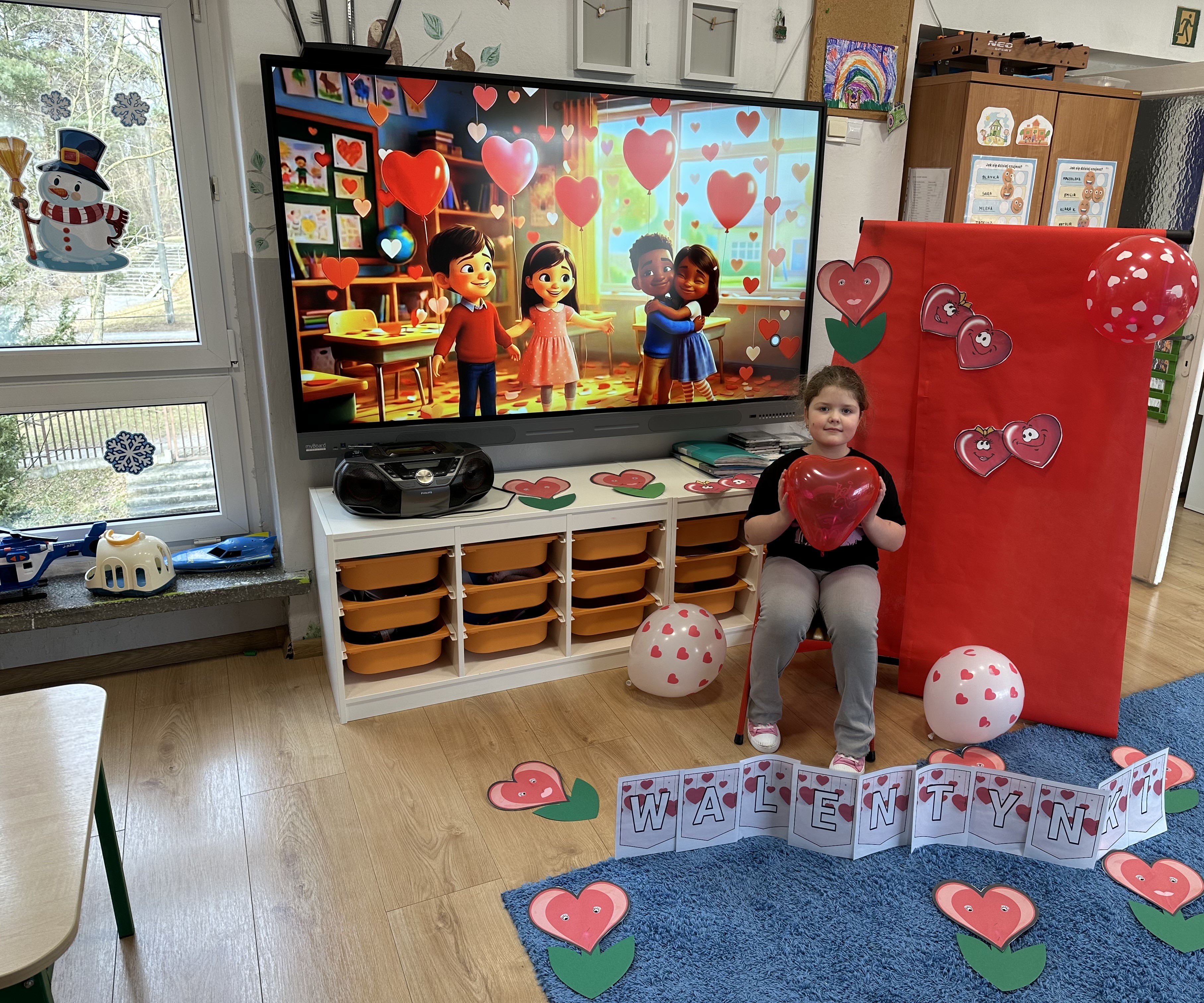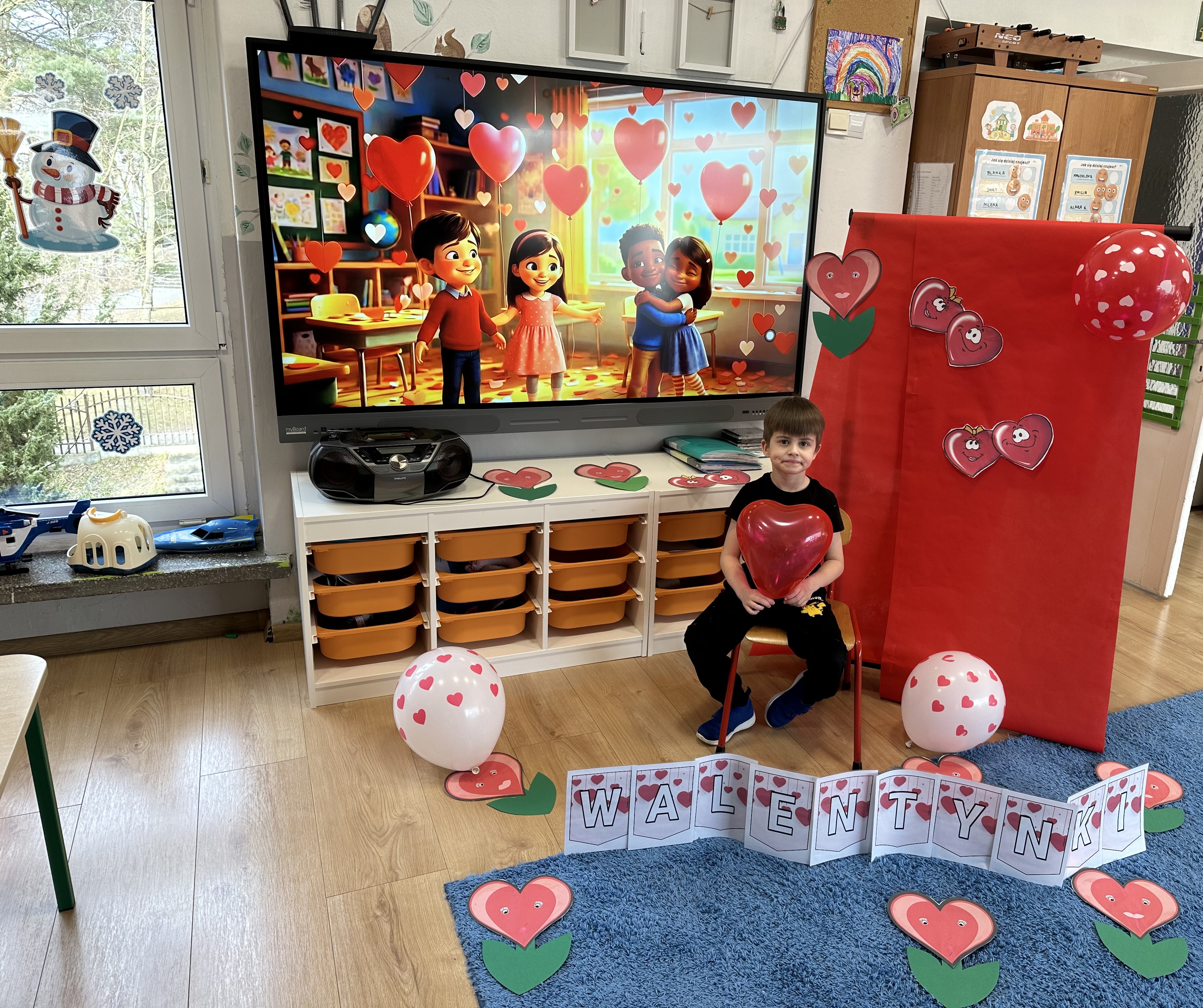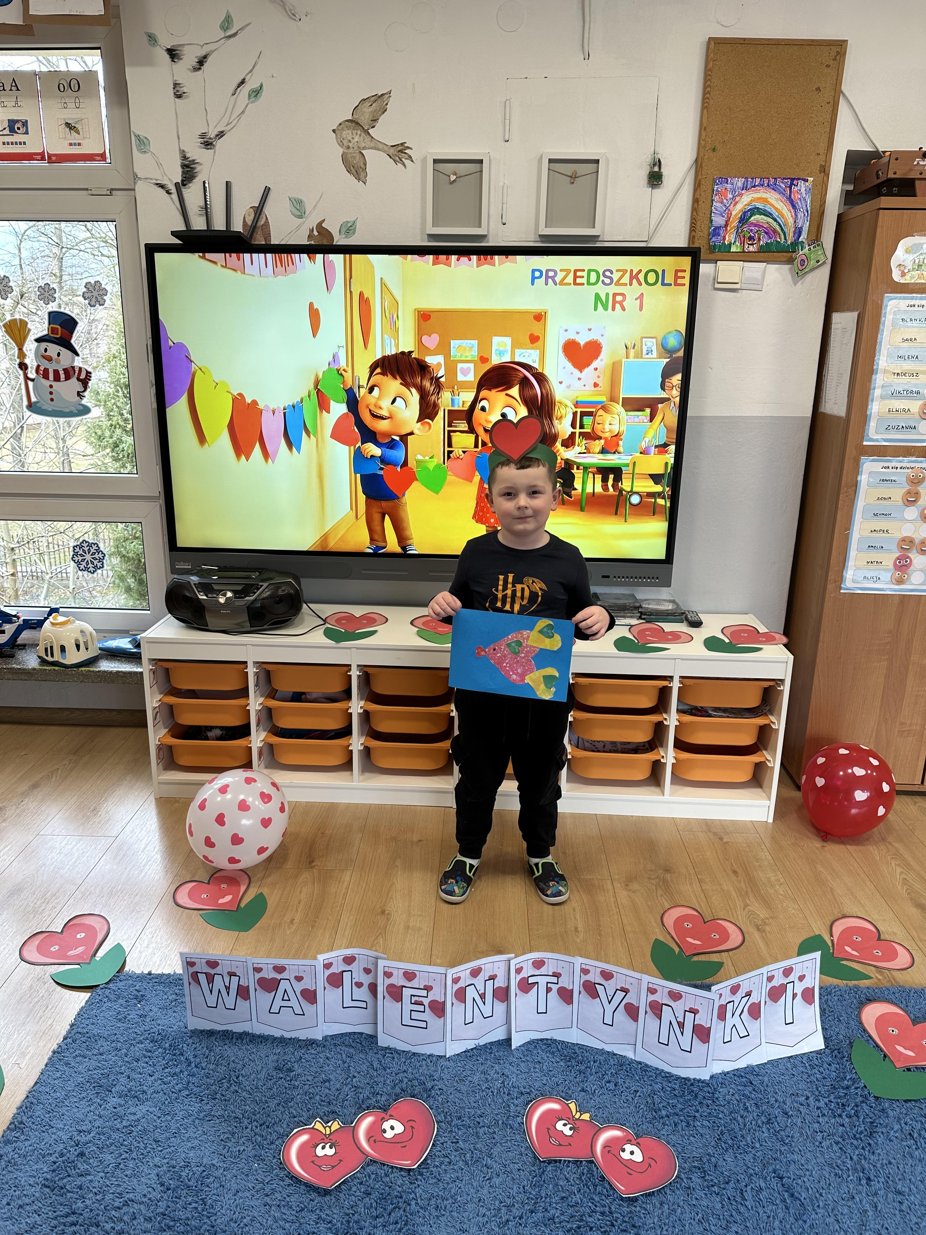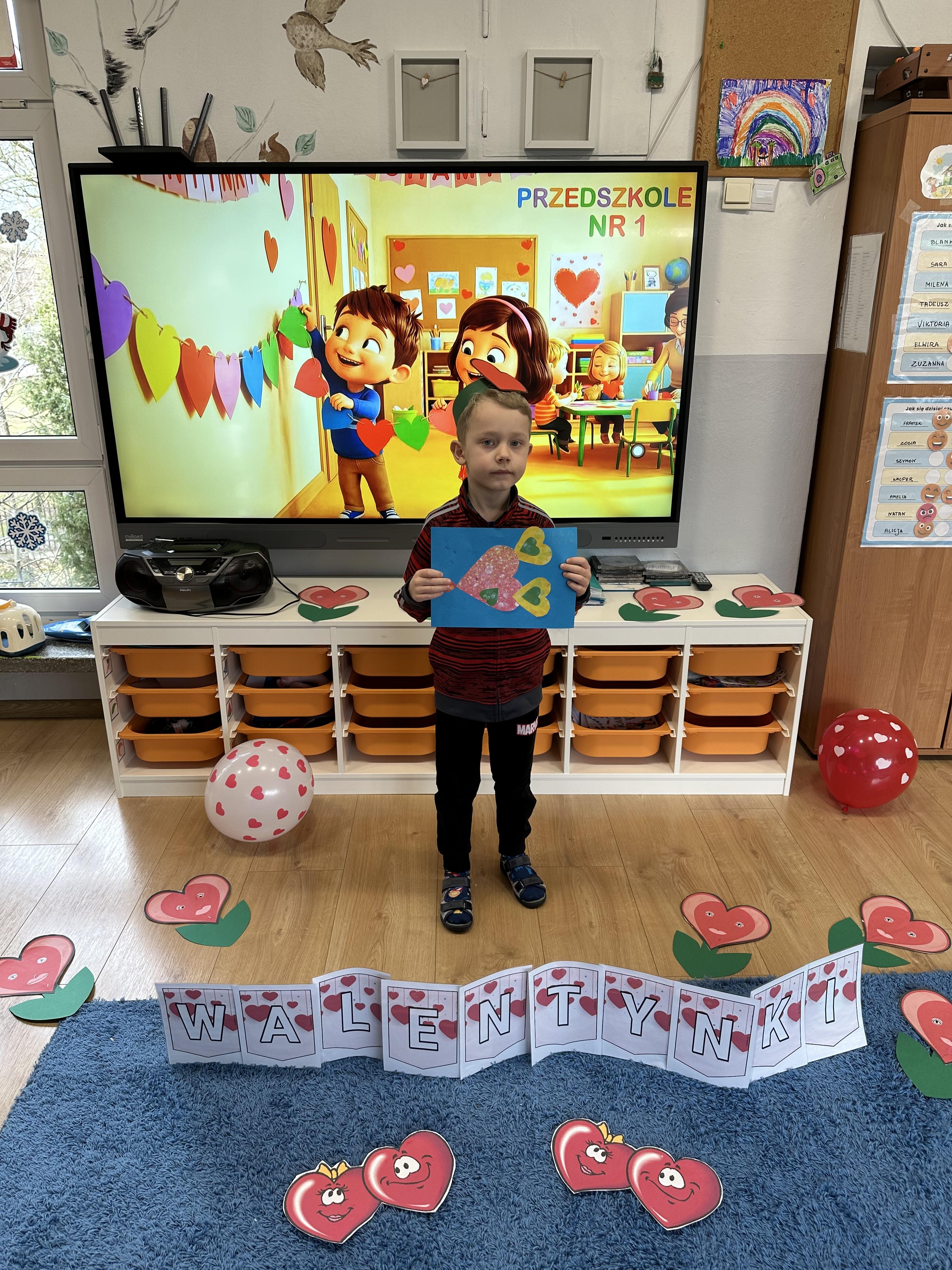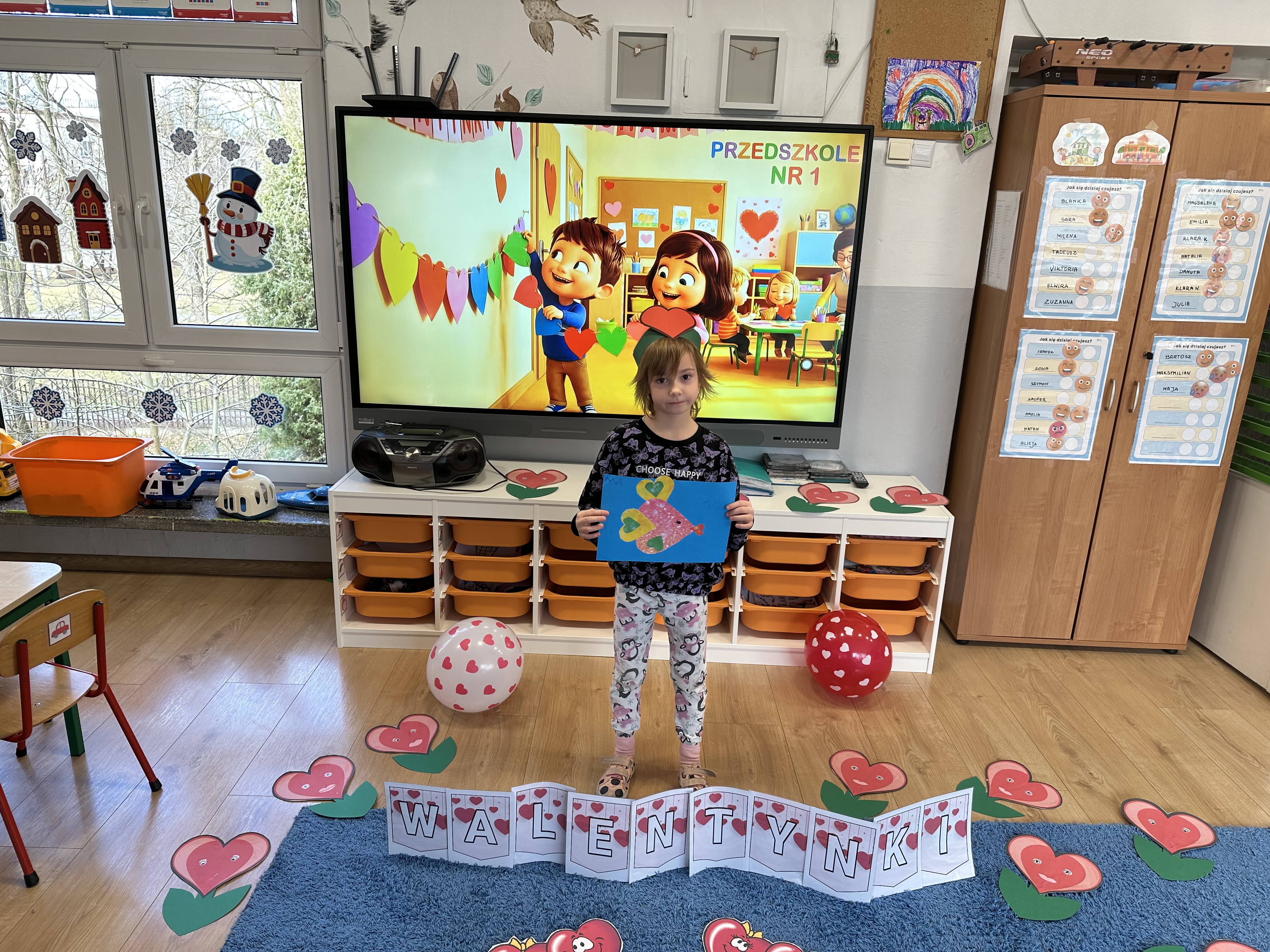 w kalamburach, doskonaliły umiejętność niewerbalnego wyrażania uczuć, rozwijały logiczne myślenie i równowagę. Podczas zabaw przy stolikach dzieci kształtowały umiejętność rozpoznawania i nazywania uczuć i emocji, ćwiczyły ruchy dłoni i rozwiązywały zadania. We wtorek przedszkolaki dowiedziały się, czym jest rym i podały jego przykłady. Poznały literę „s” małą i wielką, drukowaną i pisaną, dzieliły na sylaby słowo ,,serce” i przeliczały je, wysłuchiwały pierwszą głoskę w tym słowie i ją powtarzały, a także odtwarzały słyszalny rytm dźwiękowy. Dodatkowo dzieci samodzielnie układały schemat głoskowy i wymieniały imiona rozpoczynające się głoską s. W środę podczas zabawy „Smaczne i zdrowe” dzieci wychwytywały daną sekwencję