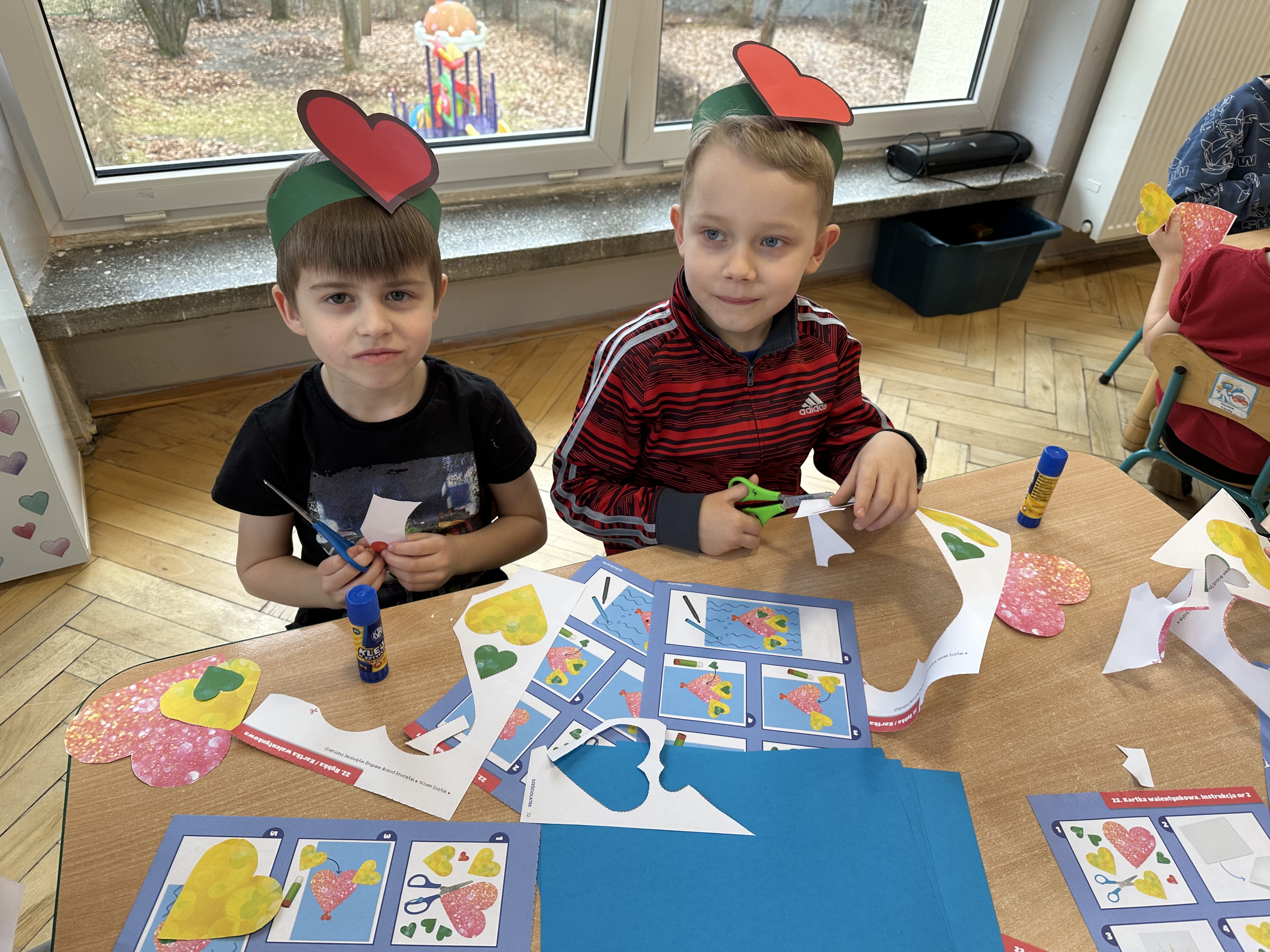 w zespole. W trakcie zabawy „Moje sny o Afryce” utrwalały znajomość tekstu piosenki. Gromadziły doświadczenia plastyczne związane z walentynkami oraz wykonywały pracę zgodnie