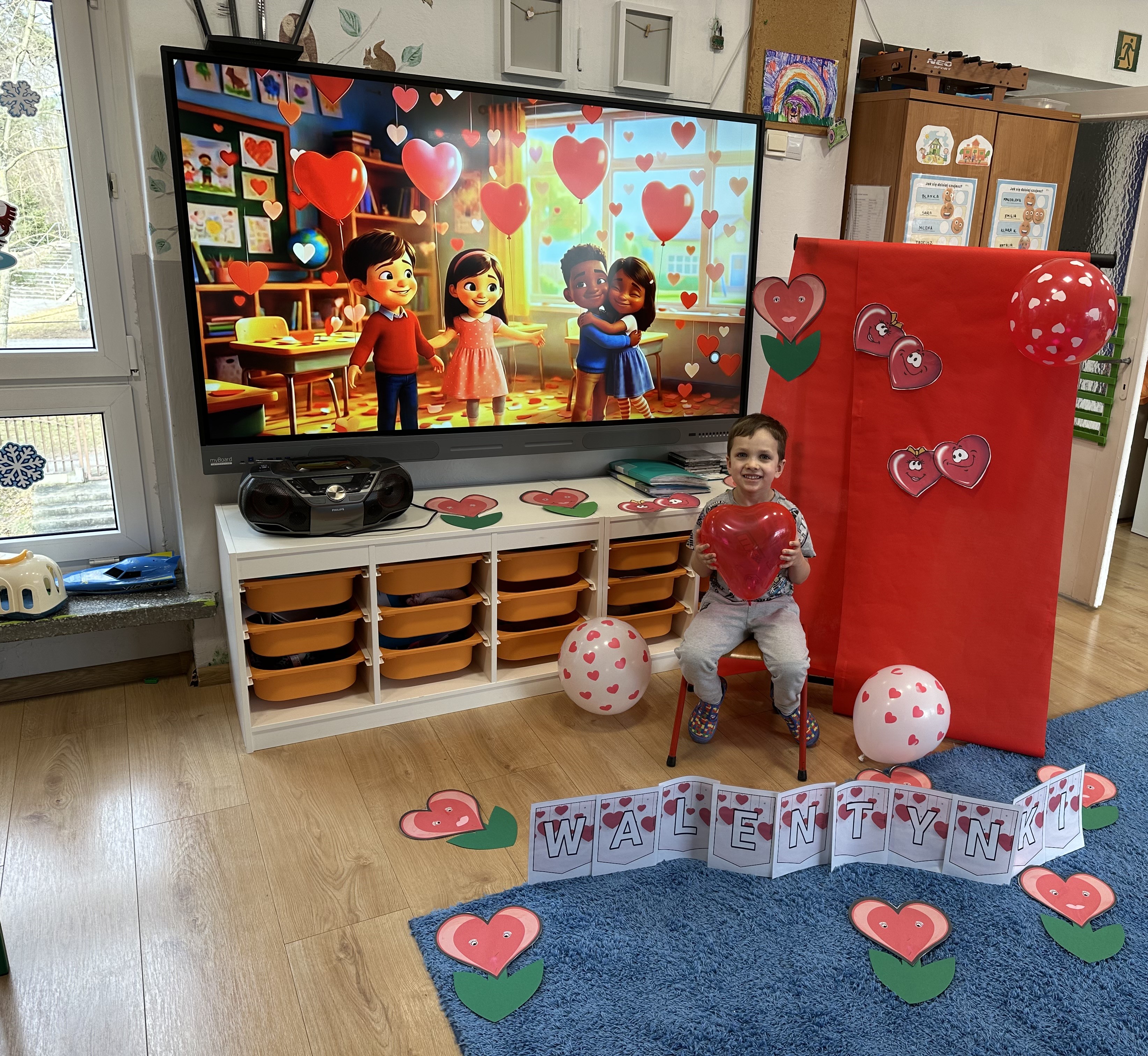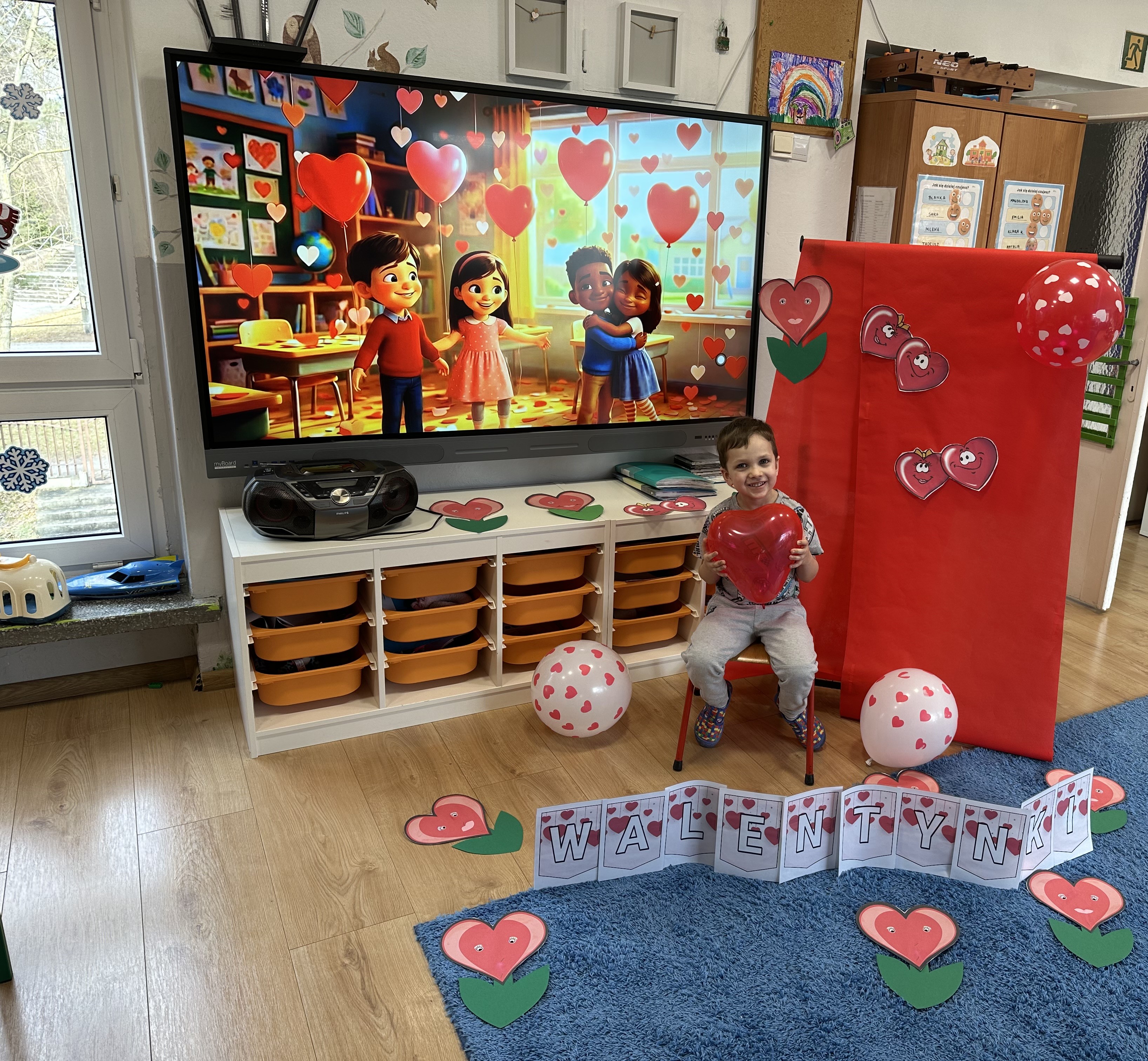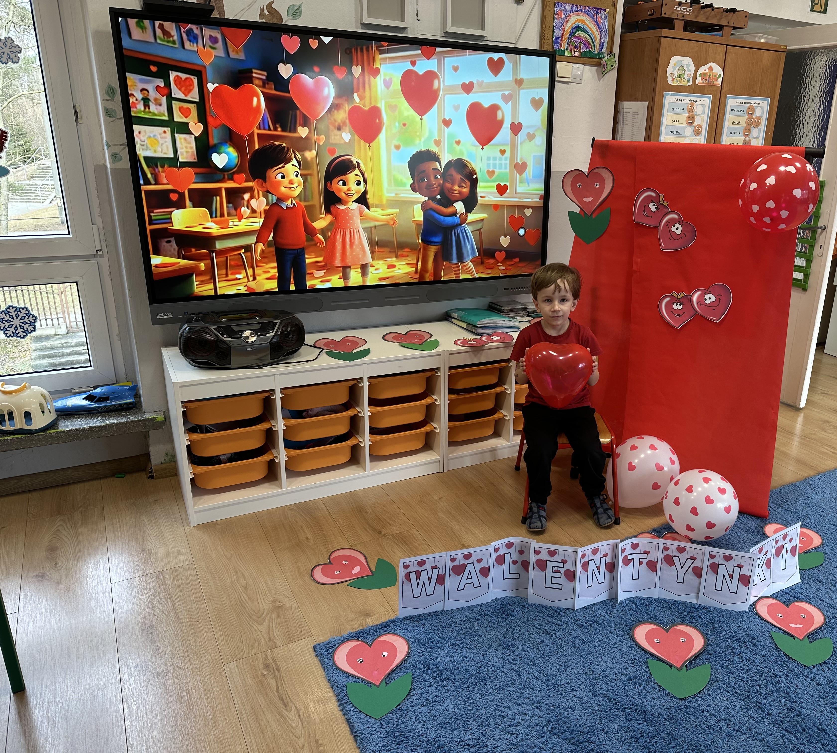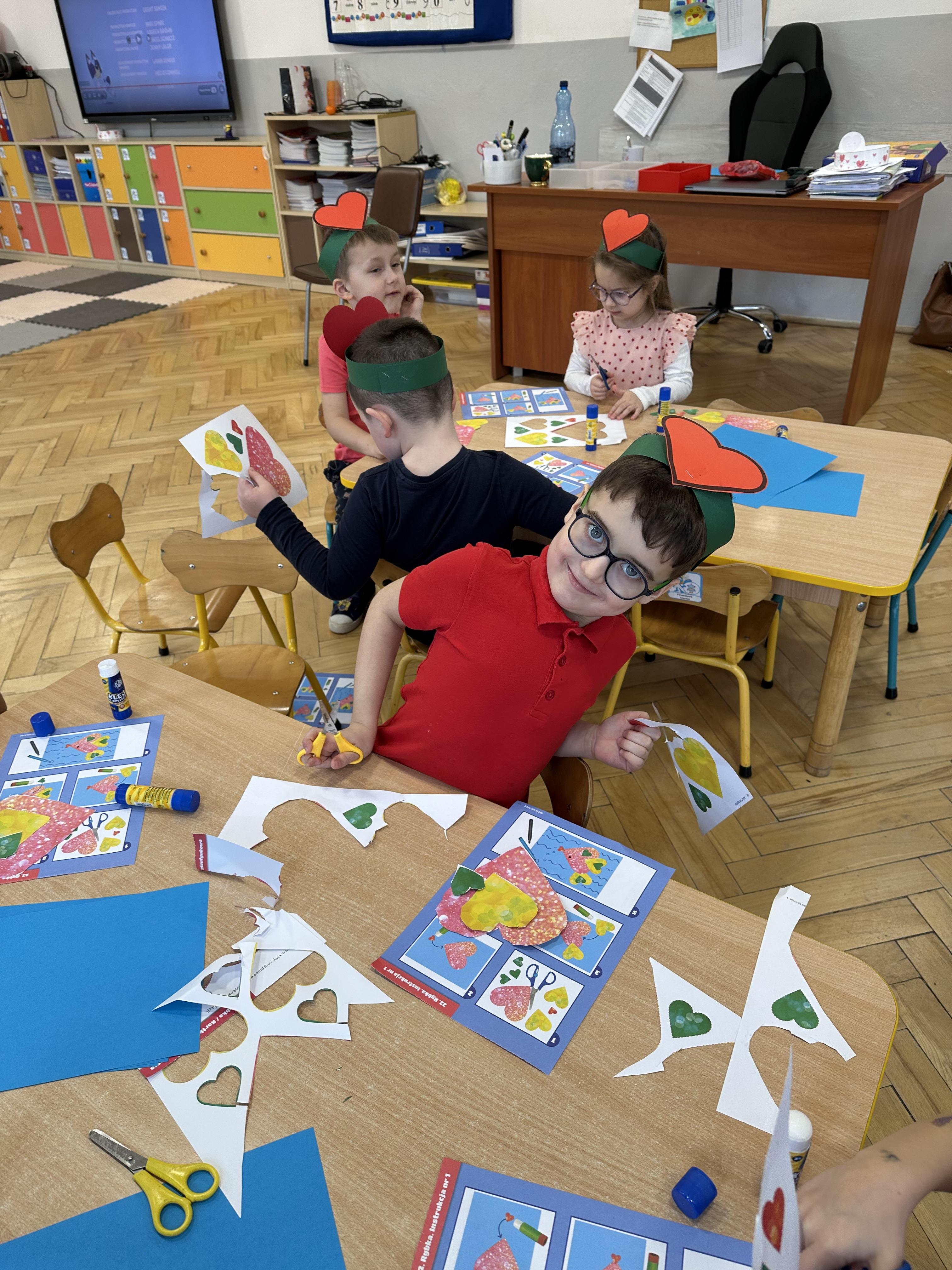 W poniedziałkowy poranek przedszkolaki wysłuchały opowiadania Marii Pawlisz ,,Mam chusteczkę haftowaną…”, które stało się punktem wyjścia do rozmowy o miłości i przyjaźni. Dzieci zauważyły, że można darzyć uczuciem zarówno ludzi, jak i zwierzęta. Dostrzegły jednak różnicę pomiędzy tymi relacjami. Dodatkowo rysowały i wycinały serca, brały udział