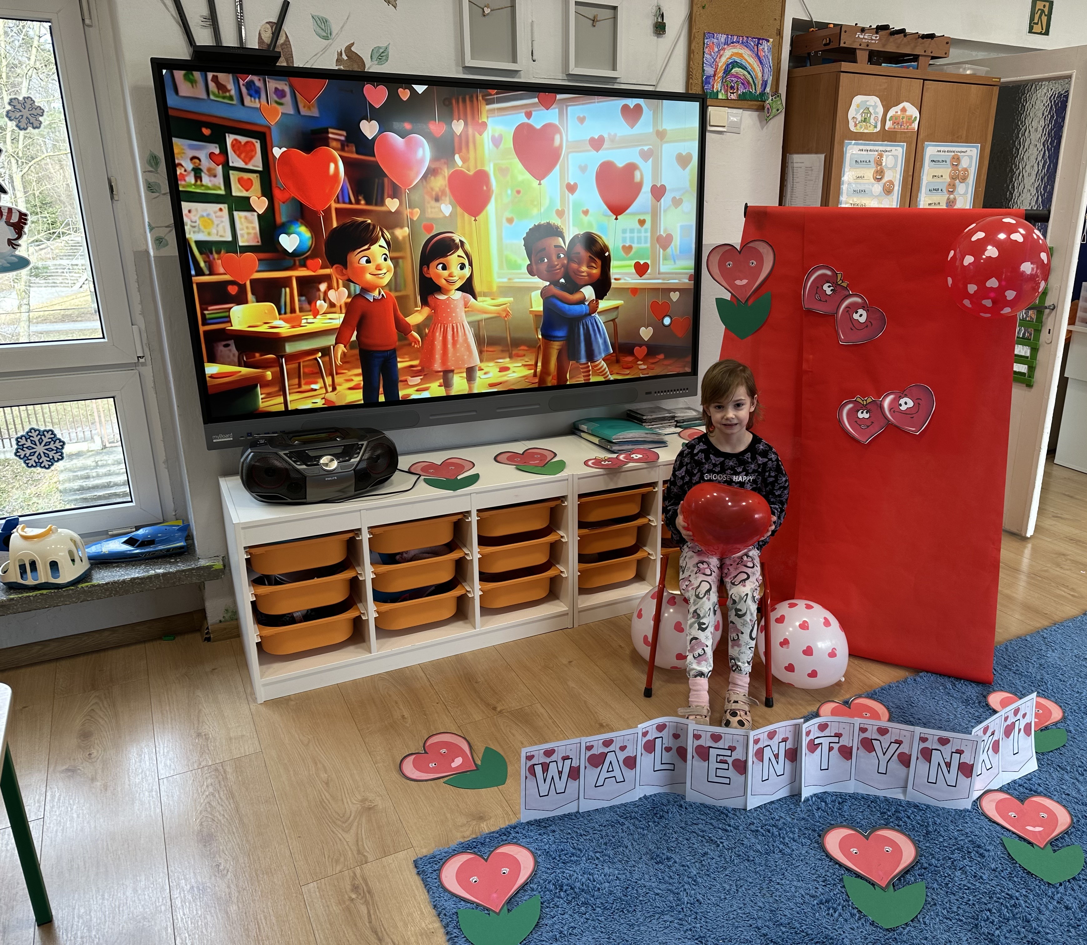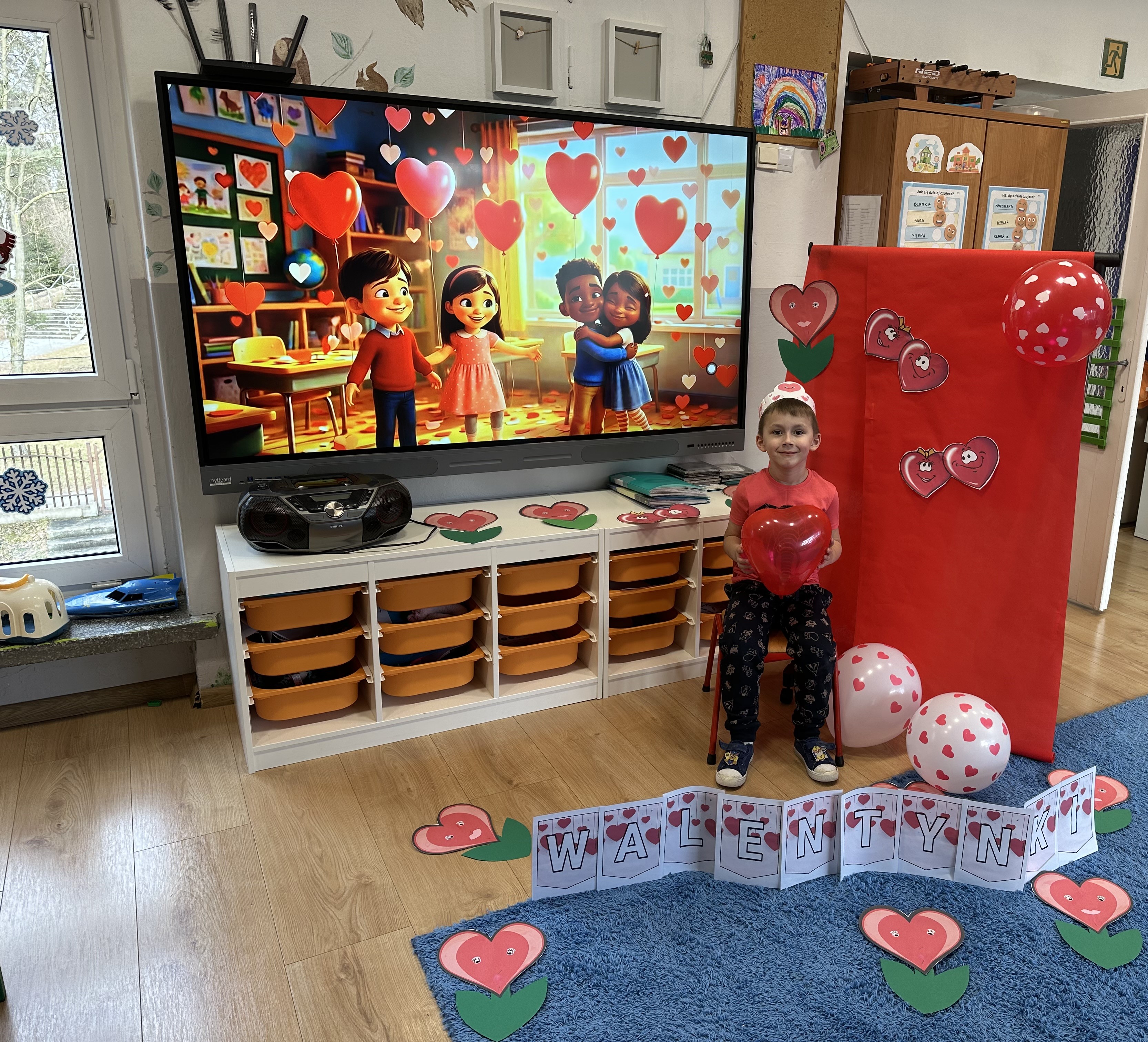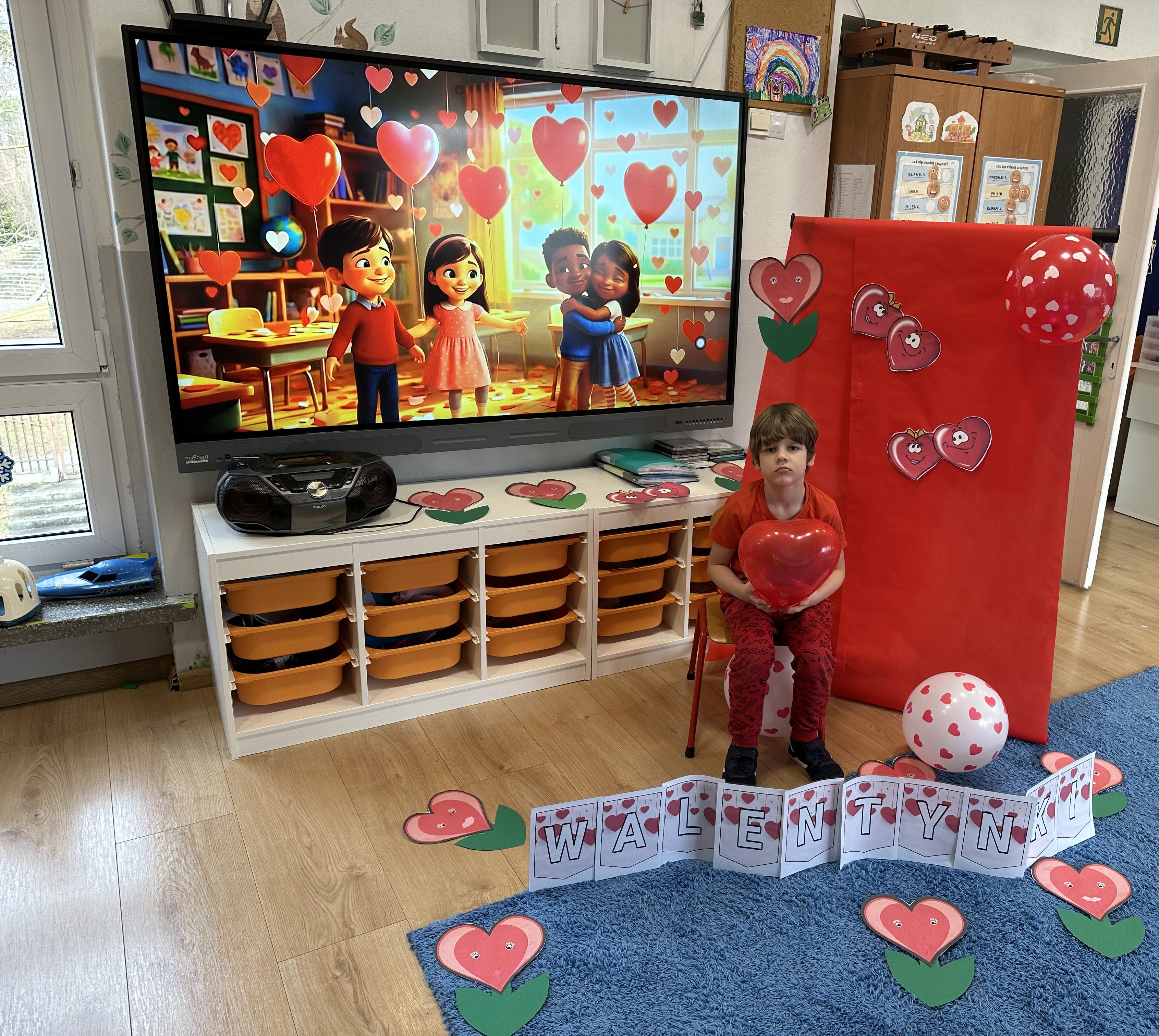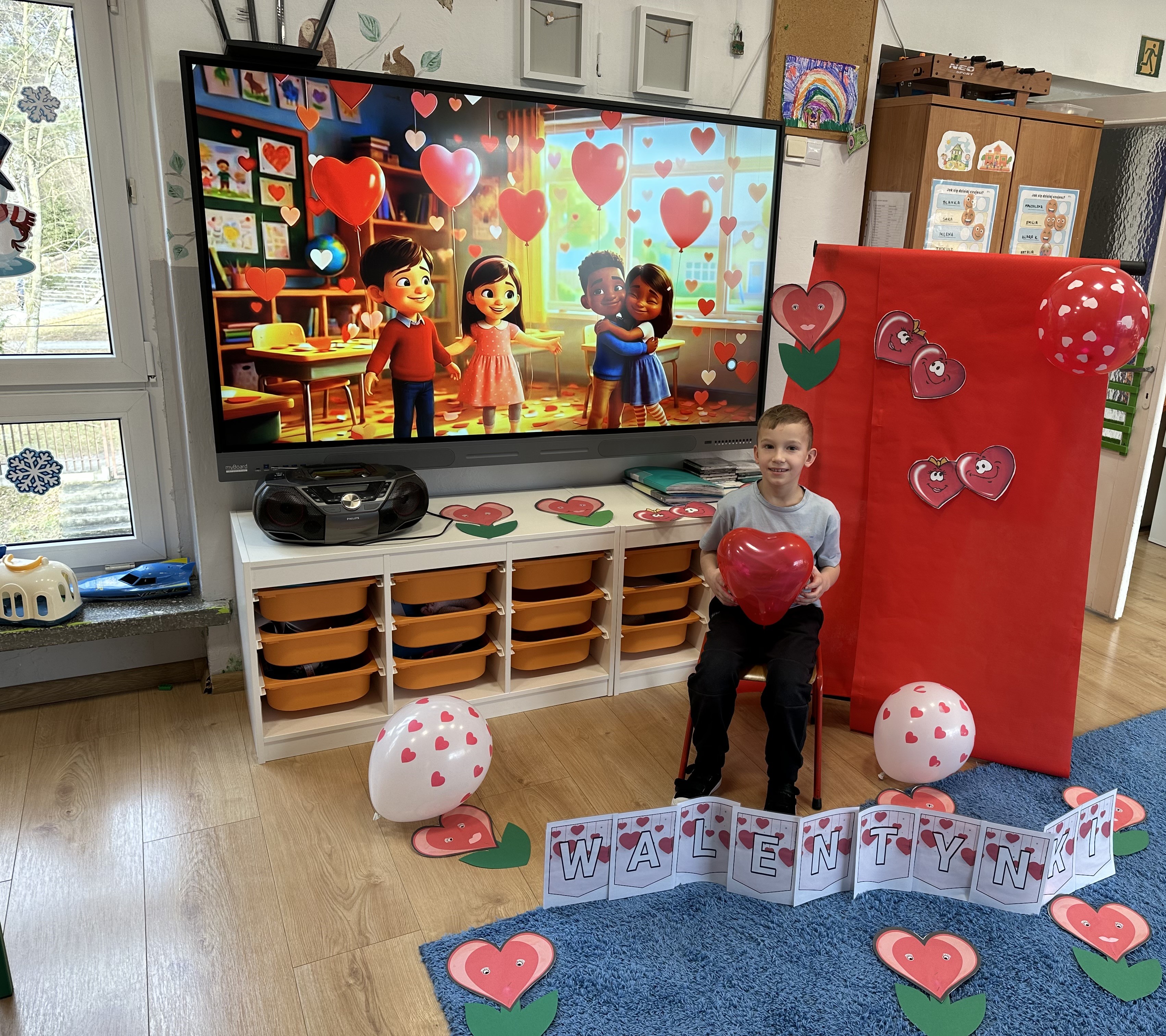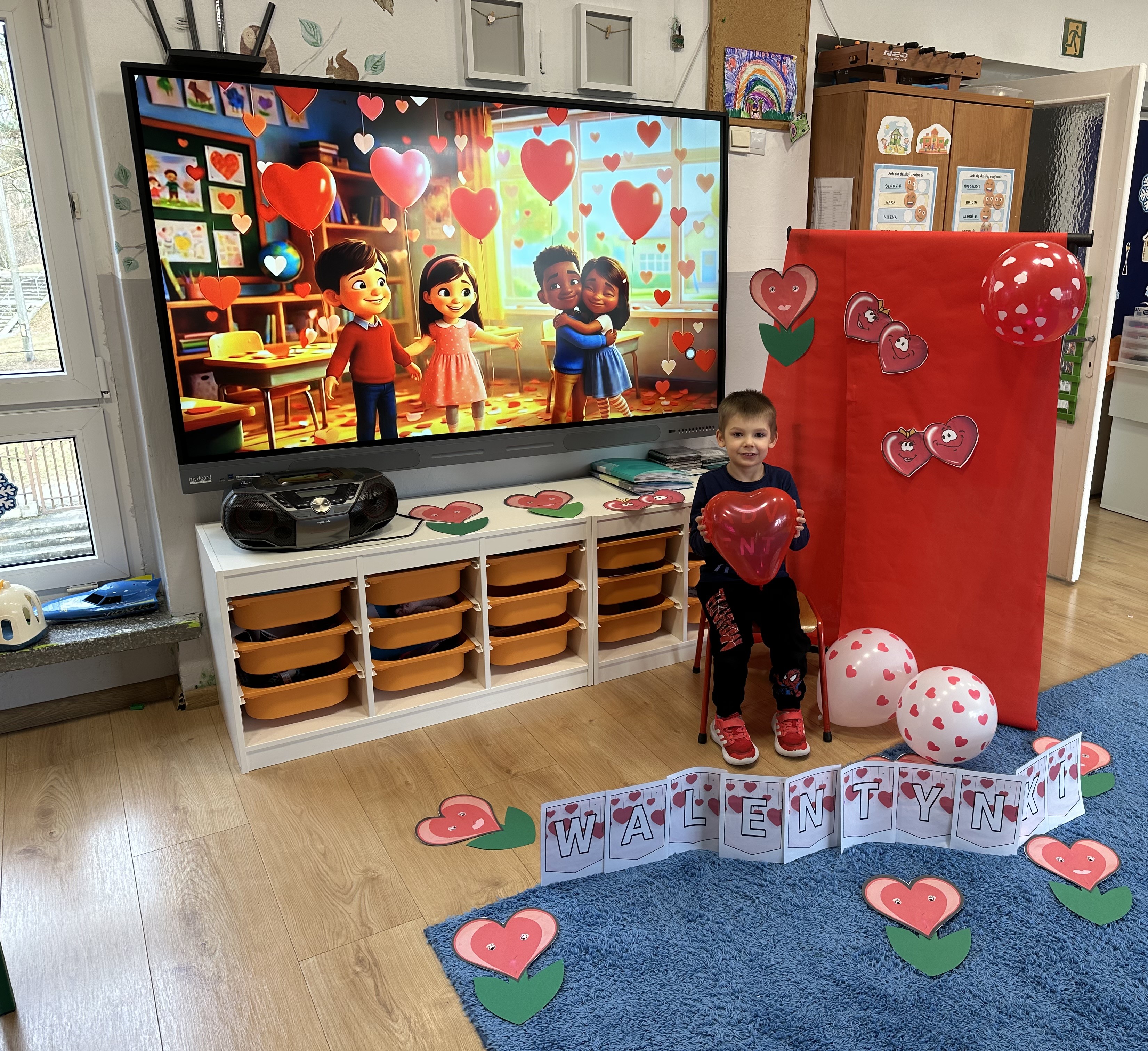 W poniedziałkowy poranek przedszkolaki wysłuchały opowiadania Marii Pawlisz ,,Mam chusteczkę haftowaną…”, które stało się punktem wyjścia do rozmowy o miłości i przyjaźni. Dzieci zauważyły, że można darzyć uczuciem zarówno ludzi, jak i zwierzęta. Dostrzegły jednak różnicę pomiędzy tymi relacjami. Dodatkowo rysowały i wycinały serca, brały udział