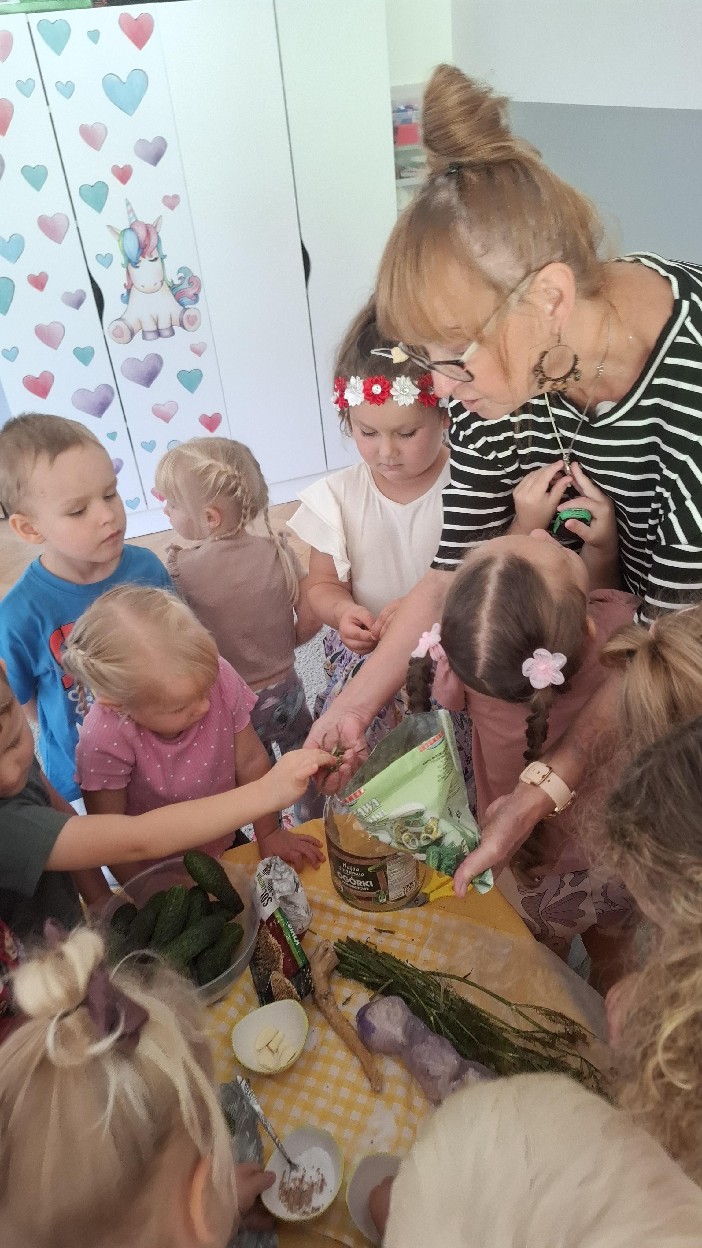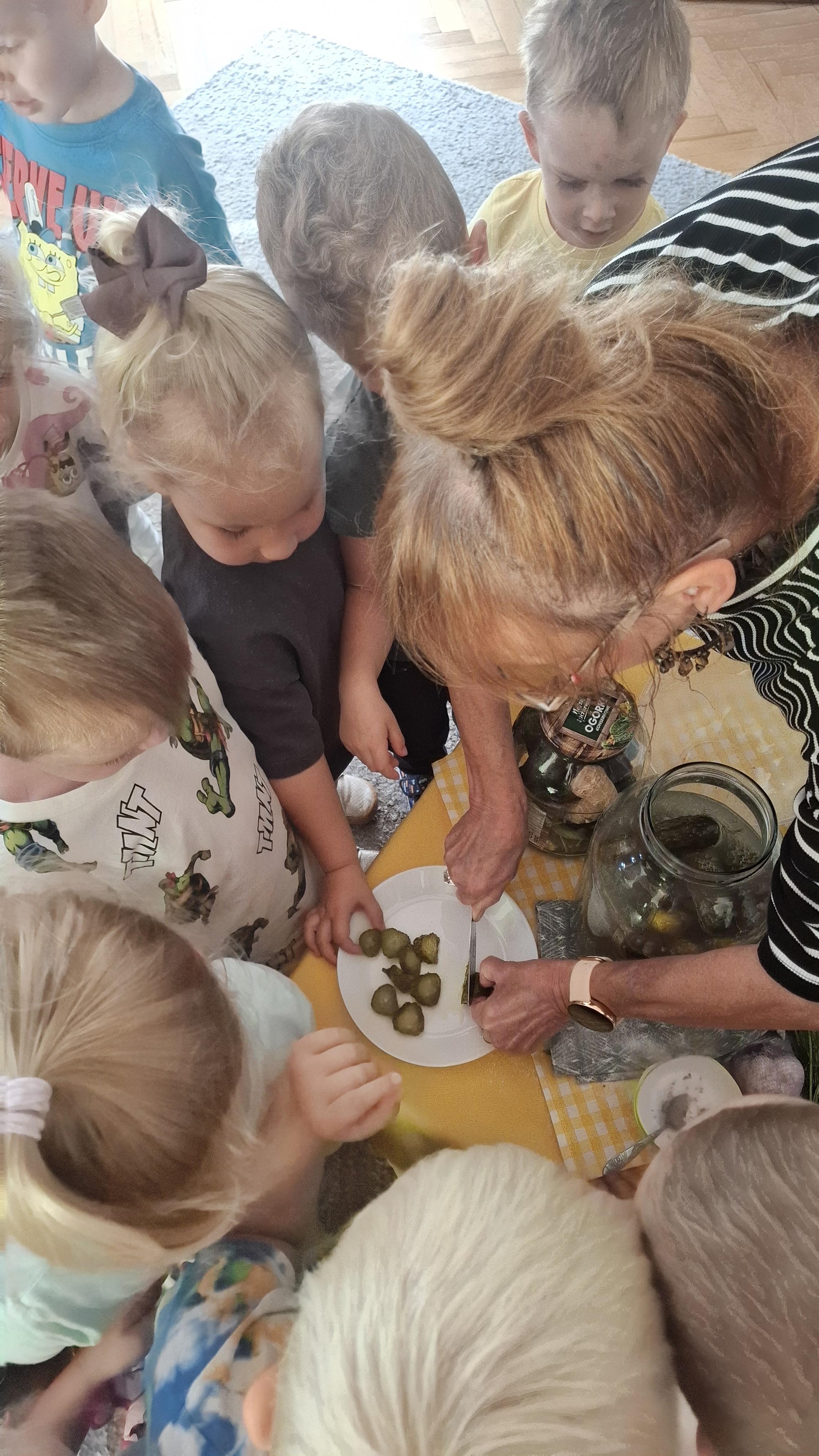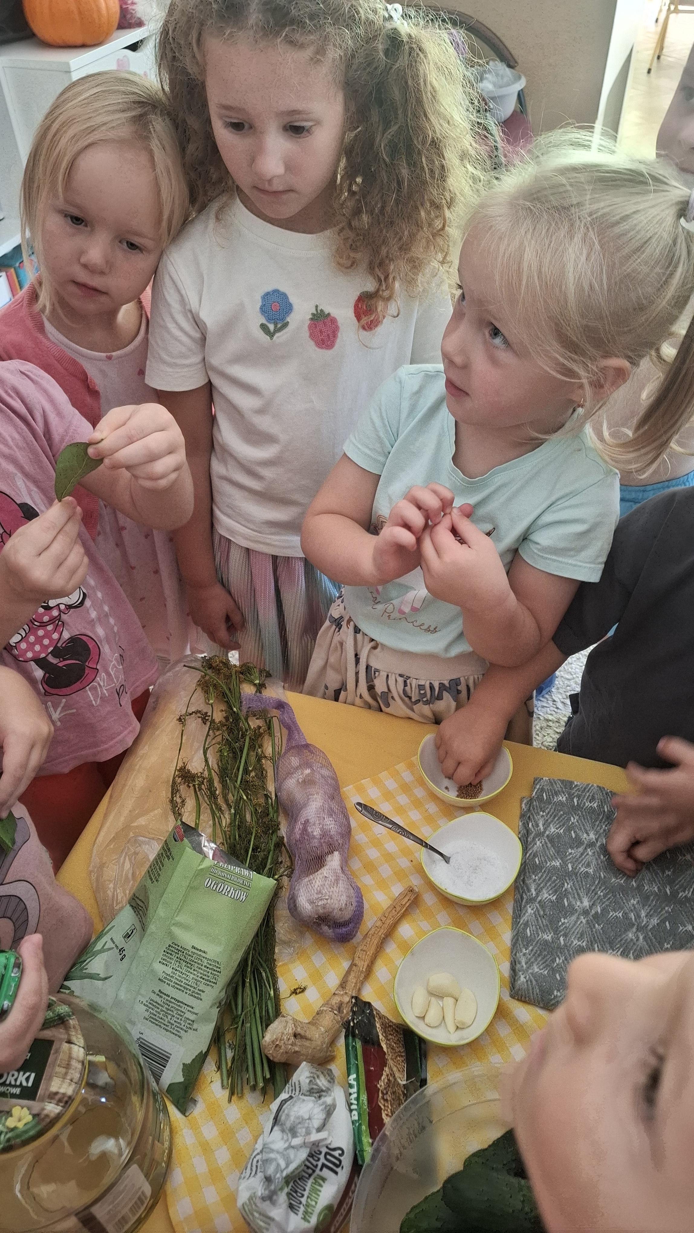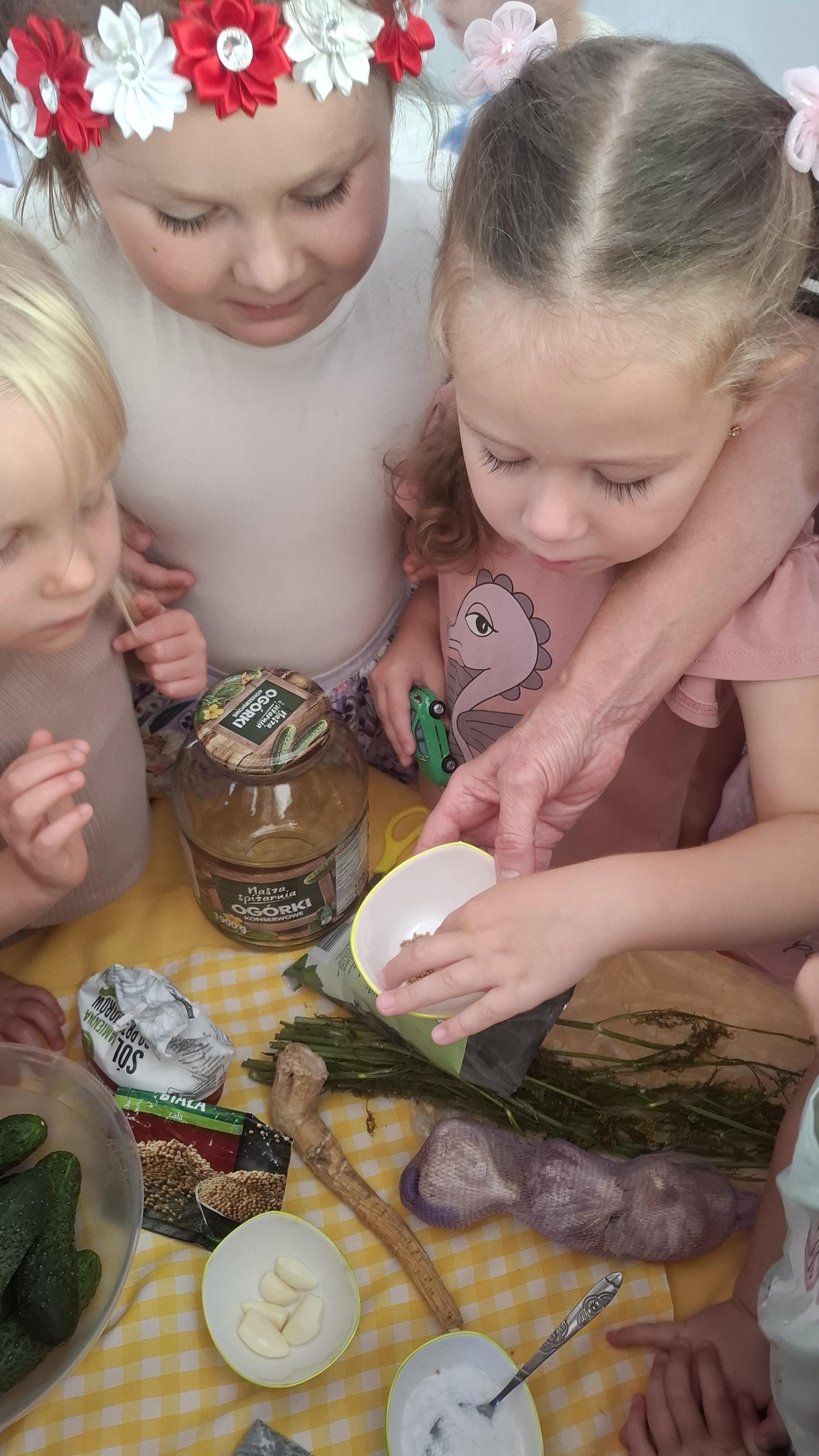 Największą atrakcją warsztatów była oczywiście degustacja ogórków kiszonych – dzieci z apetytem próbowały tradycyjnych smaków, a przy tym uczyły się, że zdrowe jedzenie można przygotować samemu w prosty sposób.