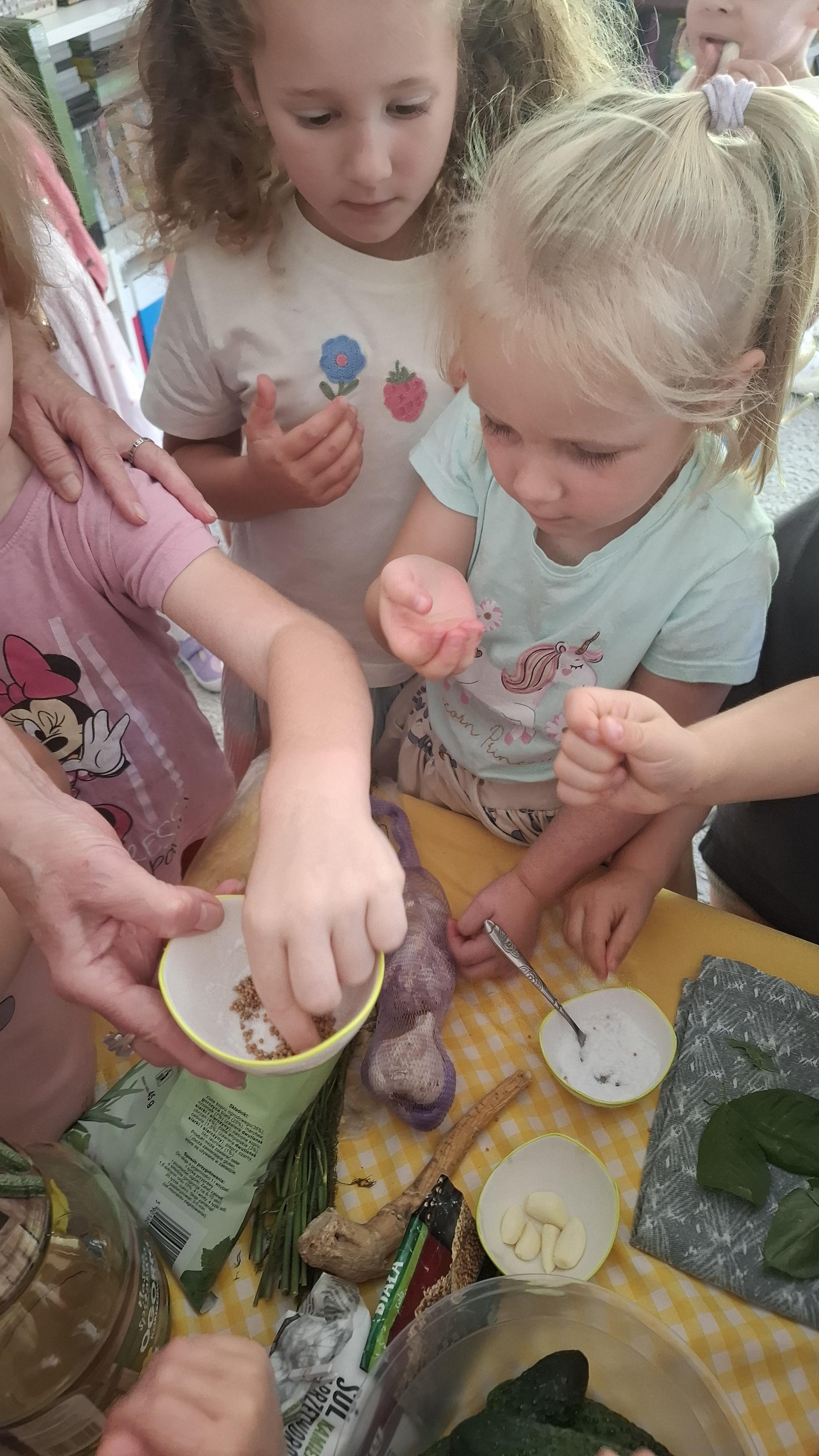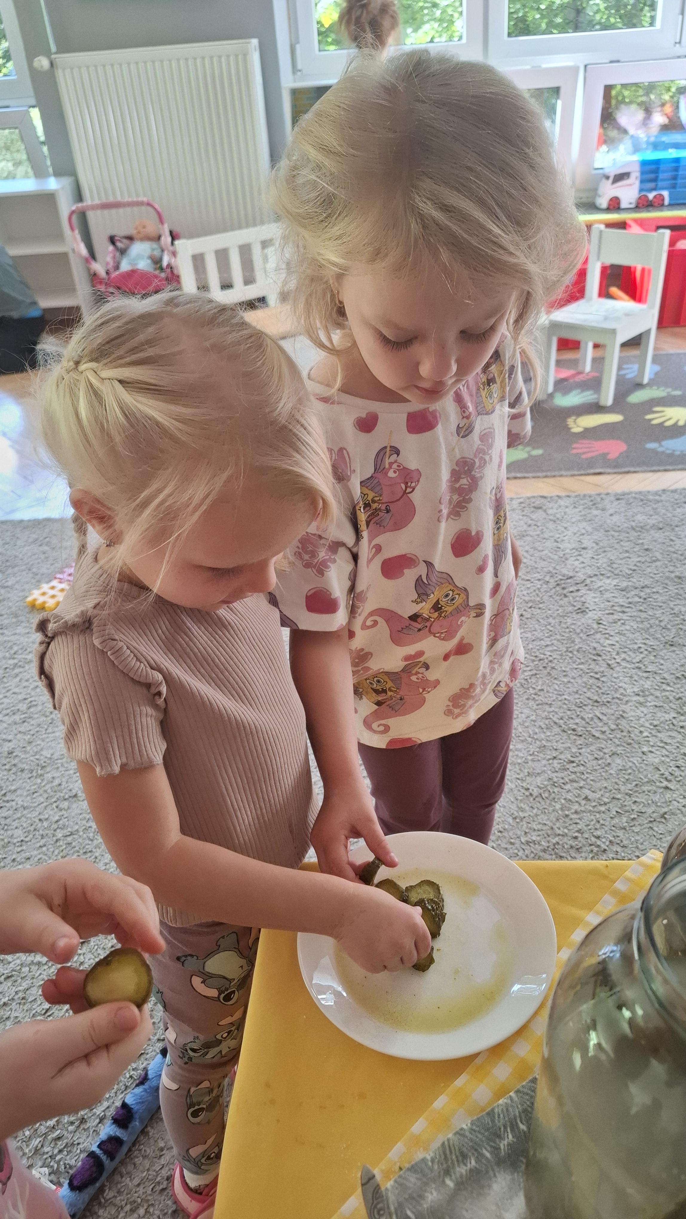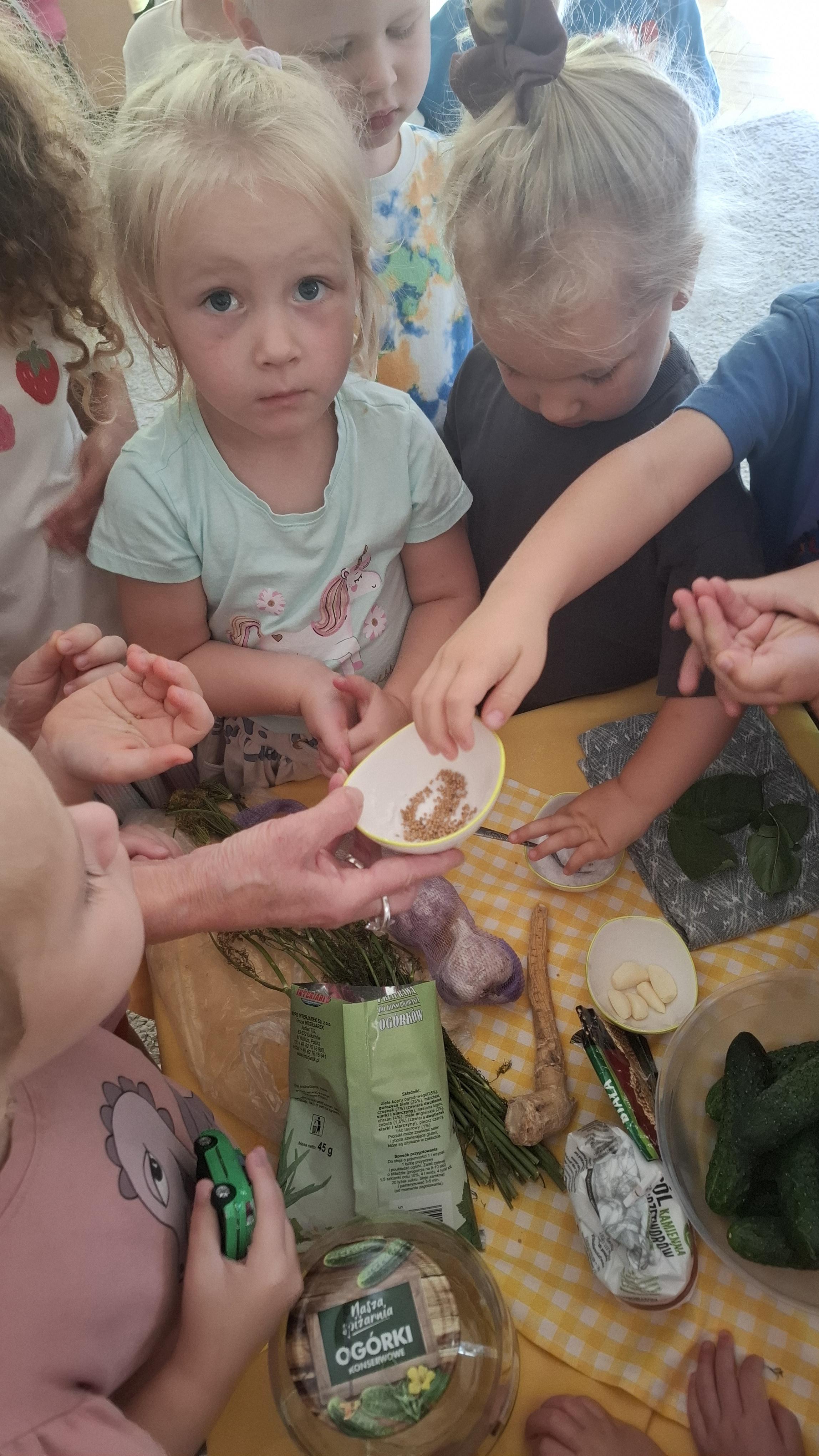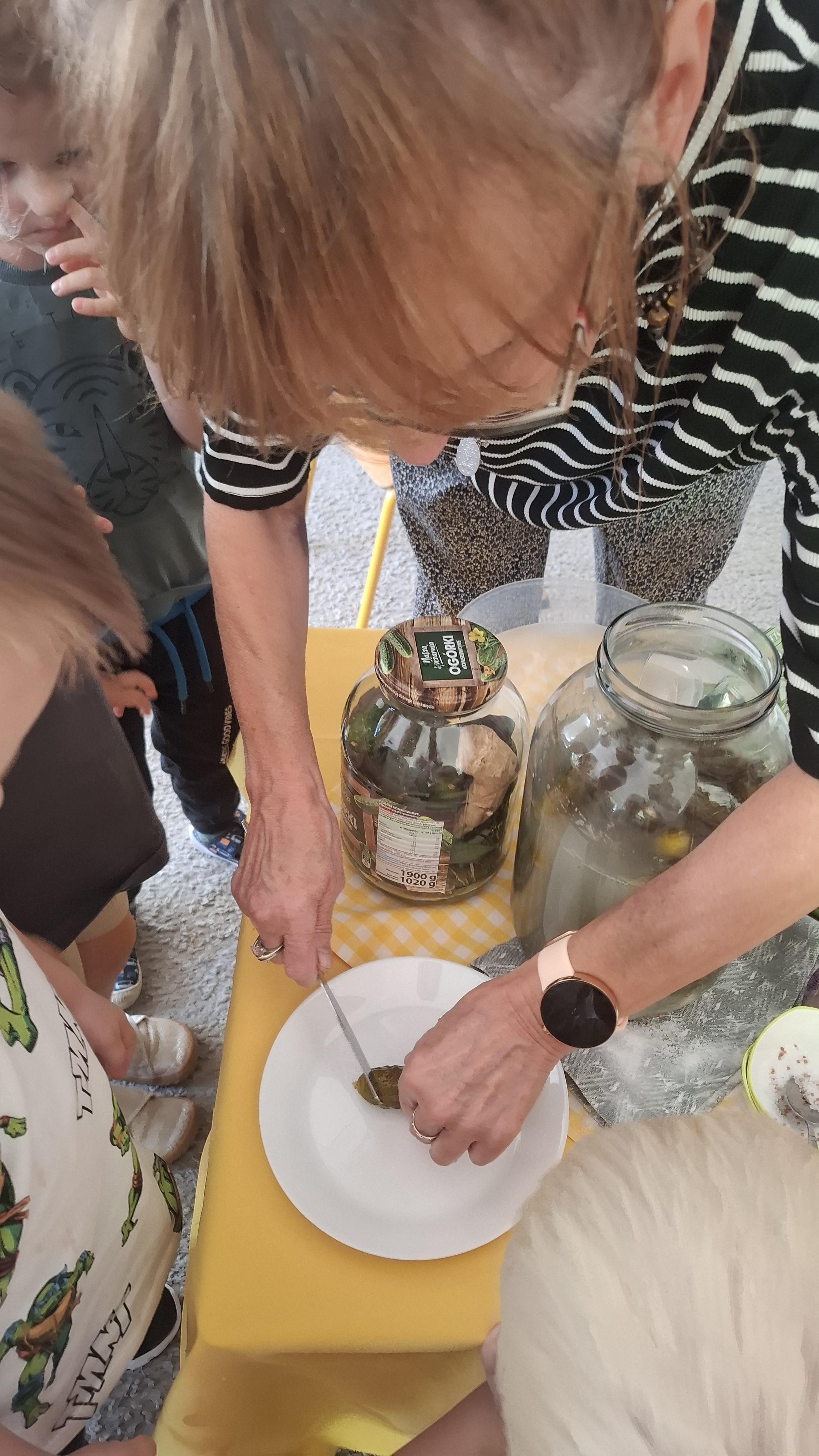 Największą atrakcją warsztatów była oczywiście degustacja ogórków kiszonych – dzieci z apetytem próbowały tradycyjnych smaków, a przy tym uczyły się, że zdrowe jedzenie można przygotować samemu w prosty sposób.