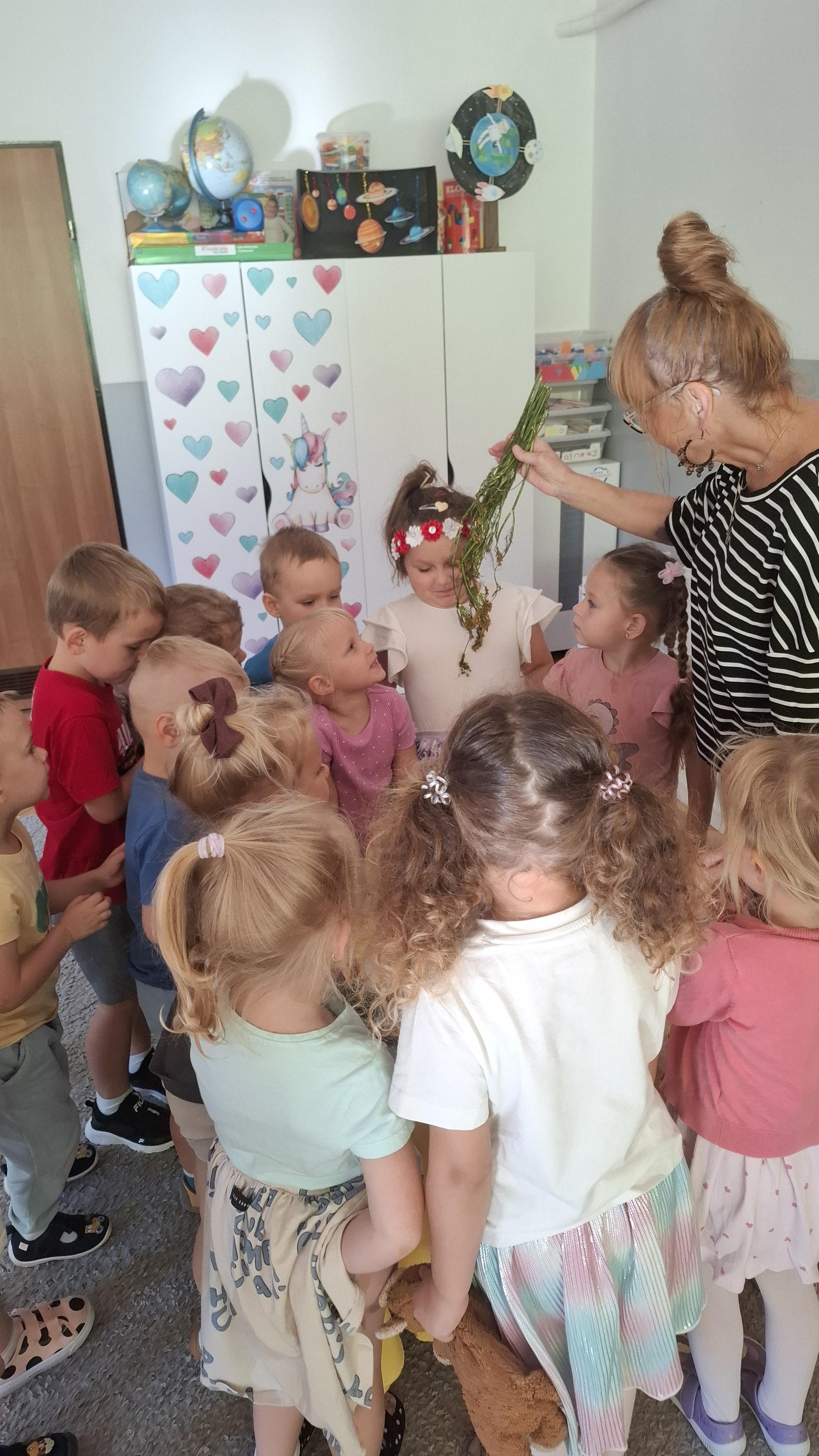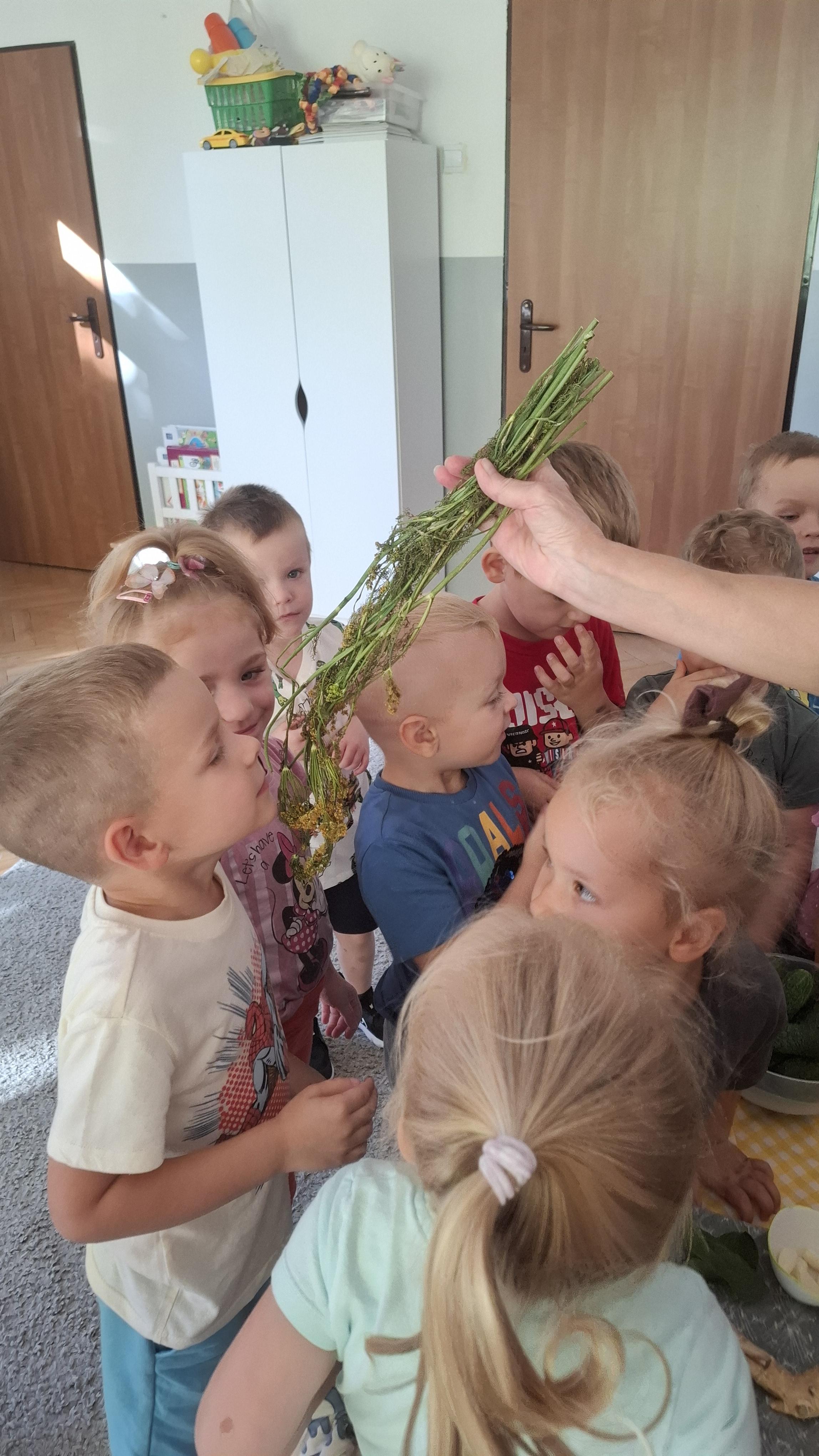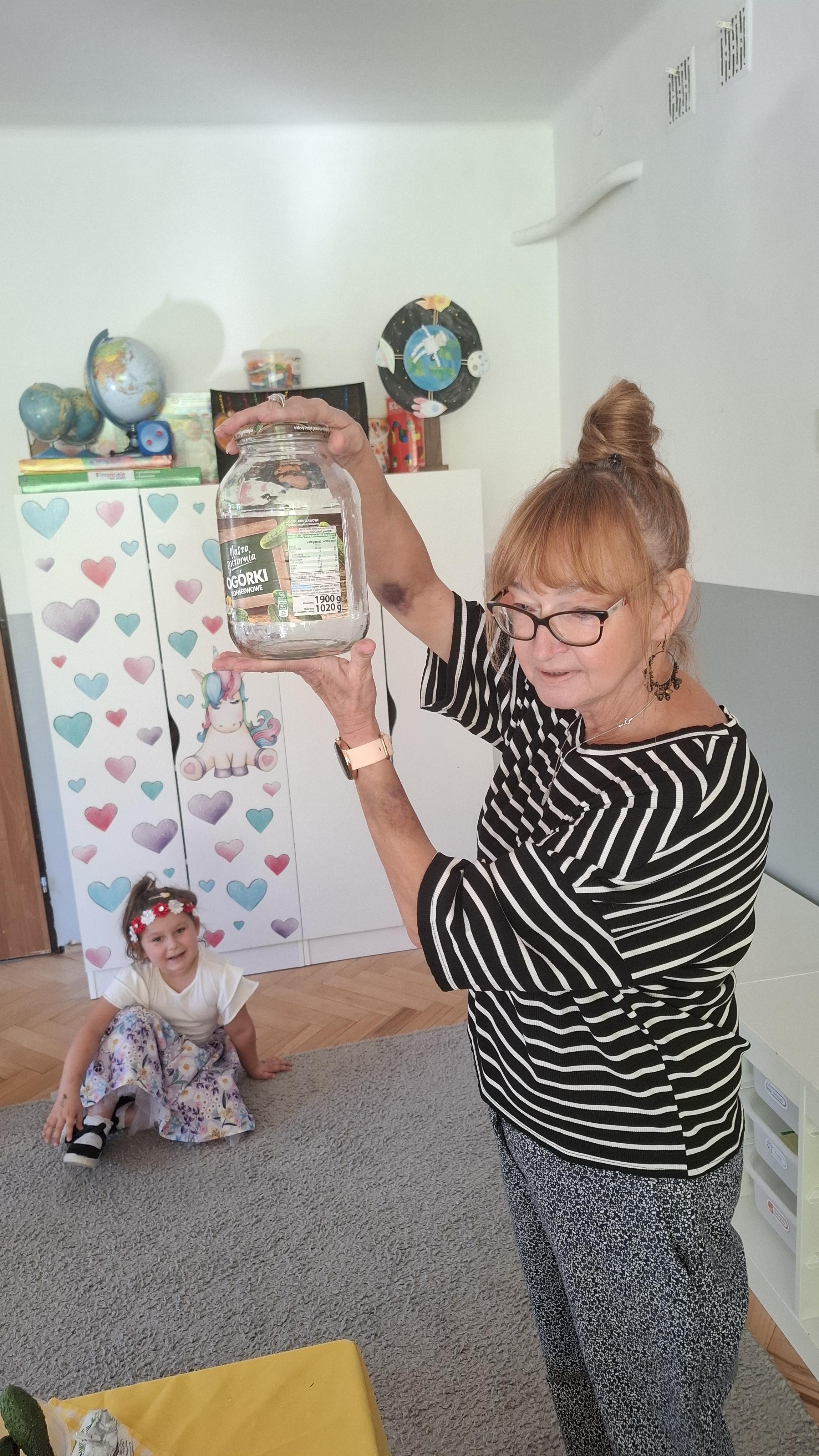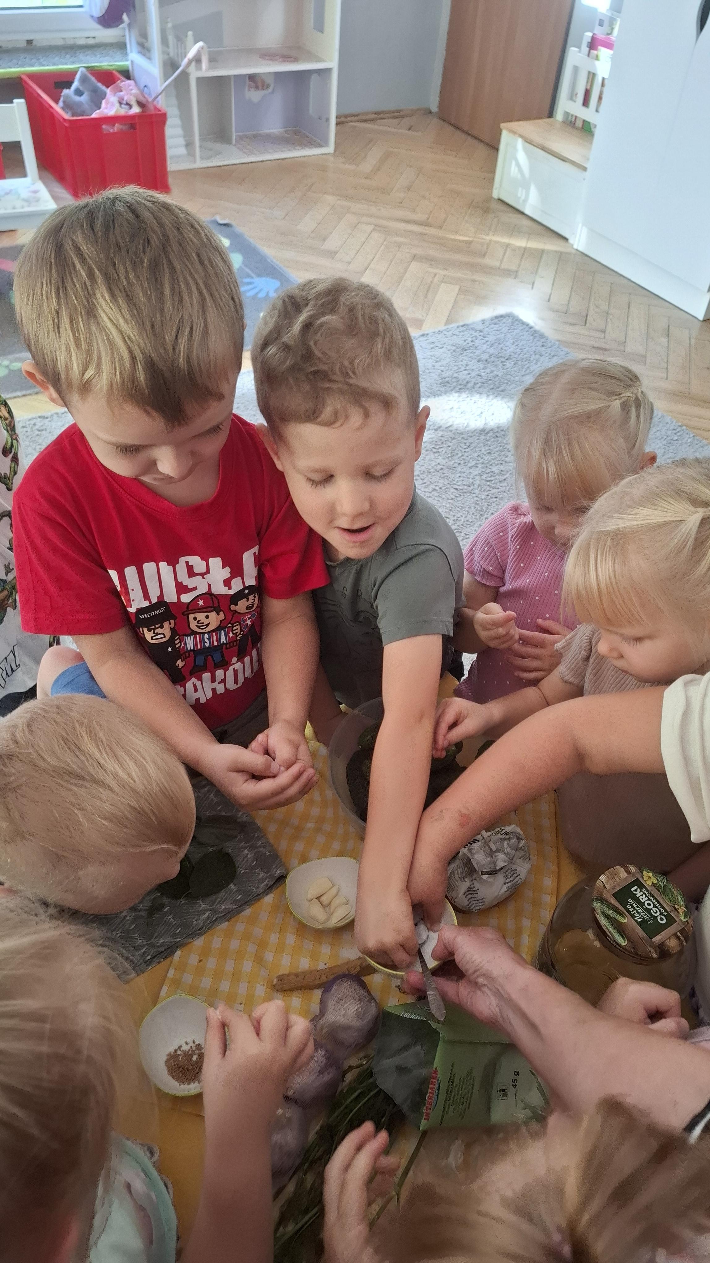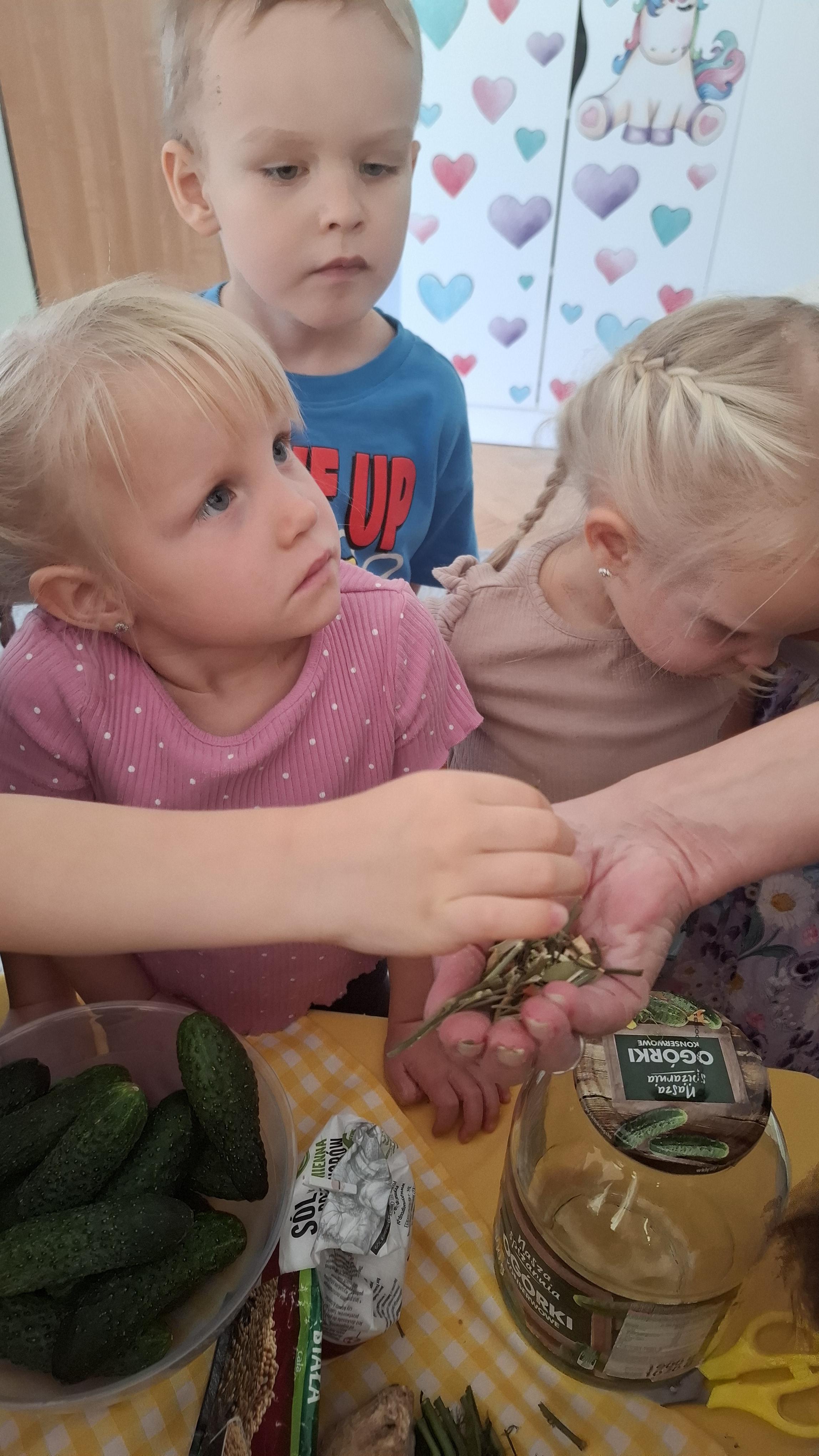 W świat tajników kiszenia warzyw wprowadziła dzieci pani Basia, która krok po kroku pokazała, jak przygotować ogórki do kiszenia. Przedszkolaki dowiedziały się, jakie składniki są potrzebne, by powstała pyszna, zdrowa i ekologiczna przekąska, a następnie samodzielnie przygotowały własny słoik z ogórkami.