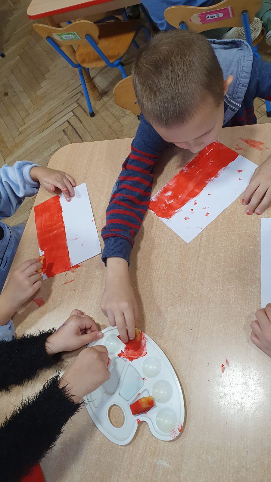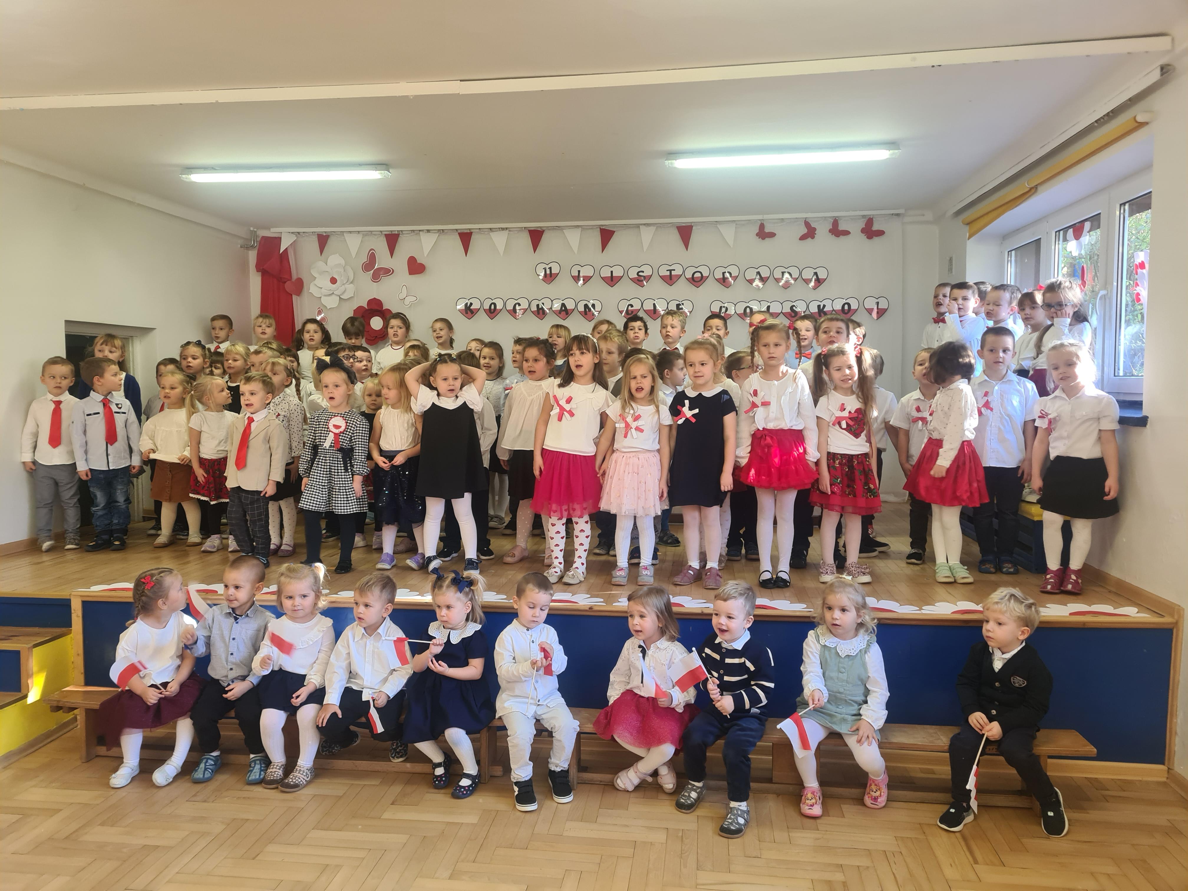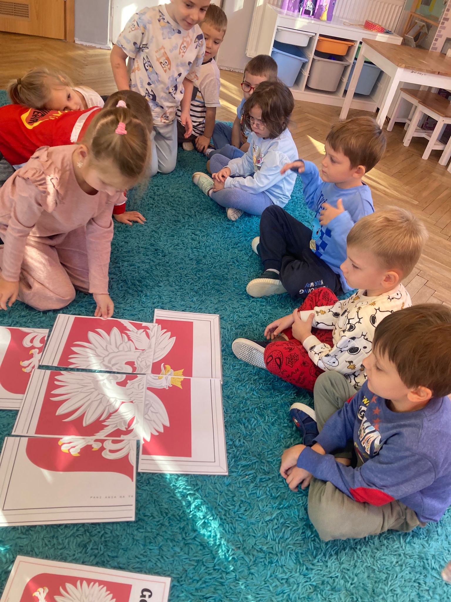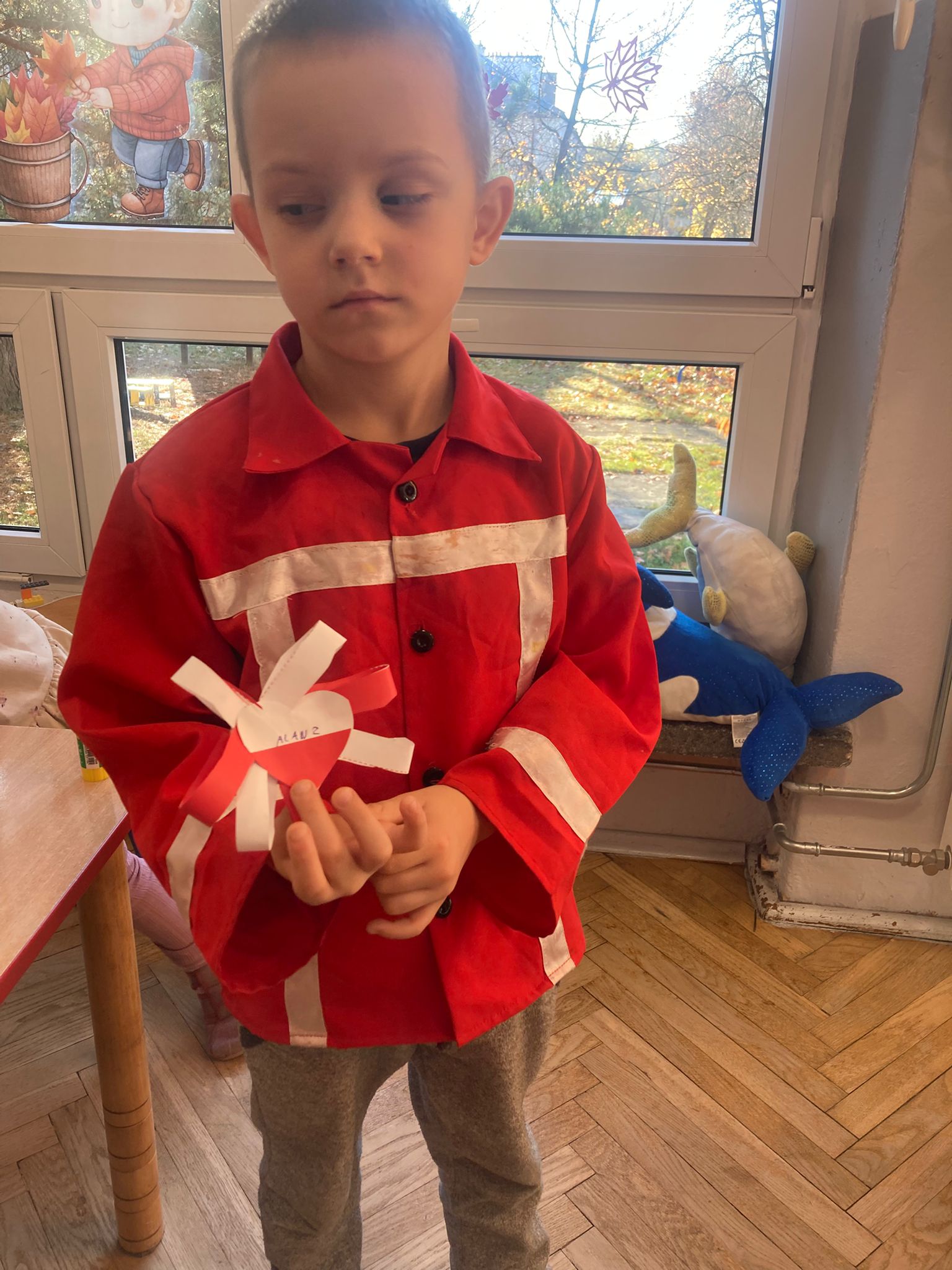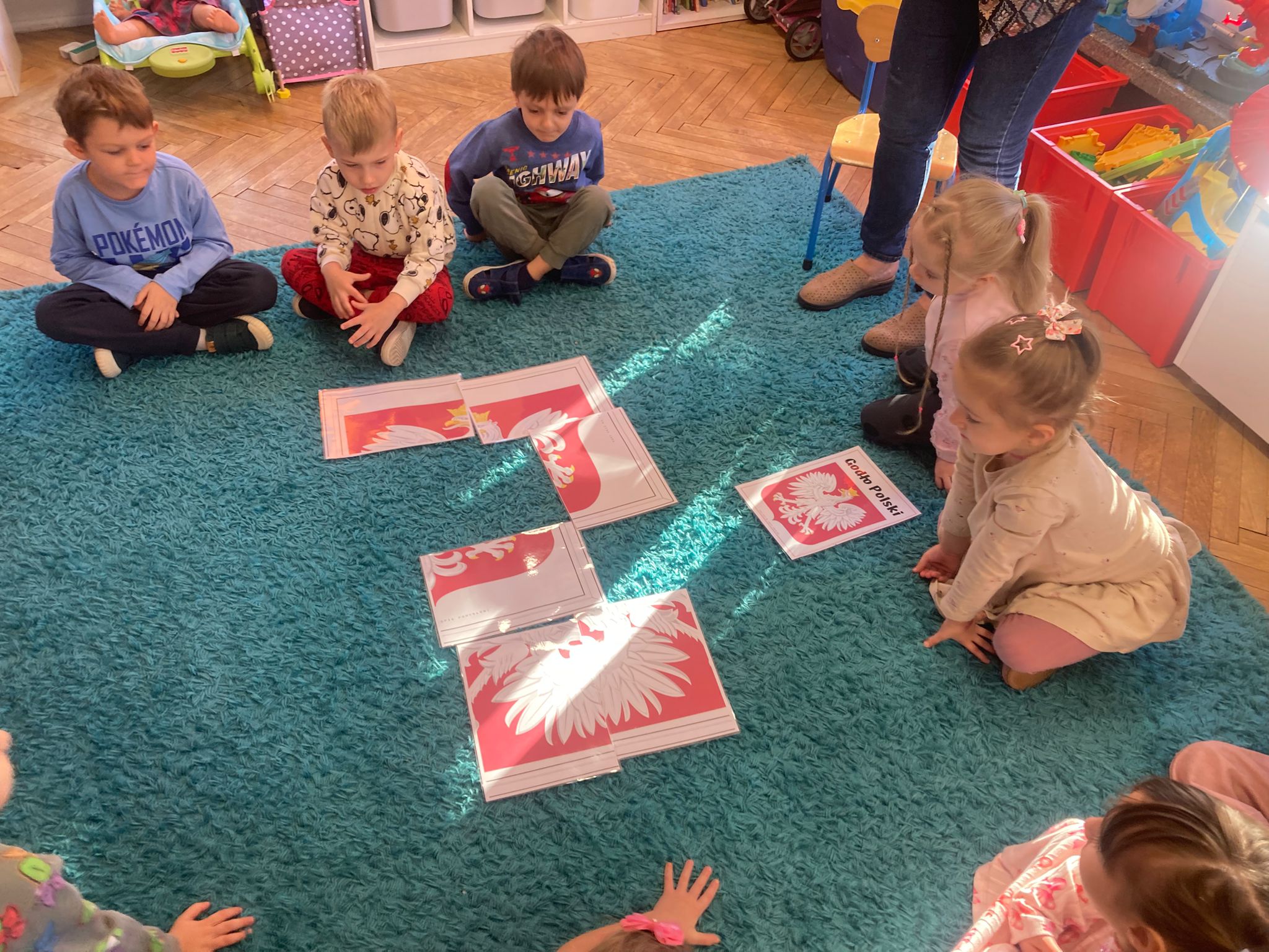 11 Listopad- Dzień Niepodległości Kświęto szczególne dla każdego Polaka.Od najmłodszych lat staramy sìę wpoic dzieciom poczucie przynależności narodowej i patriotyzmu.W minionym tygodniu zorganizowaliśmy zajecia edukacyjne pod hasłem:"Kocham Cię Polsko".Dzieci utrwaliły sobie wiadomości o Polsce: godło,kolory flagi,hymn narodowy a także mapę naszego kraju.Wśród flag innych narodów rozpoznawały flagę i mapę swojego kraju.Z części układały godło i malowały farbą flagę. Przedszkolaki nauczyły wzruszającej piosenki o Polsce a łza w oku się pojawiła gdy wszyscy wspólnie z przedszkolakami z innych grup zaśpiewaliśmy hymn Polski by uczcić ten ważny dzień. Oto mali patrioci z naszego przedszkola !