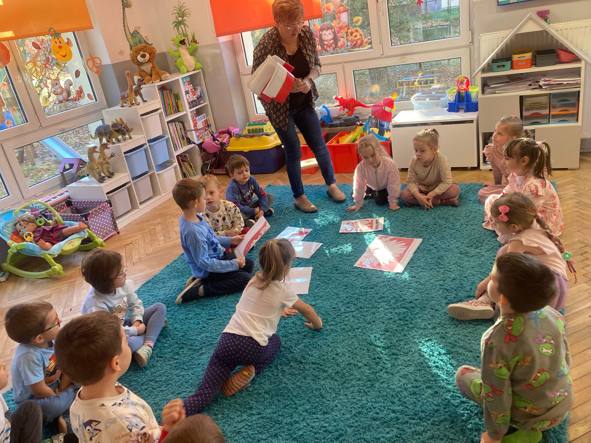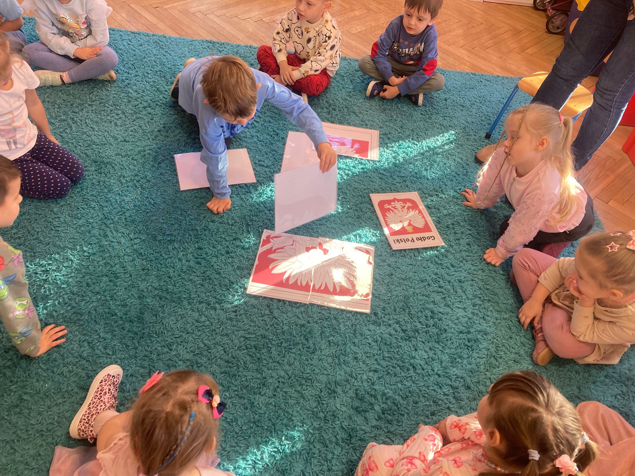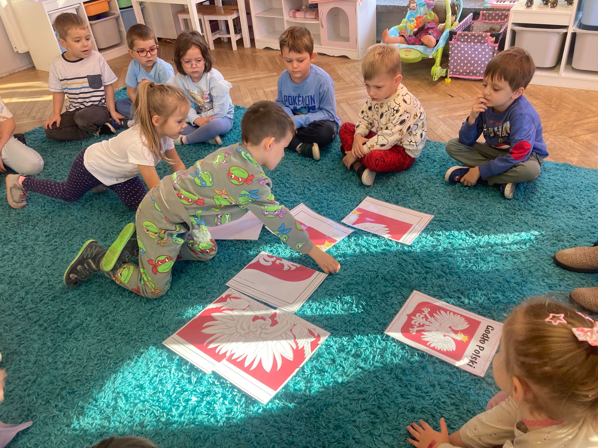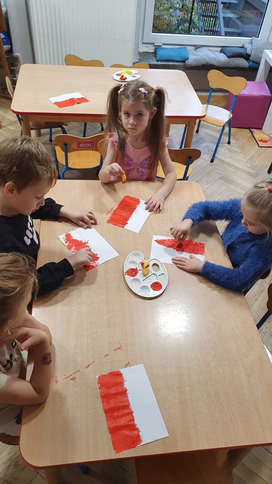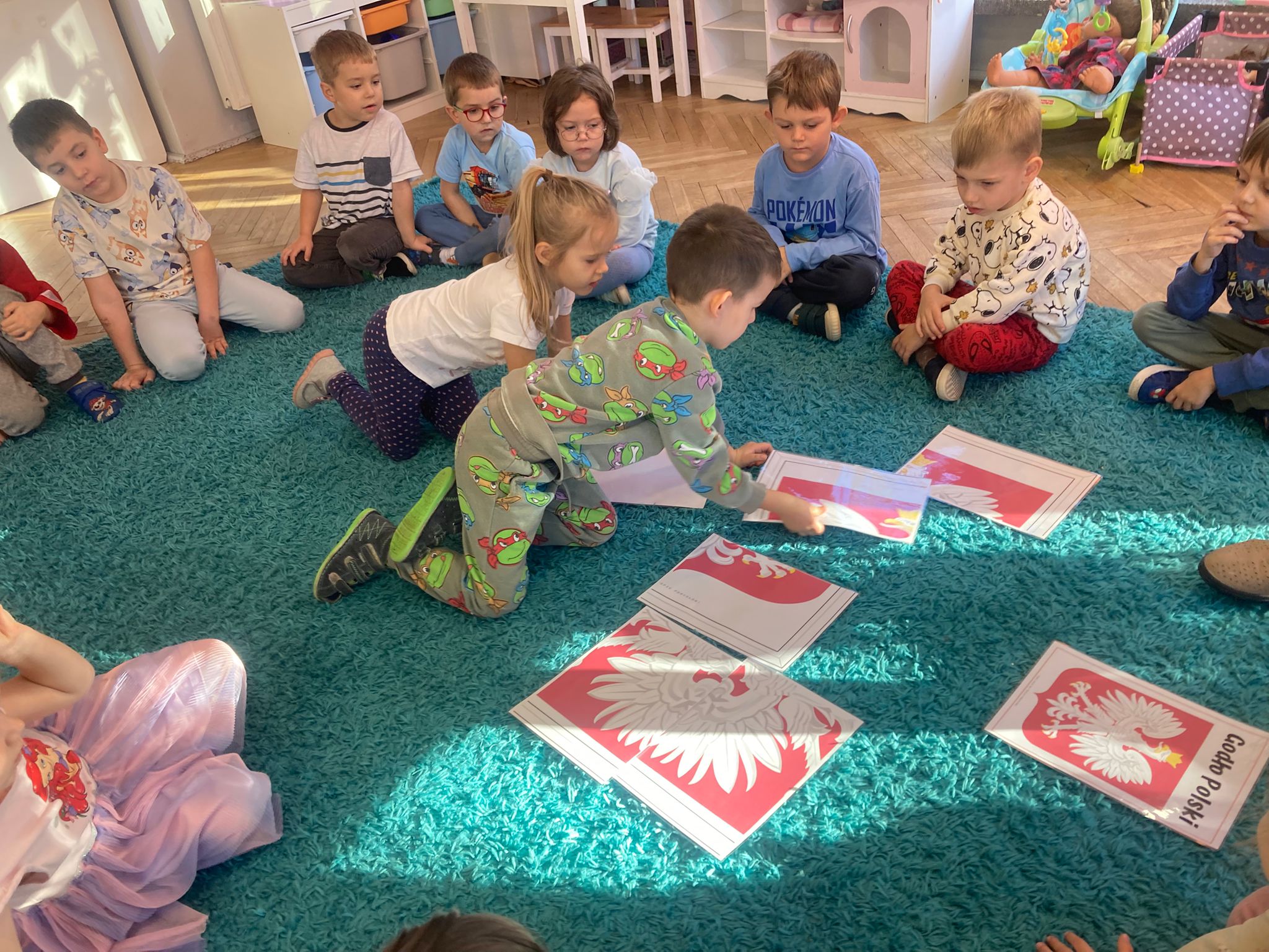 11 Listopad- Dzień Niepodległości Kświęto szczególne dla każdego Polaka.Od najmłodszych lat staramy sìę wpoic dzieciom poczucie przynależności narodowej i patriotyzmu.W minionym tygodniu zorganizowaliśmy zajecia edukacyjne pod hasłem:"Kocham Cię Polsko".Dzieci utrwaliły sobie wiadomości o Polsce: godło,kolory flagi,hymn narodowy a także mapę naszego kraju.Wśród flag innych narodów rozpoznawały flagę i mapę swojego kraju.Z części układały godło i malowały farbą flagę. Przedszkolaki nauczyły wzruszającej piosenki o Polsce a łza w oku się pojawiła gdy wszyscy wspólnie z przedszkolakami z innych grup zaśpiewaliśmy hymn Polski by uczcić ten ważny dzień. Oto mali patrioci z naszego przedszkola !