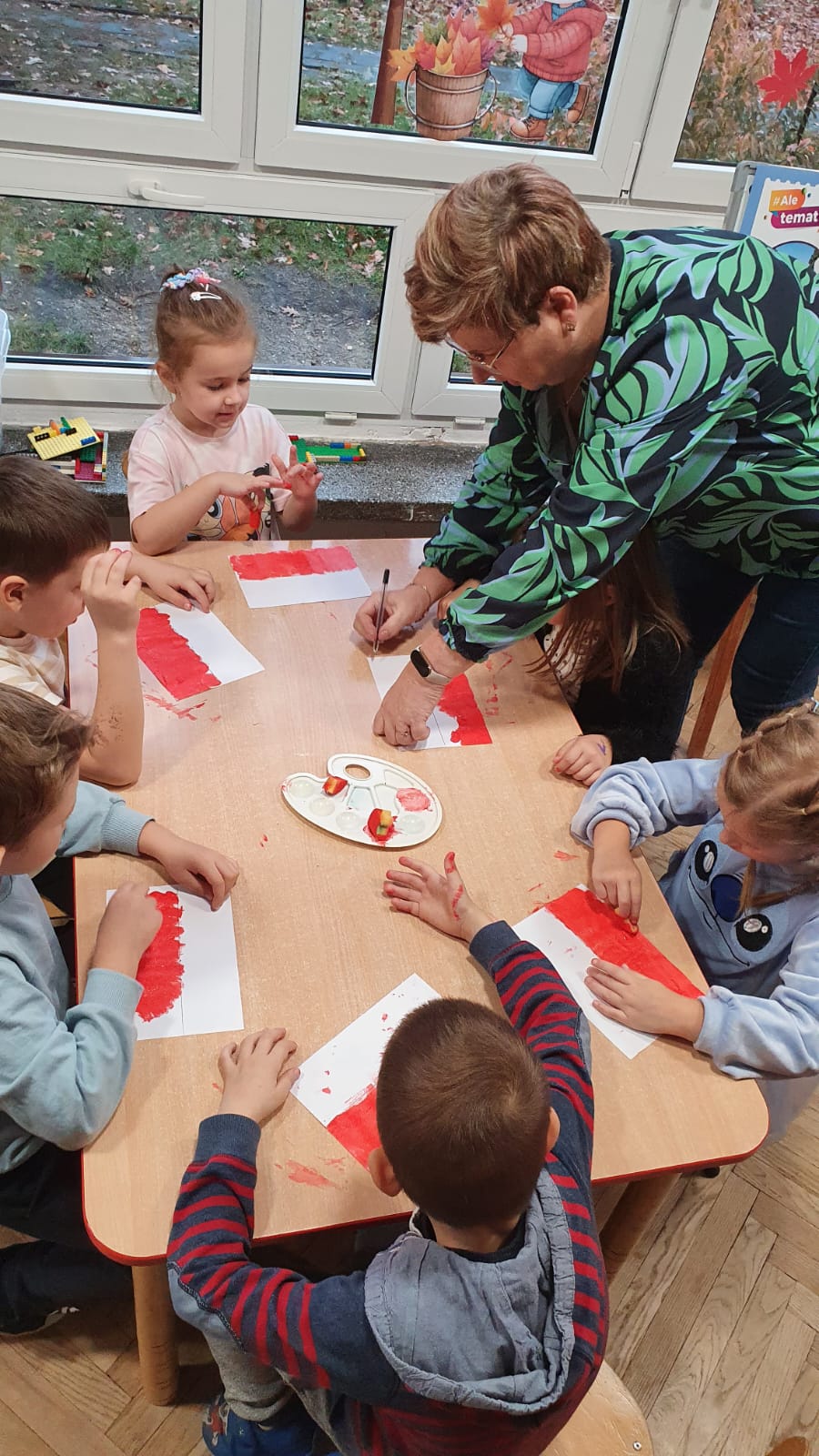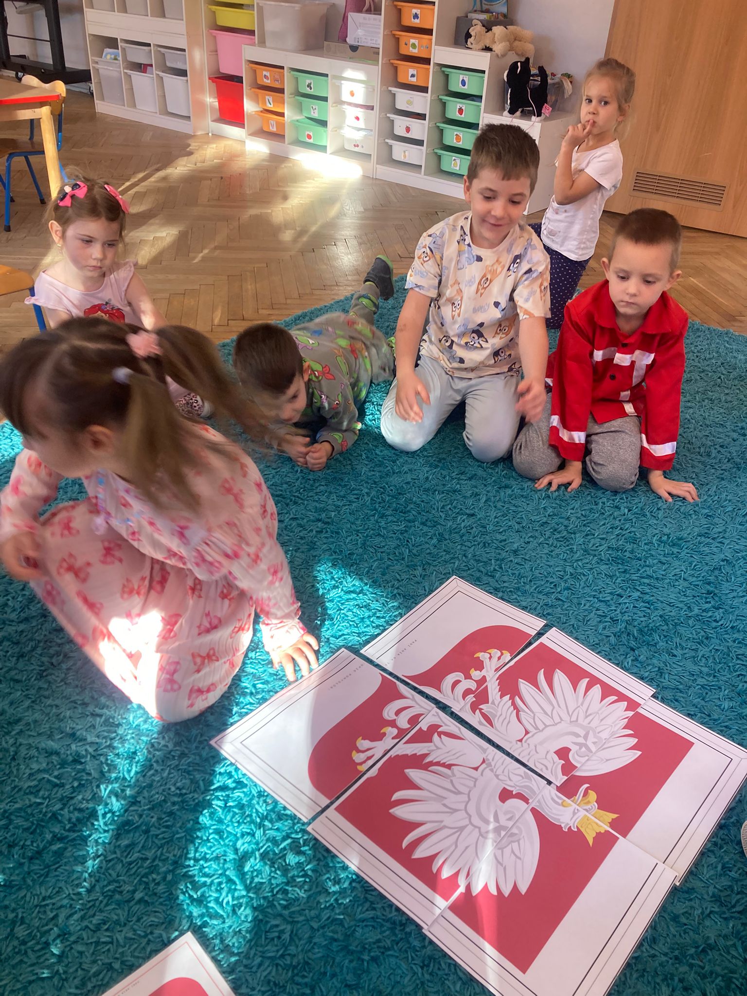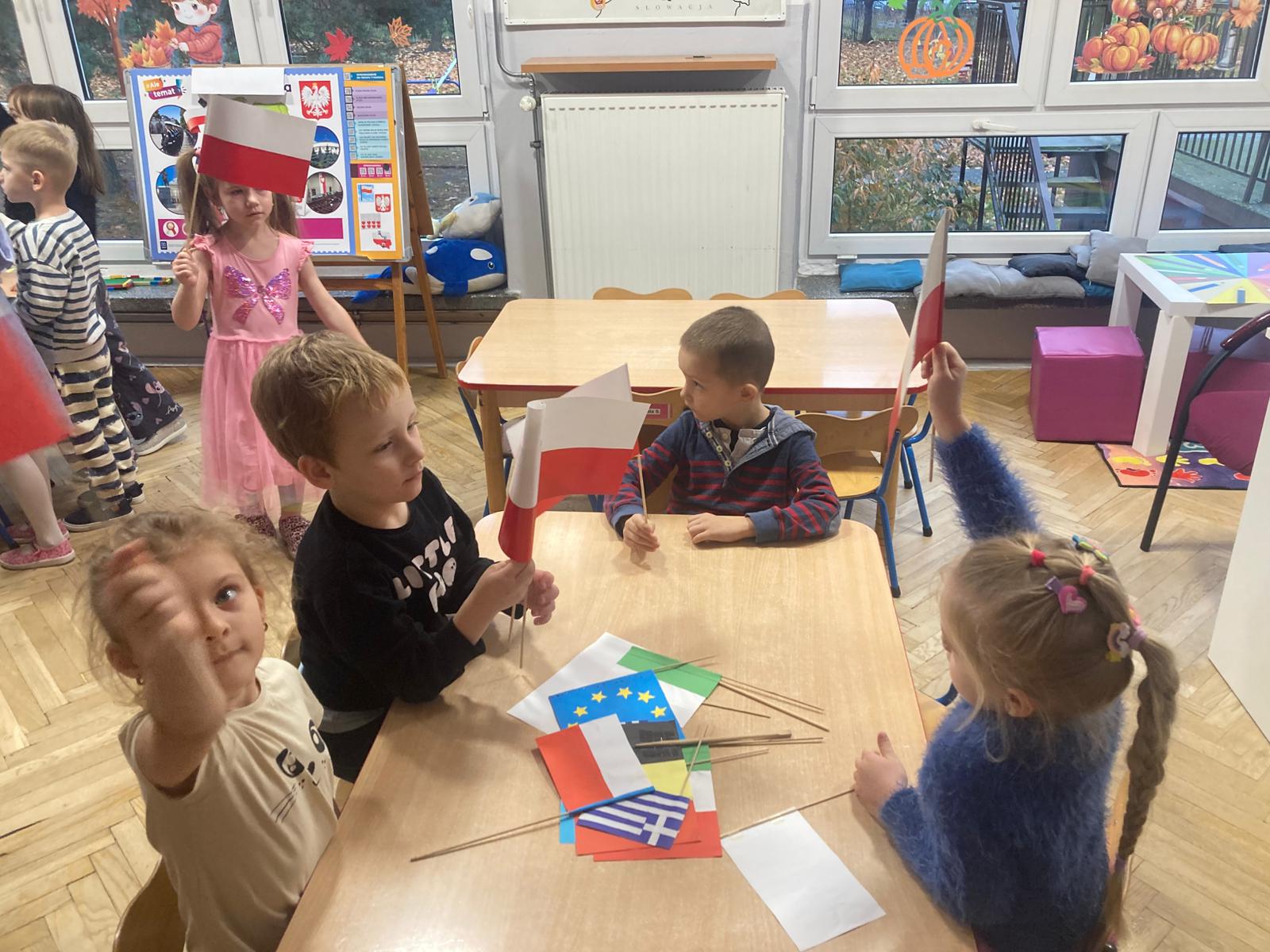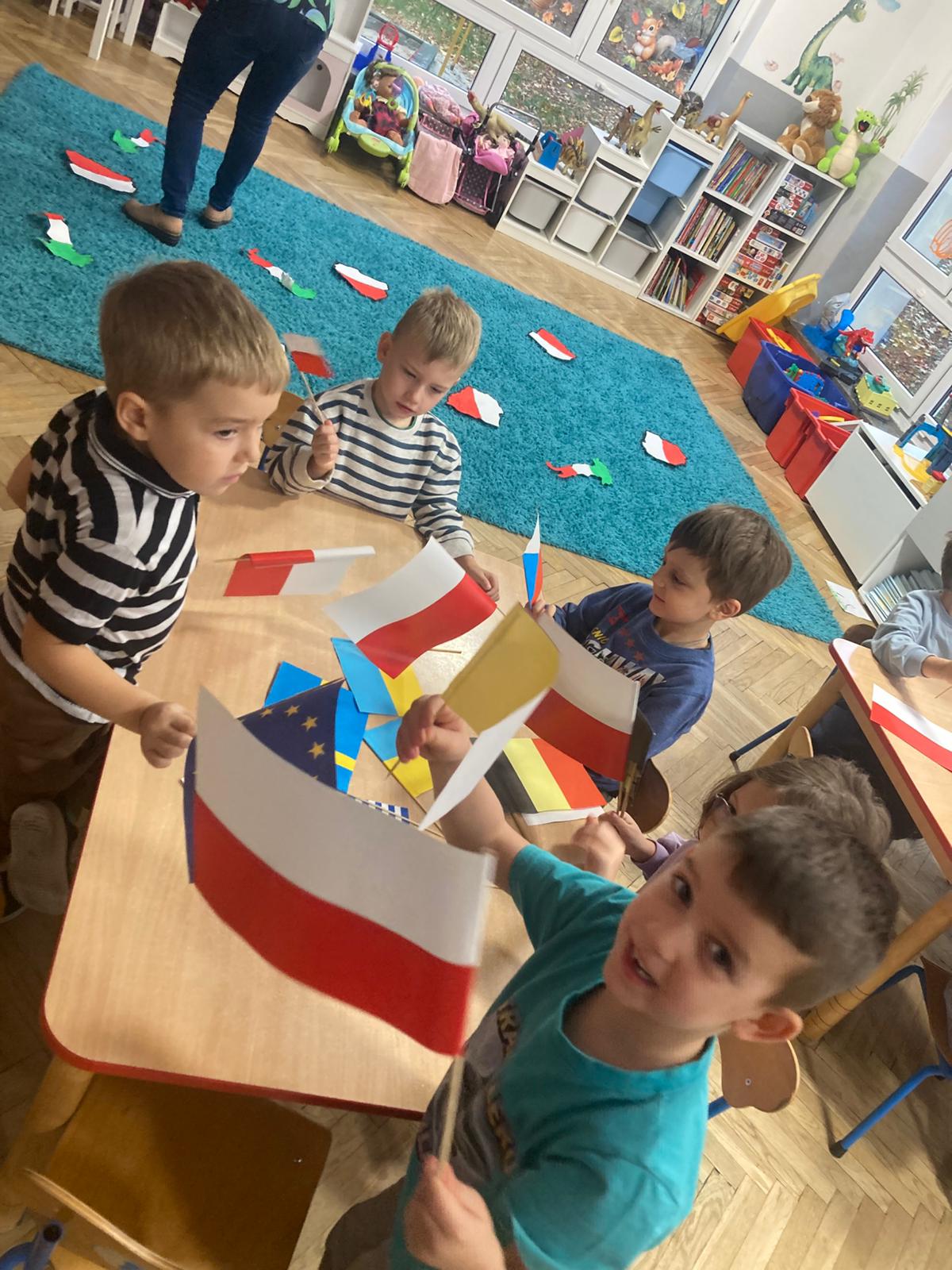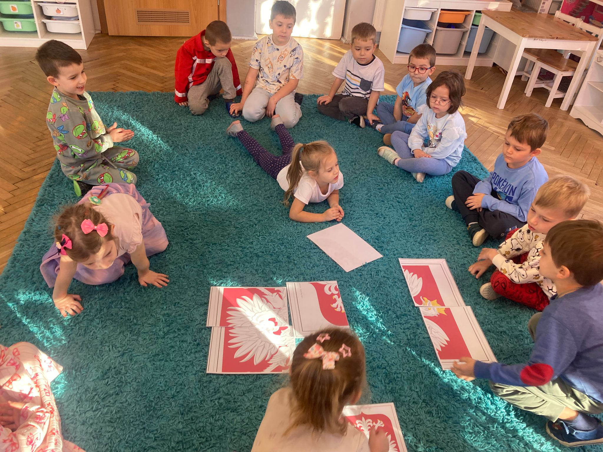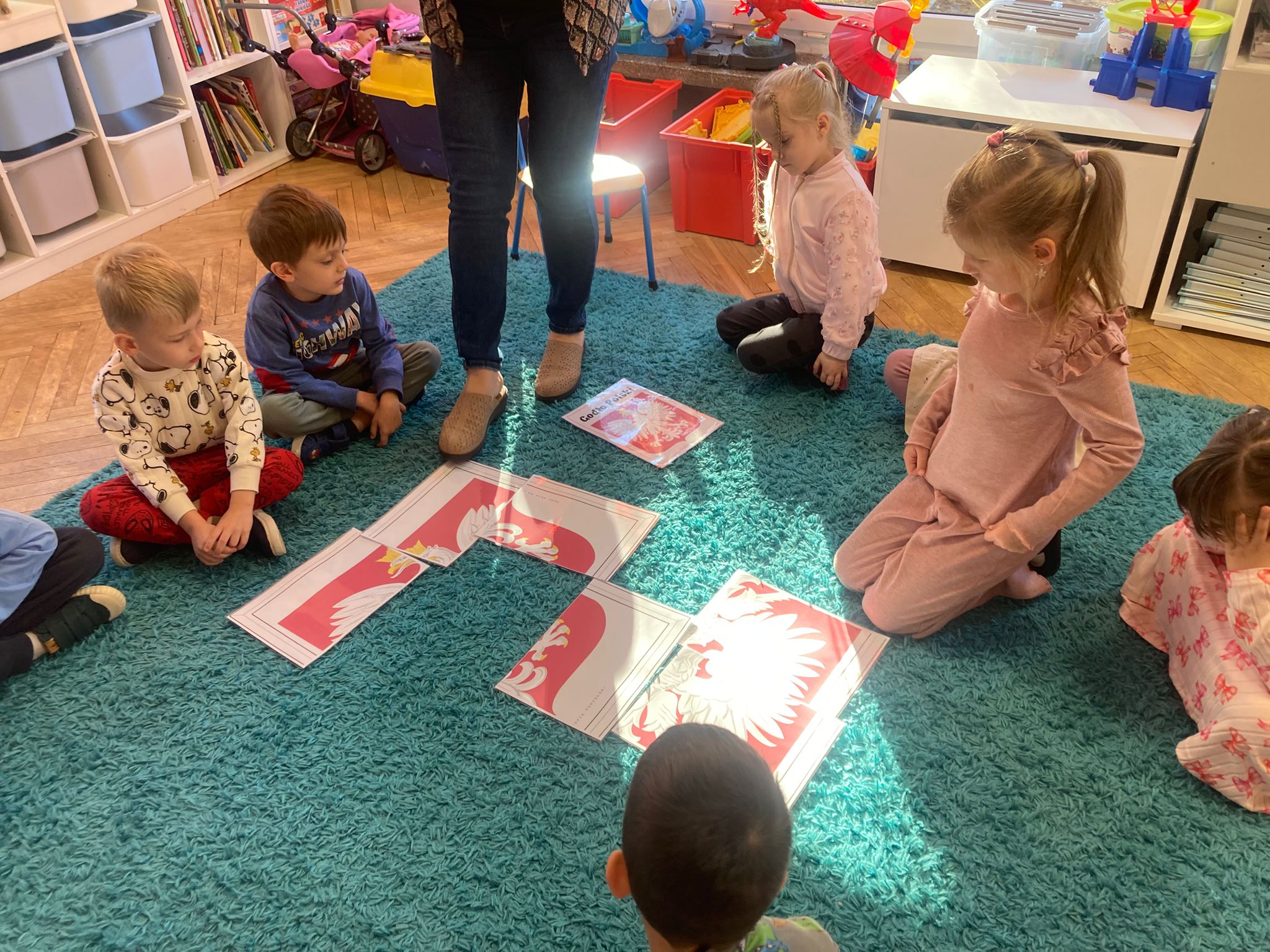 11 Listopad- Dzień Niepodległości Kświęto szczególne dla każdego Polaka.Od najmłodszych lat staramy sìę wpoic dzieciom poczucie przynależności narodowej i patriotyzmu.W minionym tygodniu zorganizowaliśmy zajecia edukacyjne pod hasłem:"Kocham Cię Polsko".Dzieci utrwaliły sobie wiadomości o Polsce: godło,kolory flagi,hymn narodowy a także mapę naszego kraju.Wśród flag innych narodów rozpoznawały flagę i mapę swojego kraju.Z części układały godło i malowały farbą flagę. Przedszkolaki nauczyły wzruszającej piosenki o Polsce a łza w oku się pojawiła gdy wszyscy wspólnie z przedszkolakami z innych grup zaśpiewaliśmy hymn Polski by uczcić ten ważny dzień. Oto mali patrioci z naszego przedszkola !
