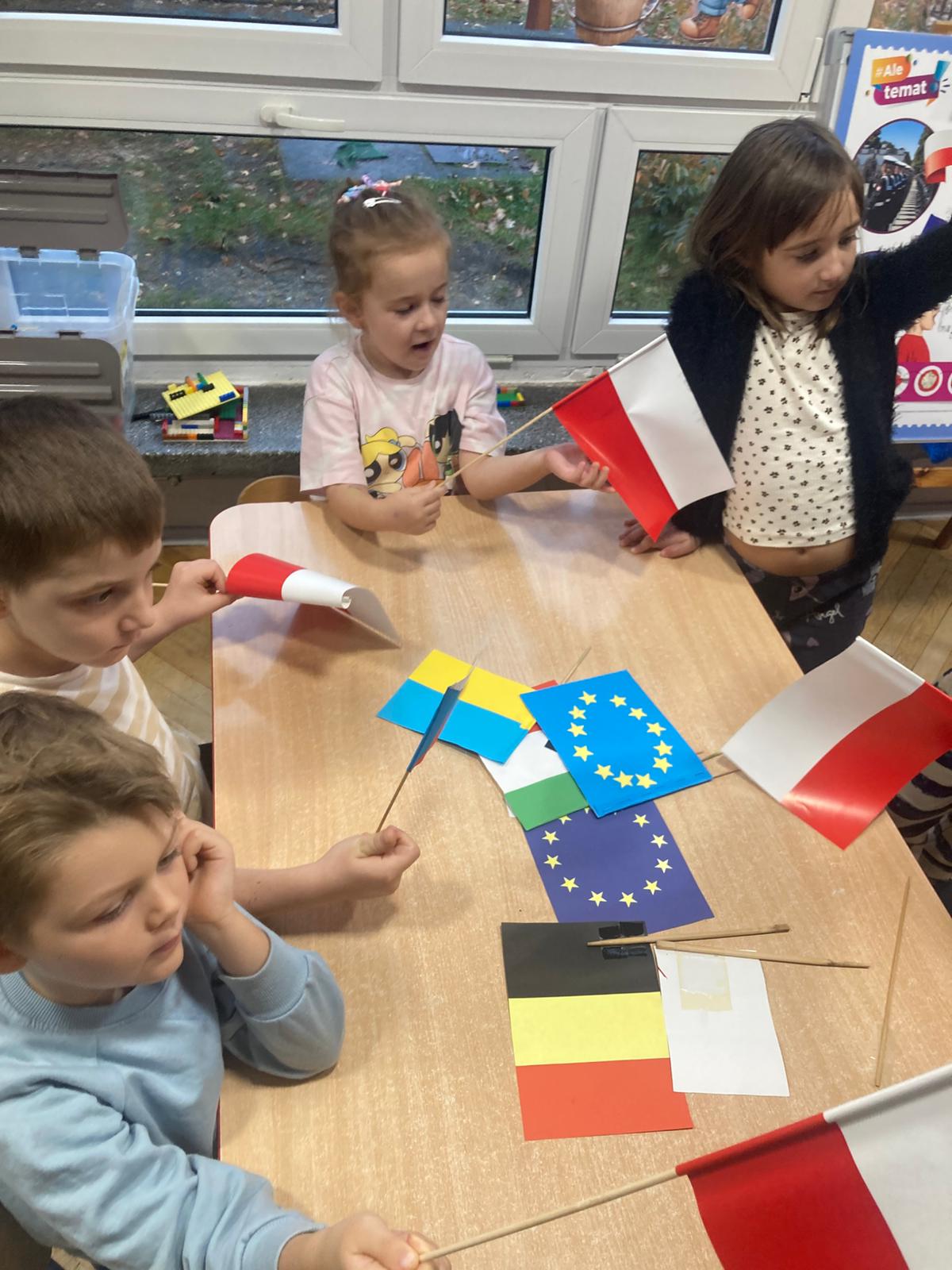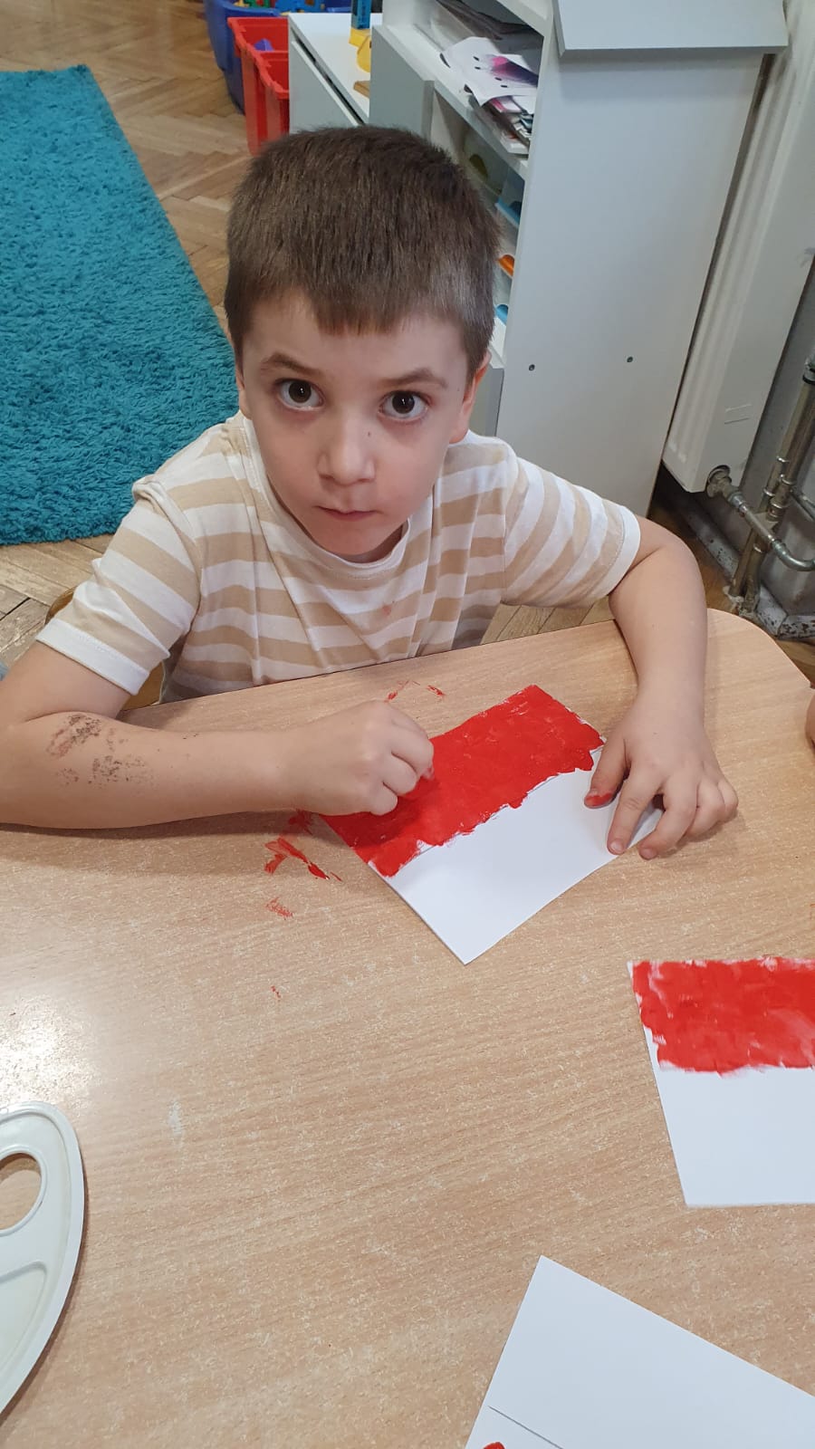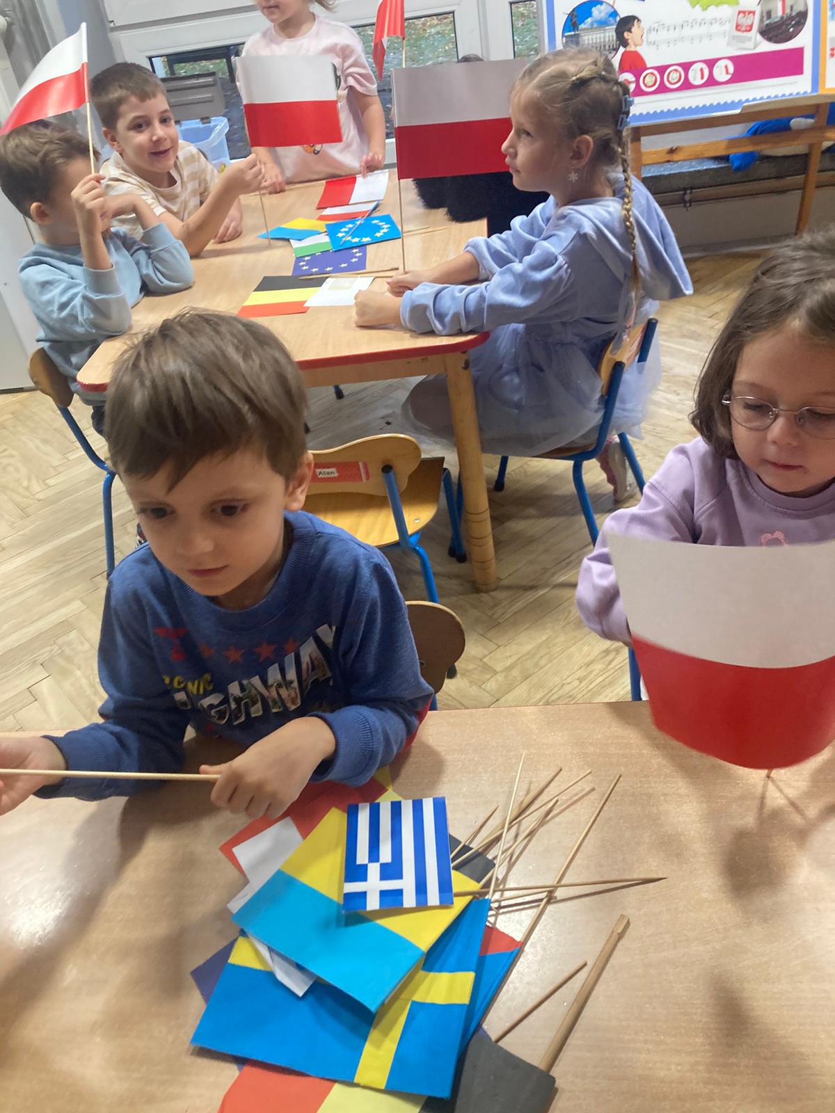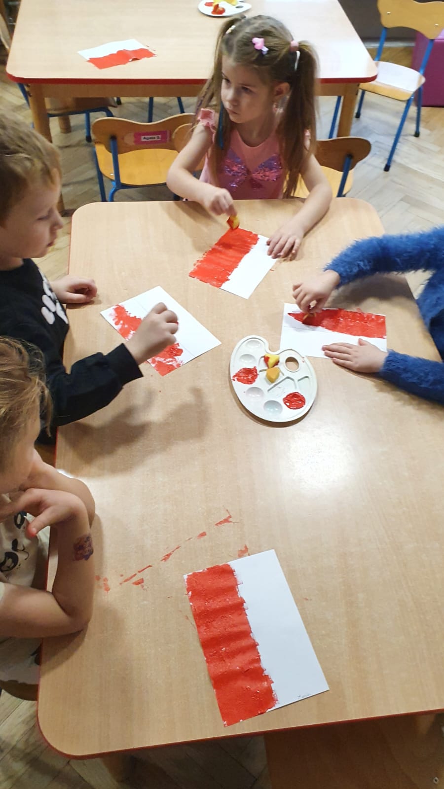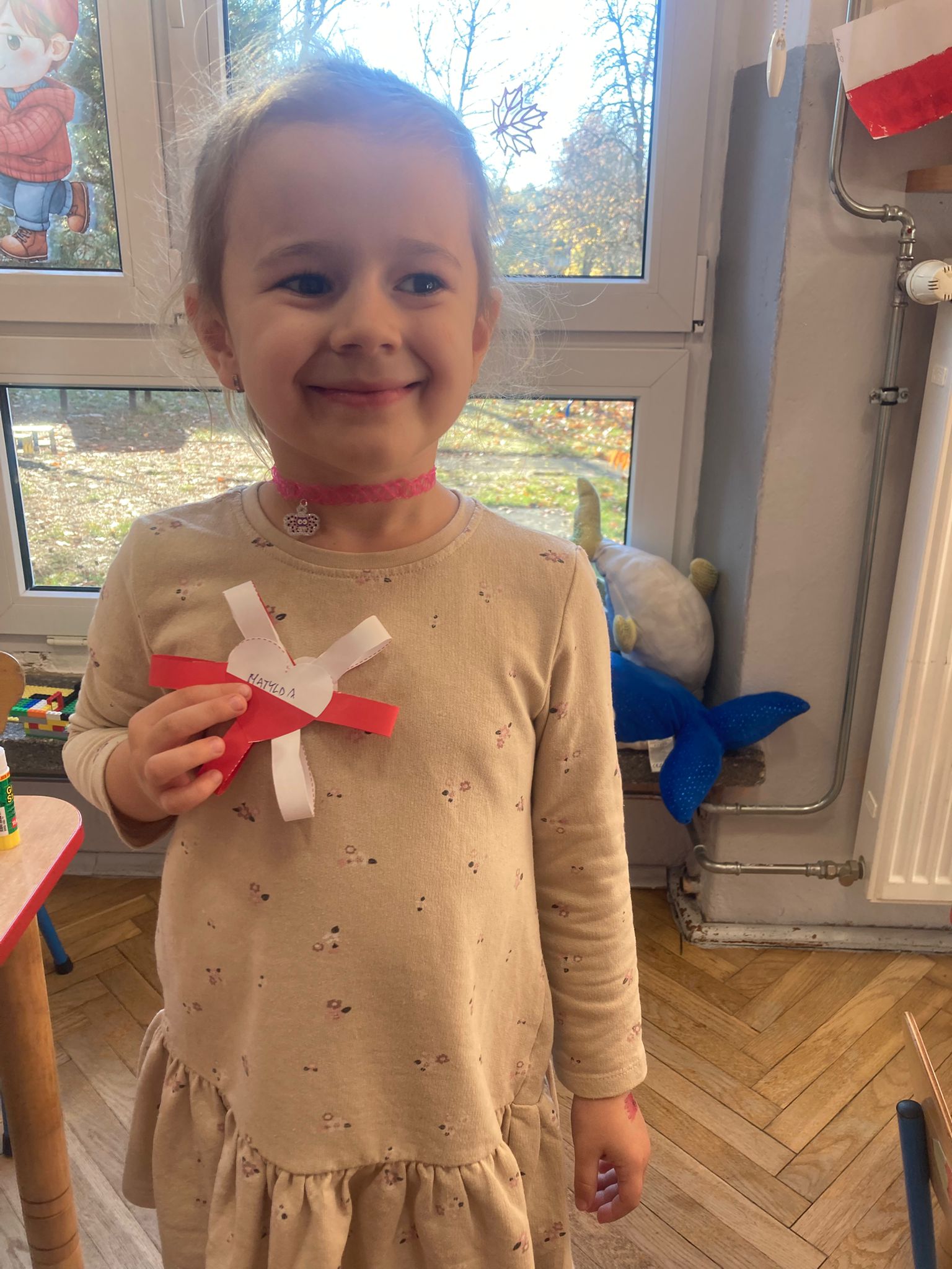 11 Listopad- Dzień Niepodległości Kświęto szczególne dla każdego Polaka.Od najmłodszych lat staramy sìę wpoic dzieciom poczucie przynależności narodowej i patriotyzmu.W minionym tygodniu zorganizowaliśmy zajecia edukacyjne pod hasłem:"Kocham Cię Polsko".Dzieci utrwaliły sobie wiadomości o Polsce: godło,kolory flagi,hymn narodowy a także mapę naszego kraju.Wśród flag innych narodów rozpoznawały flagę i mapę swojego kraju.Z części układały godło i malowały farbą flagę. Przedszkolaki nauczyły wzruszającej piosenki o Polsce a łza w oku się pojawiła gdy wszyscy wspólnie z przedszkolakami z innych grup zaśpiewaliśmy hymn Polski by uczcić ten ważny dzień. Oto mali patrioci z naszego przedszkola !
