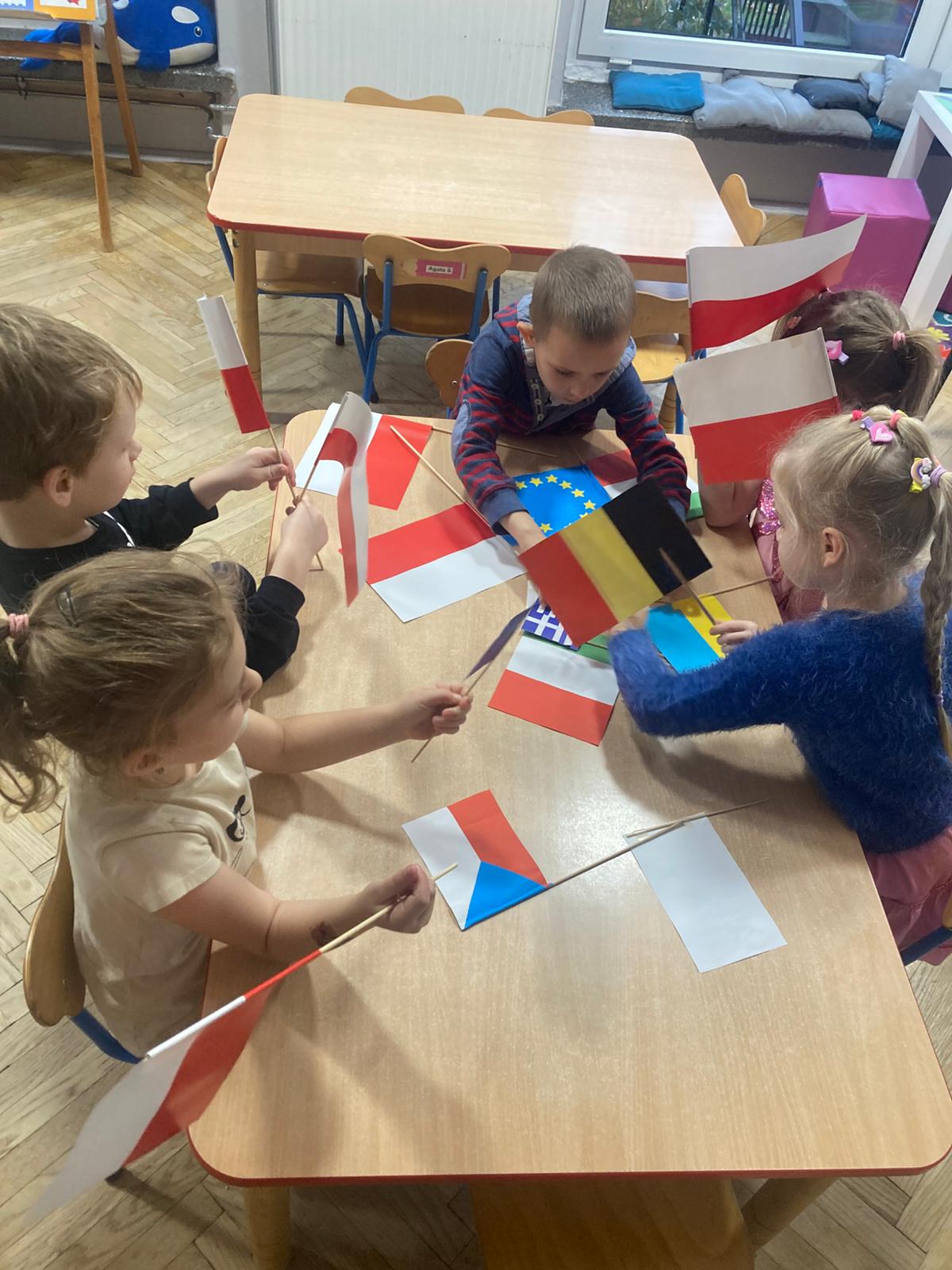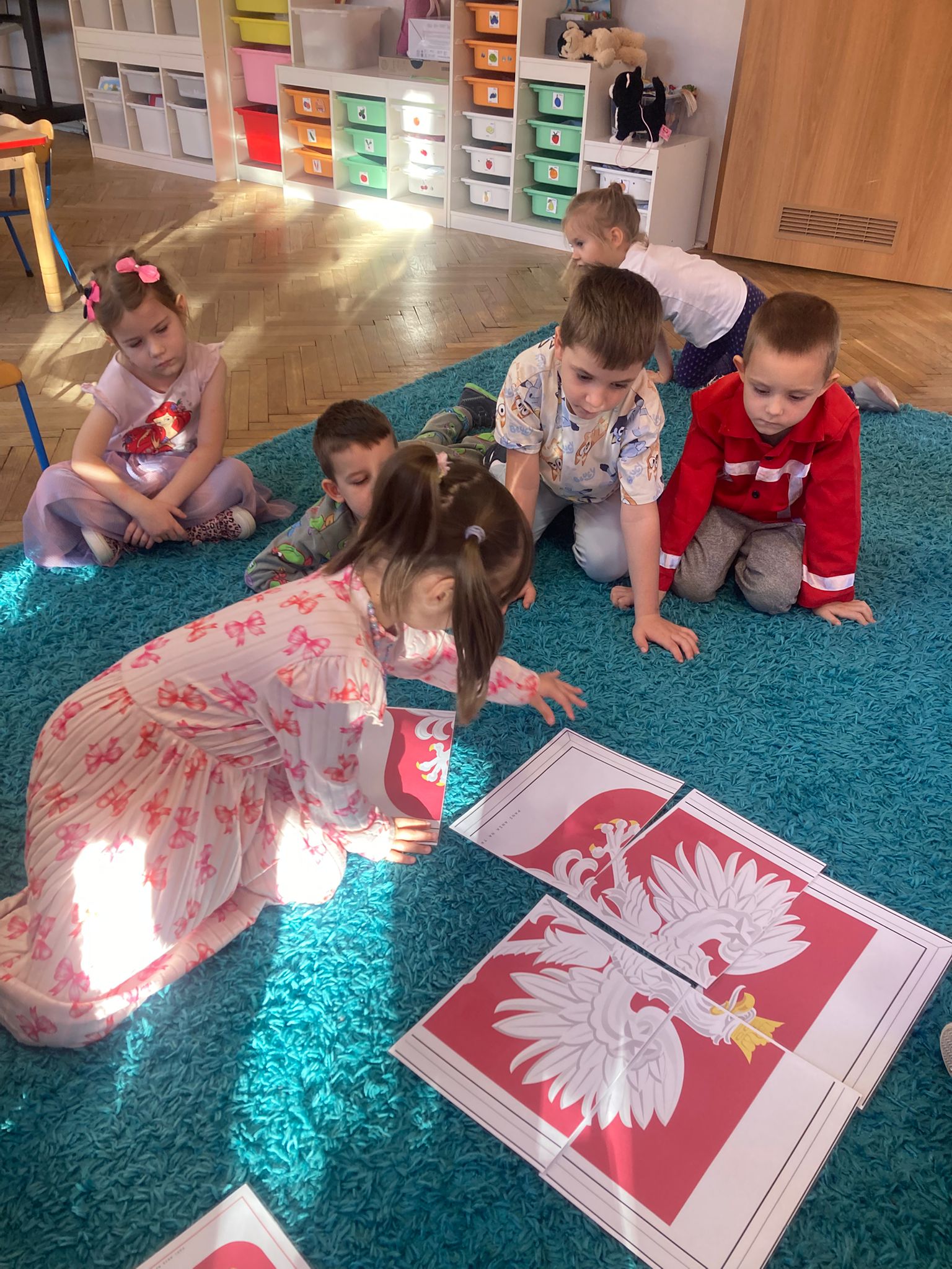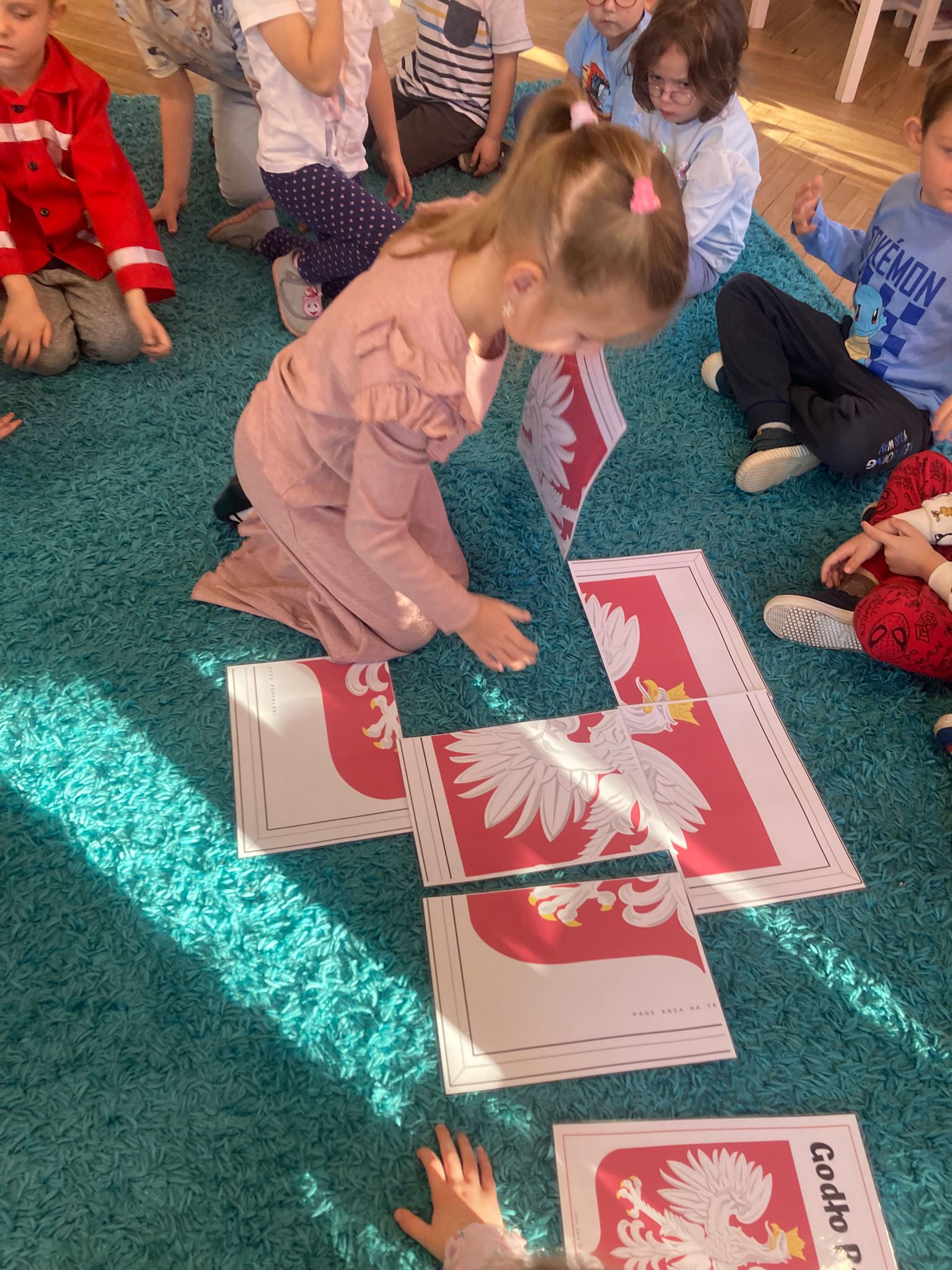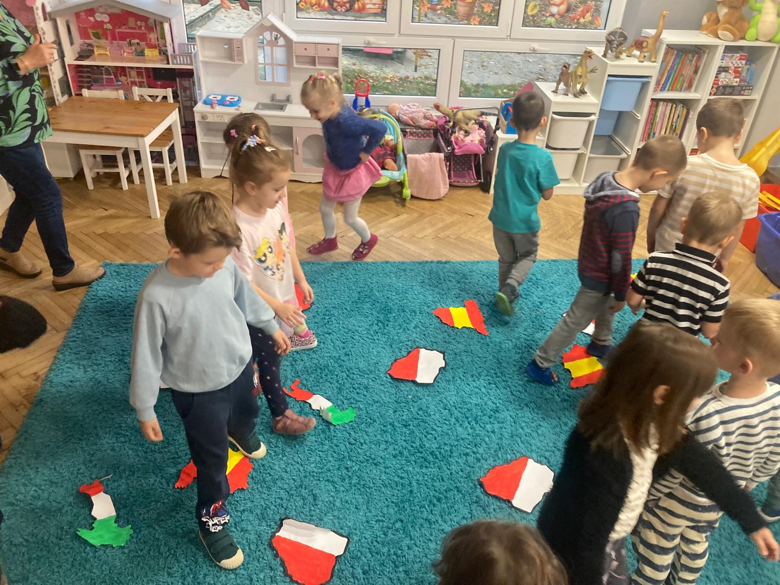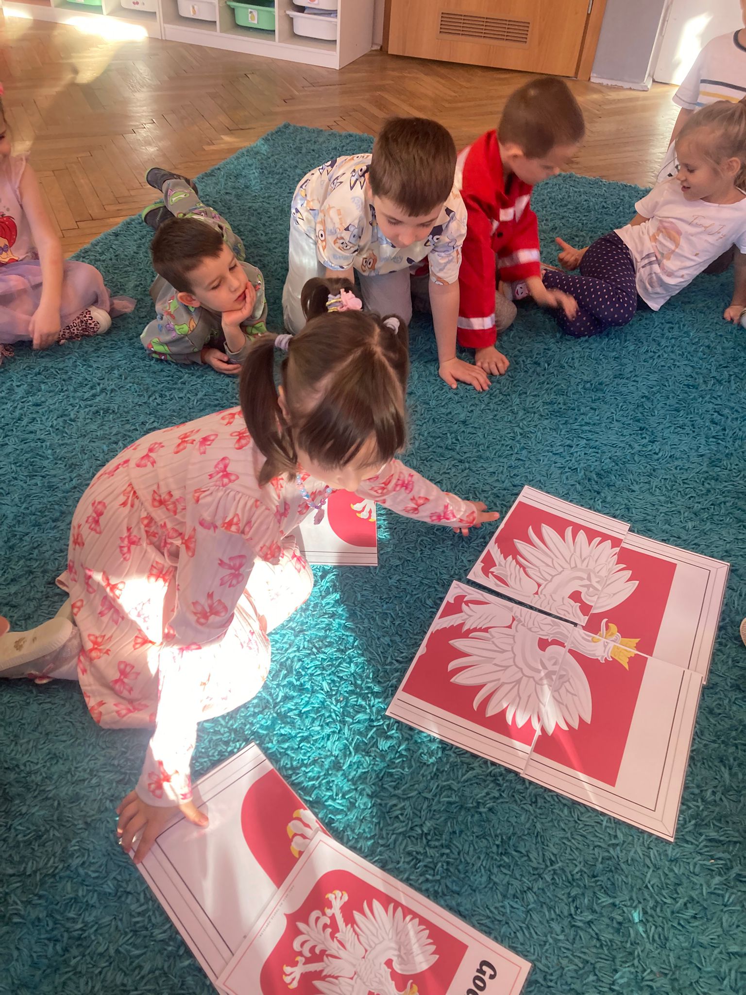 11 Listopad- Dzień Niepodległości Kświęto szczególne dla każdego Polaka.Od najmłodszych lat staramy sìę wpoic dzieciom poczucie przynależności narodowej i patriotyzmu.W minionym tygodniu zorganizowaliśmy zajecia edukacyjne pod hasłem:"Kocham Cię Polsko".Dzieci utrwaliły sobie wiadomości o Polsce: godło,kolory flagi,hymn narodowy a także mapę naszego kraju.Wśród flag innych narodów rozpoznawały flagę i mapę swojego kraju.Z części układały godło i malowały farbą flagę. Przedszkolaki nauczyły wzruszającej piosenki o Polsce a łza w oku się pojawiła gdy wszyscy wspólnie z przedszkolakami z innych grup zaśpiewaliśmy hymn Polski by uczcić ten ważny dzień. Oto mali patrioci z naszego przedszkola !
