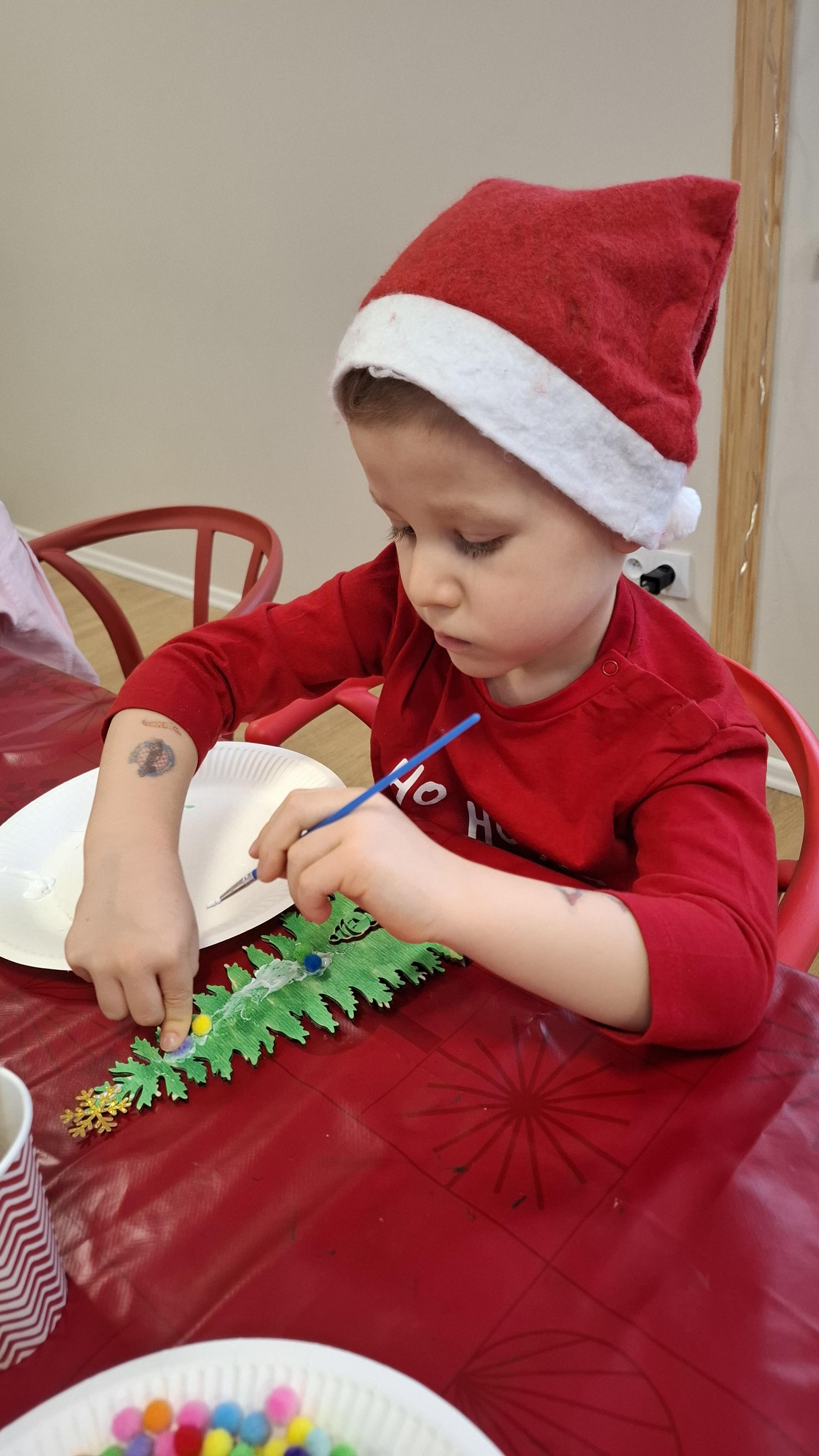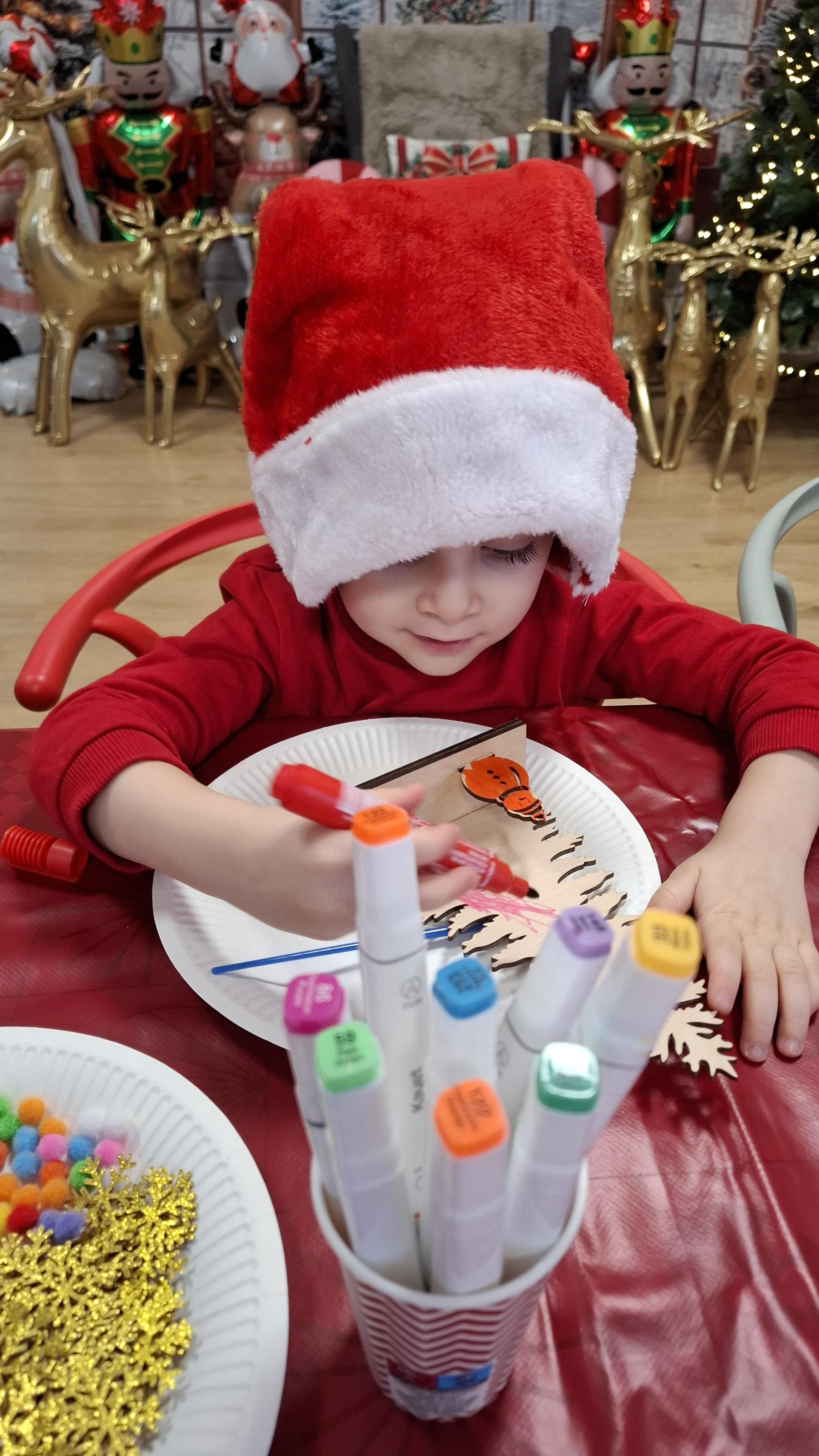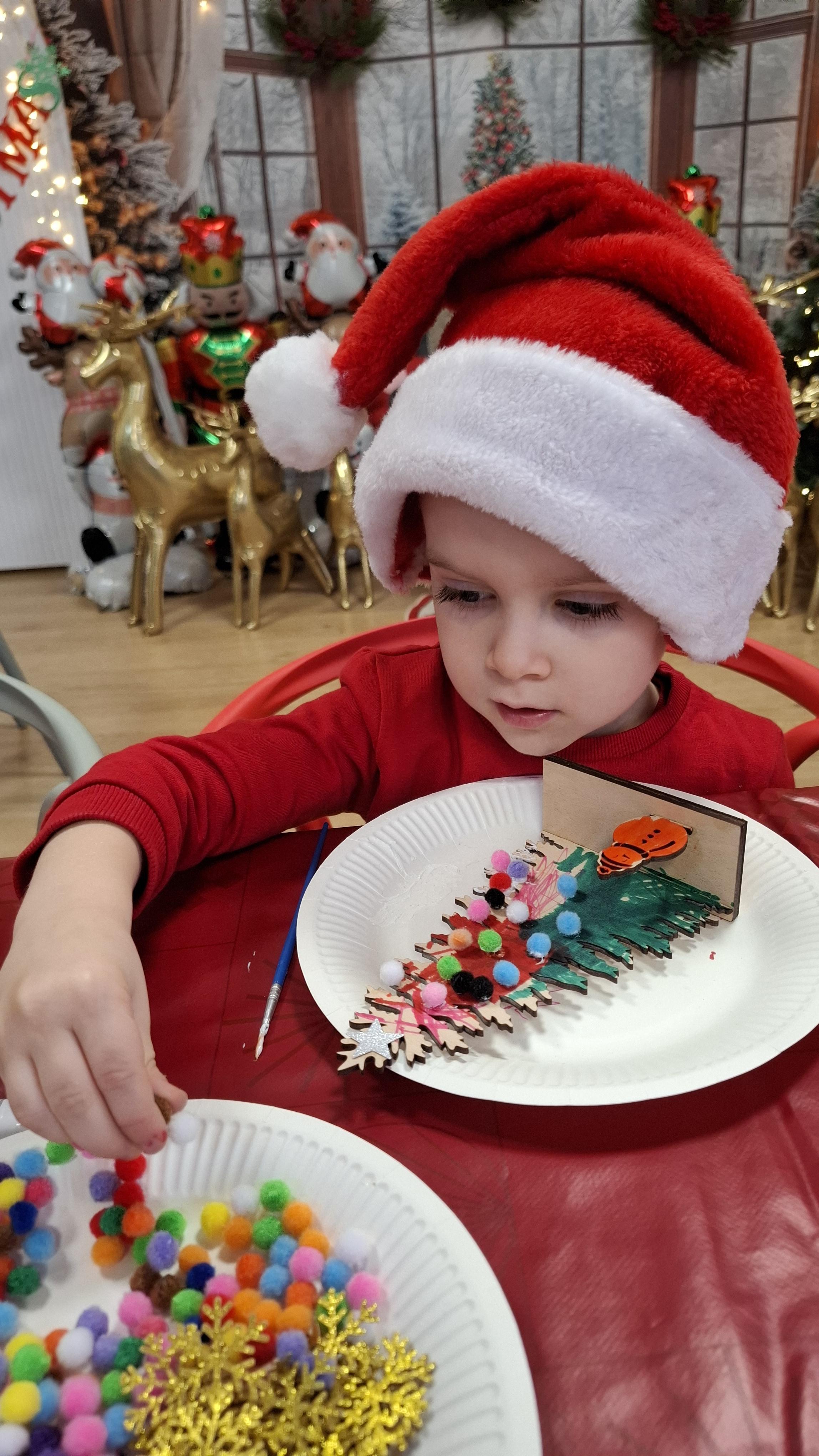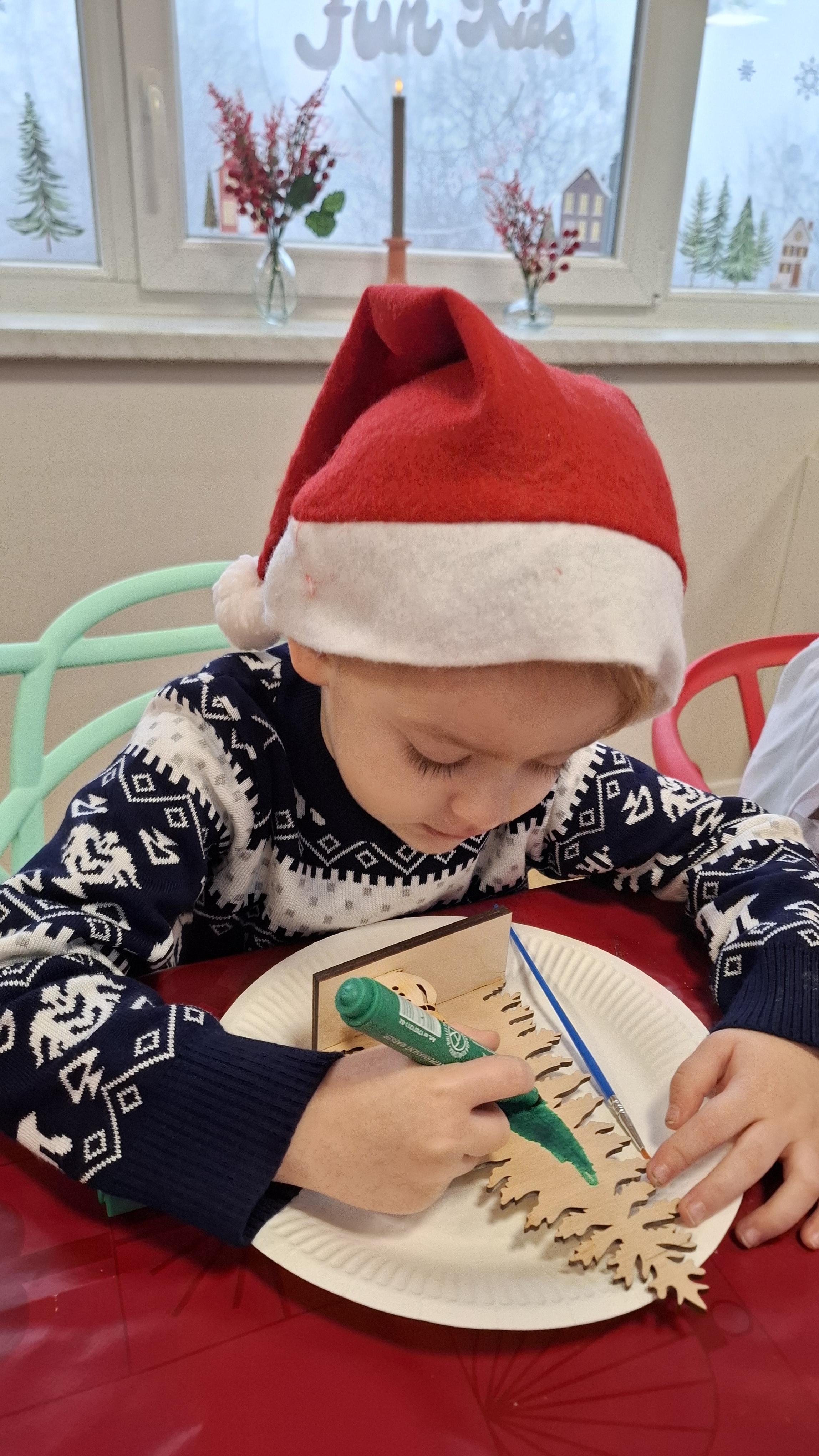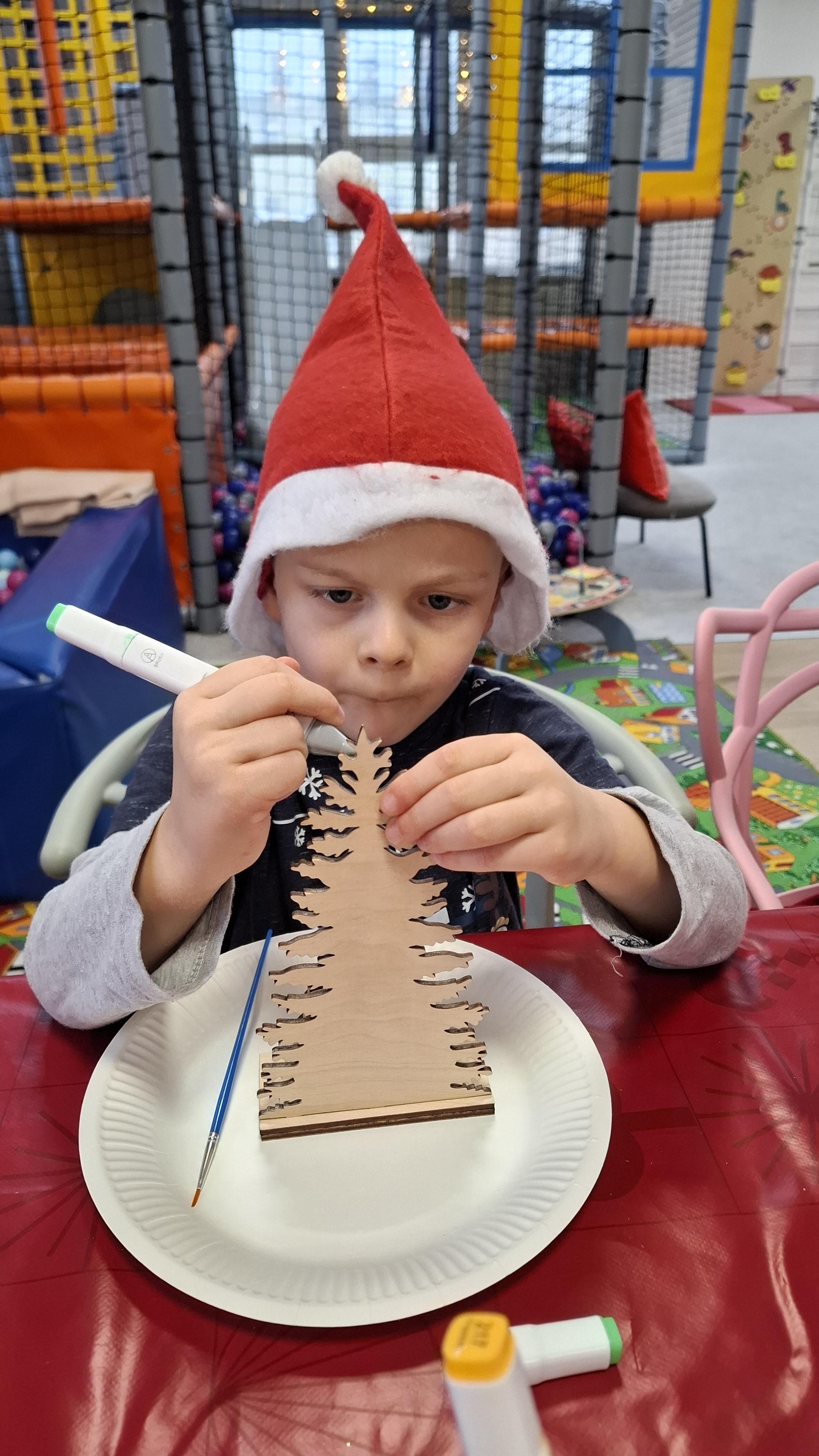 wyjazd na warsztaty bożonarodzeniowe do Fun Kids był dla dzieci wyjątkowym przeżyciem, pełnym radości i świątecznej atmosfery. Podczas zajęć uczestnicy mieli okazję własnoręcznie dekorować drewniane choinki, wykazując się pomysłowością, cierpliwością i wyjątkową kreatywnością. Barwne ozdoby, brokat oraz świąteczne akcenty sprawiły, że każda choinka nabrała indywidualnego charakteru i stała się małym dziełem sztuki.