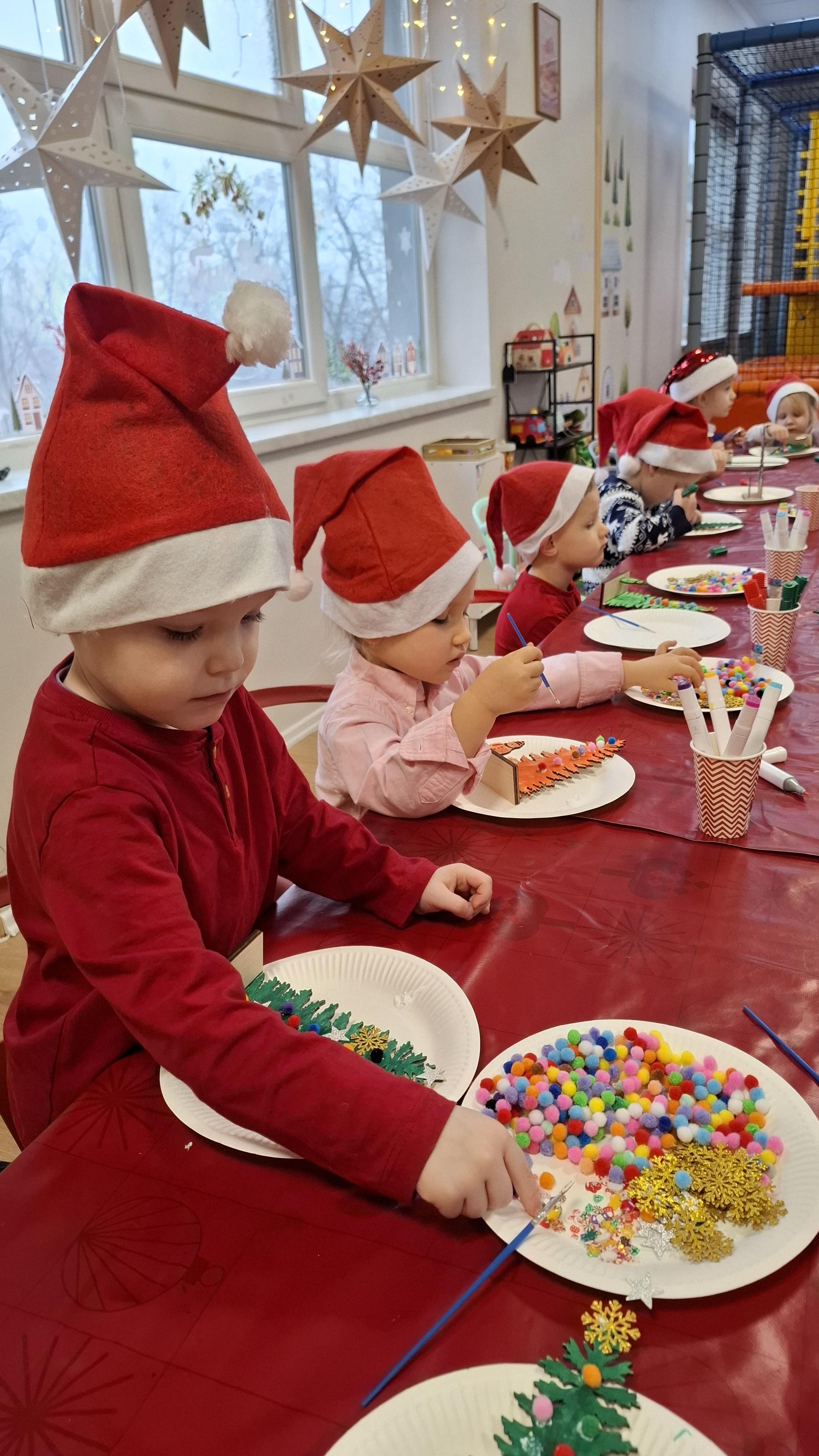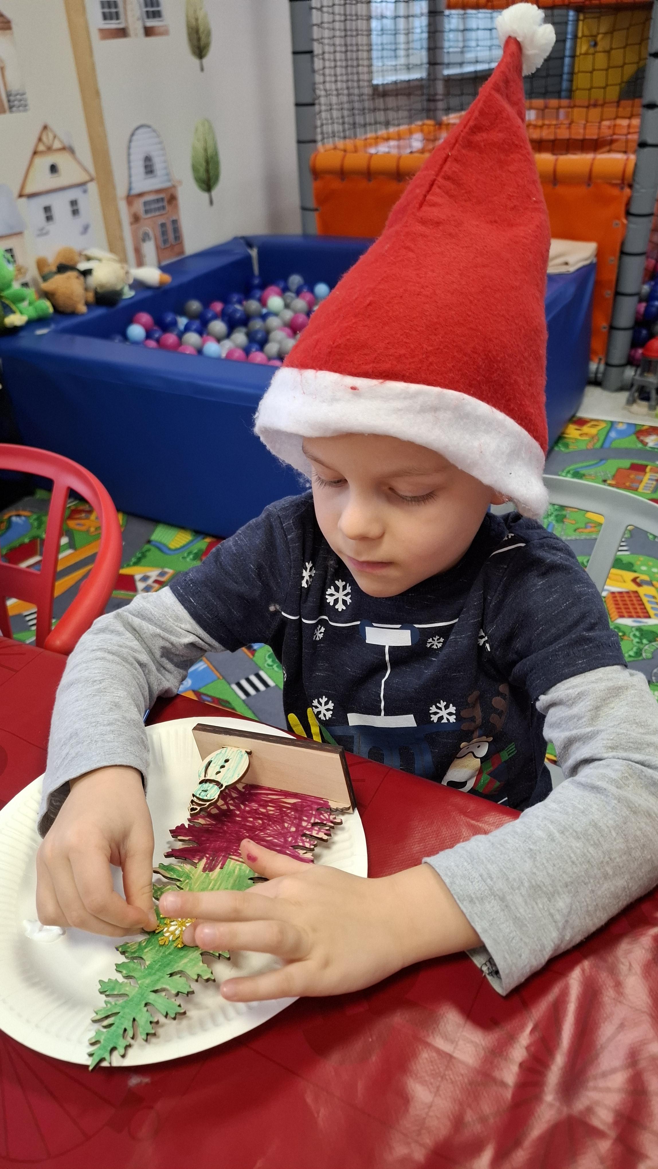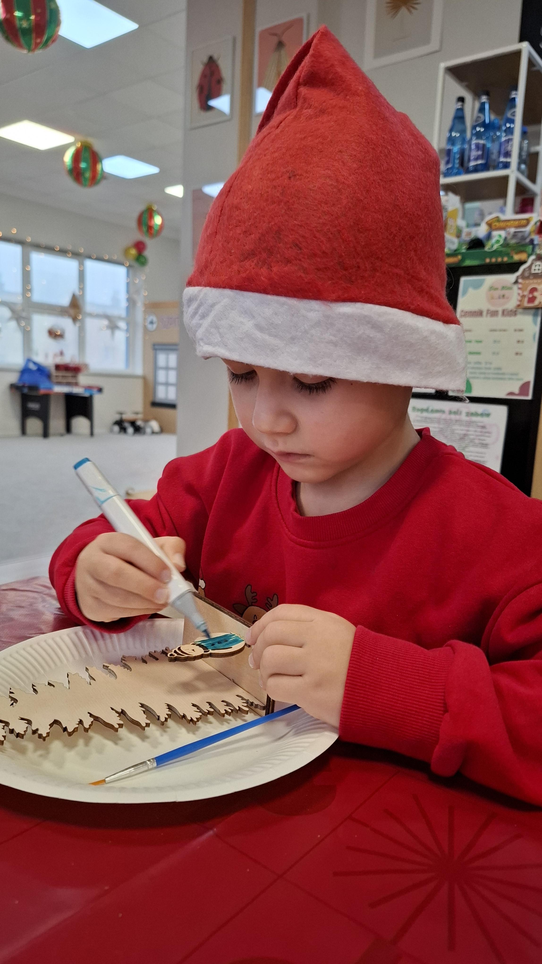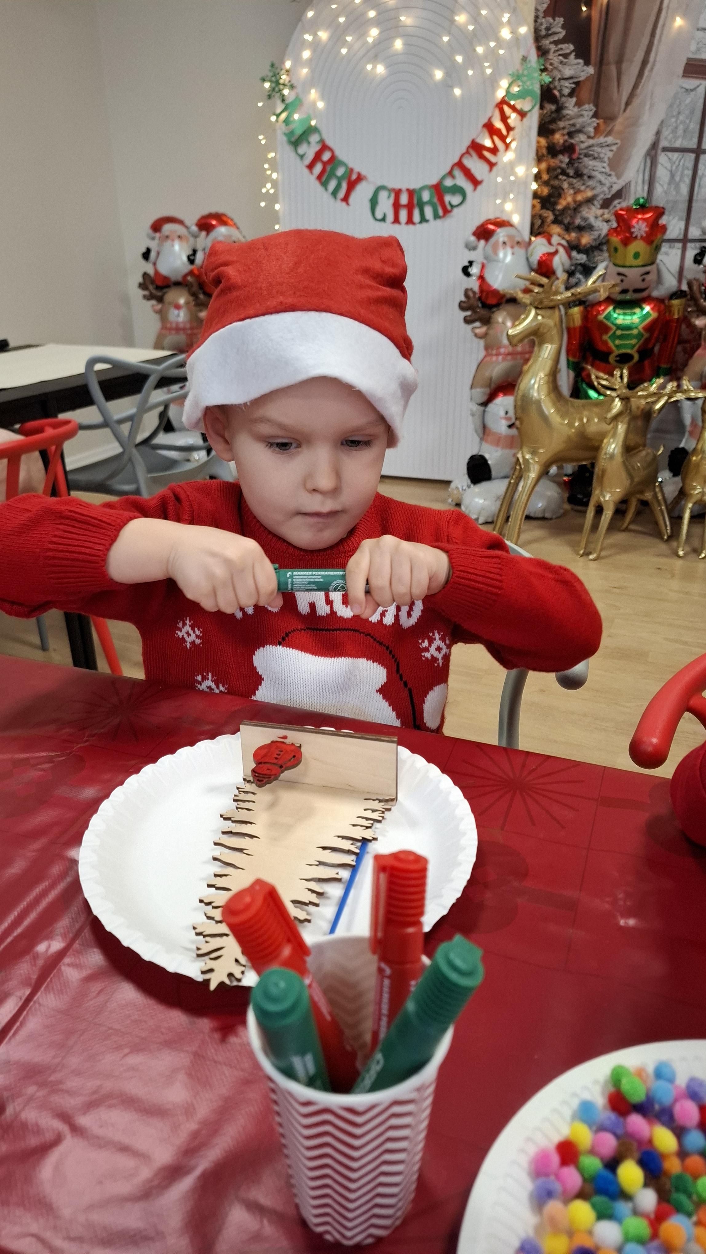 wyjazd na warsztaty bożonarodzeniowe do Fun Kids był dla dzieci wyjątkowym przeżyciem, pełnym radości i świątecznej atmosfery. Podczas zajęć uczestnicy mieli okazję własnoręcznie dekorować drewniane choinki, wykazując się pomysłowością, cierpliwością i wyjątkową kreatywnością. Barwne ozdoby, brokat oraz świąteczne akcenty sprawiły, że każda choinka nabrała indywidualnego charakteru i stała się małym dziełem sztuki.