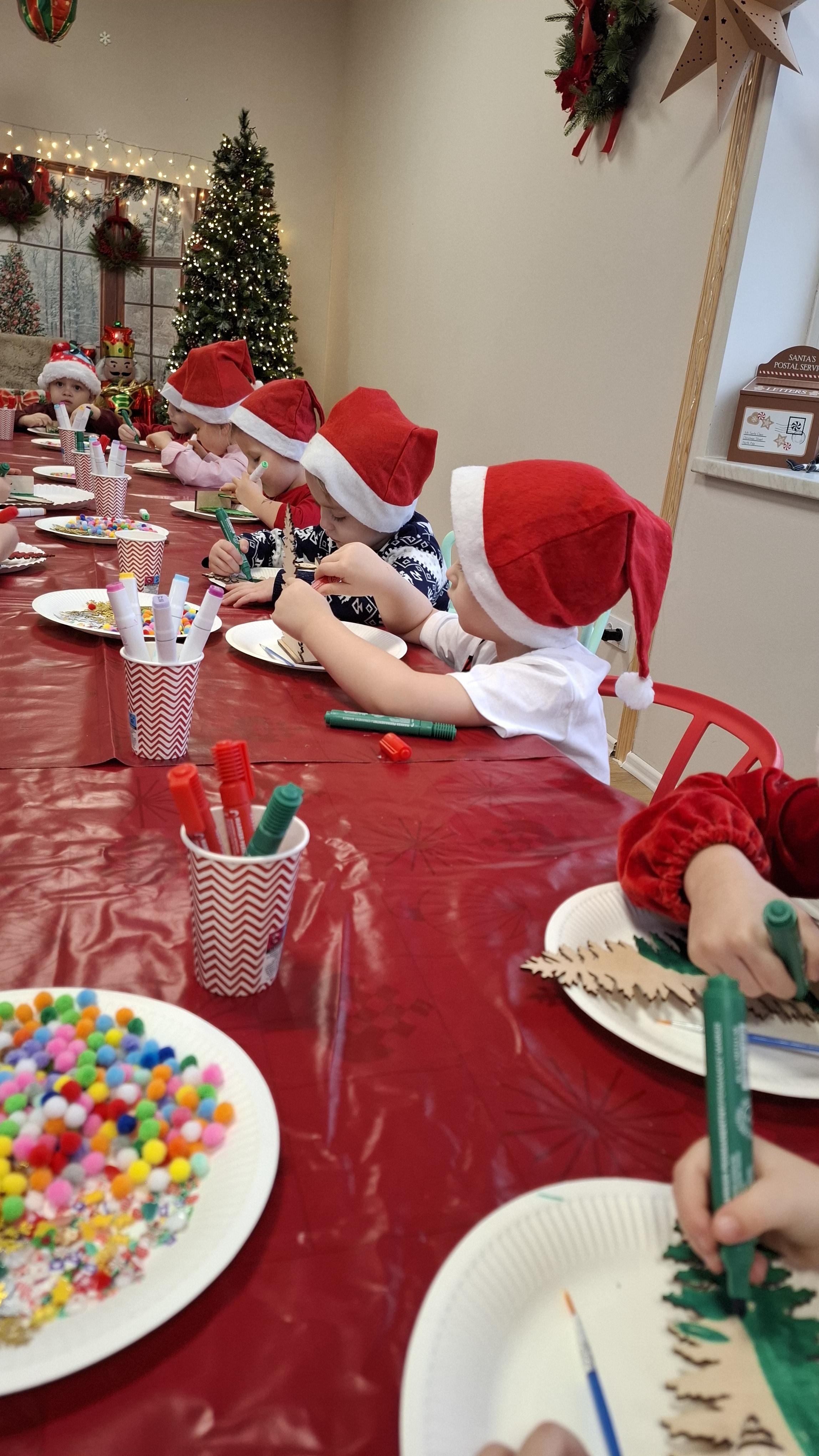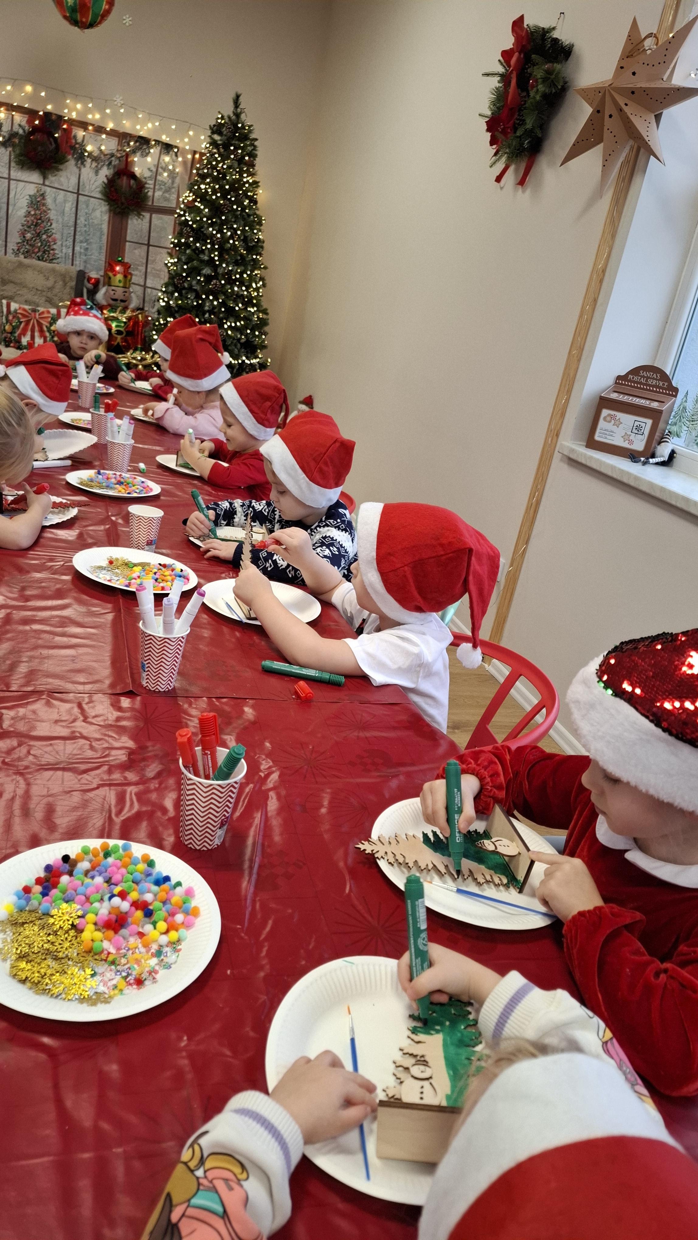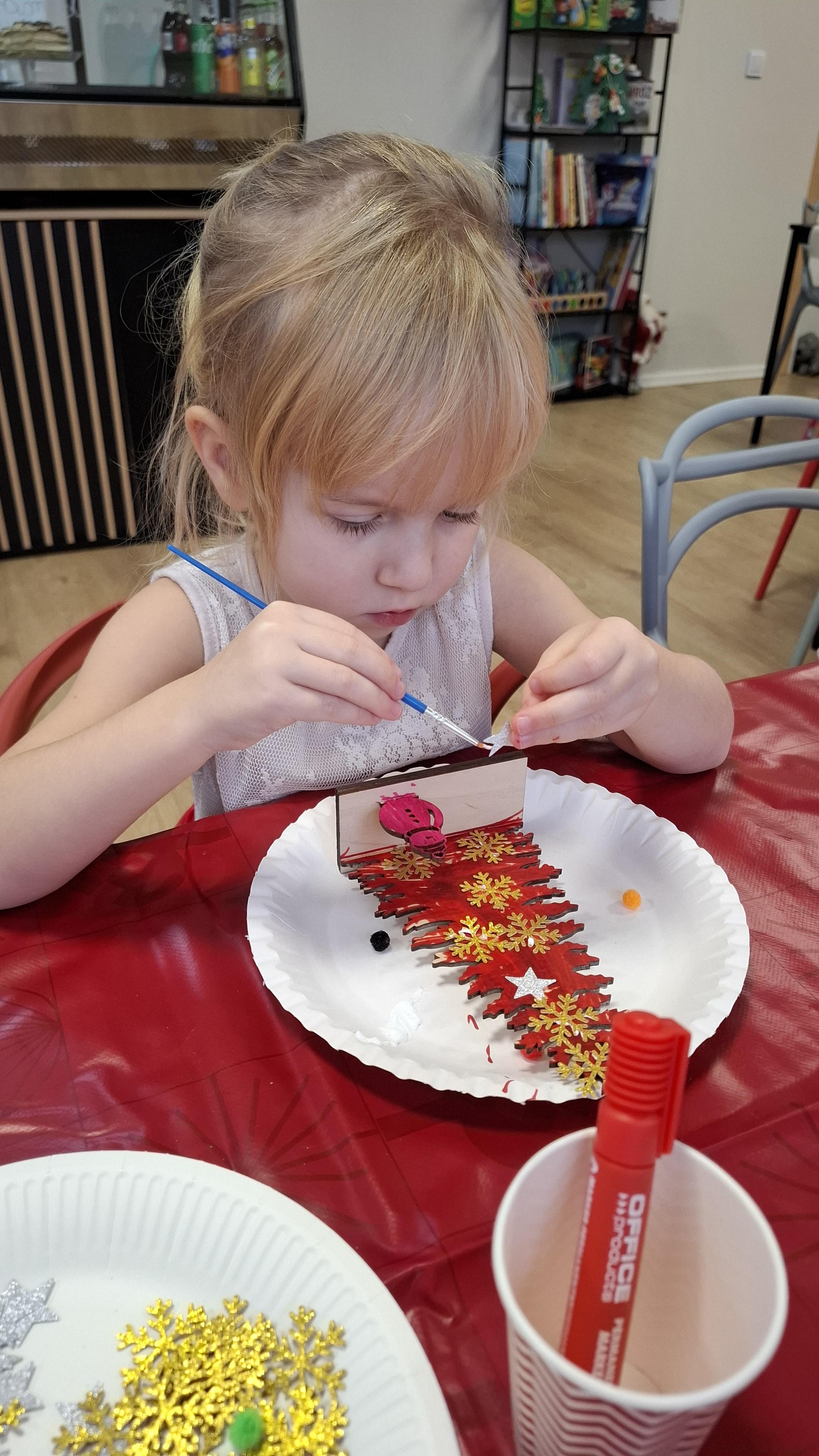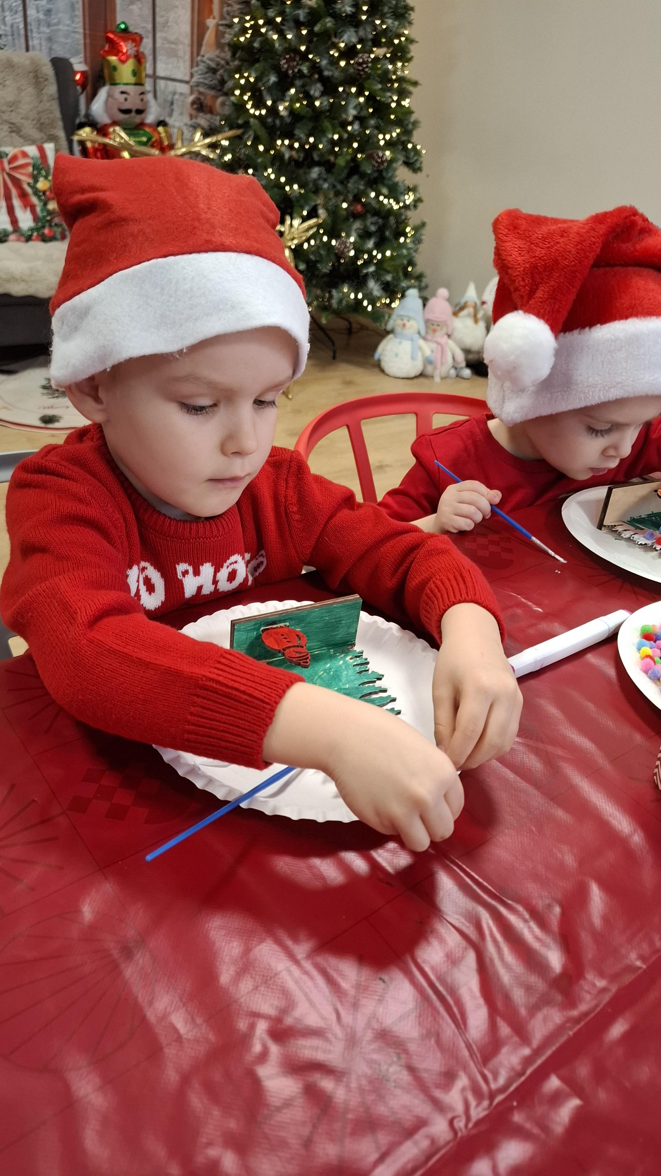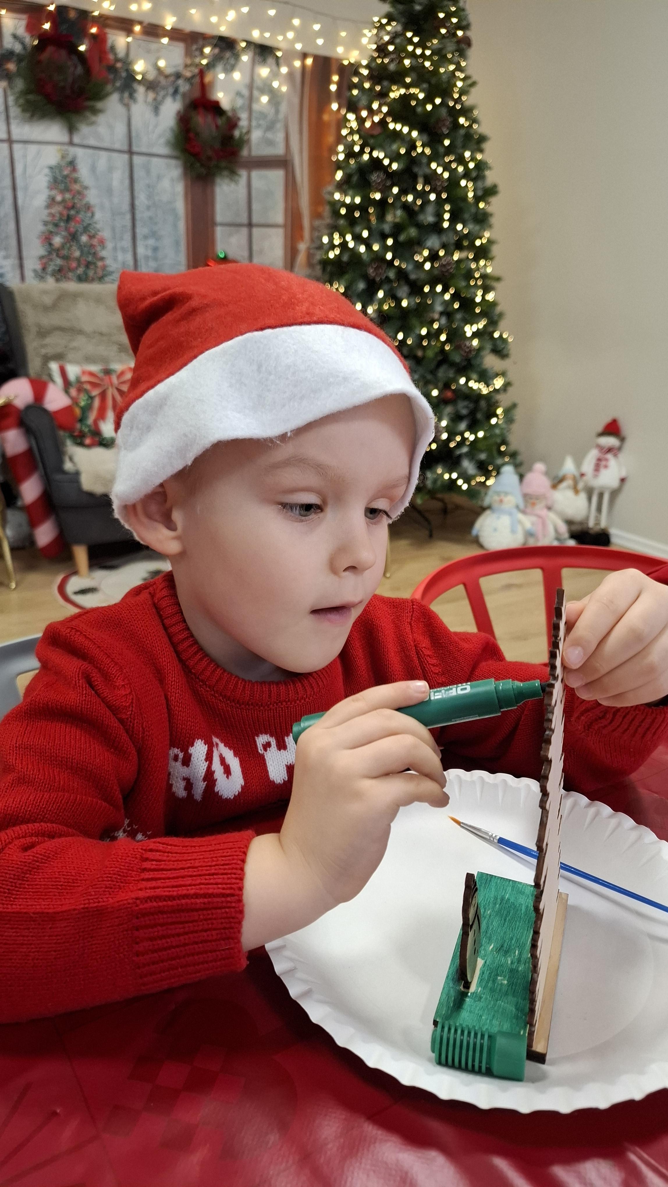 wyjazd na warsztaty bożonarodzeniowe do Fun Kids był dla dzieci wyjątkowym przeżyciem, pełnym radości i świątecznej atmosfery. Podczas zajęć uczestnicy mieli okazję własnoręcznie dekorować drewniane choinki, wykazując się pomysłowością, cierpliwością i wyjątkową kreatywnością. Barwne ozdoby, brokat oraz świąteczne akcenty sprawiły, że każda choinka nabrała indywidualnego charakteru i stała się małym dziełem sztuki.