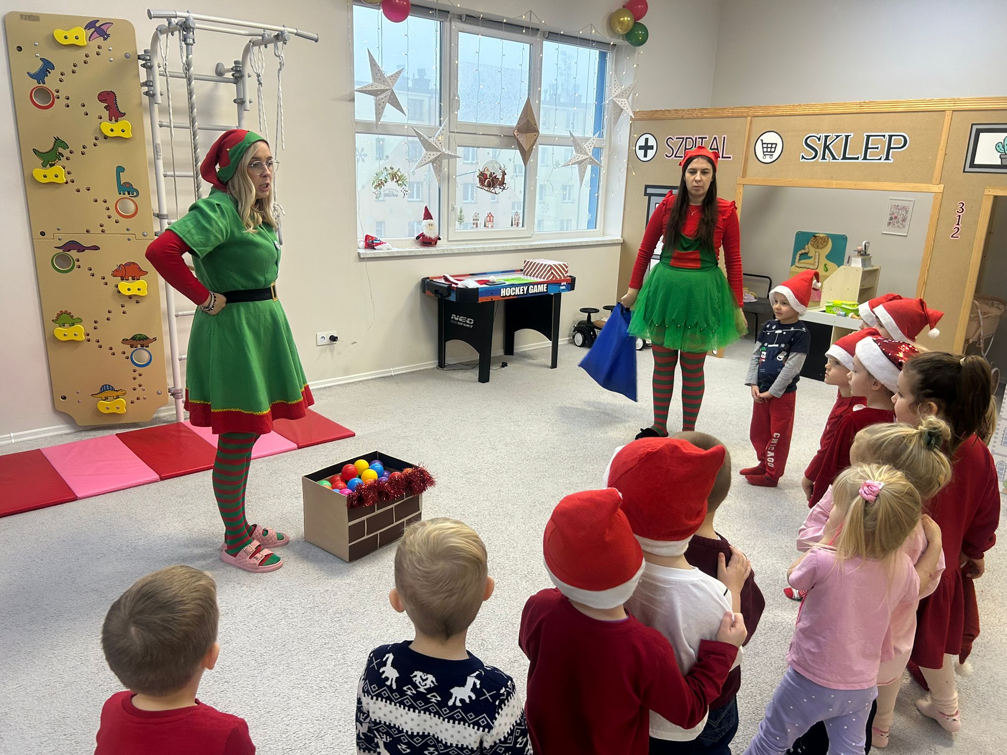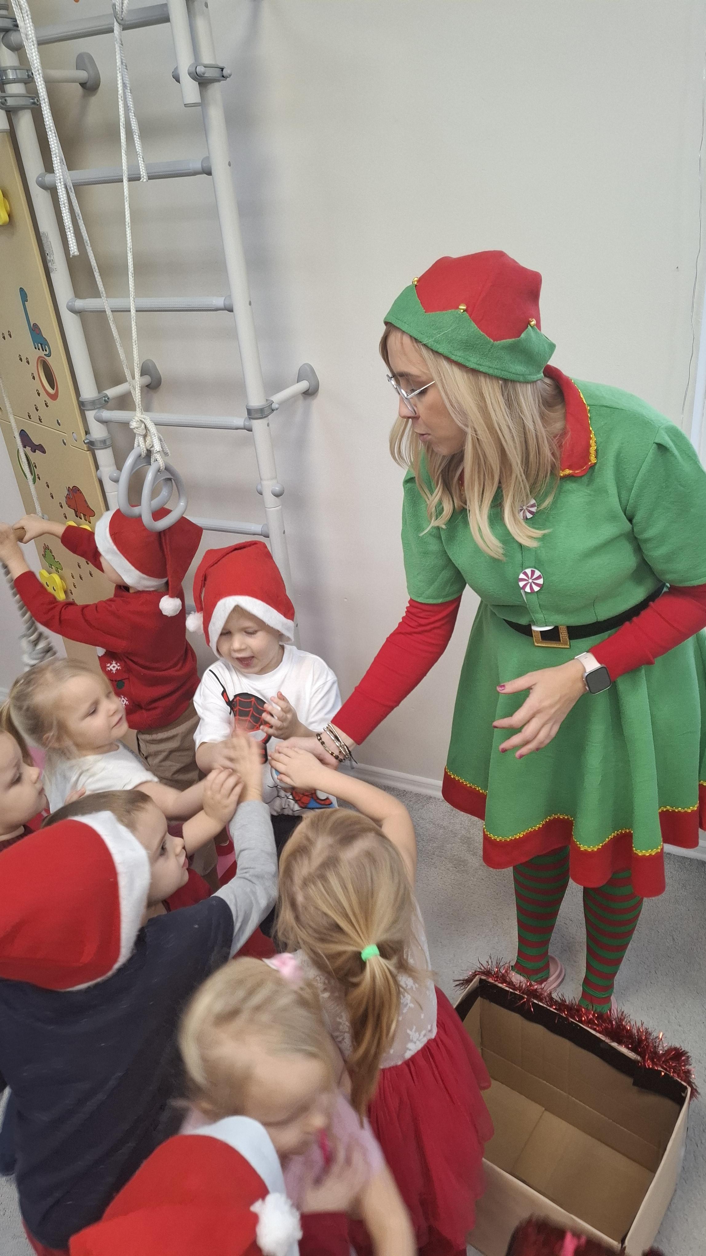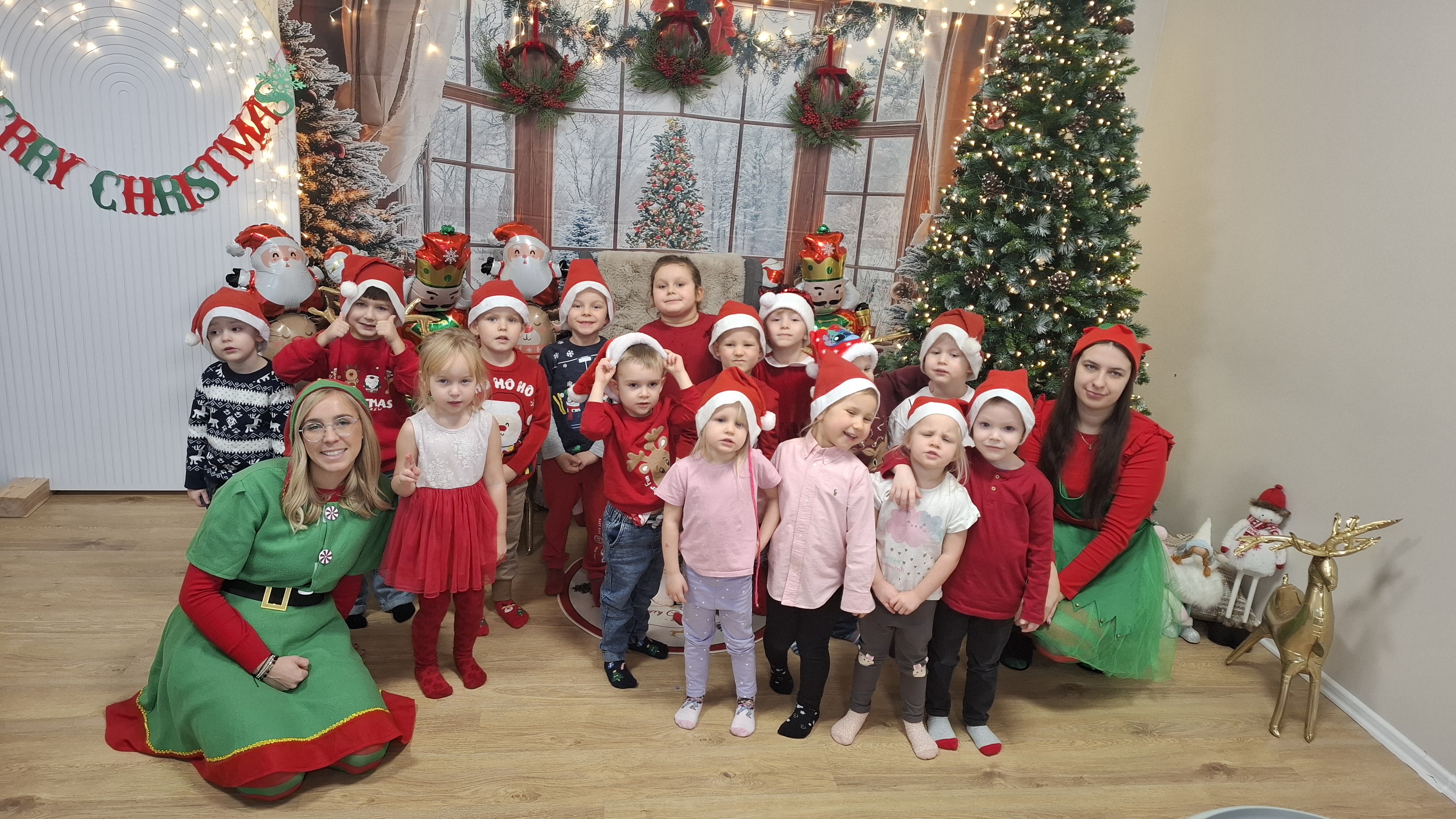 Serdecznie dziękujemy wspaniałym elfom, które z ogromną energią, uśmiechem i zaangażowaniem poprowadziły całe wydarzenie, tworząc magiczną atmosferę i wprowadzając dzieci w prawdziwy świąteczny nastrój.