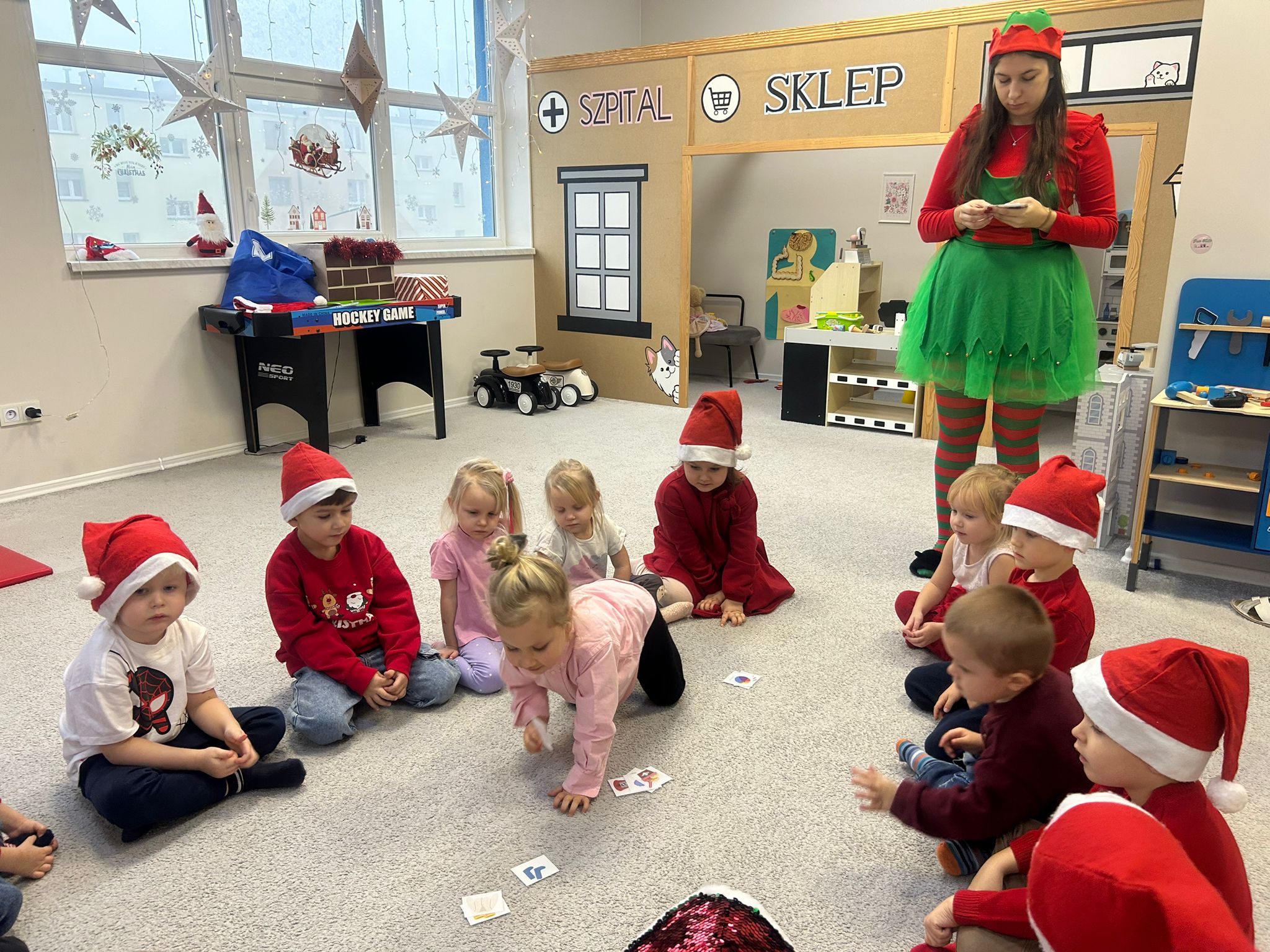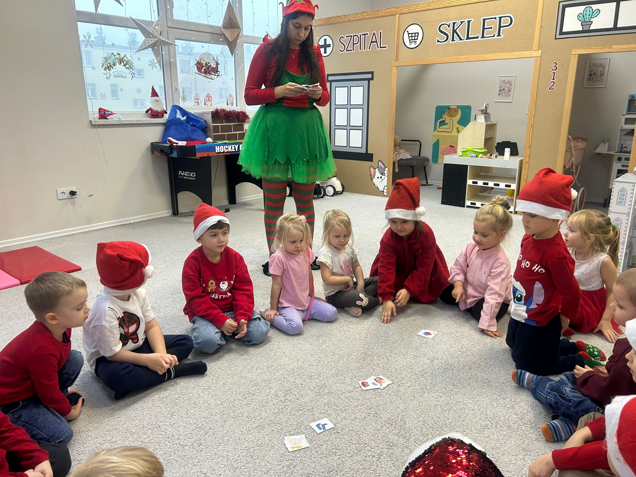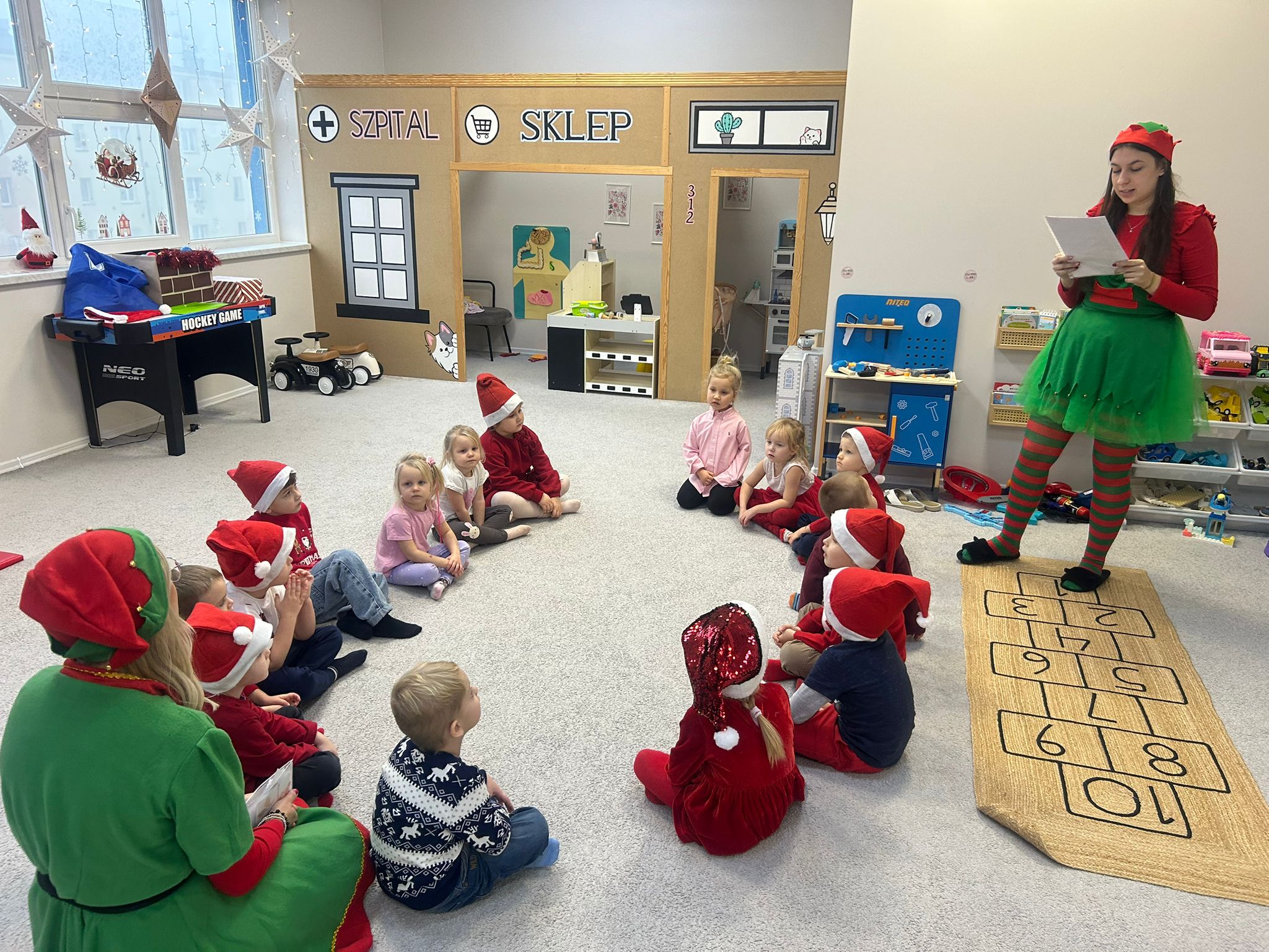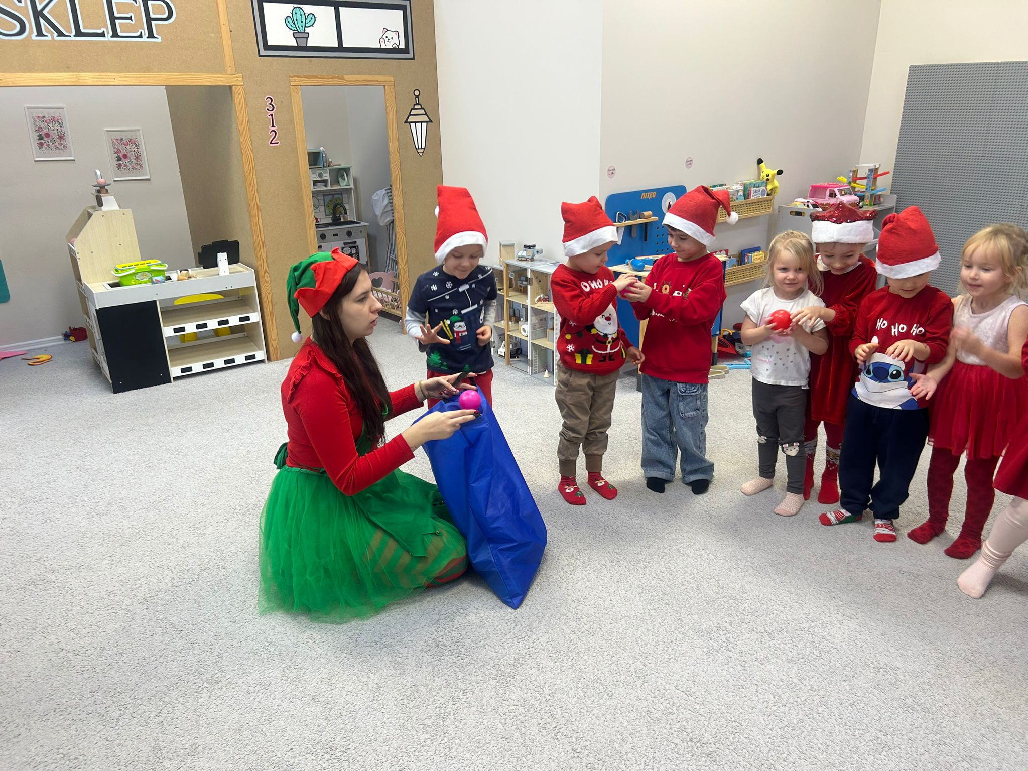 Serdecznie dziękujemy wspaniałym elfom, które z ogromną energią, uśmiechem i zaangażowaniem poprowadziły całe wydarzenie, tworząc magiczną atmosferę i wprowadzając dzieci w prawdziwy świąteczny nastrój.