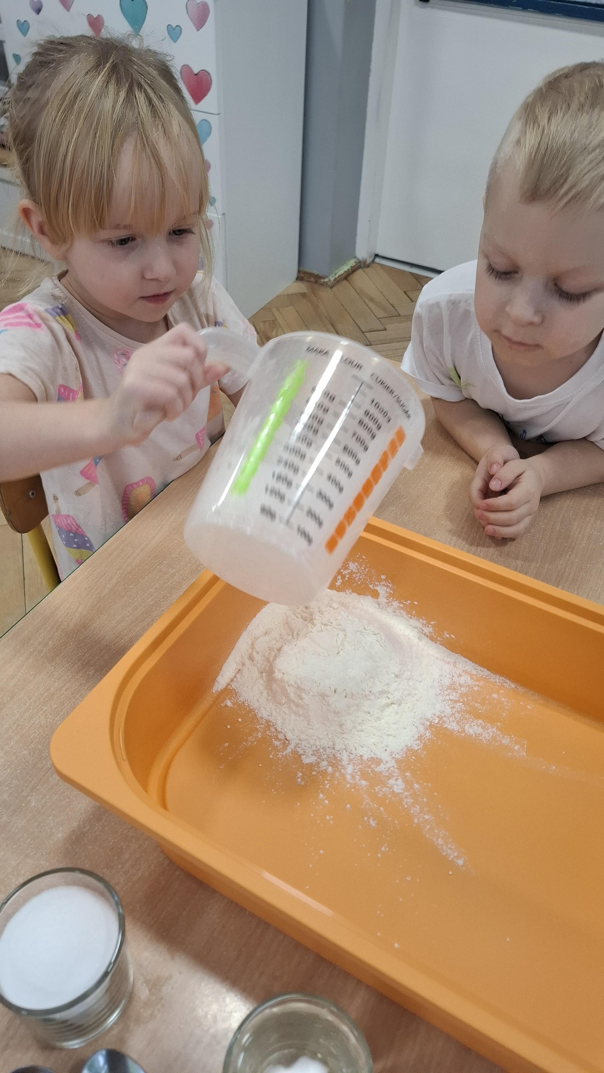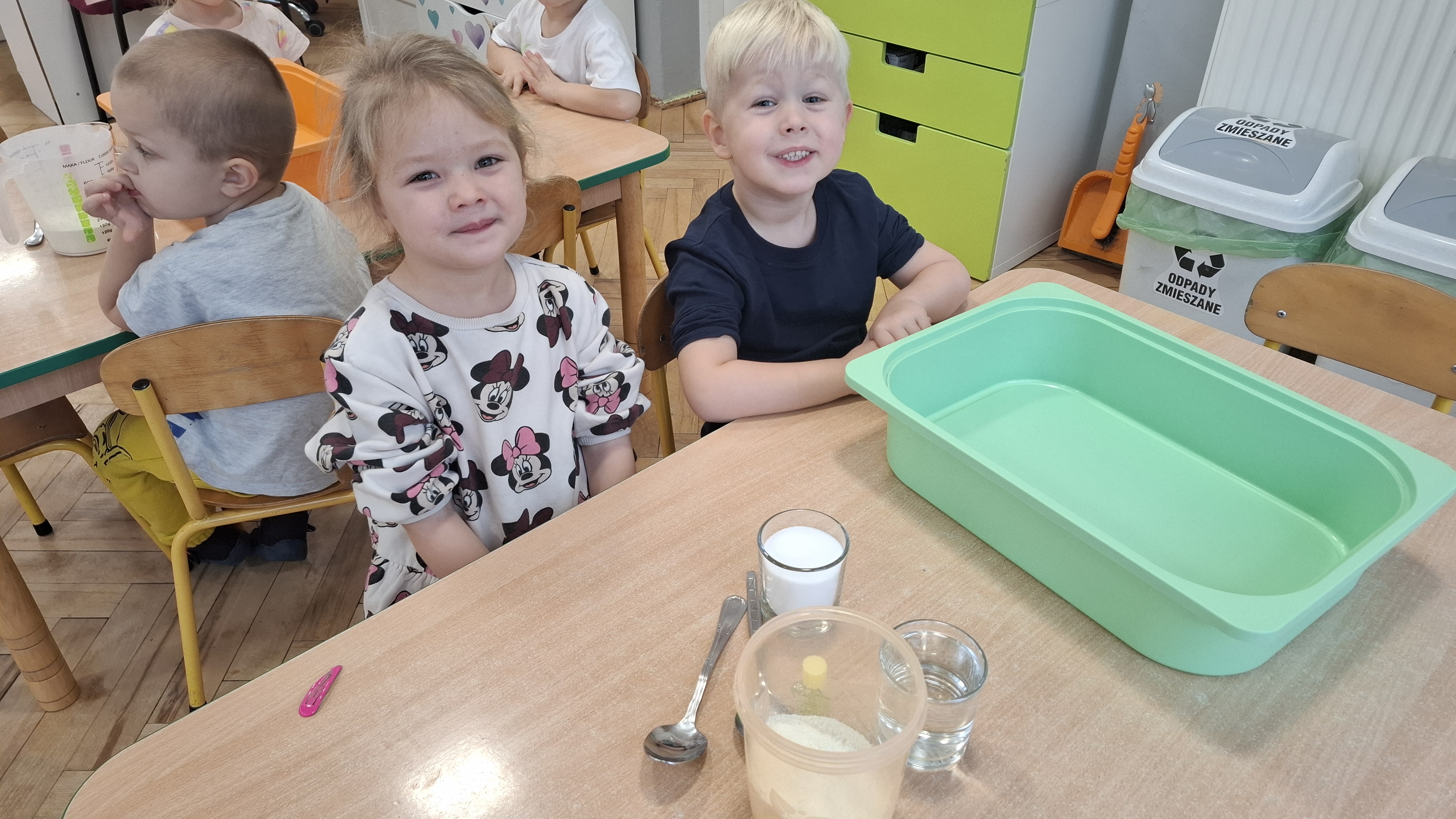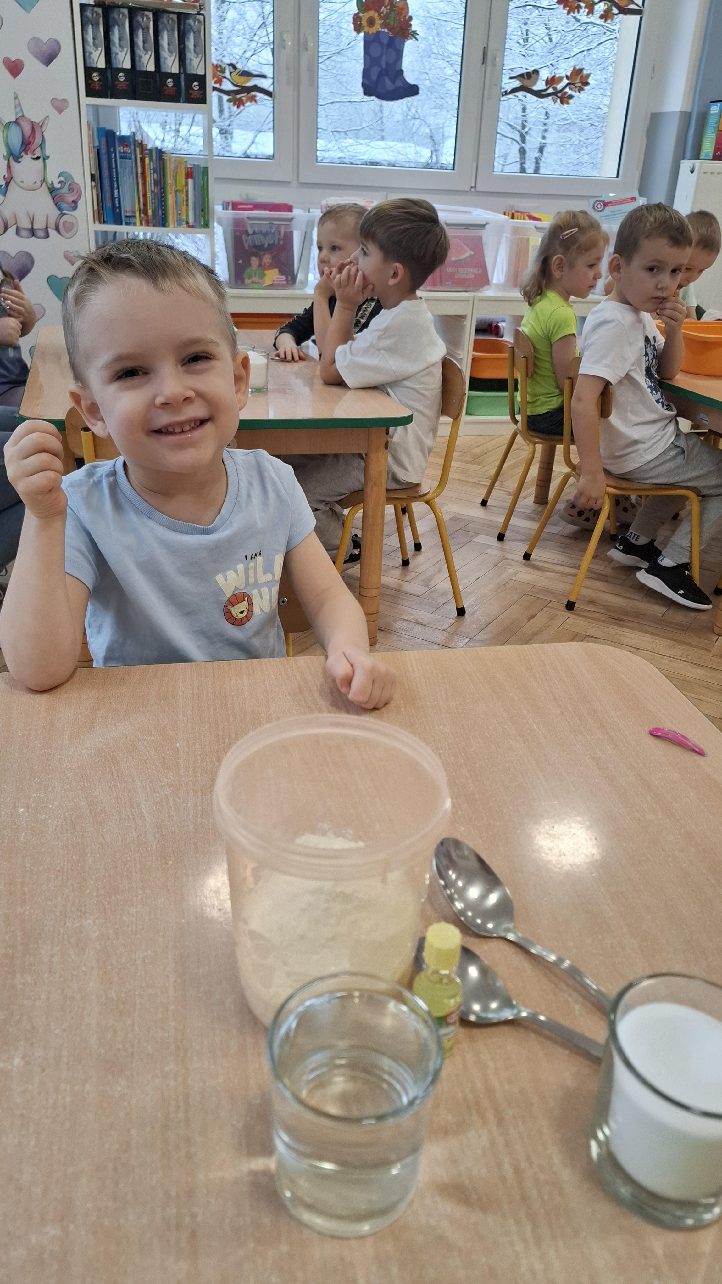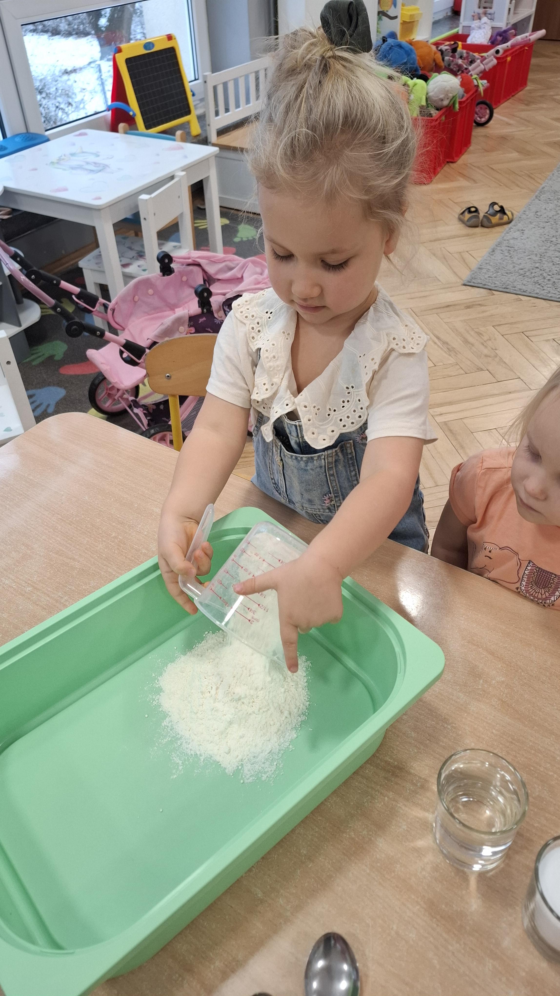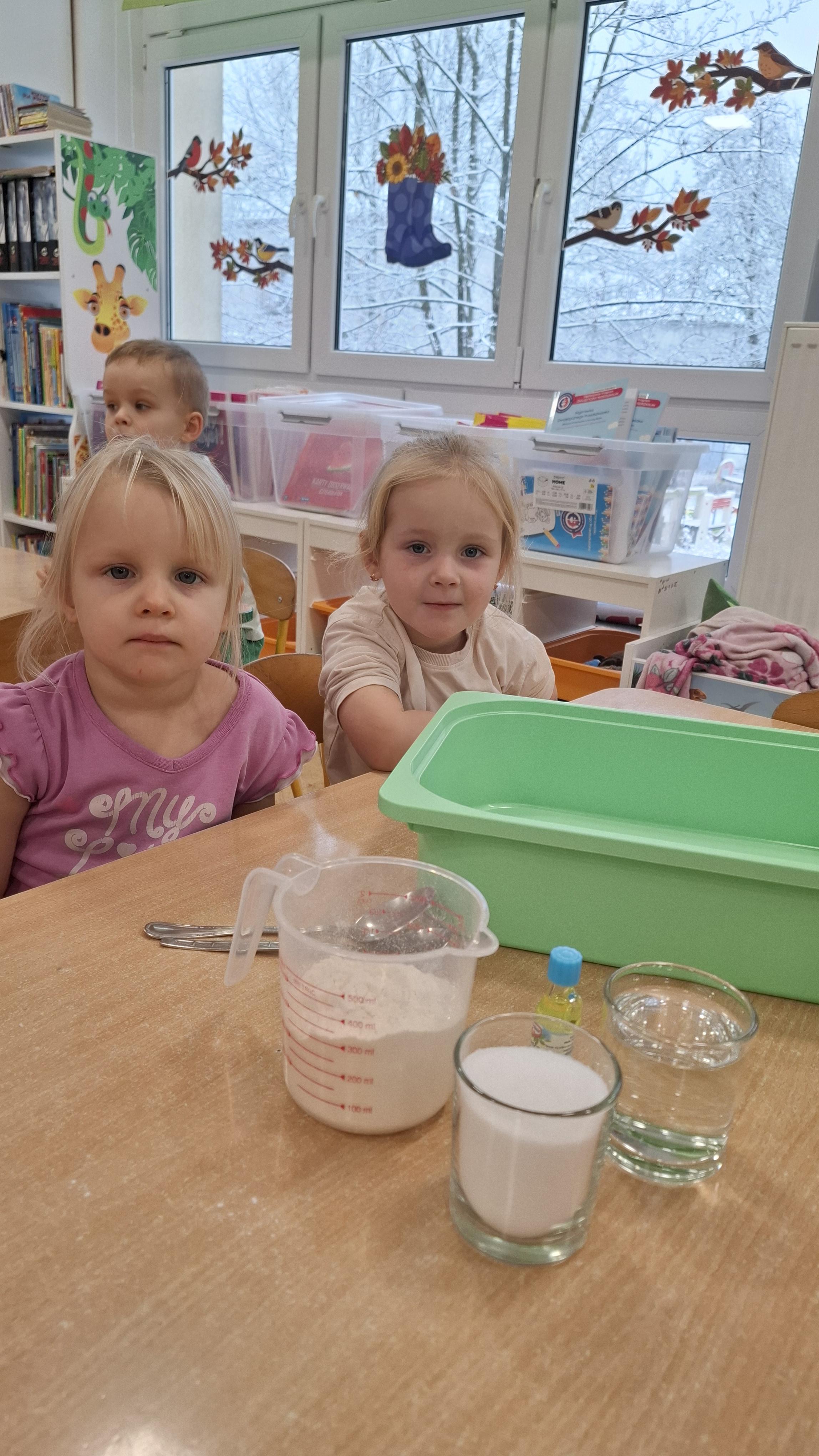 Do wykonania masy wykorzystaliśmy prosty przepis, zawierający: wodę, sól, mąkę oraz olej. Następnie dzieci wzbogacały plastelinę o aromatyczne dodatki. Wśród zastosowanych zapachów znalazły się: