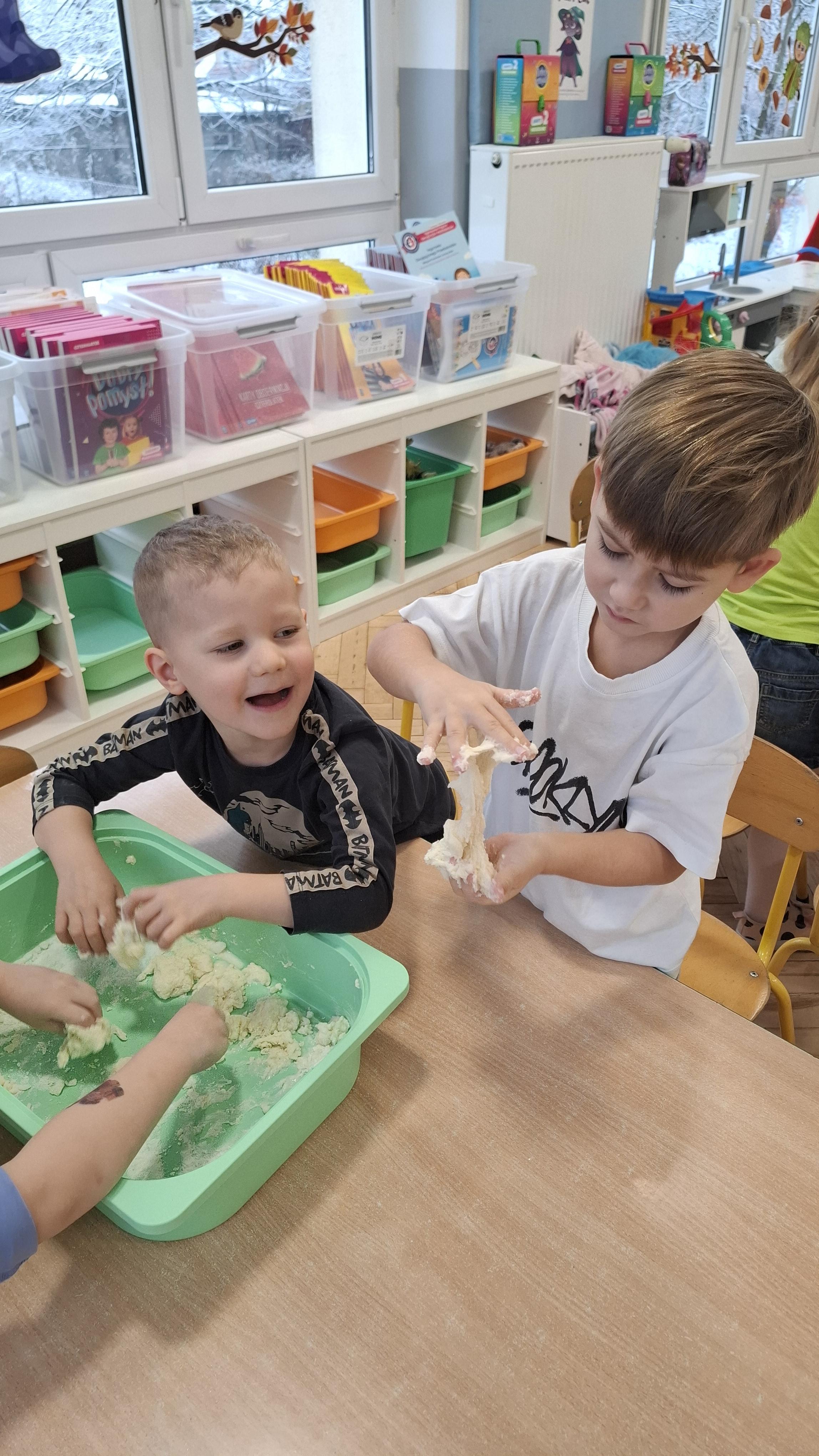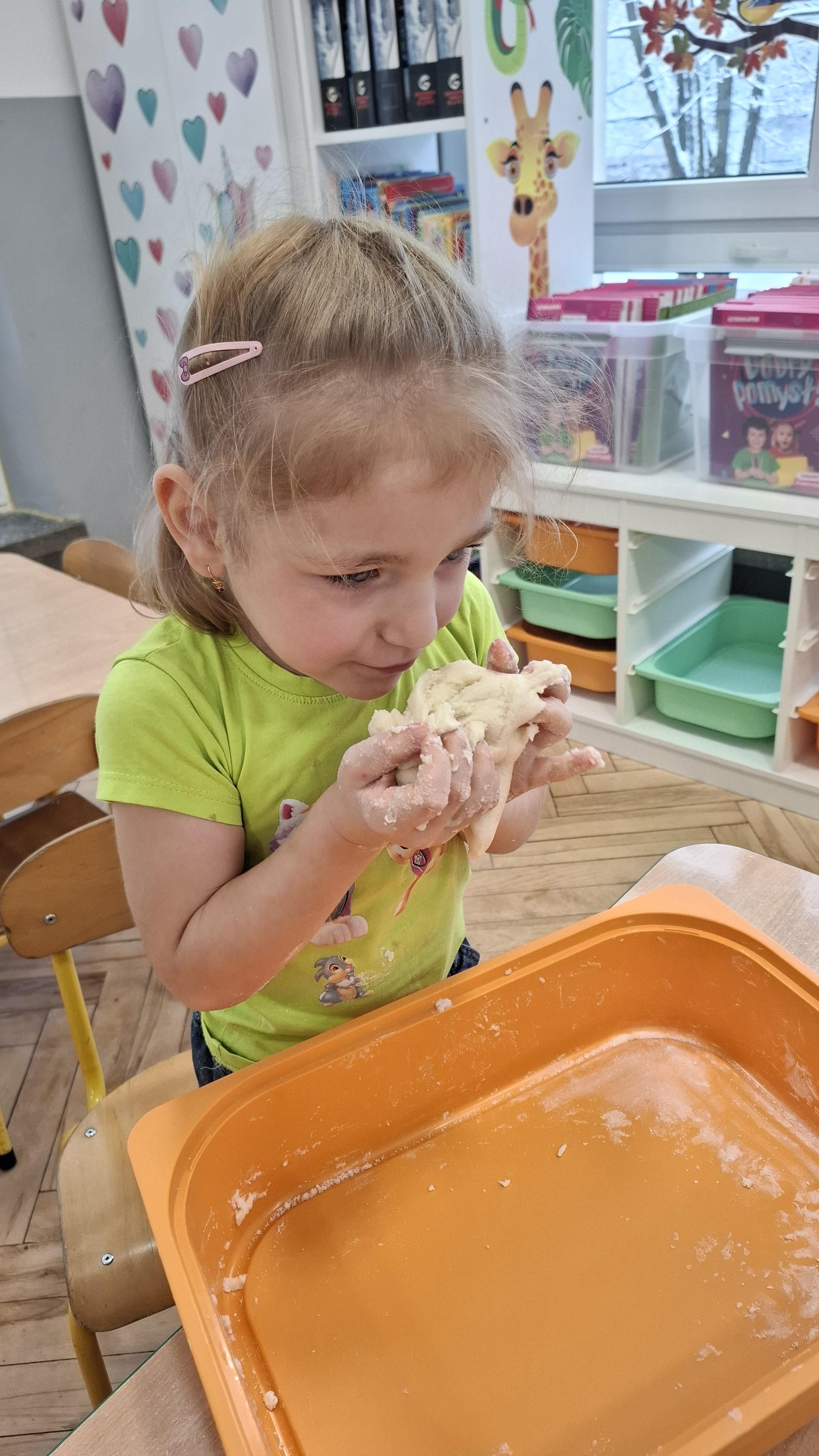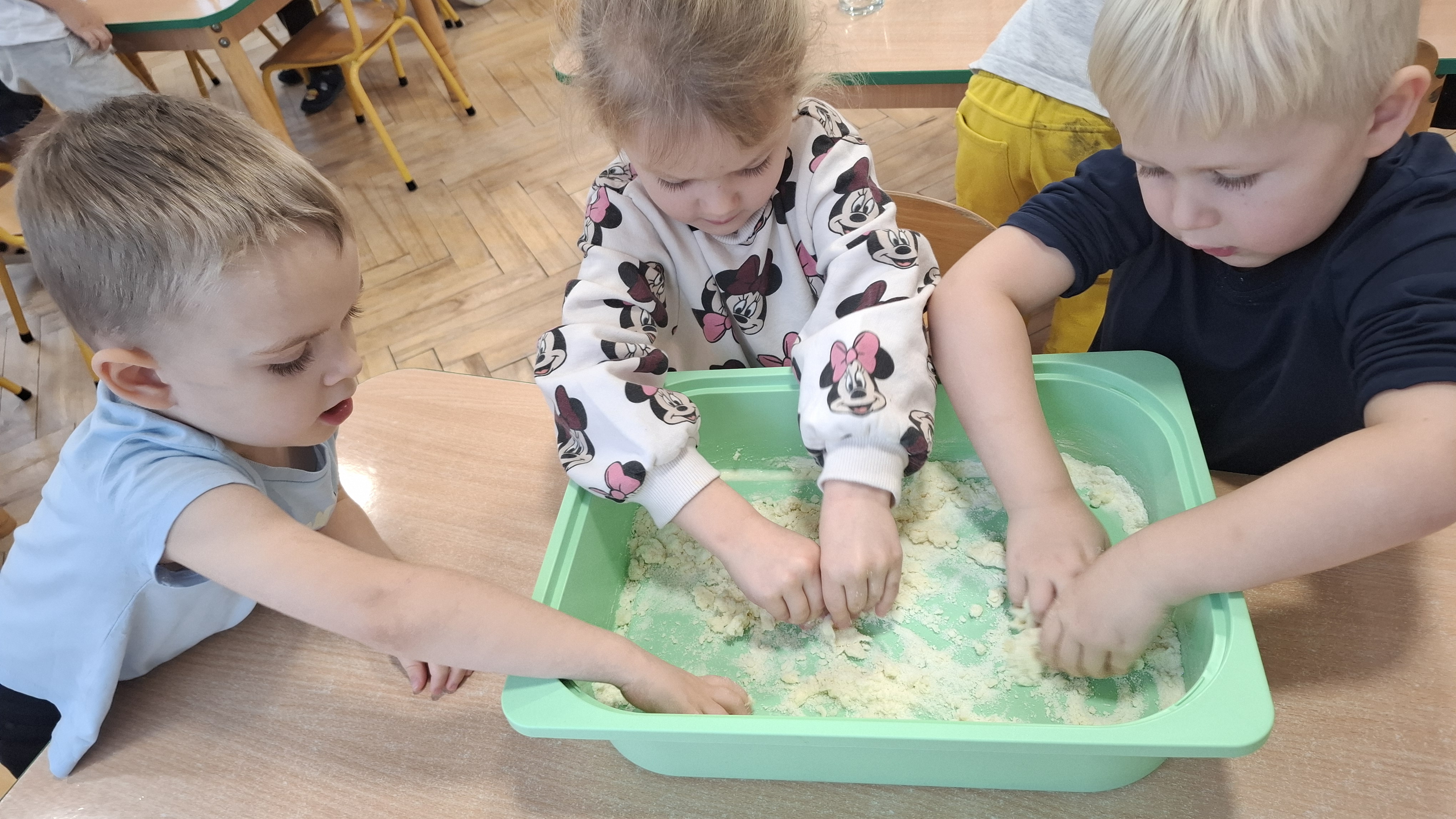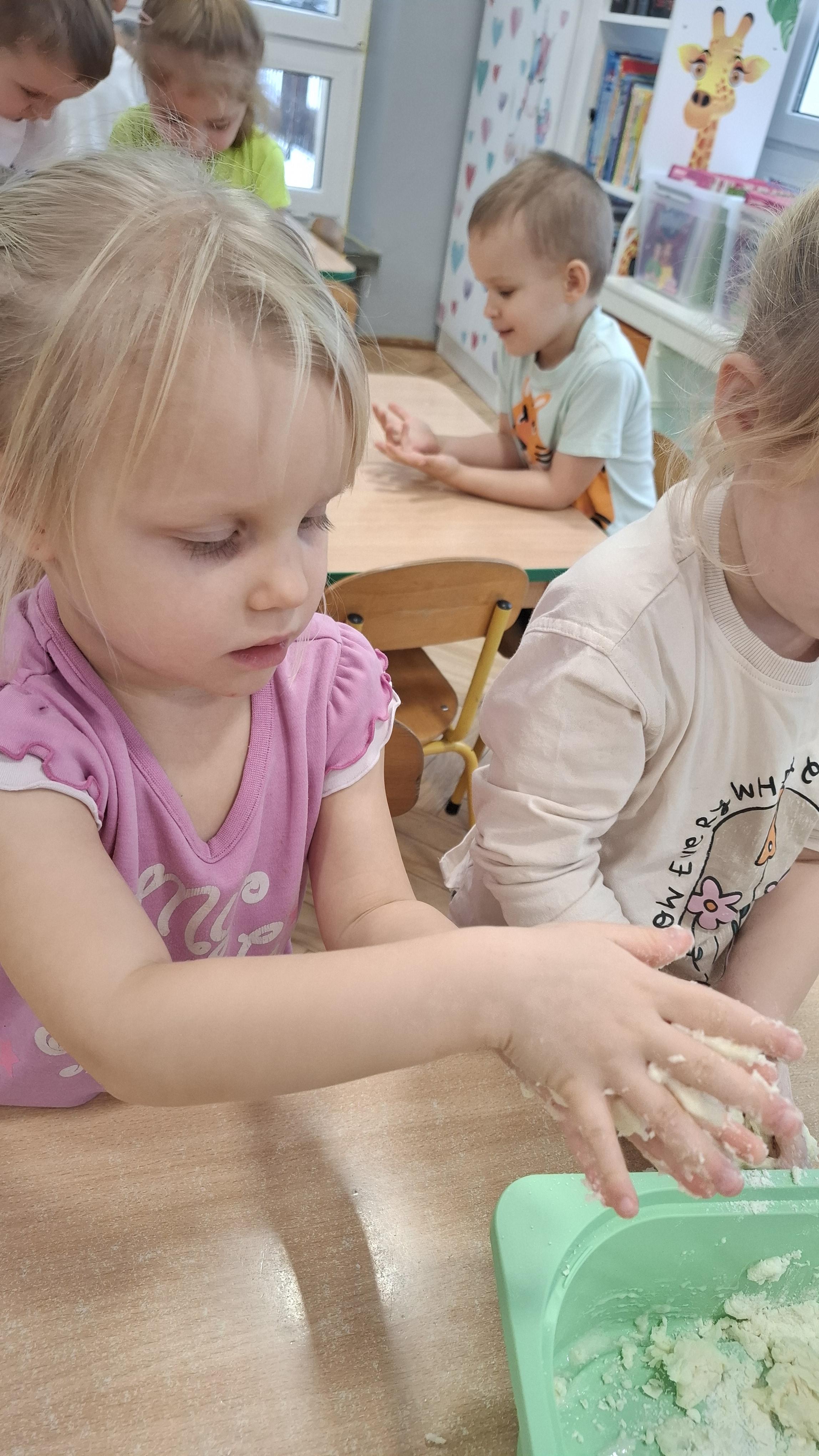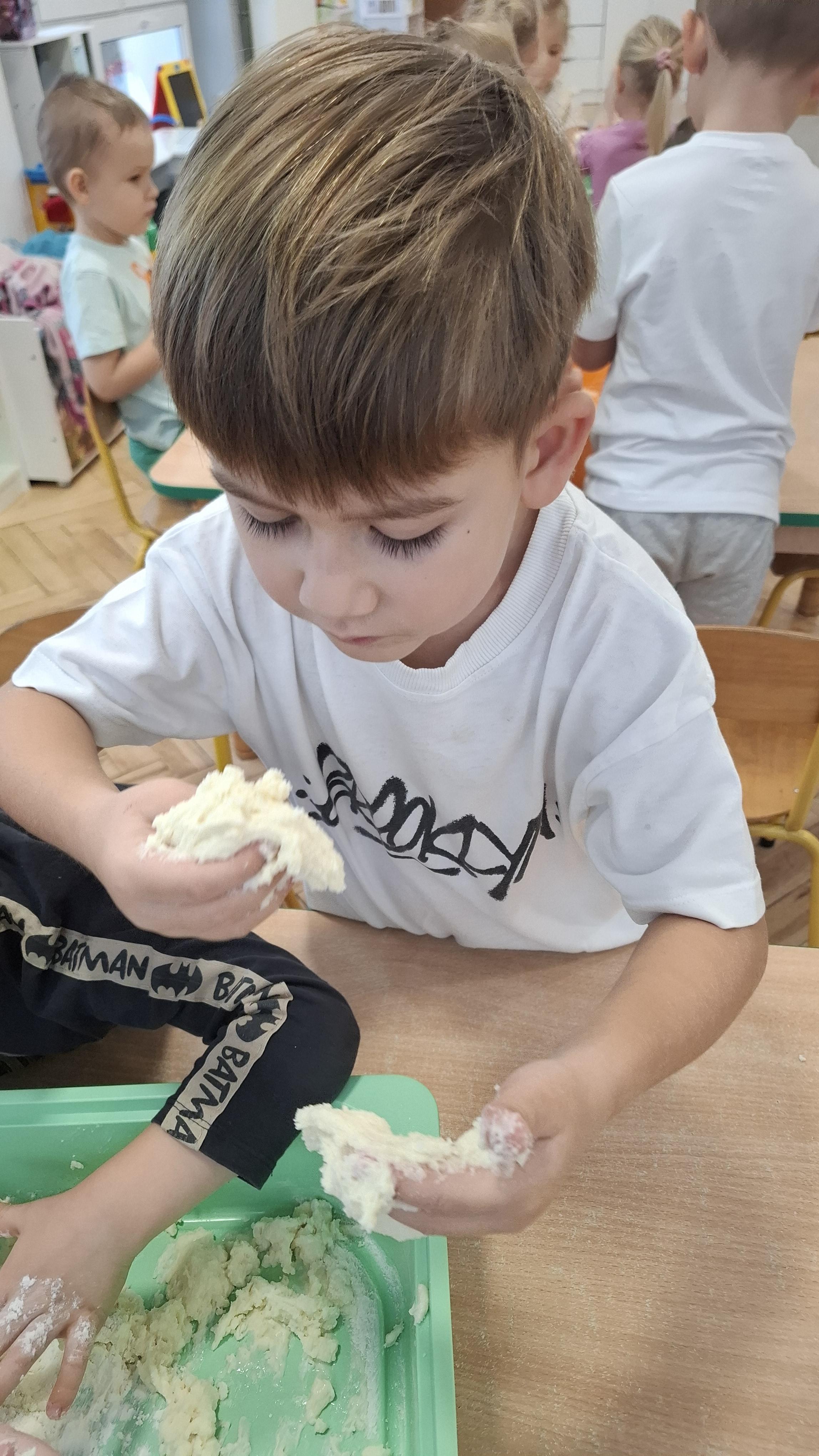 Dzieci samodzielnie zagniatały masę, dzięki czemu oprócz węchu intensywnie pracował także zmysł dotyku. Mieszanie, ugniatanie i formowanie plasteliny było dla dzieci relaksujące i niezwykle angażujące.