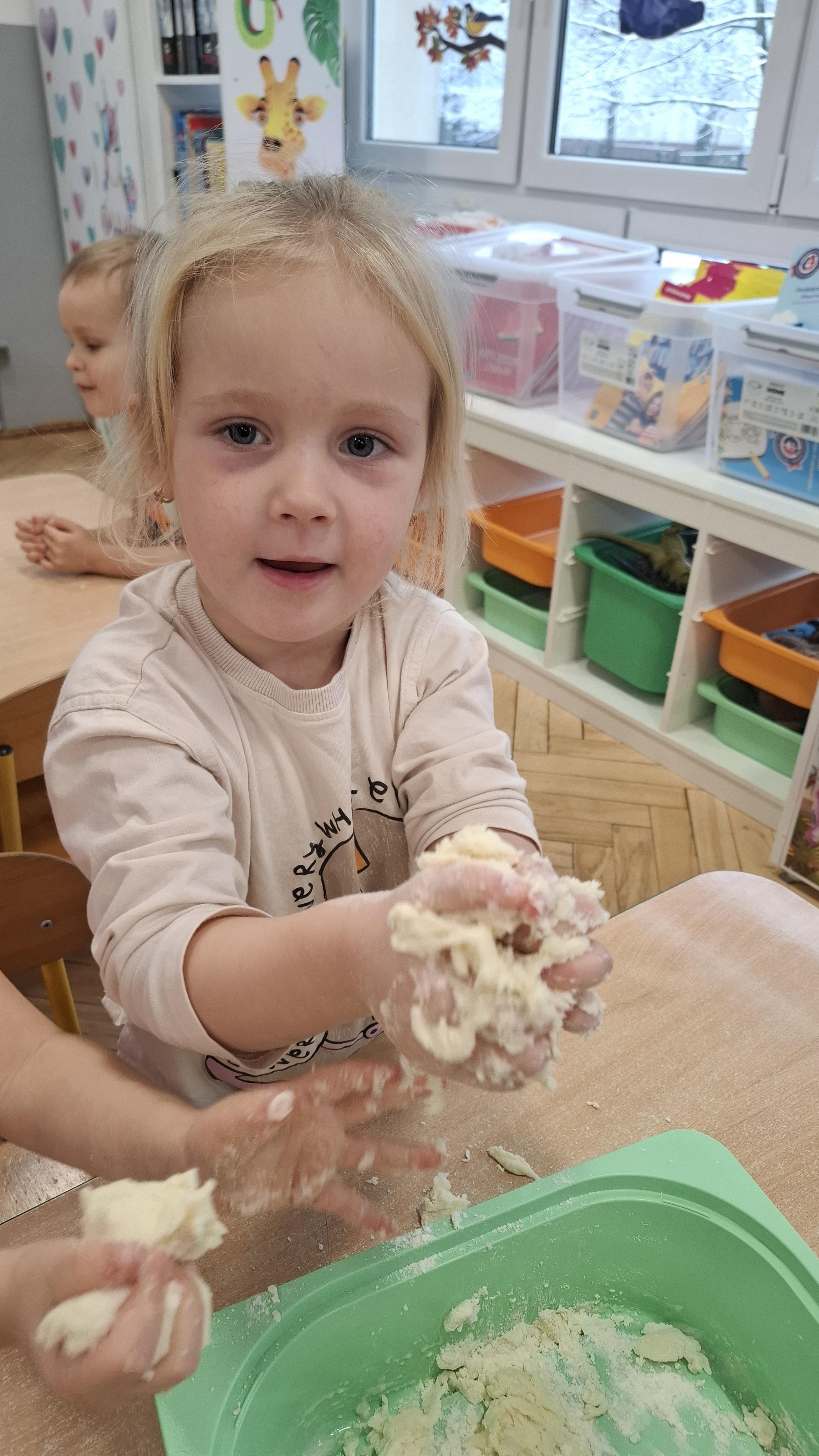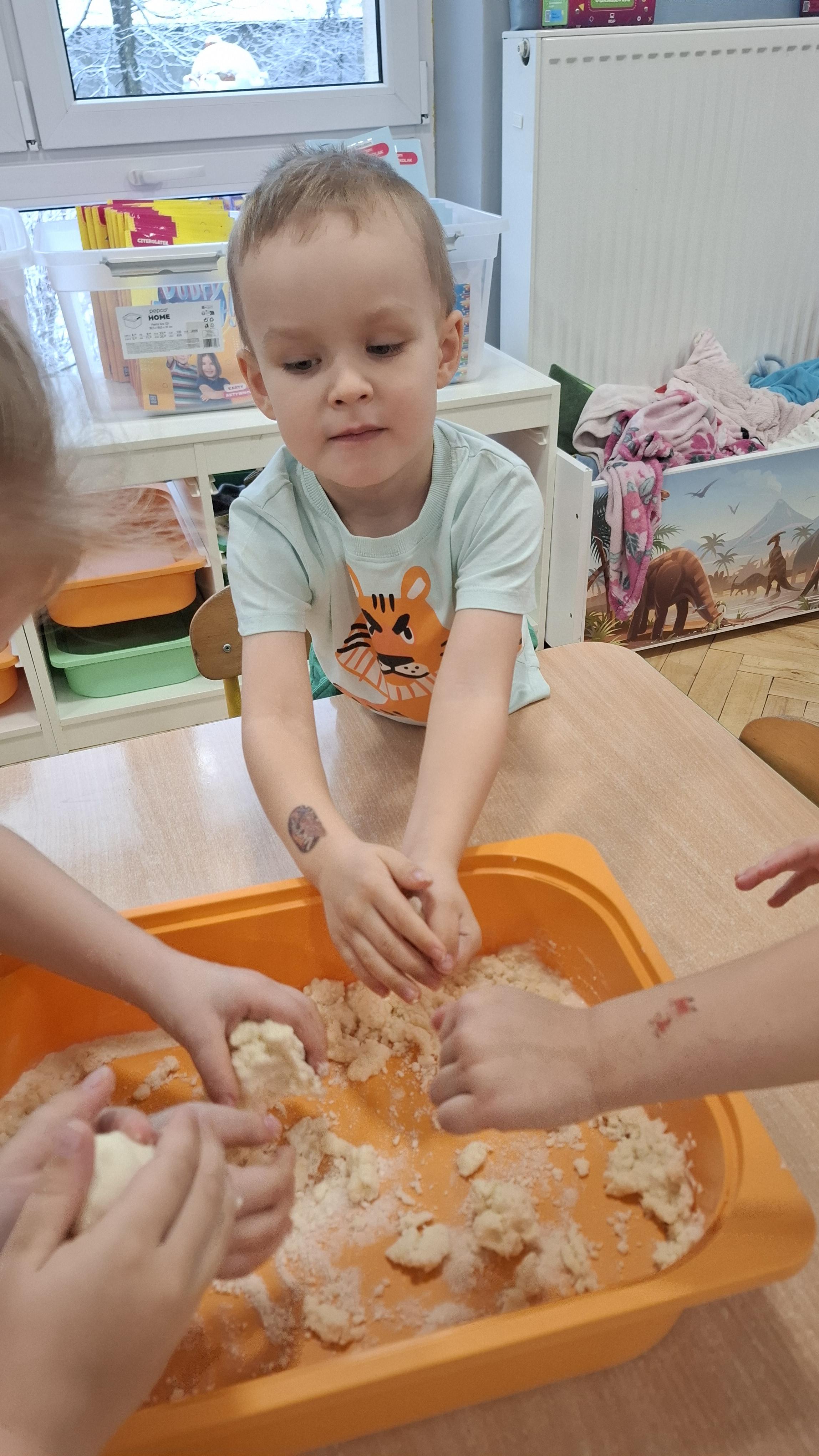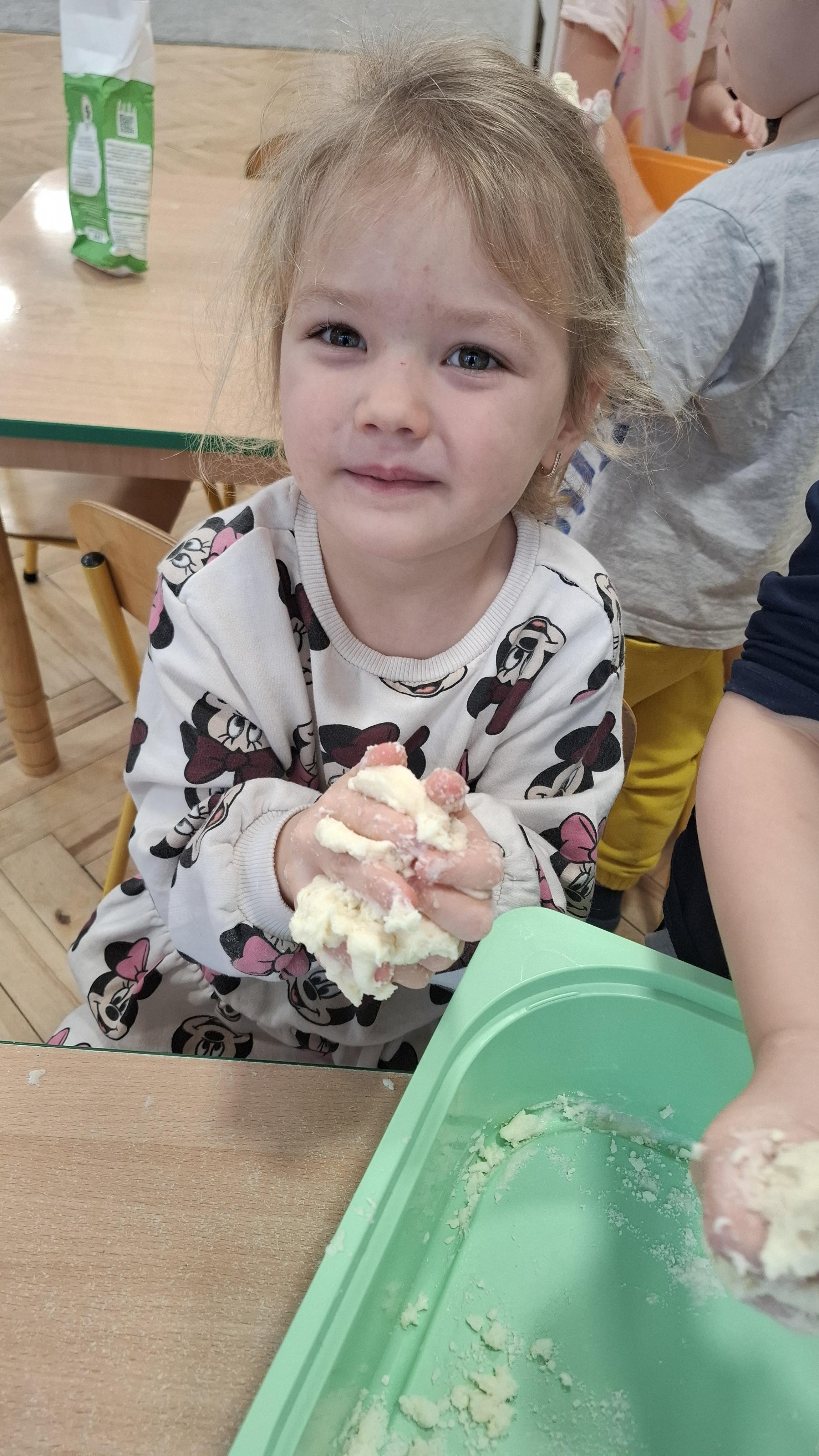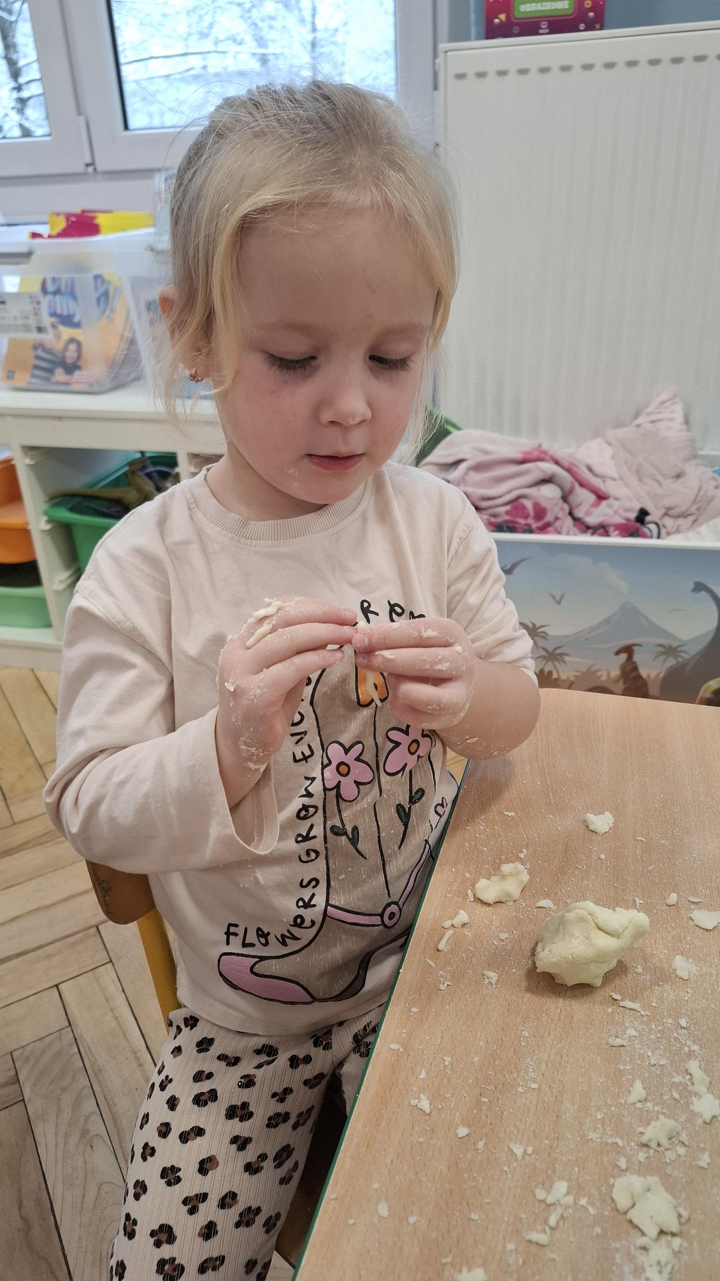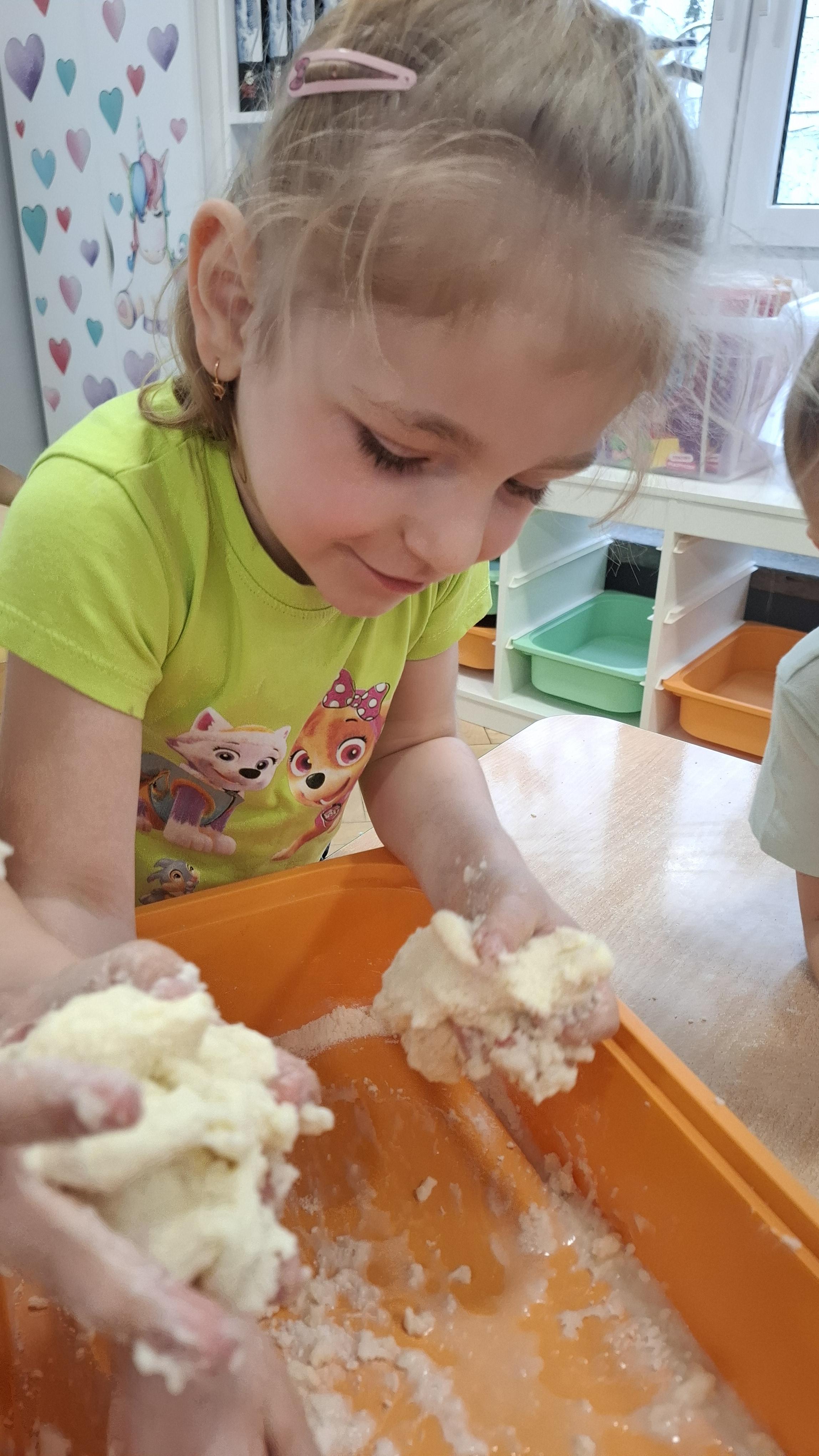 Dzieci samodzielnie zagniatały masę, dzięki czemu oprócz węchu intensywnie pracował także zmysł dotyku. Mieszanie, ugniatanie i formowanie plasteliny było dla dzieci relaksujące i niezwykle angażujące.