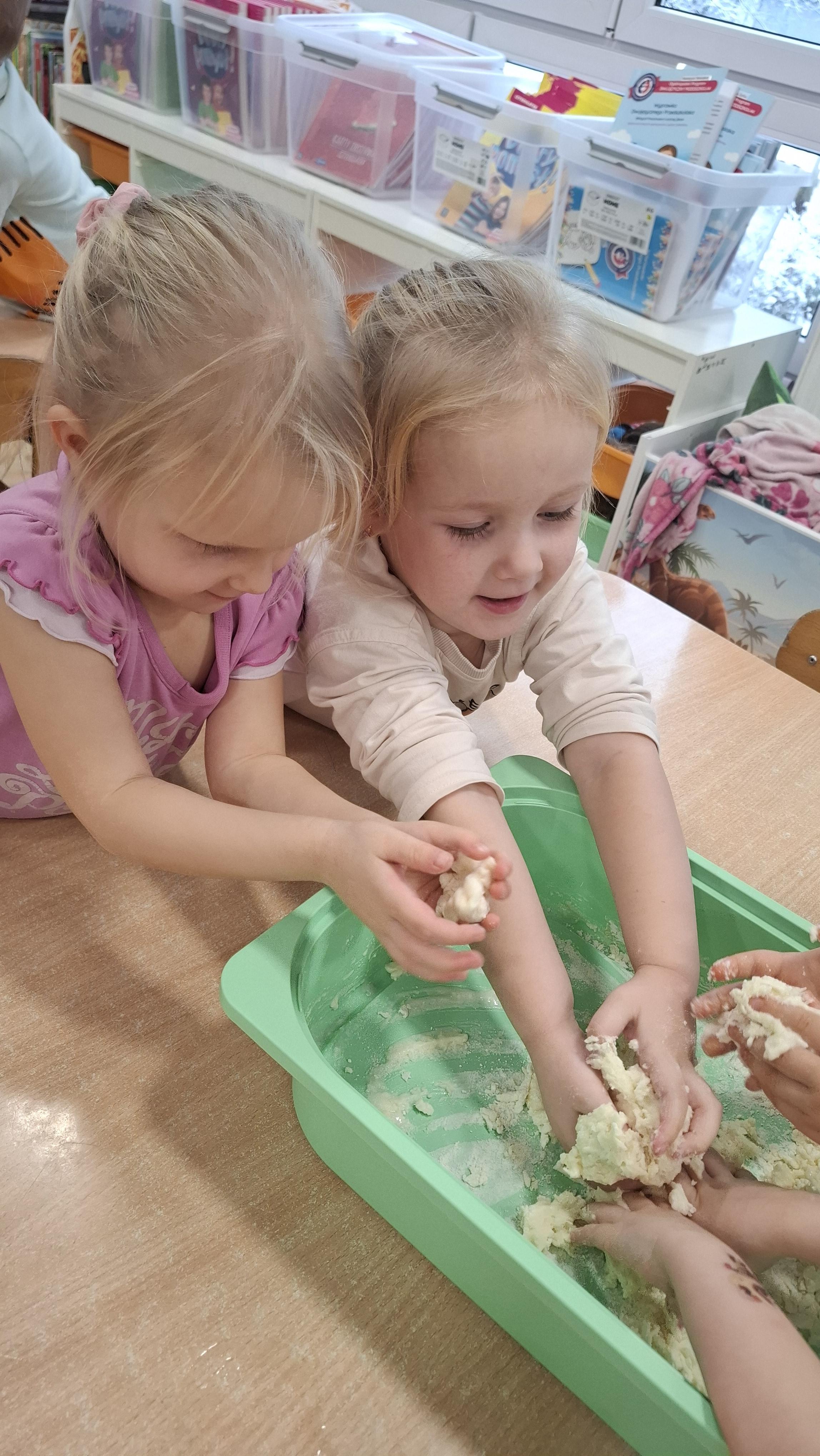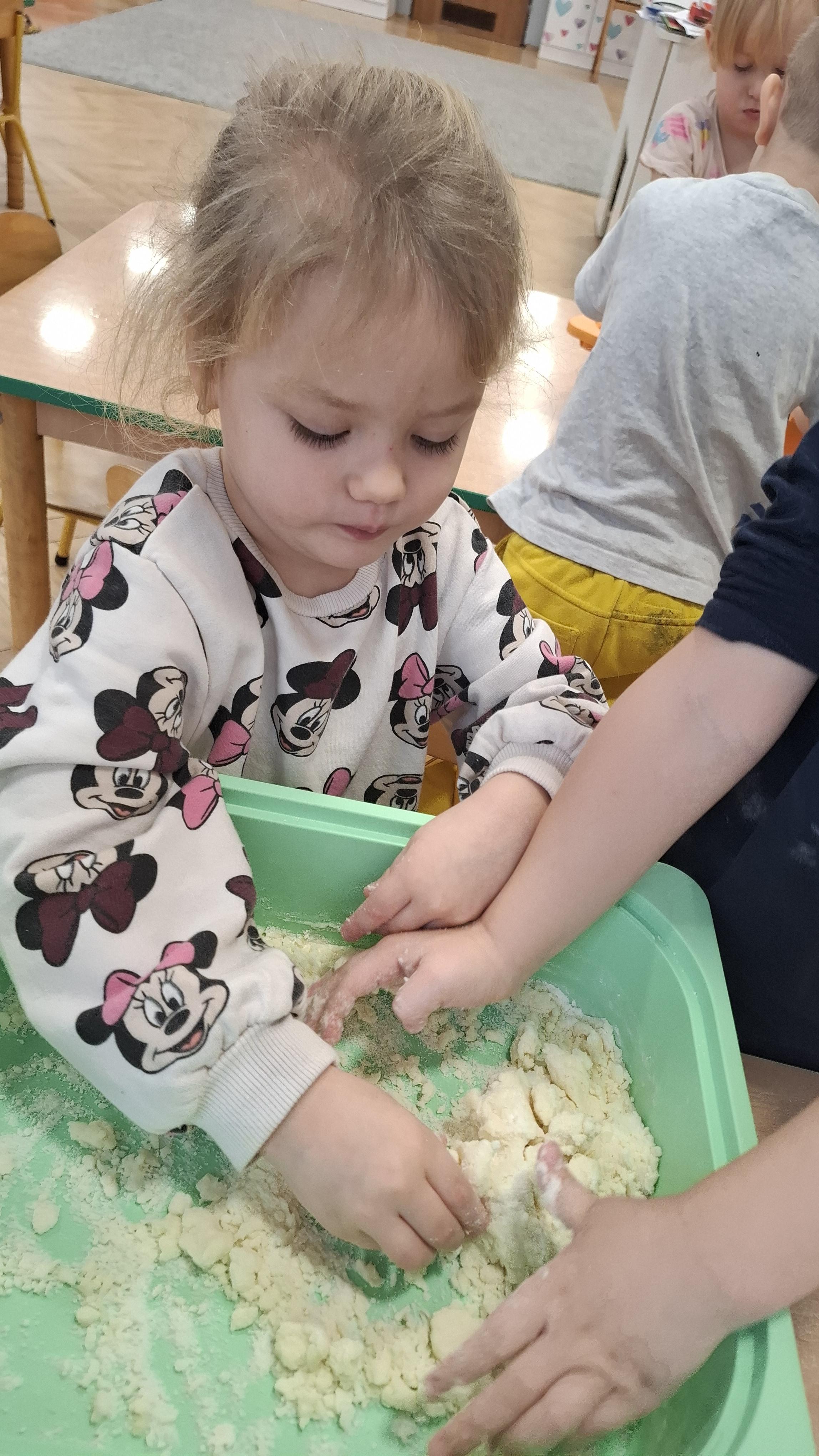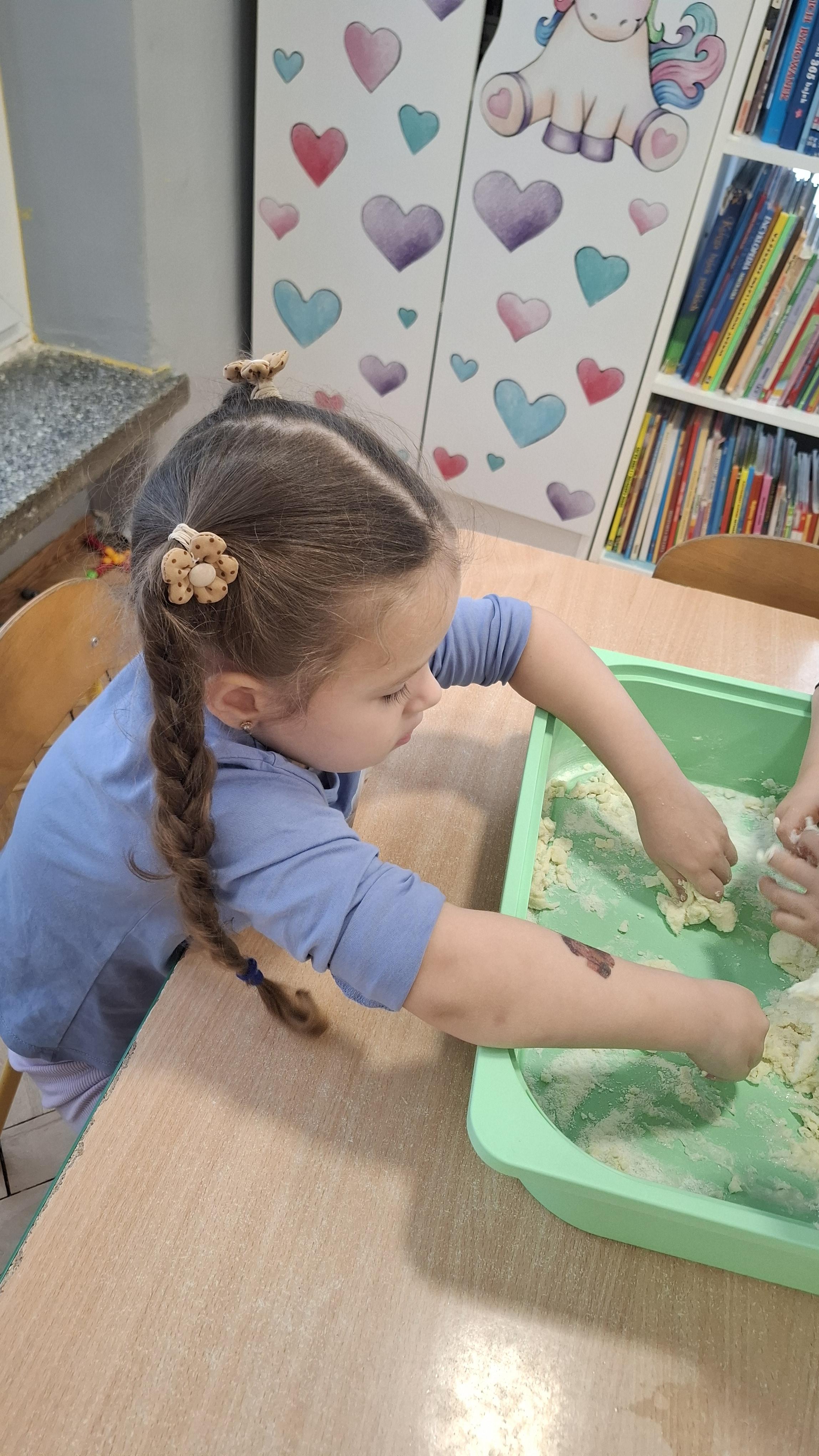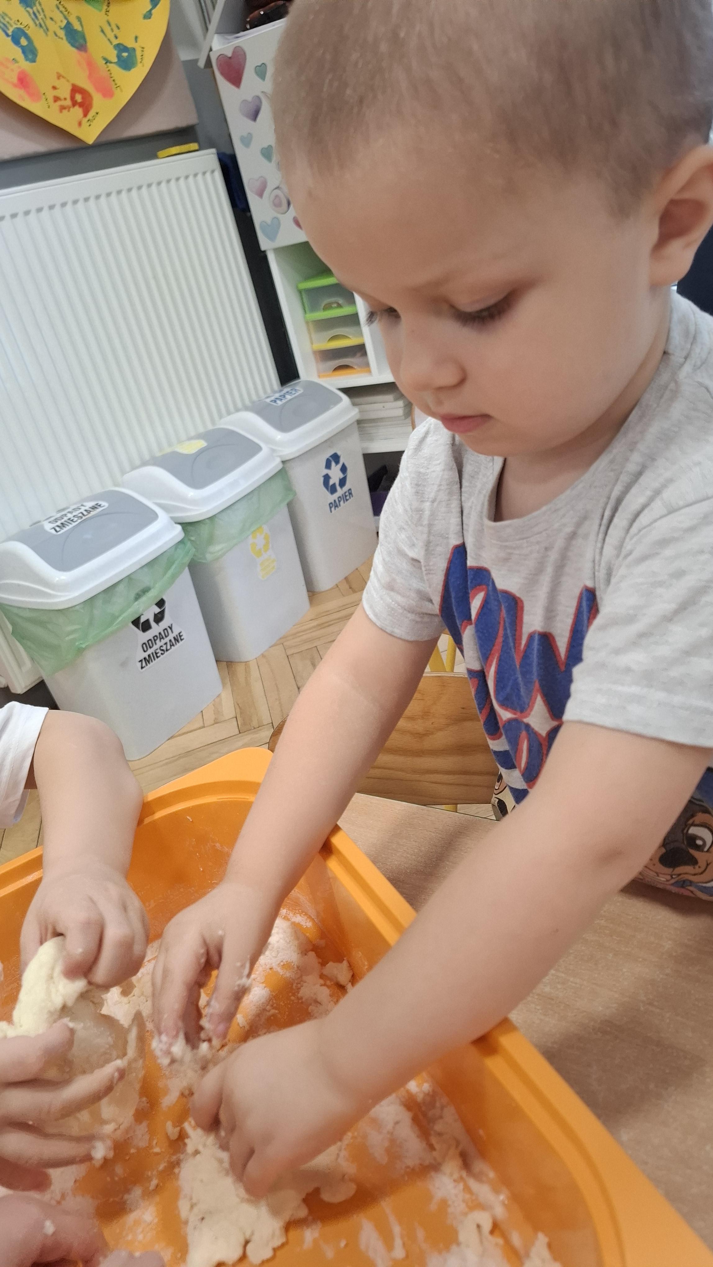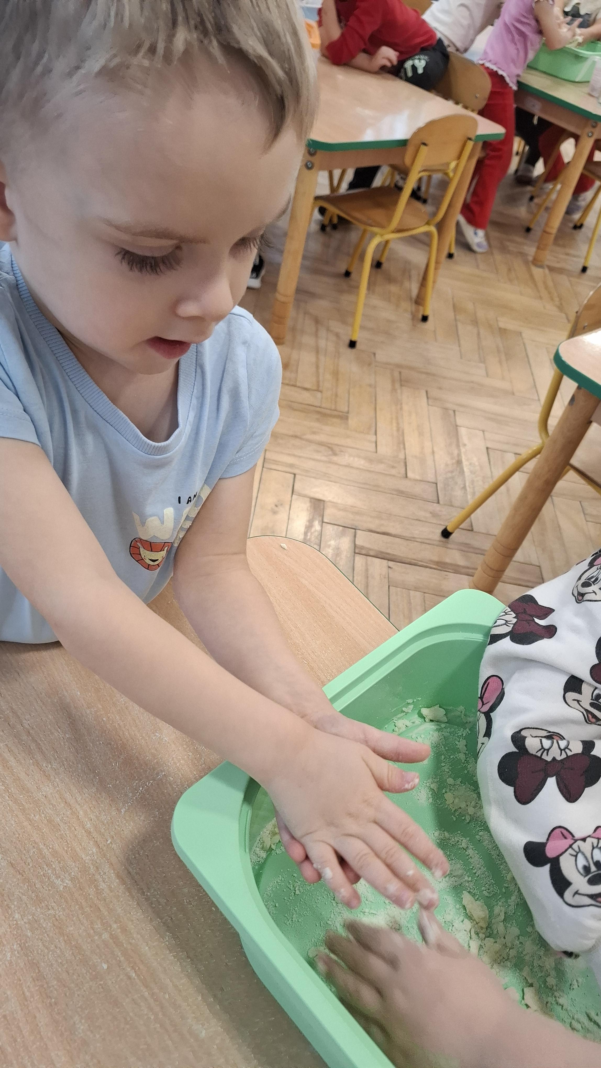 Dzieci samodzielnie zagniatały masę, dzięki czemu oprócz węchu intensywnie pracował także zmysł dotyku. Mieszanie, ugniatanie i formowanie plasteliny było dla dzieci relaksujące i niezwykle angażujące.