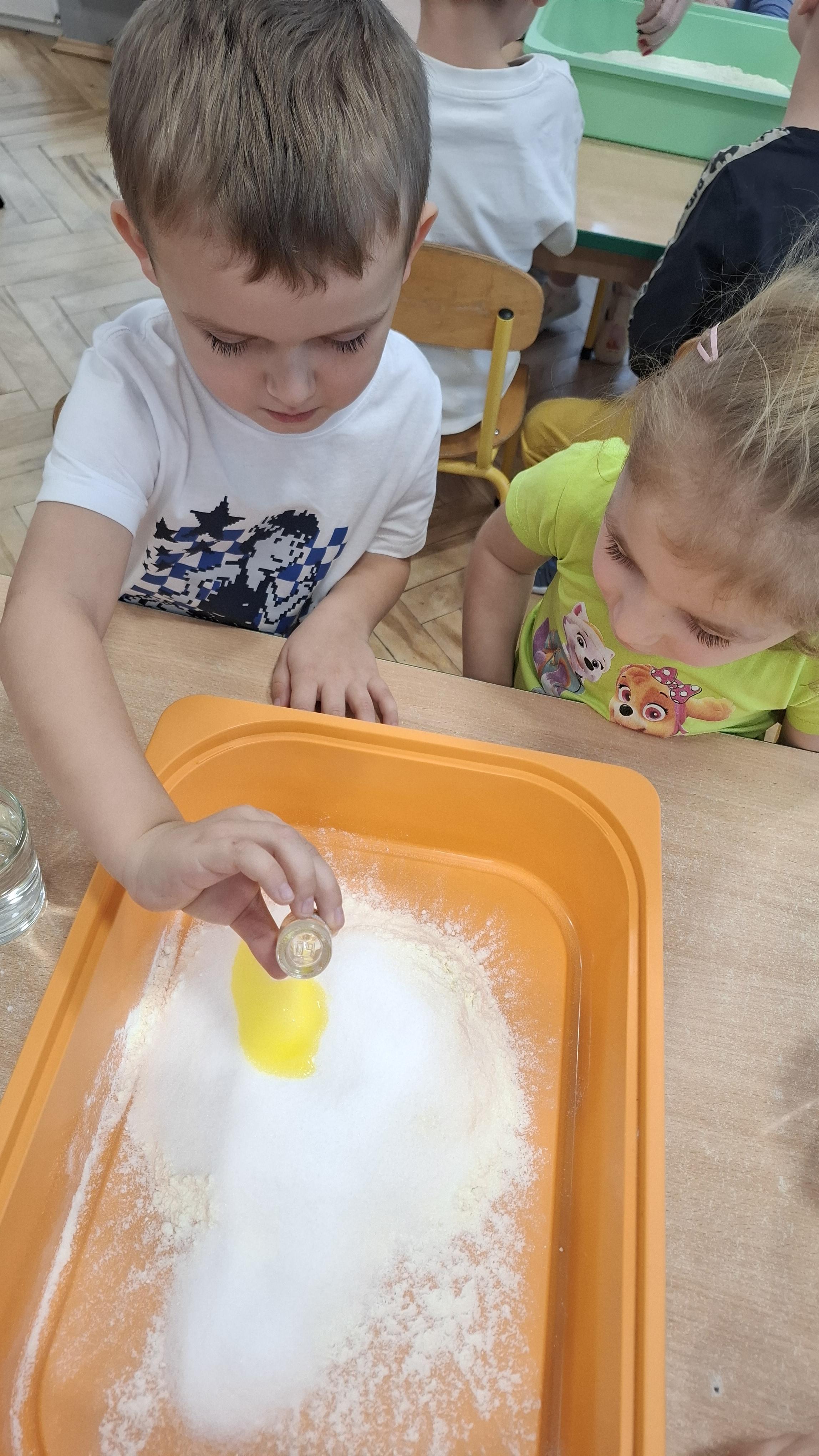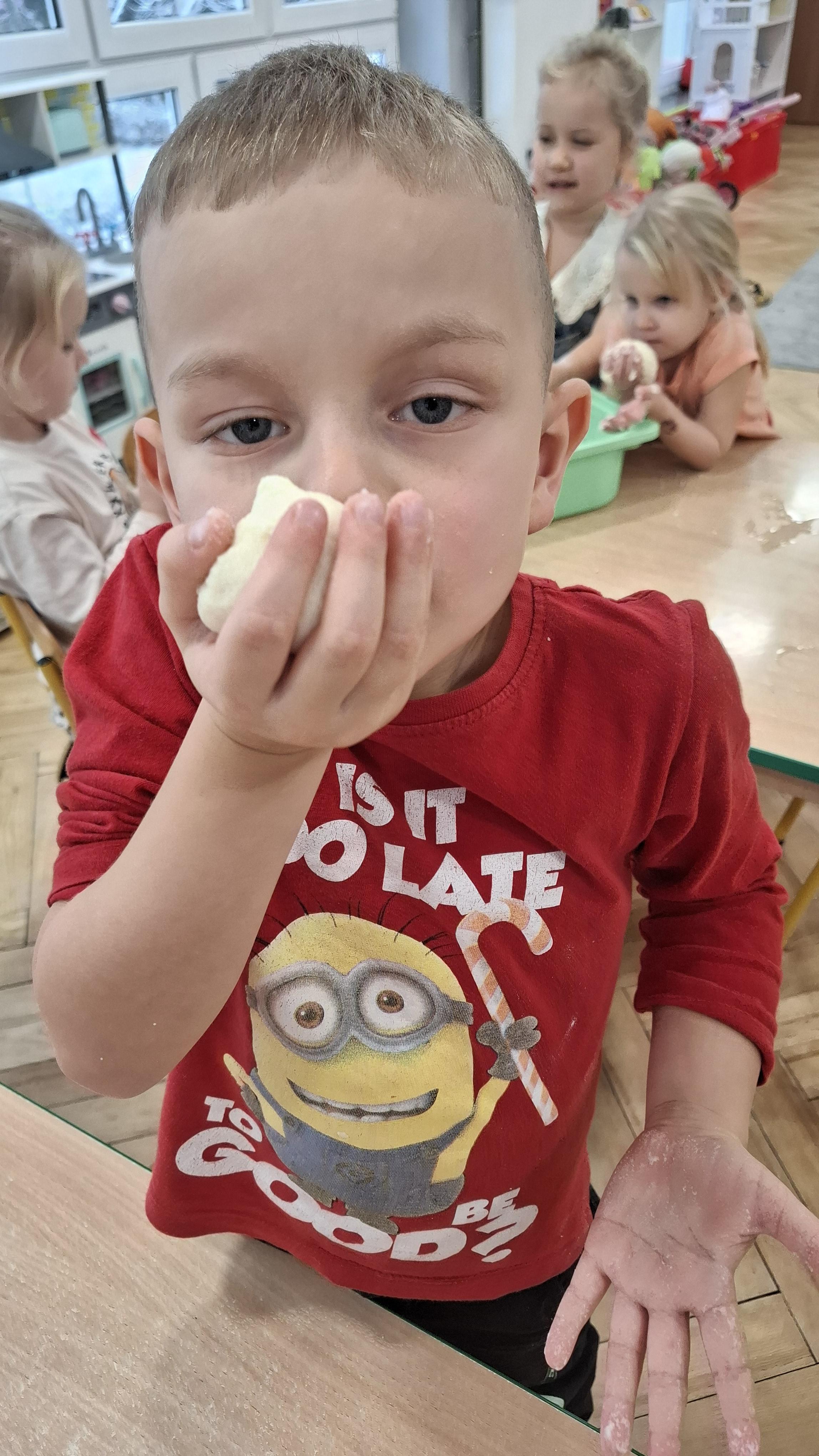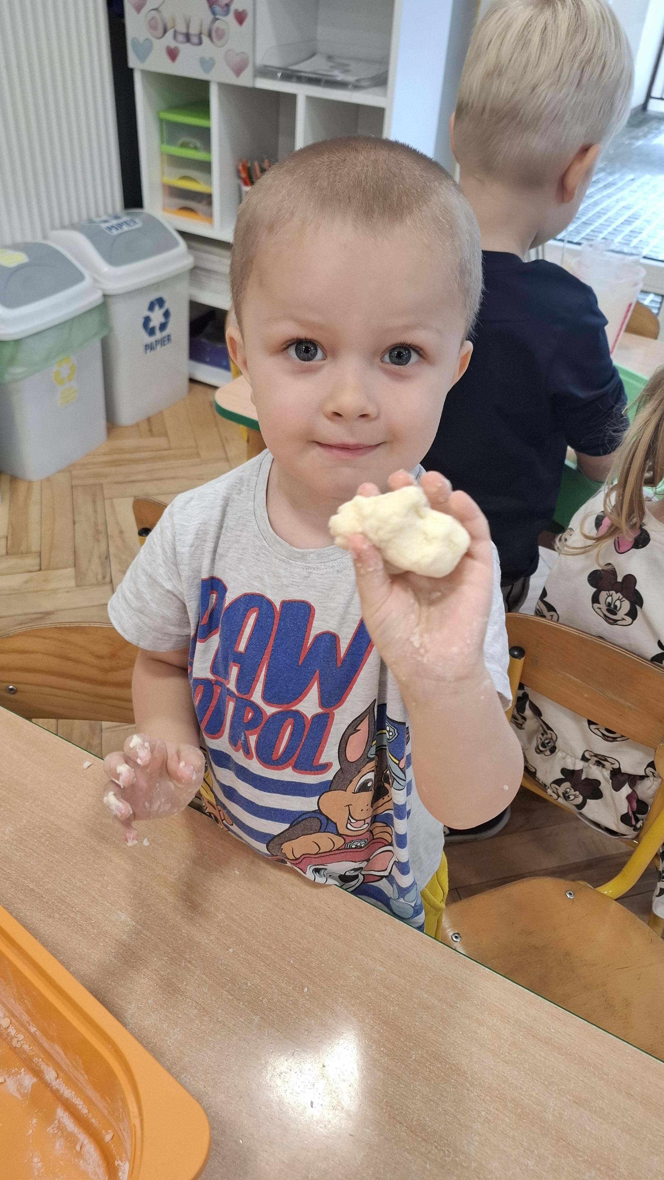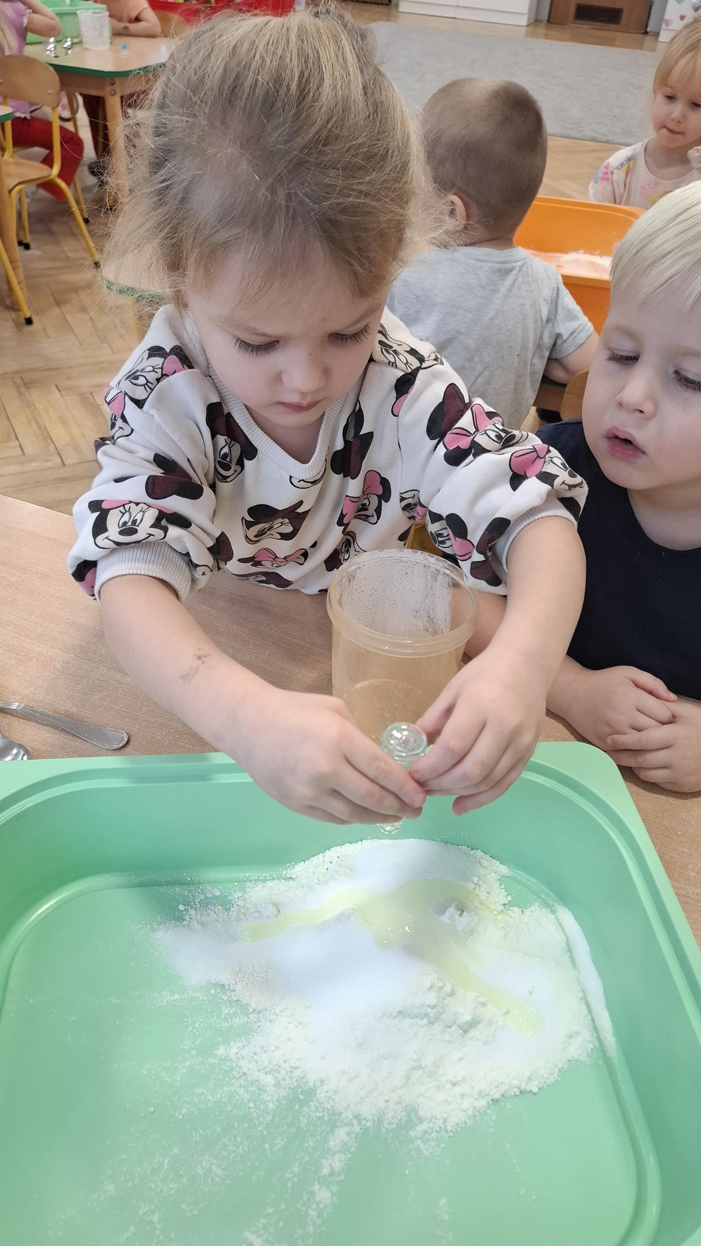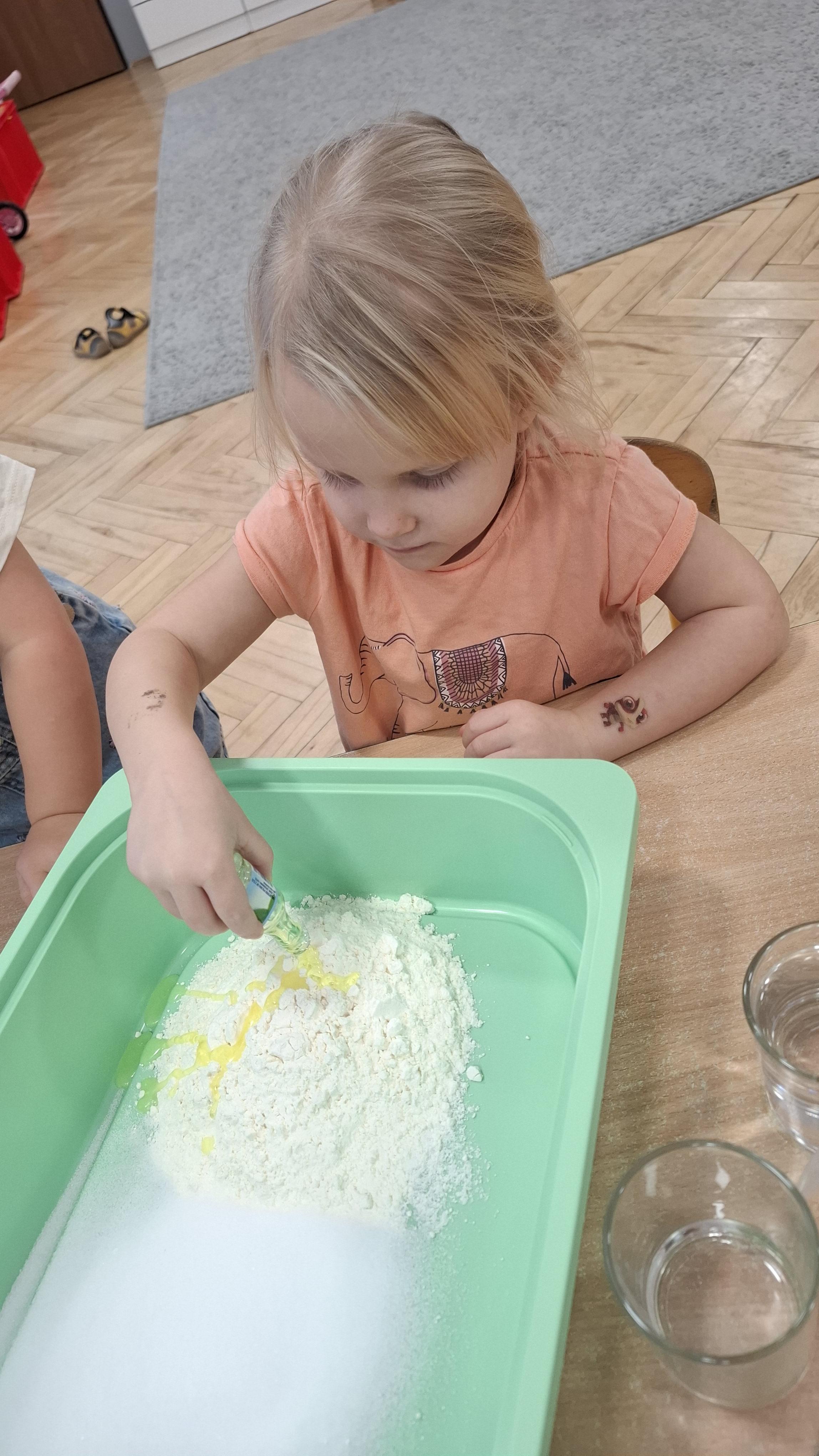 Dzieci samodzielnie zagniatały masę, dzięki czemu oprócz węchu intensywnie pracował także zmysł dotyku. Mieszanie, ugniatanie i formowanie plasteliny było dla dzieci relaksujące i niezwykle angażujące.