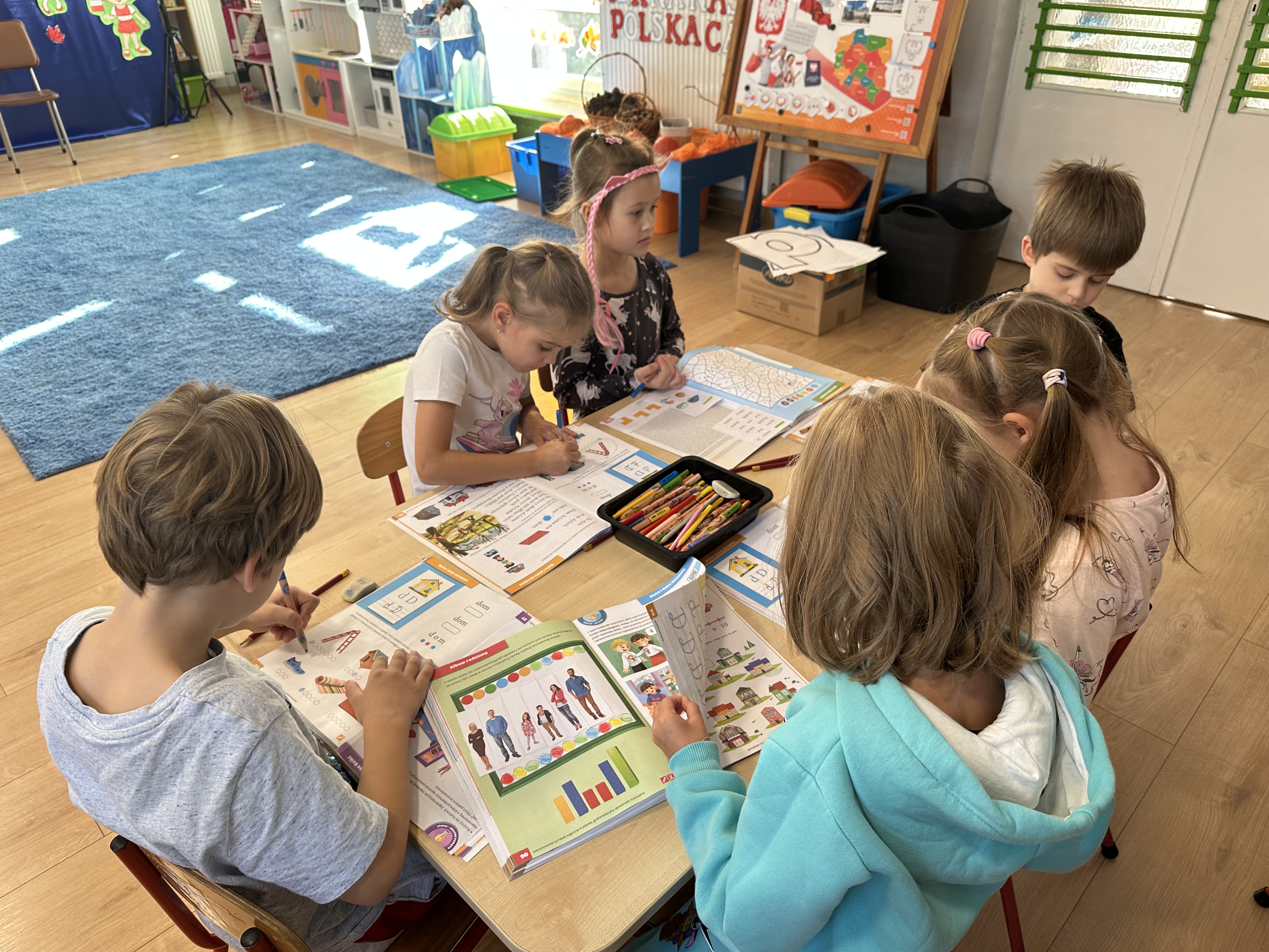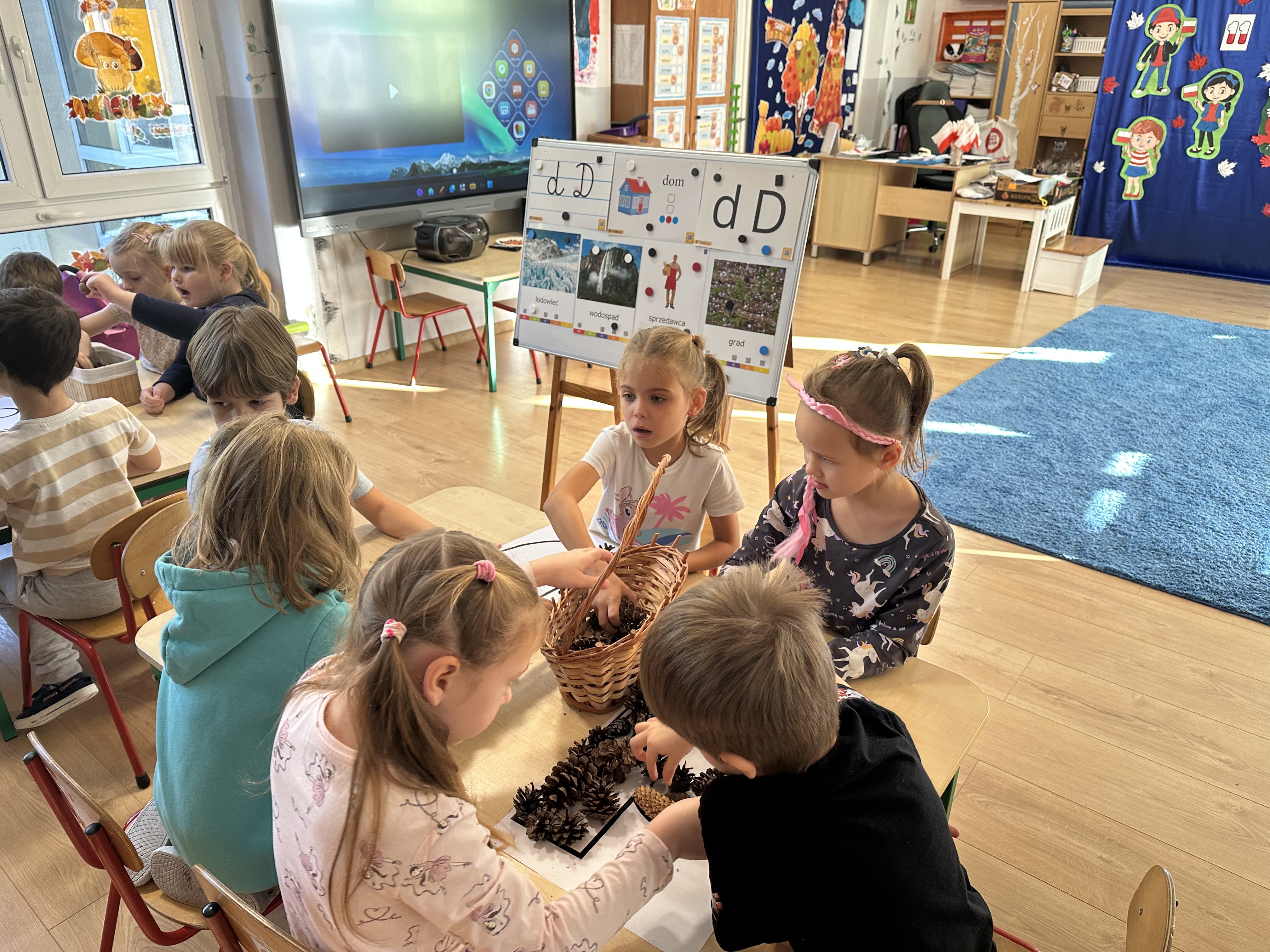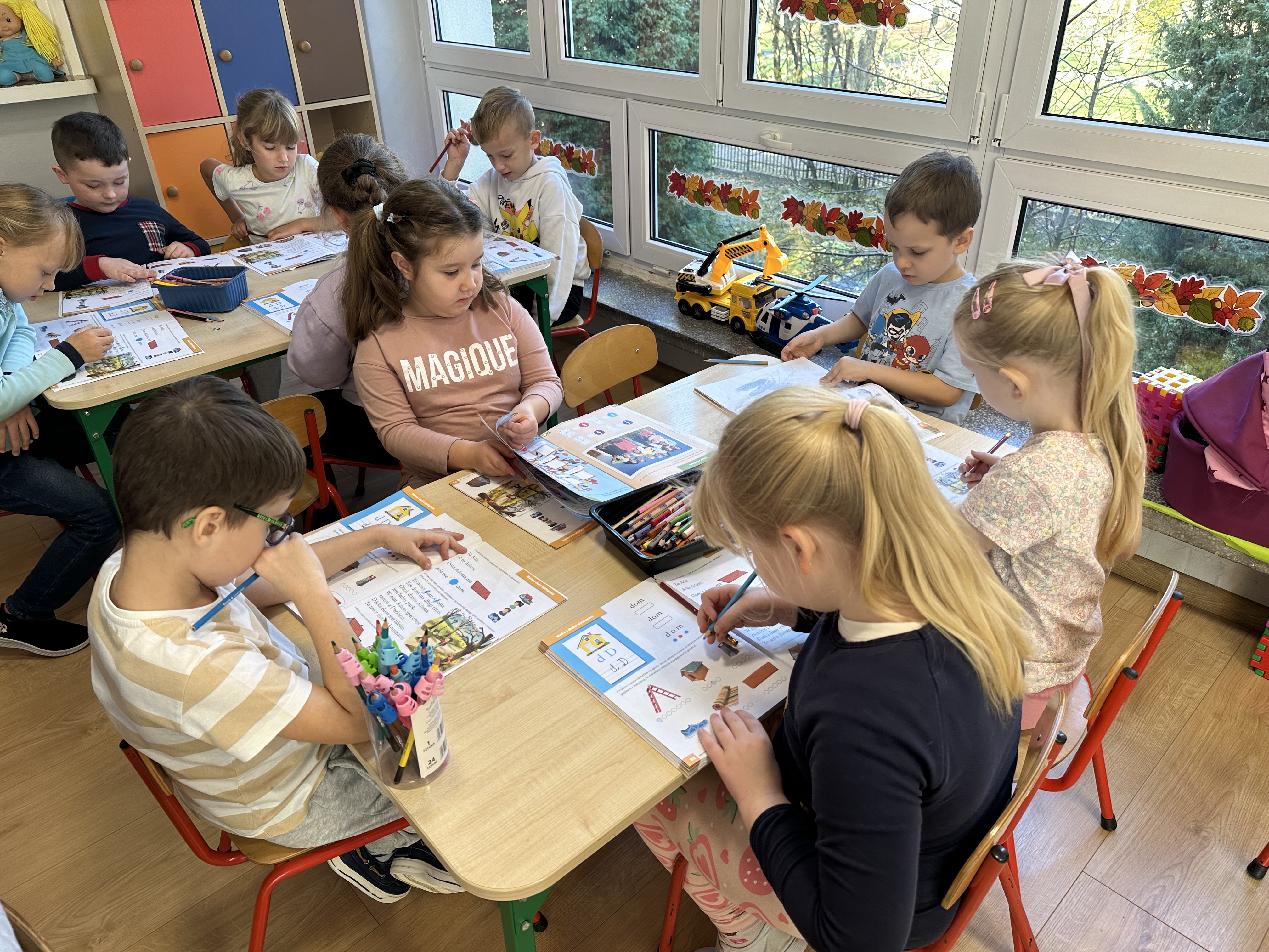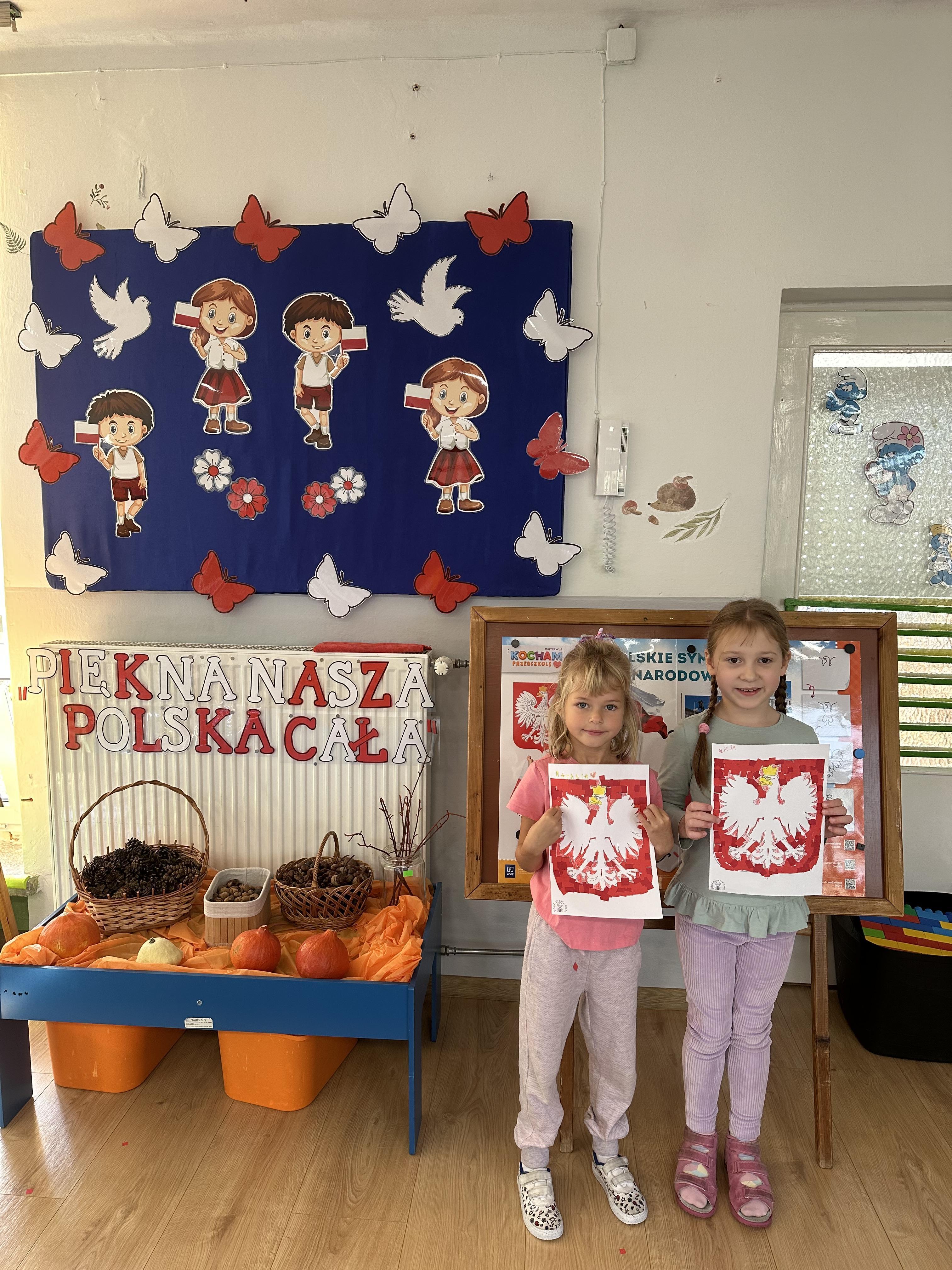 W poniedziałek dzieci wykonywały ćwiczenia rozciągające i rozluźniające oraz rozwijały małe partie mięśniowe. Opowiadanie Marii Pawlisz ,,Polska to nasz dom” stanowiło punkt wyjścia do wspólnej rozmowy o świętach państwowych. Dzieci zastanawiały się, w jaki sposób można dbać o nasz kraj i co robić, aby być przykładnym Polakiem. Kształtowały tym samym świadomość społeczną i obywatelską. Podczas zabaw: „Polskie święta narodowe”, „Świętujemy”, „Co świętujemy?” dzieci poznały, jakie święta obchodzimy w kraju i wyjaśniły, czym się różnią święta narodowe od pozostałych. Uczyły się współpracy i się integrowały. W zabawach przy stolikach kształtowały umiejętność rozszyfrowywania emocji i wyjaśniania ich przyczyn. Pod koniec dnia w trakcie zabawy „Święto narodowe czy rodzinne?” podsumowały wszystkie wiadomości. We wtorek po wysłuchaniu wiersza ,,Dzieciom” Antoniego Słomińskiego przedszkolaki zastanawiały się, jak mogą przysłużyć się innym ludziom oraz poznały nowy frazeologizm ,,wolny jak ptak”. W dalszej części dnia poszerzały wiedzę językową, nauczyły się wielkiej i małej litery D, d, dokonywały analizy i syntezy słuchowej słowa ,,dom”, wyróżniały głoskę d w nagłosie i rysowały literę w powietrzu palcem wskazującym. Dzieci wyszły również na dwór, aby pobawić się ruchowo na świeżym powietrzu. Podczas zabaw: „Na stacji D”, „Ułóż małe d” i „Szybka reakcja” utrwalały znajomość nowo poznanej litery. W środę po wprowadzającej do tematu dnia zabawie „W mieście” zapoznały się z liczbą 6. W trakcie zabaw: „Jedziemy tramwajem”, „W tramwaju”, „O jedno więcej” i „Jak wygląda szóstka?” rozwijały swoje kompetencje matematyczne, uczyły się przeliczania do 6, poznały obraz graficzny 6 i układały go z kartoników. Podczas zabaw posługiwały się liczbą 6 w aspekcie kardynalnym, porządkowym i miarowym. Rozwijały małą motorykę podczas lepienia cyfry 6 z plasteliny. Przy stolikach kształtowały umiejętność kodowania. Zakończyły dzień wykonaniem pracy plastycznej. Czwartek poświęcony był kształtowaniu umiejętności podawania nazw zwierząt gospodarskich i ich młodych w czasie zabawy „Zwierzęta i ich młode” (wraz z głoskowaniem). W trakcie zabaw „Na wsi i w okolicy” i „Wyprawa na wieś” dzieci zapoznały się z wiejskim krajobrazem oraz ćwiczyły pamięć wzrokową i spostrzegawczość. W tym dniu pobudzały ciekawość przyrodniczą, dzieliły się swoimi skojarzeniami związanymi z wsią i rozszyfrowywały odgłosy wiejskich zwierząt w odpowiedniej kolejności. W piątek dzieci podczas zabawy „Podobne czy różne?” sprawdzały, ile zapamiętały z wcześniejszych zajęć i czy dostrzegają różnice pomiędzy świętami narodowymi a innymi. Po zabawie „O co chodzi w hymnie?” potrafiły wyjaśnić znaczenie słów w polskim hymnie narodowym oraz to, w jakich okolicznościach powstał, przypomniały sobie jego słowa i wysłuchały wspólnie melodii hymnu. Zakończyły dzień wspólnym odśpiewaniem hymnu i nauczeniem się kolejnych jego zwrotek.