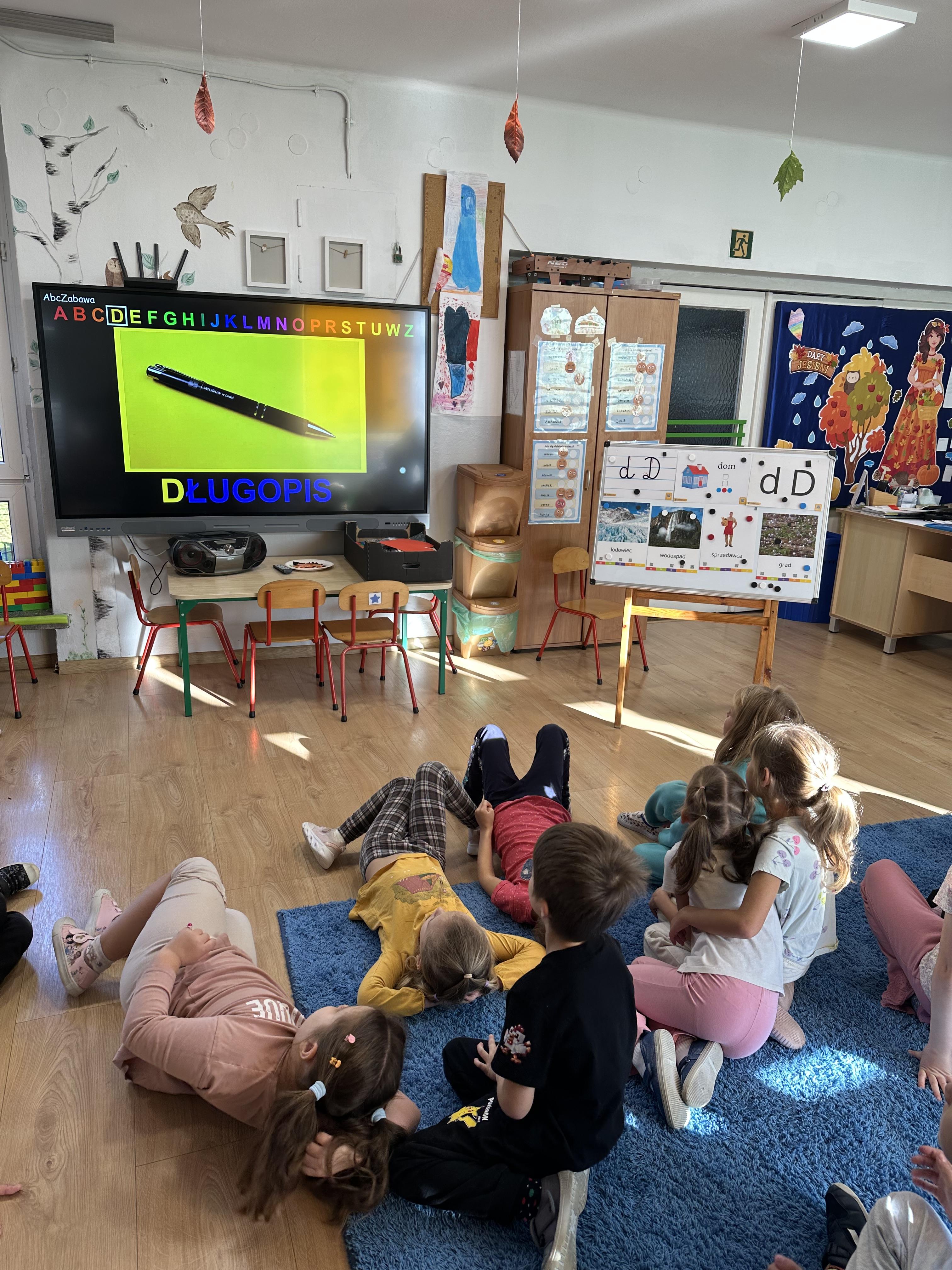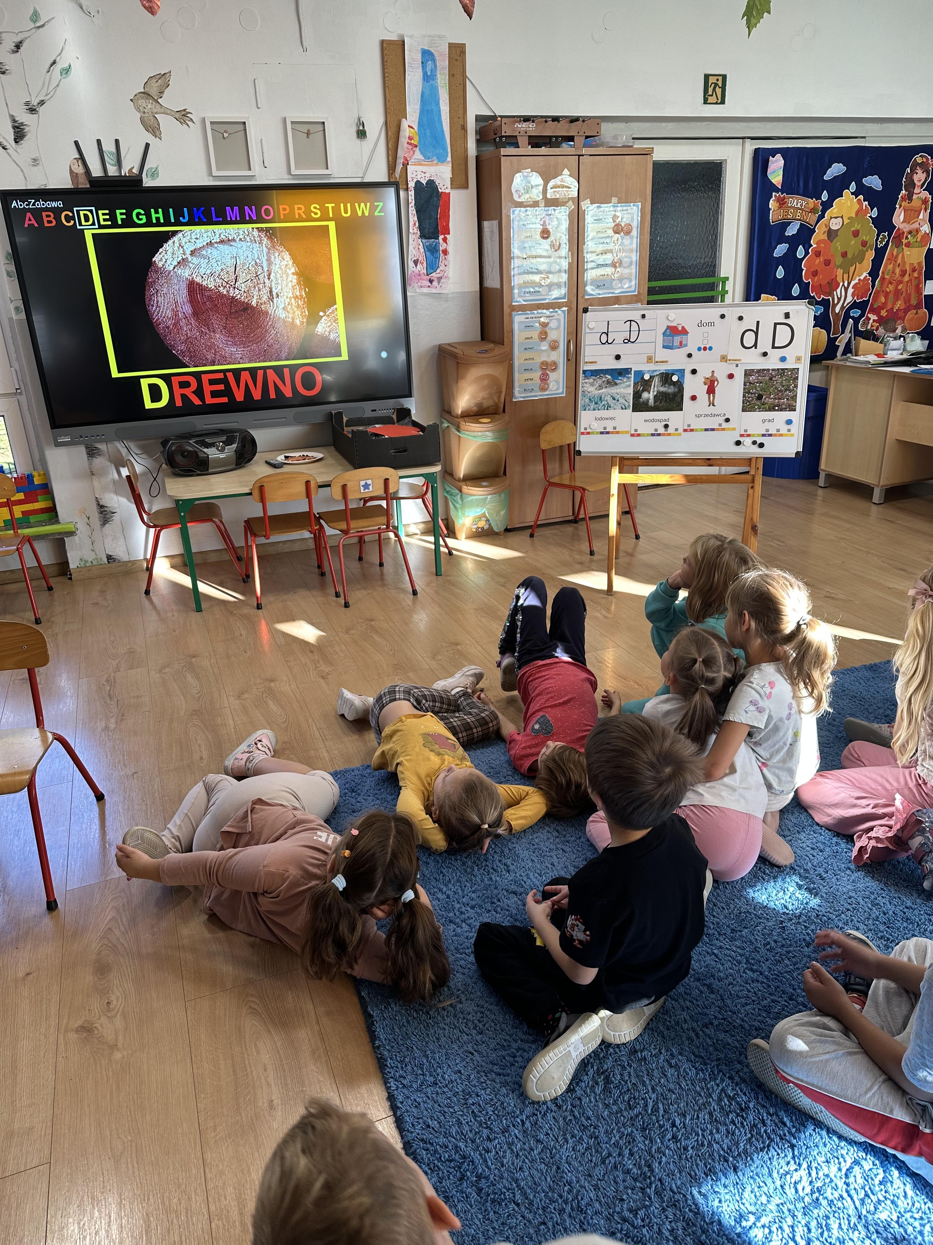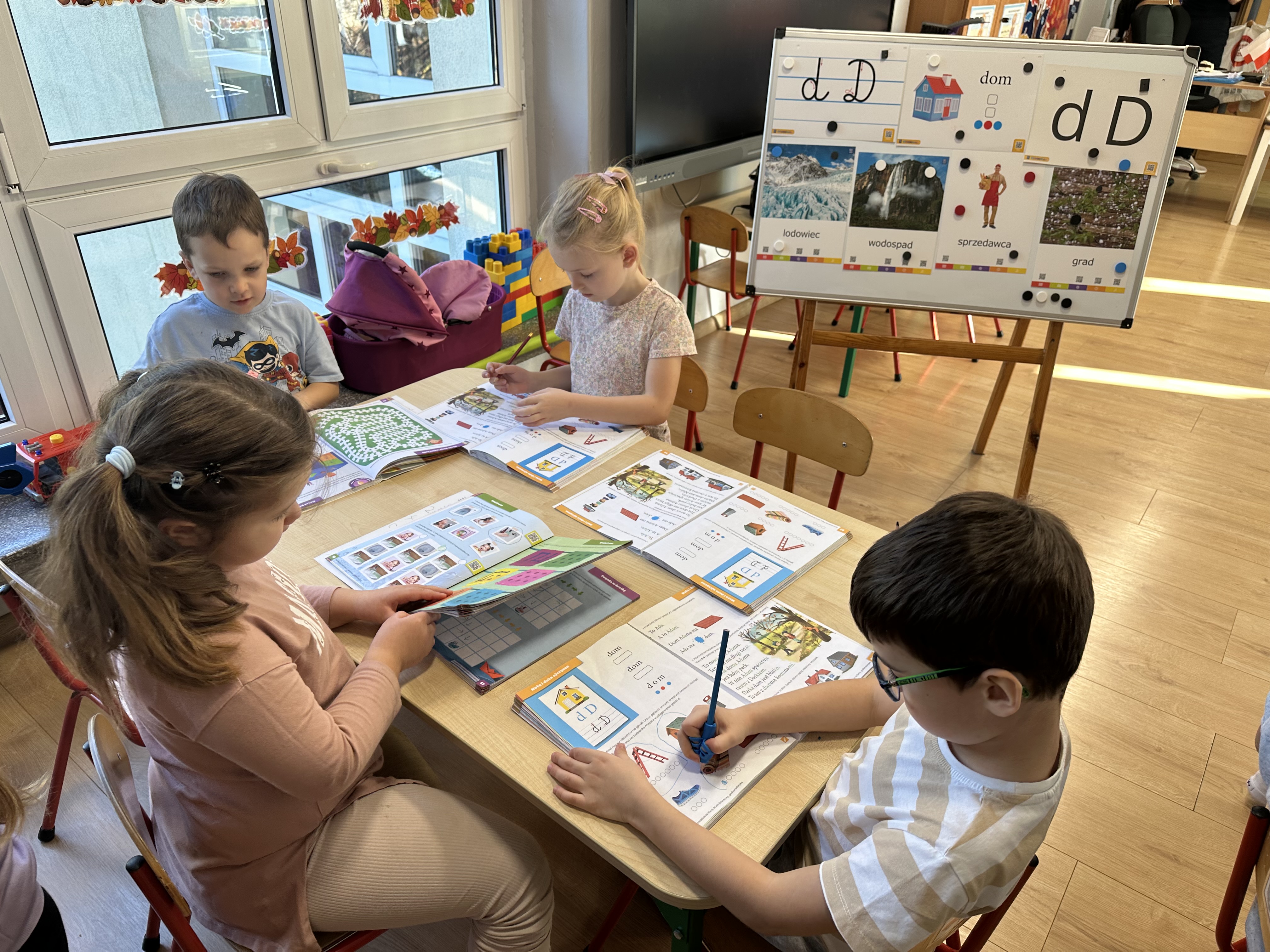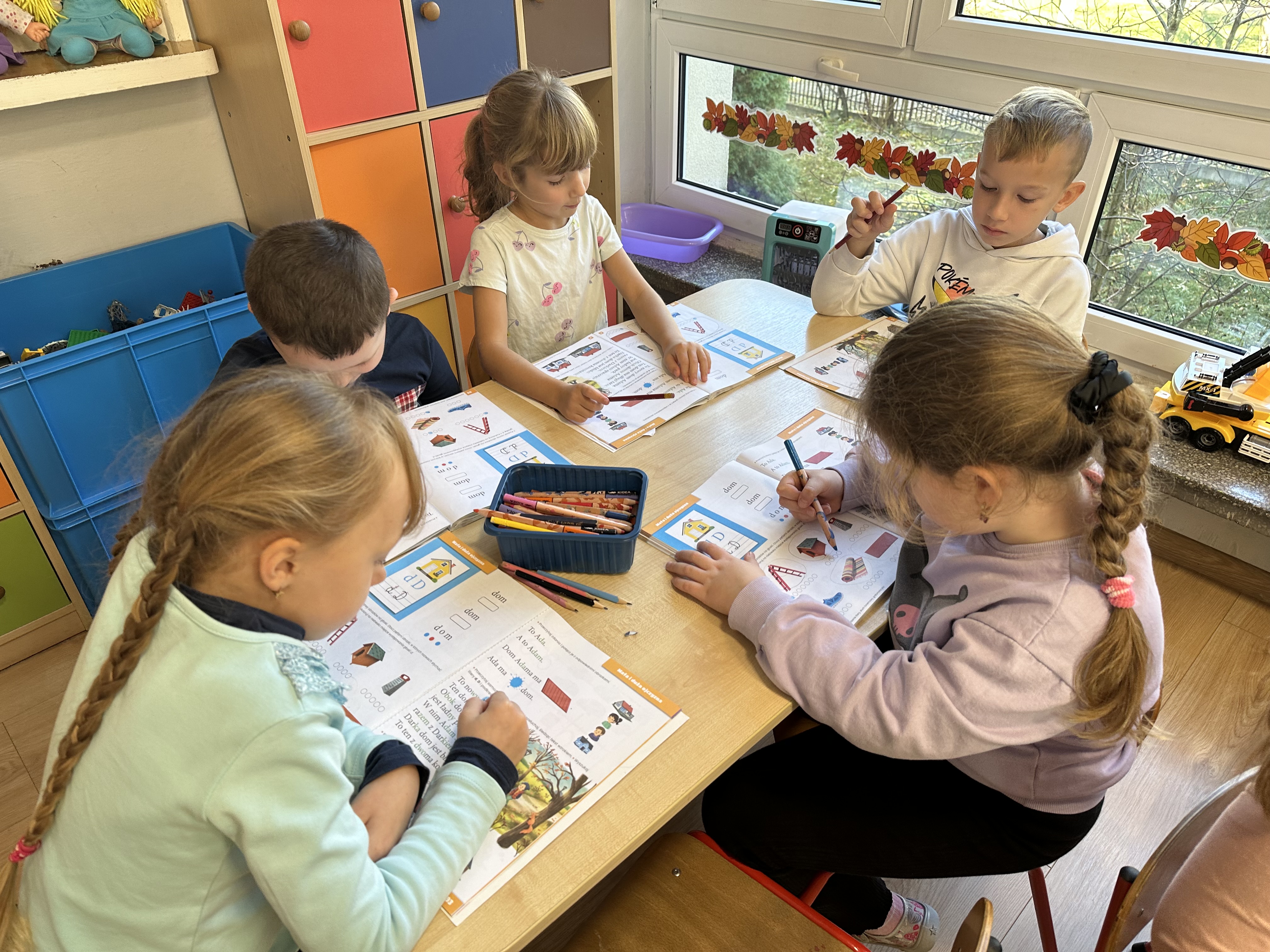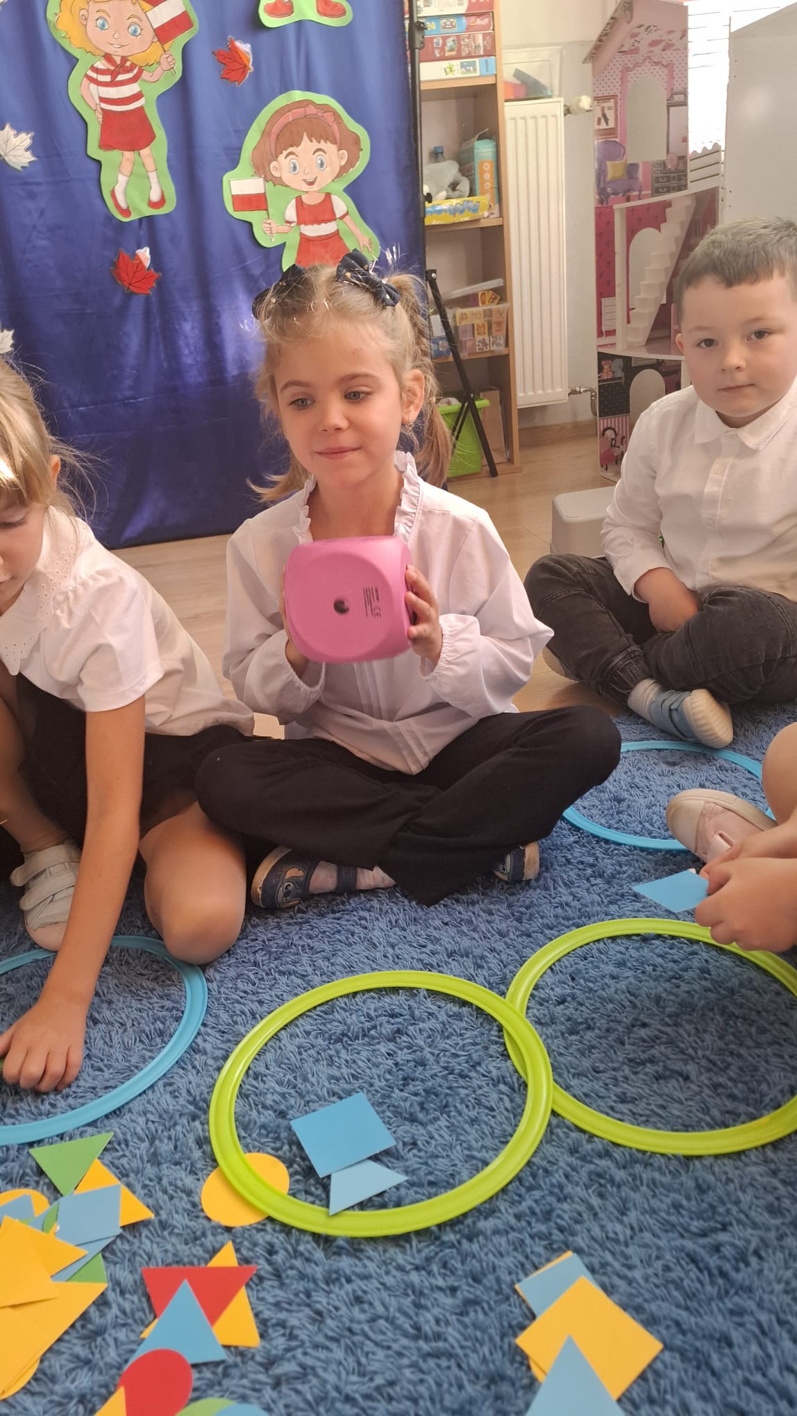 W poniedziałek dzieci wykonywały ćwiczenia rozciągające i rozluźniające oraz rozwijały małe partie mięśniowe. Opowiadanie Marii Pawlisz ,,Polska to nasz dom” stanowiło punkt wyjścia do wspólnej rozmowy o świętach państwowych. Dzieci zastanawiały się, w jaki sposób można dbać o nasz kraj i co robić, aby być przykładnym Polakiem. Kształtowały tym samym świadomość społeczną i obywatelską. Podczas zabaw: „Polskie święta narodowe”, „Świętujemy”, „Co świętujemy?” dzieci poznały, jakie święta obchodzimy w kraju i wyjaśniły, czym się różnią święta narodowe od pozostałych. Uczyły się współpracy i się integrowały. W zabawach przy stolikach kształtowały umiejętność rozszyfrowywania emocji i wyjaśniania ich przyczyn. Pod koniec dnia w trakcie zabawy „Święto narodowe czy rodzinne?” podsumowały wszystkie wiadomości. We wtorek po wysłuchaniu wiersza ,,Dzieciom” Antoniego Słomińskiego przedszkolaki zastanawiały się, jak mogą przysłużyć się innym ludziom oraz poznały nowy frazeologizm ,,wolny jak ptak”. W dalszej części dnia poszerzały wiedzę językową, nauczyły się wielkiej i małej litery D, d, dokonywały analizy i syntezy słuchowej słowa ,,dom”, wyróżniały głoskę d w nagłosie i rysowały literę w powietrzu palcem wskazującym. Dzieci wyszły również na dwór, aby pobawić się ruchowo na świeżym powietrzu. Podczas zabaw: „Na stacji D”, „Ułóż małe d” i „Szybka reakcja” utrwalały znajomość nowo poznanej litery. W środę po wprowadzającej do tematu dnia zabawie „W mieście” zapoznały się z liczbą 6. W trakcie zabaw: „Jedziemy tramwajem”, „W tramwaju”, „O jedno więcej” i „Jak wygląda szóstka?” rozwijały swoje kompetencje matematyczne, uczyły się przeliczania do 6, poznały obraz graficzny 6 i układały go z kartoników. Podczas zabaw posługiwały się liczbą 6 w aspekcie kardynalnym, porządkowym i miarowym. Rozwijały małą motorykę podczas lepienia cyfry 6 z plasteliny. Przy stolikach kształtowały umiejętność kodowania. Zakończyły dzień wykonaniem pracy plastycznej. Czwartek poświęcony był kształtowaniu umiejętności podawania nazw zwierząt gospodarskich i ich młodych w czasie zabawy „Zwierzęta i ich młode” (wraz z głoskowaniem). W trakcie zabaw „Na wsi i w okolicy” i „Wyprawa na wieś” dzieci zapoznały się z wiejskim krajobrazem oraz ćwiczyły pamięć wzrokową i spostrzegawczość. W tym dniu pobudzały ciekawość przyrodniczą, dzieliły się swoimi skojarzeniami związanymi z wsią i rozszyfrowywały odgłosy wiejskich zwierząt w odpowiedniej kolejności. W piątek dzieci podczas zabawy „Podobne czy różne?” sprawdzały, ile zapamiętały z wcześniejszych zajęć i czy dostrzegają różnice pomiędzy świętami narodowymi a innymi. Po zabawie „O co chodzi w hymnie?” potrafiły wyjaśnić znaczenie słów w polskim hymnie narodowym oraz to, w jakich okolicznościach powstał, przypomniały sobie jego słowa i wysłuchały wspólnie melodii hymnu. Zakończyły dzień wspólnym odśpiewaniem hymnu i nauczeniem się kolejnych jego zwrotek.