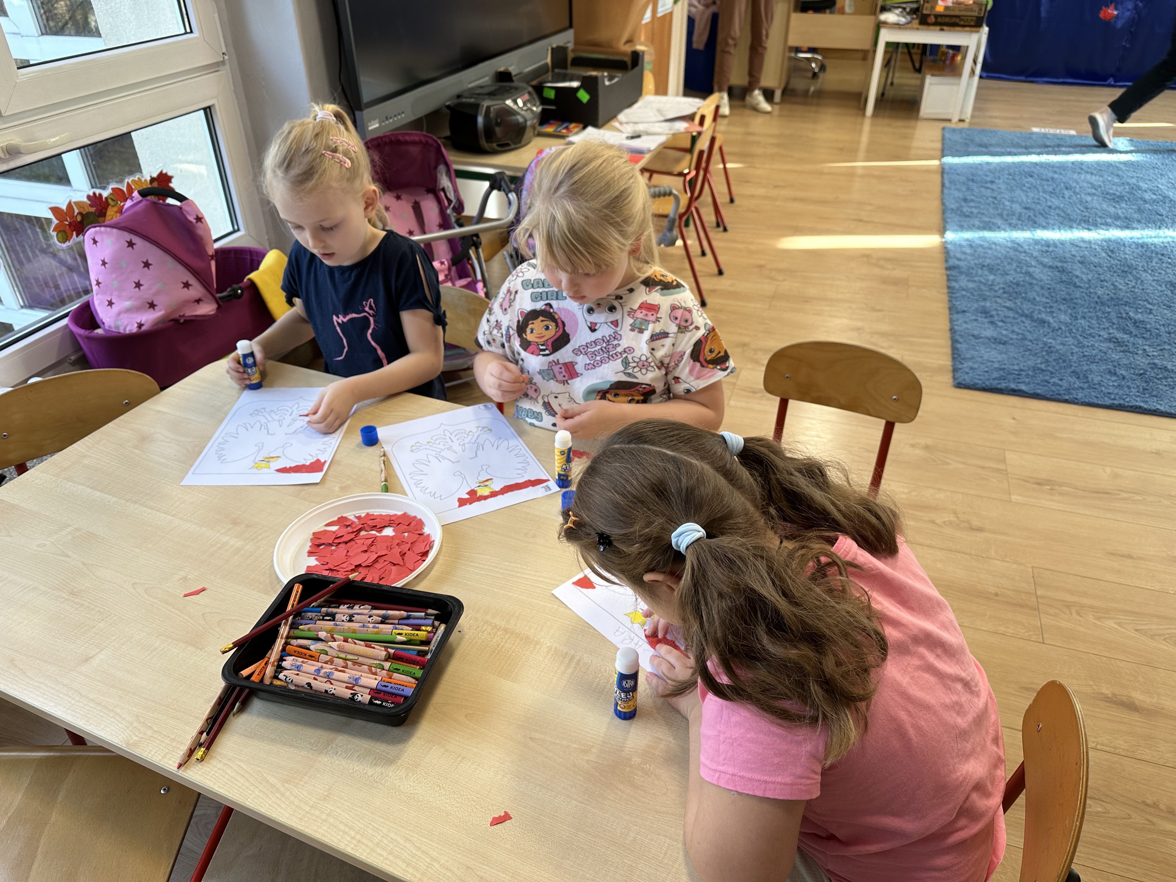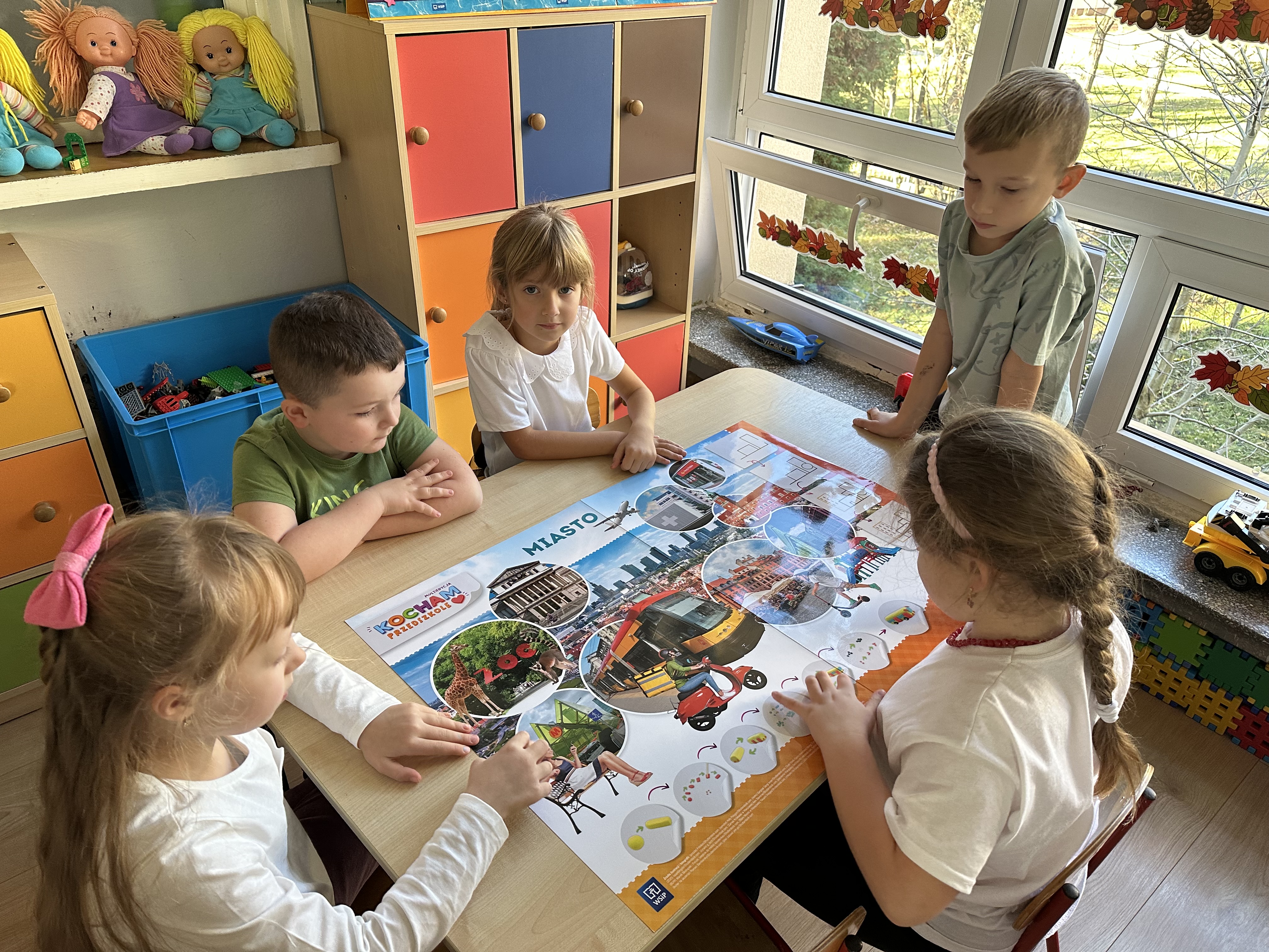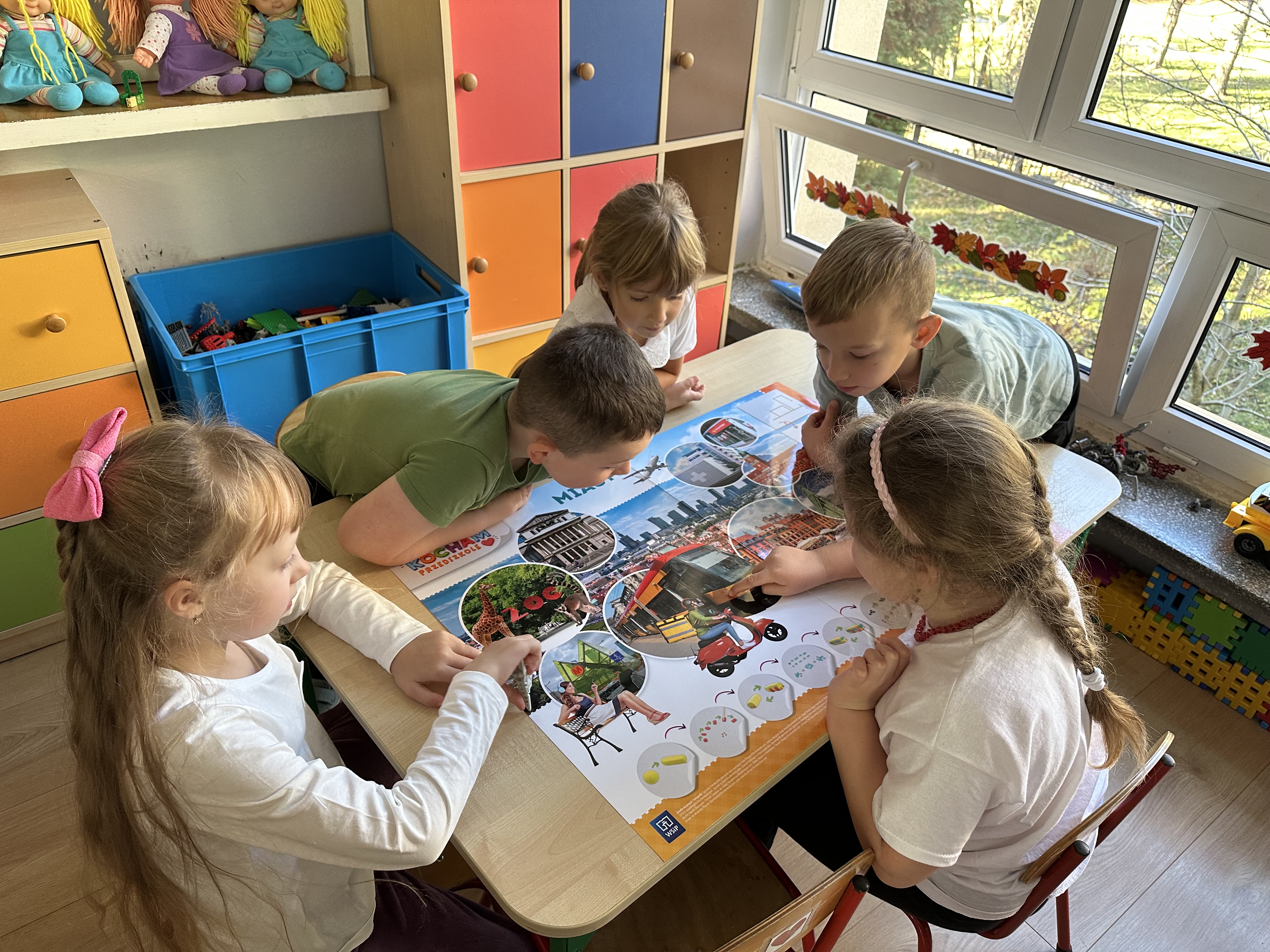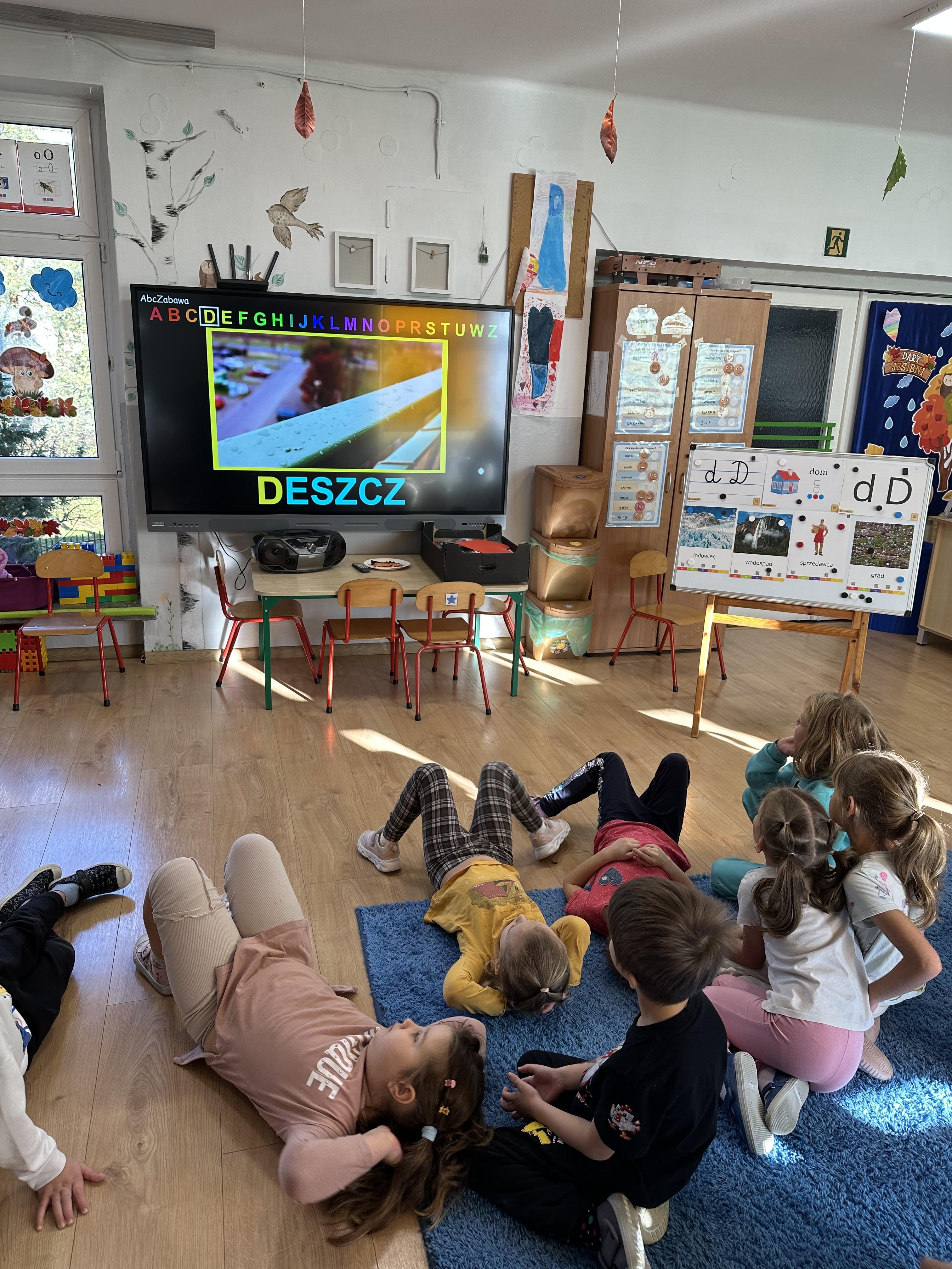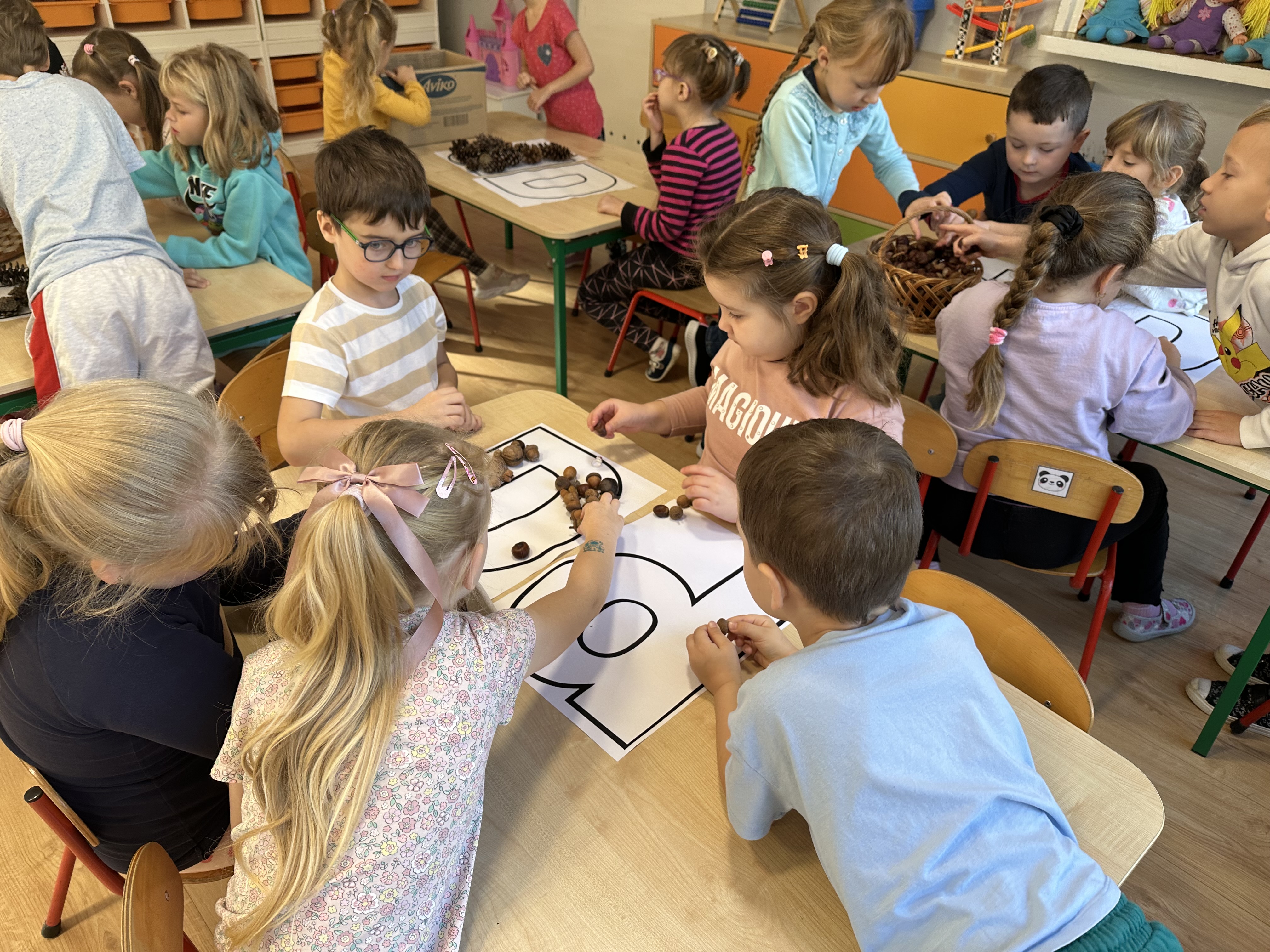 W poniedziałek dzieci wykonywały ćwiczenia rozciągające i rozluźniające oraz rozwijały małe partie mięśniowe. Opowiadanie Marii Pawlisz ,,Polska to nasz dom” stanowiło punkt wyjścia do wspólnej rozmowy o świętach państwowych. Dzieci zastanawiały się, w jaki sposób można dbać o nasz kraj i co robić, aby być przykładnym Polakiem. Kształtowały tym samym świadomość społeczną i obywatelską. Podczas zabaw: „Polskie święta narodowe”, „Świętujemy”, „Co świętujemy?” dzieci poznały, jakie święta obchodzimy w kraju i wyjaśniły, czym się różnią święta narodowe od pozostałych. Uczyły się współpracy i się integrowały. W zabawach przy stolikach kształtowały umiejętność rozszyfrowywania emocji i wyjaśniania ich przyczyn. Pod koniec dnia w trakcie zabawy „Święto narodowe czy rodzinne?” podsumowały wszystkie wiadomości. We wtorek po wysłuchaniu wiersza ,,Dzieciom” Antoniego Słomińskiego przedszkolaki zastanawiały się, jak mogą przysłużyć się innym ludziom oraz poznały nowy frazeologizm ,,wolny jak ptak”. W dalszej części dnia poszerzały wiedzę językową, nauczyły się wielkiej i małej litery D, d, dokonywały analizy i syntezy słuchowej słowa ,,dom”, wyróżniały głoskę d w nagłosie i rysowały literę w powietrzu palcem wskazującym. Dzieci wyszły również na dwór, aby pobawić się ruchowo na świeżym powietrzu. Podczas zabaw: „Na stacji D”, „Ułóż małe d” i „Szybka reakcja” utrwalały znajomość nowo poznanej litery. W środę po wprowadzającej do tematu dnia zabawie „W mieście” zapoznały się z liczbą 6. W trakcie zabaw: „Jedziemy tramwajem”, „W tramwaju”, „O jedno więcej” i „Jak wygląda szóstka?” rozwijały swoje kompetencje matematyczne, uczyły się przeliczania do 6, poznały obraz graficzny 6 i układały go z kartoników. Podczas zabaw posługiwały się liczbą 6 w aspekcie kardynalnym, porządkowym i miarowym. Rozwijały małą motorykę podczas lepienia cyfry 6 z plasteliny. Przy stolikach kształtowały umiejętność kodowania. Zakończyły dzień wykonaniem pracy plastycznej. Czwartek poświęcony był kształtowaniu umiejętności podawania nazw zwierząt gospodarskich i ich młodych w czasie zabawy „Zwierzęta i ich młode” (wraz z głoskowaniem). W trakcie zabaw „Na wsi i w okolicy” i „Wyprawa na wieś” dzieci zapoznały się z wiejskim krajobrazem oraz ćwiczyły pamięć wzrokową i spostrzegawczość. W tym dniu pobudzały ciekawość przyrodniczą, dzieliły się swoimi skojarzeniami związanymi z wsią i rozszyfrowywały odgłosy wiejskich zwierząt w odpowiedniej kolejności. W piątek dzieci podczas zabawy „Podobne czy różne?” sprawdzały, ile zapamiętały z wcześniejszych zajęć i czy dostrzegają różnice pomiędzy świętami narodowymi a innymi. Po zabawie „O co chodzi w hymnie?” potrafiły wyjaśnić znaczenie słów w polskim hymnie narodowym oraz to, w jakich okolicznościach powstał, przypomniały sobie jego słowa i wysłuchały wspólnie melodii hymnu. Zakończyły dzień wspólnym odśpiewaniem hymnu i nauczeniem się kolejnych jego zwrotek.