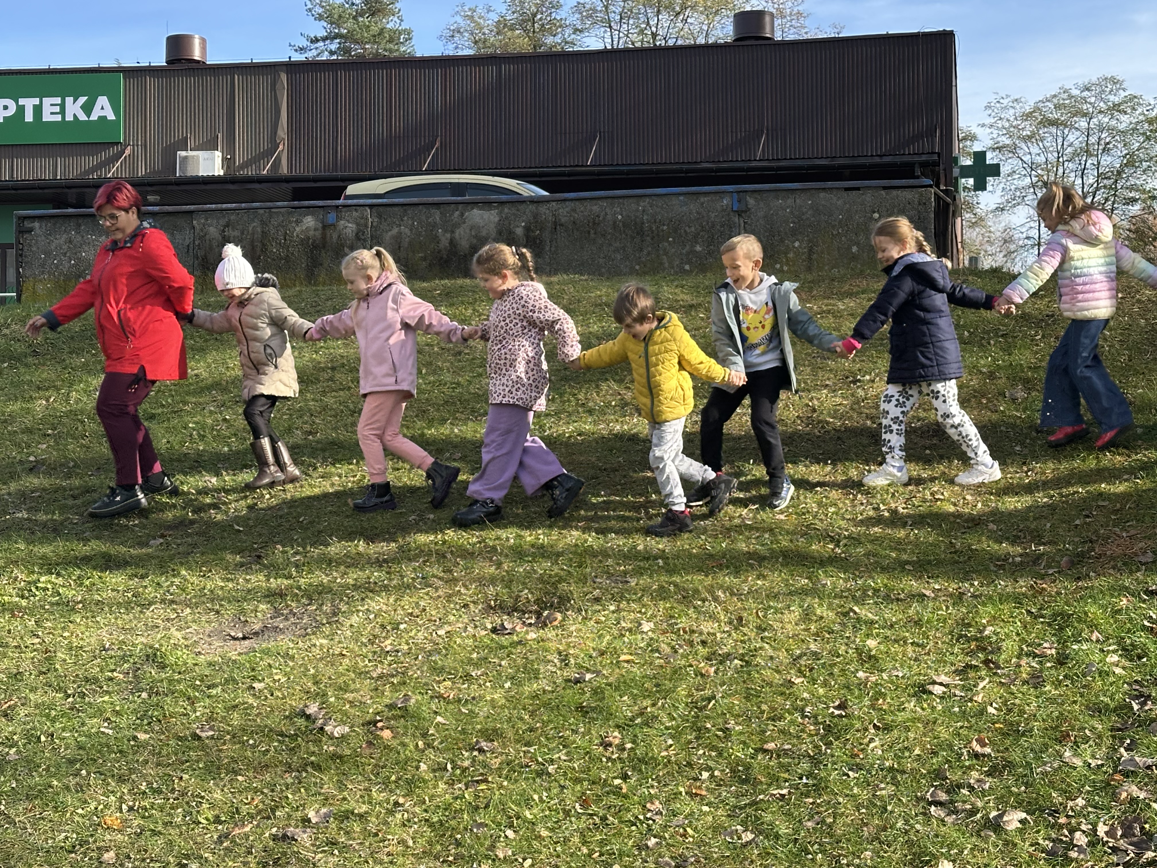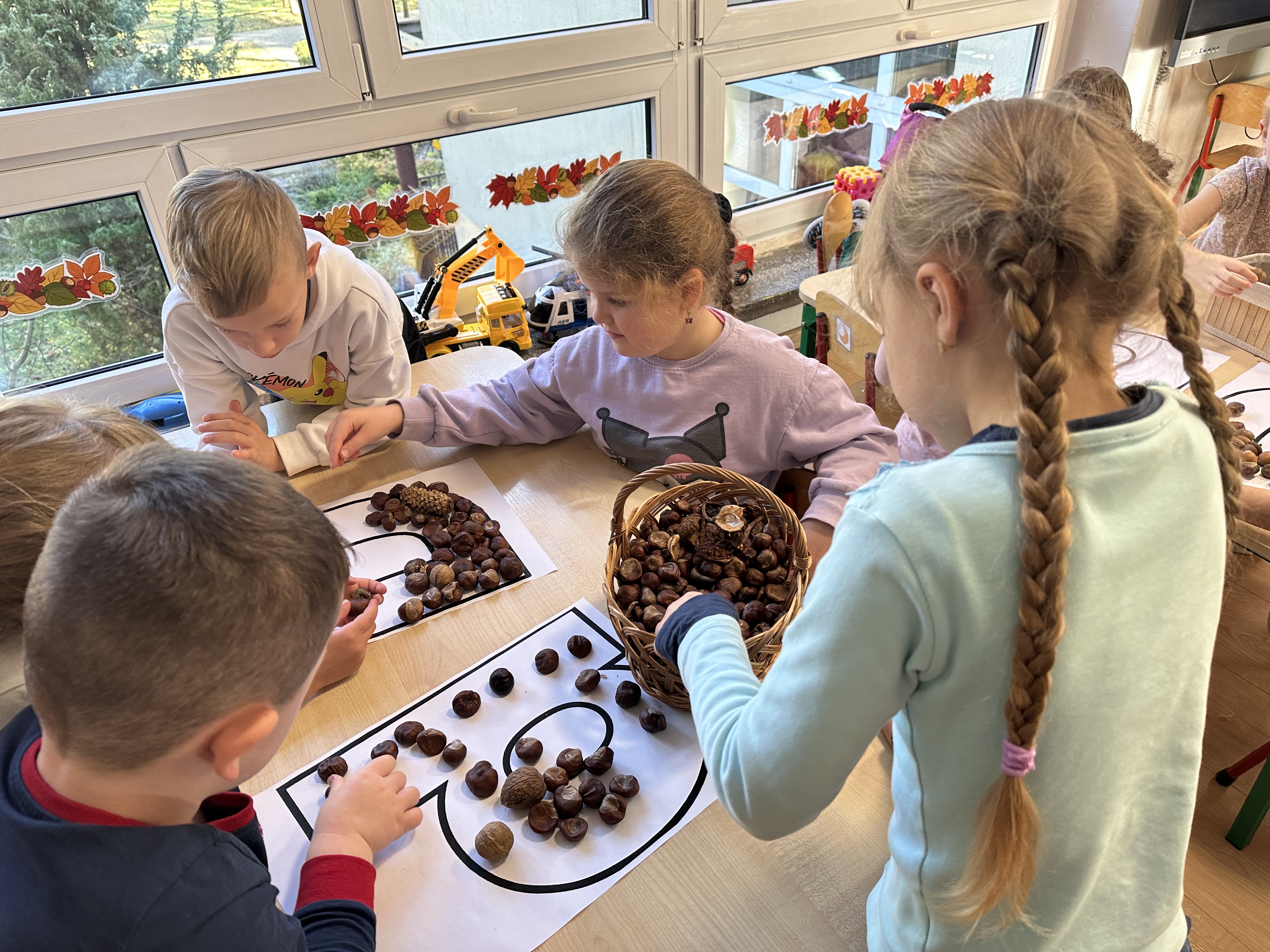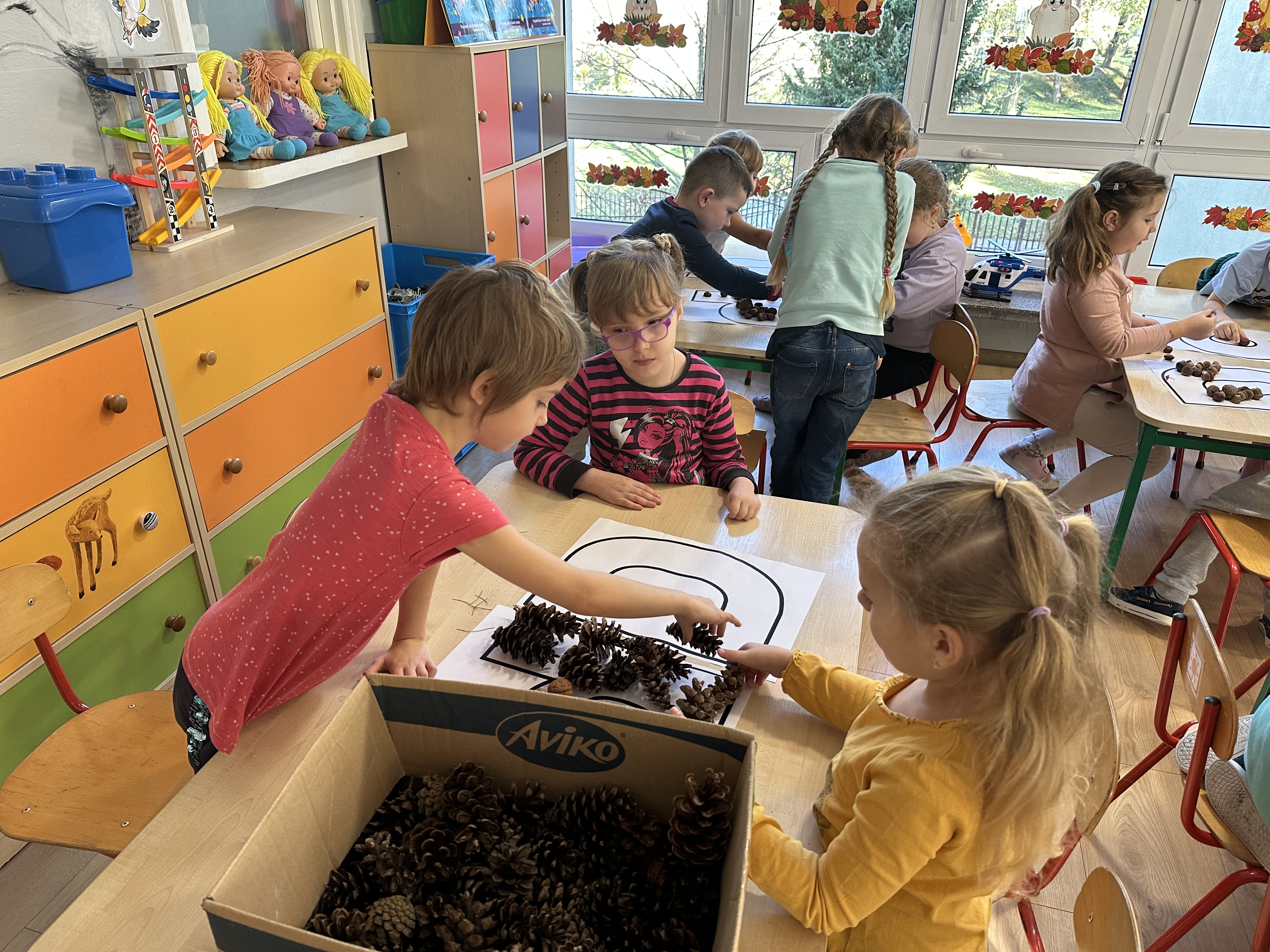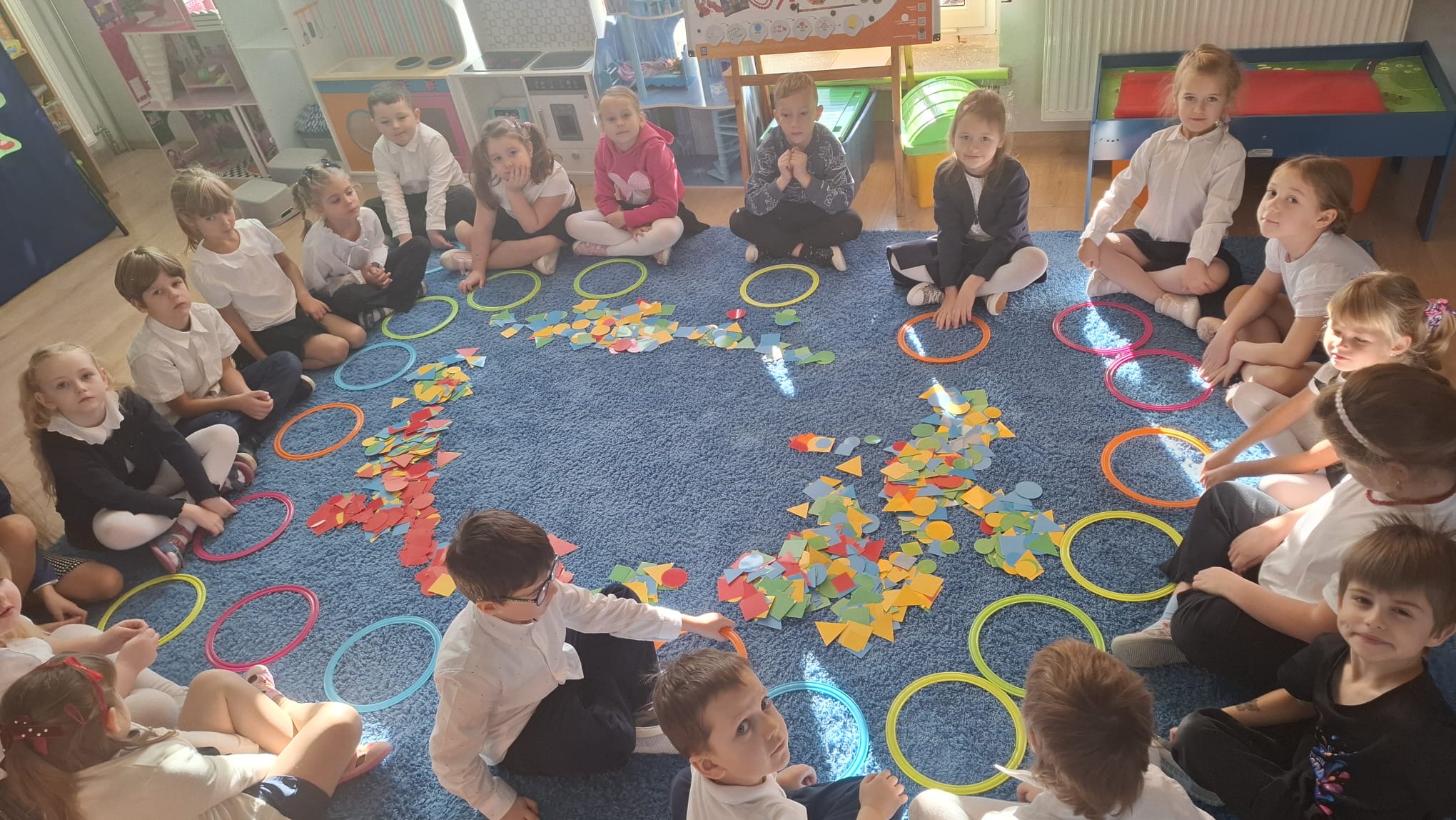W poniedziałek dzieci wykonywały ćwiczenia rozciągające i rozluźniające oraz rozwijały małe partie mięśniowe. Opowiadanie Marii Pawlisz ,,Polska to nasz dom” stanowiło punkt wyjścia do wspólnej rozmowy o świętach państwowych. Dzieci zastanawiały się, w jaki sposób można dbać o nasz kraj i co robić, aby być przykładnym Polakiem. Kształtowały tym samym świadomość społeczną i obywatelską. Podczas zabaw: „Polskie święta narodowe”, „Świętujemy”, „Co świętujemy?” dzieci poznały, jakie święta obchodzimy w kraju i wyjaśniły, czym się różnią święta narodowe od pozostałych. Uczyły się współpracy i się integrowały. W zabawach przy stolikach kształtowały umiejętność rozszyfrowywania emocji i wyjaśniania ich przyczyn. Pod koniec dnia w trakcie zabawy „Święto narodowe czy rodzinne?” podsumowały wszystkie wiadomości. We wtorek po wysłuchaniu wiersza ,,Dzieciom” Antoniego Słomińskiego przedszkolaki zastanawiały się, jak mogą przysłużyć się innym ludziom oraz poznały nowy frazeologizm ,,wolny jak ptak”. W dalszej części dnia poszerzały wiedzę językową, nauczyły się wielkiej i małej litery D, d, dokonywały analizy i syntezy słuchowej słowa ,,dom”, wyróżniały głoskę d w nagłosie i rysowały literę w powietrzu palcem wskazującym. Dzieci wyszły również na dwór, aby pobawić się ruchowo na świeżym powietrzu. Podczas zabaw: „Na stacji D”, „Ułóż małe d” i „Szybka reakcja” utrwalały znajomość nowo poznanej litery. W środę po wprowadzającej do tematu dnia zabawie „W mieście” zapoznały się z liczbą 6. W trakcie zabaw: „Jedziemy tramwajem”, „W tramwaju”, „O jedno więcej” i „Jak wygląda szóstka?” rozwijały swoje kompetencje matematyczne, uczyły się przeliczania do 6, poznały obraz graficzny 6 i układały go z kartoników. Podczas zabaw posługiwały się liczbą 6 w aspekcie kardynalnym, porządkowym i miarowym. Rozwijały małą motorykę podczas lepienia cyfry 6 z plasteliny. Przy stolikach kształtowały umiejętność kodowania. Zakończyły dzień wykonaniem pracy plastycznej. Czwartek poświęcony był kształtowaniu umiejętności podawania nazw zwierząt gospodarskich i ich młodych w czasie zabawy „Zwierzęta i ich młode” (wraz z głoskowaniem). W trakcie zabaw „Na wsi i w okolicy” i „Wyprawa na wieś” dzieci zapoznały się z wiejskim krajobrazem oraz ćwiczyły pamięć wzrokową i spostrzegawczość. W tym dniu pobudzały ciekawość przyrodniczą, dzieliły się swoimi skojarzeniami związanymi z wsią i rozszyfrowywały odgłosy wiejskich zwierząt w odpowiedniej kolejności. W piątek dzieci podczas zabawy „Podobne czy różne?” sprawdzały, ile zapamiętały z wcześniejszych zajęć i czy dostrzegają różnice pomiędzy świętami narodowymi a innymi. Po zabawie „O co chodzi w hymnie?” potrafiły wyjaśnić znaczenie słów w polskim hymnie narodowym oraz to, w jakich okolicznościach powstał, przypomniały sobie jego słowa i wysłuchały wspólnie melodii hymnu. Zakończyły dzień wspólnym odśpiewaniem hymnu i nauczeniem się kolejnych jego zwrotek.