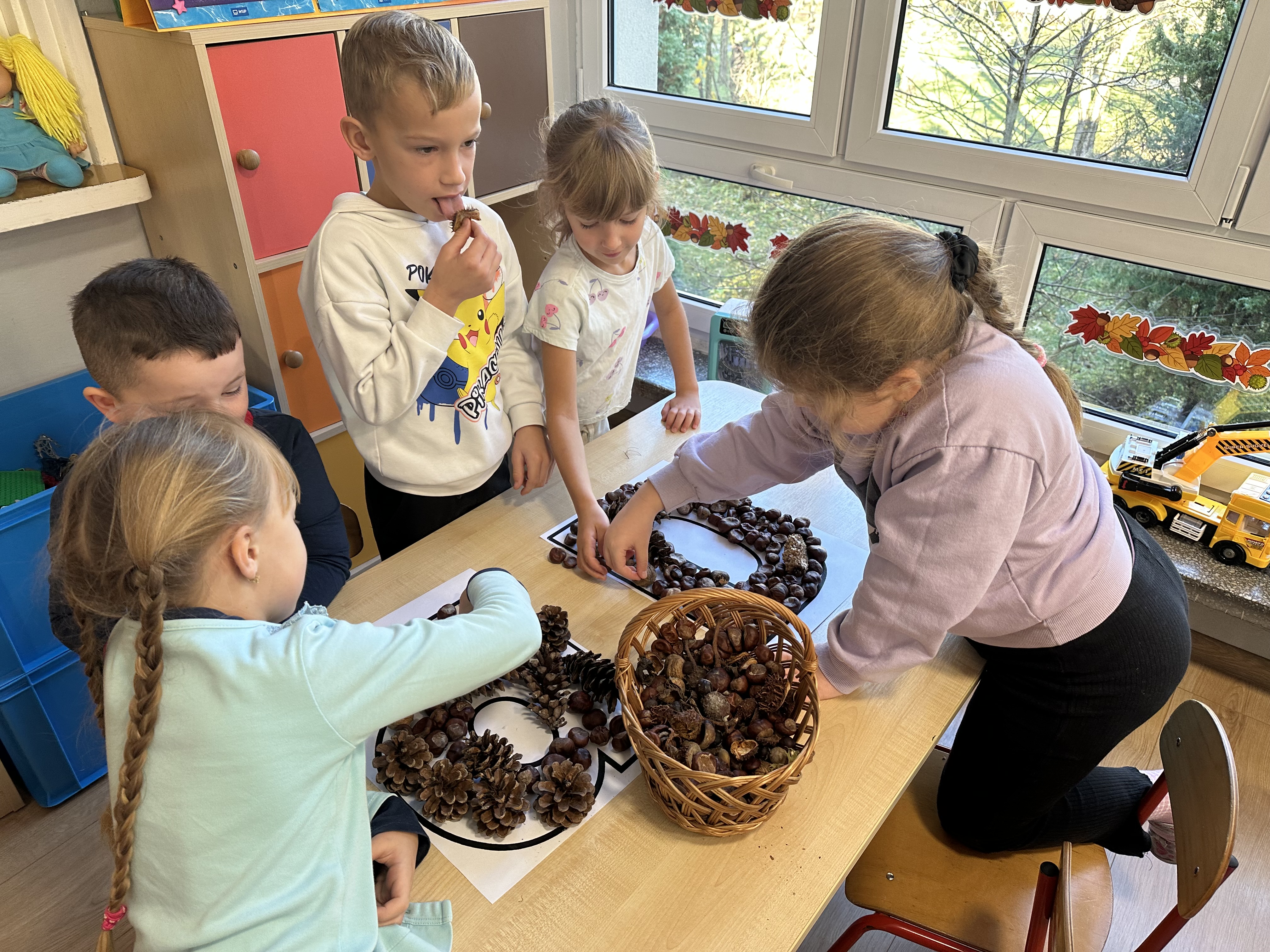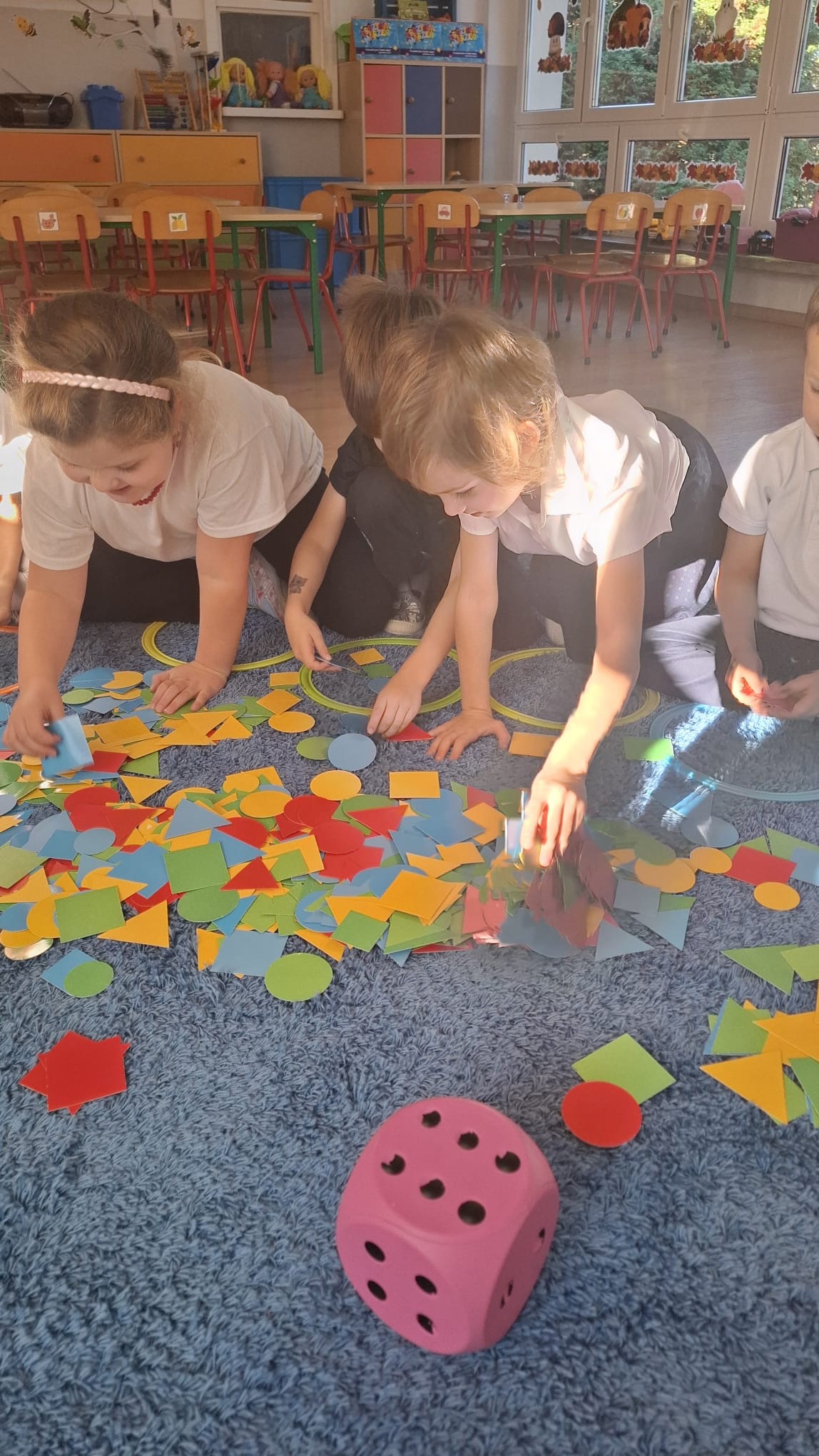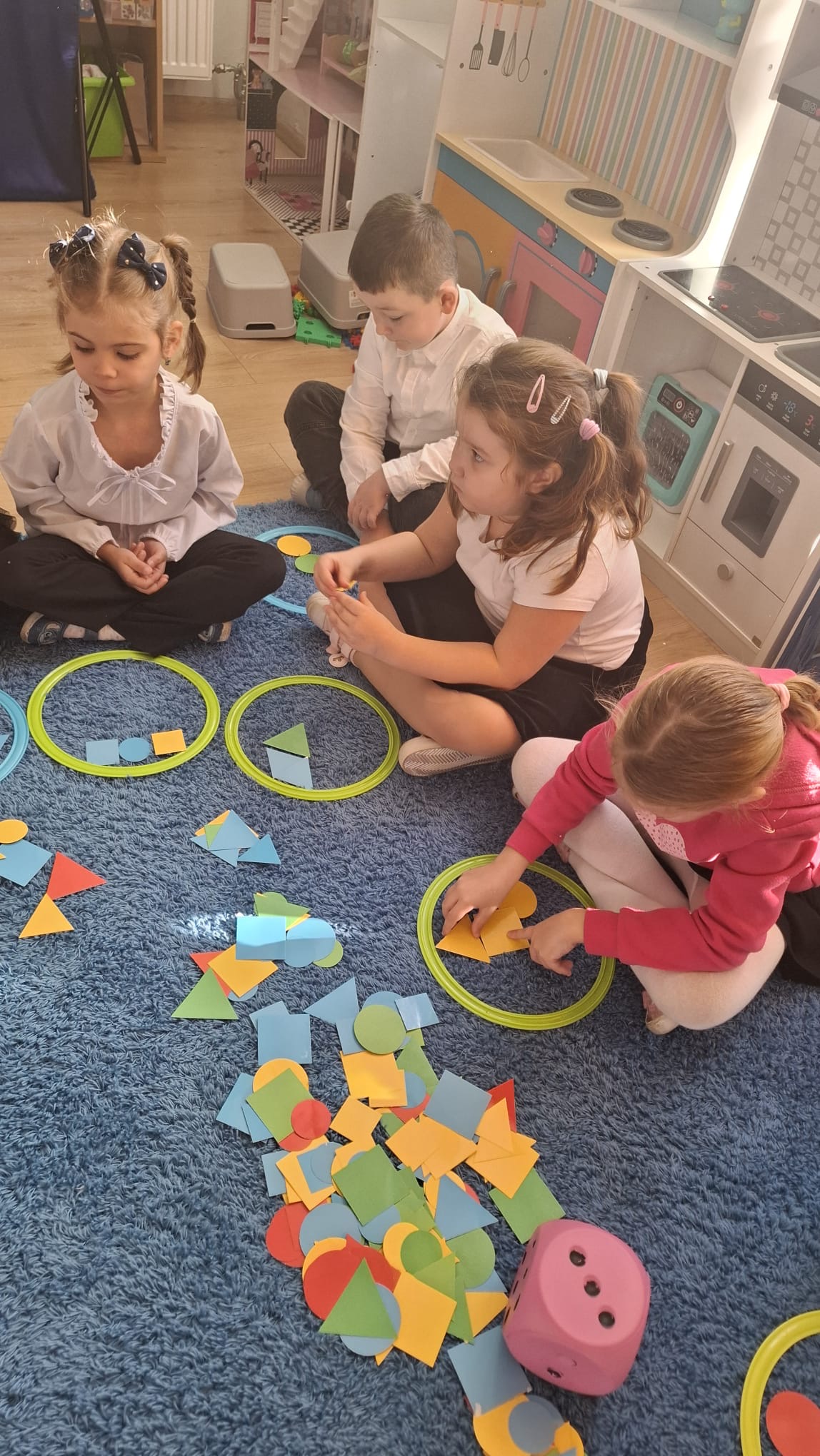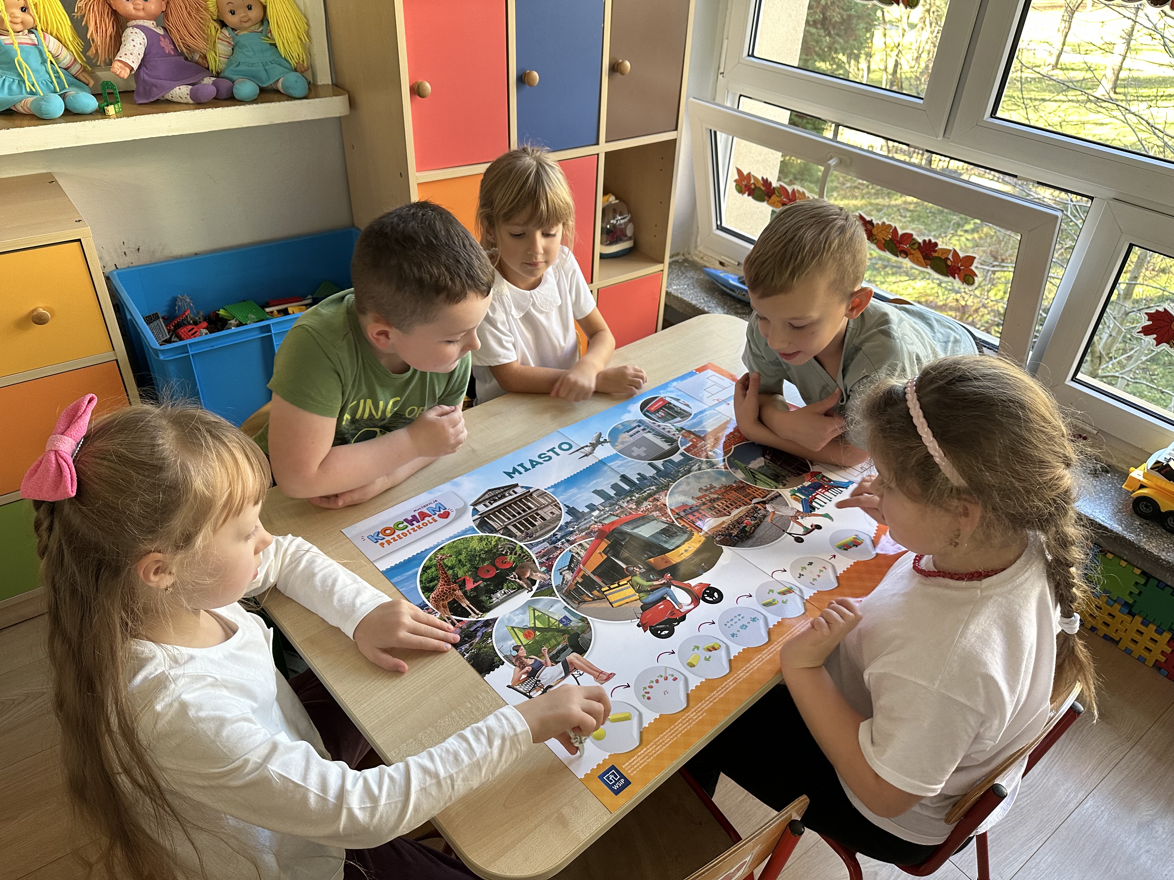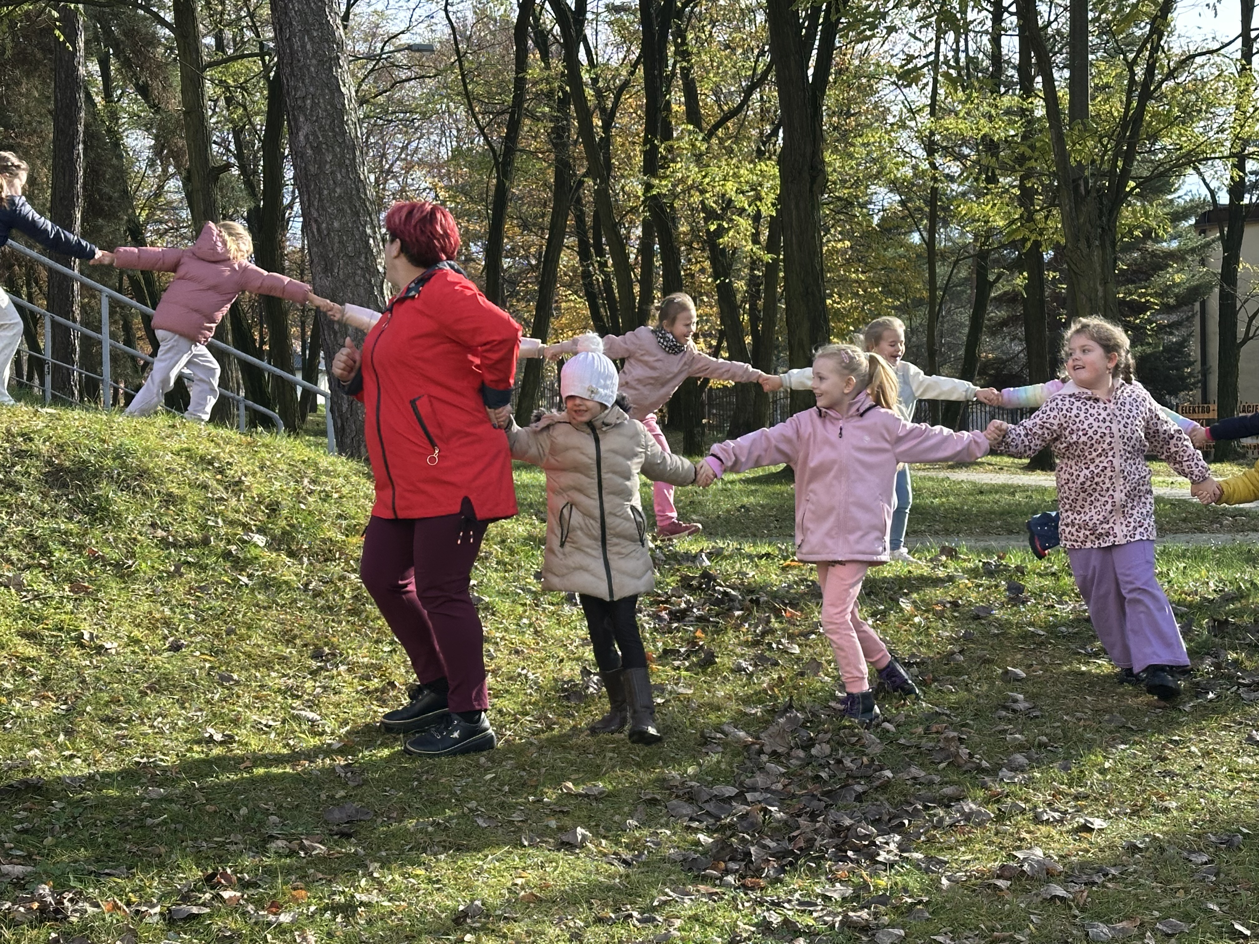 W poniedziałek dzieci wykonywały ćwiczenia rozciągające i rozluźniające oraz rozwijały małe partie mięśniowe. Opowiadanie Marii Pawlisz ,,Polska to nasz dom” stanowiło punkt wyjścia do wspólnej rozmowy o świętach państwowych. Dzieci zastanawiały się, w jaki sposób można dbać o nasz kraj i co robić, aby być przykładnym Polakiem. Kształtowały tym samym świadomość społeczną i obywatelską. Podczas zabaw: „Polskie święta narodowe”, „Świętujemy”, „Co świętujemy?” dzieci poznały, jakie święta obchodzimy w kraju i wyjaśniły, czym się różnią święta narodowe od pozostałych. Uczyły się współpracy i się integrowały. W zabawach przy stolikach kształtowały umiejętność rozszyfrowywania emocji i wyjaśniania ich przyczyn. Pod koniec dnia w trakcie zabawy „Święto narodowe czy rodzinne?” podsumowały wszystkie wiadomości. We wtorek po wysłuchaniu wiersza ,,Dzieciom” Antoniego Słomińskiego przedszkolaki zastanawiały się, jak mogą przysłużyć się innym ludziom oraz poznały nowy frazeologizm ,,wolny jak ptak”. W dalszej części dnia poszerzały wiedzę językową, nauczyły się wielkiej i małej litery D, d, dokonywały analizy i syntezy słuchowej słowa ,,dom”, wyróżniały głoskę d w nagłosie i rysowały literę w powietrzu palcem wskazującym. Dzieci wyszły również na dwór, aby pobawić się ruchowo na świeżym powietrzu. Podczas zabaw: „Na stacji D”, „Ułóż małe d” i „Szybka reakcja” utrwalały znajomość nowo poznanej litery. W środę po wprowadzającej do tematu dnia zabawie „W mieście” zapoznały się z liczbą 6. W trakcie zabaw: „Jedziemy tramwajem”, „W tramwaju”, „O jedno więcej” i „Jak wygląda szóstka?” rozwijały swoje kompetencje matematyczne, uczyły się przeliczania do 6, poznały obraz graficzny 6 i układały go z kartoników. Podczas zabaw posługiwały się liczbą 6 w aspekcie kardynalnym, porządkowym i miarowym. Rozwijały małą motorykę podczas lepienia cyfry 6 z plasteliny. Przy stolikach kształtowały umiejętność kodowania. Zakończyły dzień wykonaniem pracy plastycznej. Czwartek poświęcony był kształtowaniu umiejętności podawania nazw zwierząt gospodarskich i ich młodych w czasie zabawy „Zwierzęta i ich młode” (wraz z głoskowaniem). W trakcie zabaw „Na wsi i w okolicy” i „Wyprawa na wieś” dzieci zapoznały się z wiejskim krajobrazem oraz ćwiczyły pamięć wzrokową i spostrzegawczość. W tym dniu pobudzały ciekawość przyrodniczą, dzieliły się swoimi skojarzeniami związanymi z wsią i rozszyfrowywały odgłosy wiejskich zwierząt w odpowiedniej kolejności. W piątek dzieci podczas zabawy „Podobne czy różne?” sprawdzały, ile zapamiętały z wcześniejszych zajęć i czy dostrzegają różnice pomiędzy świętami narodowymi a innymi. Po zabawie „O co chodzi w hymnie?” potrafiły wyjaśnić znaczenie słów w polskim hymnie narodowym oraz to, w jakich okolicznościach powstał, przypomniały sobie jego słowa i wysłuchały wspólnie melodii hymnu. Zakończyły dzień wspólnym odśpiewaniem hymnu i nauczeniem się kolejnych jego zwrotek.
