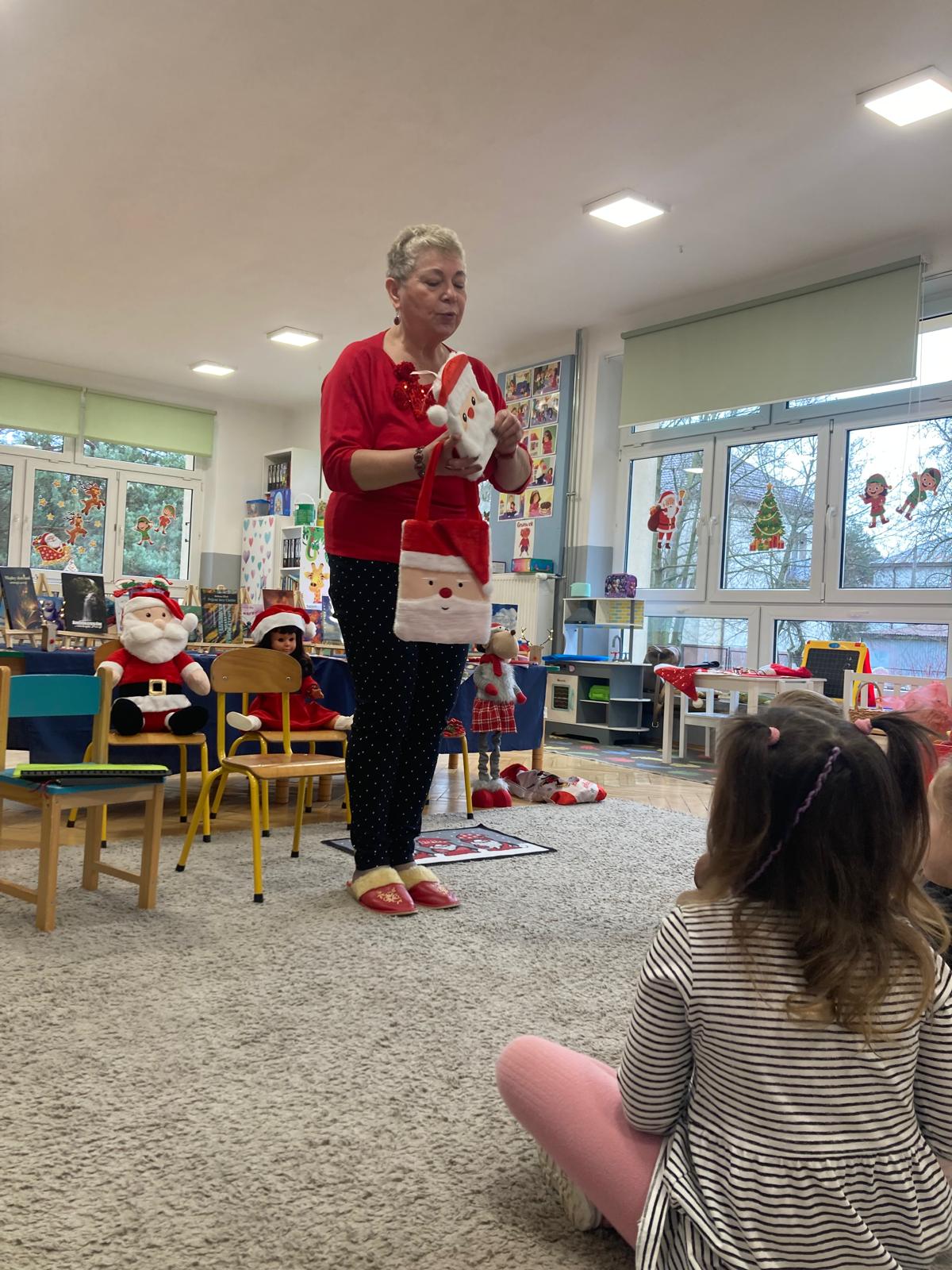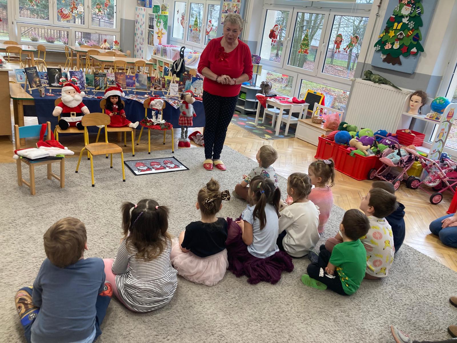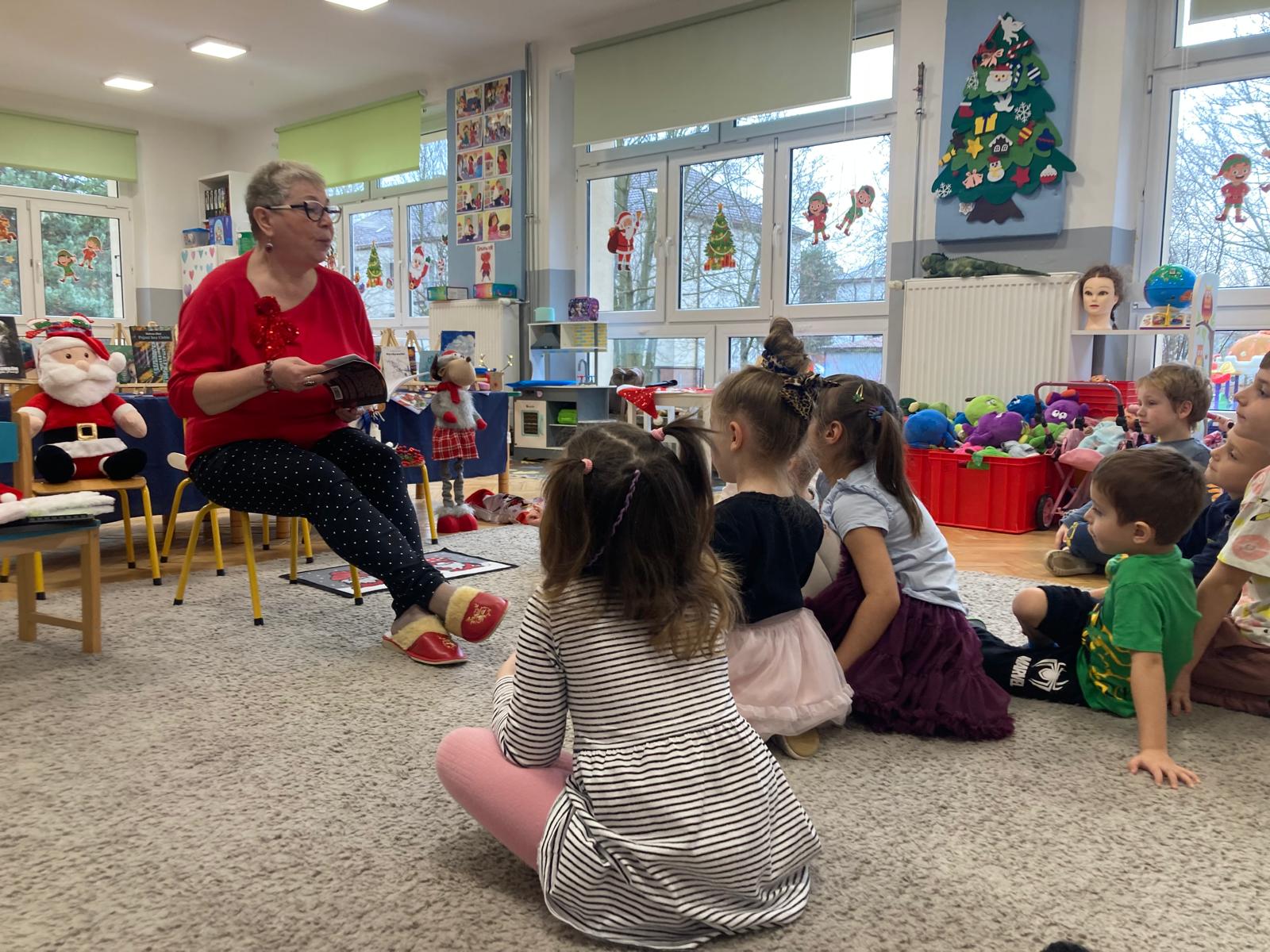 W tym tygodniu dzieci wzięły udział w spotkaniu z twórcą literatury dziecięcej Panią Heleną Gleń.Pisarka przedstawiła dziecion swoją historię tworzenia wierszy i opowiadań dla dzieci .Dzieciaki mogły obejrzeć napisane przez gościa książeczki a także miały okazję posłuchać wierszy i opowiadań.Spotkanie wzbudzilo w dzieciach radość i z zaciekawienuem słuchały zabawnych i ciekawych utworów Pani Heleny.Spotkanie autorskie przsbiegło w sympatycznym,mikołajkowym klimacie.