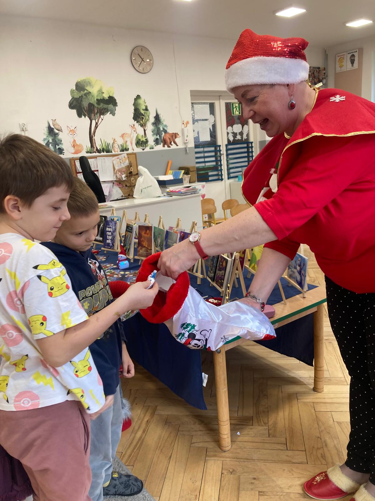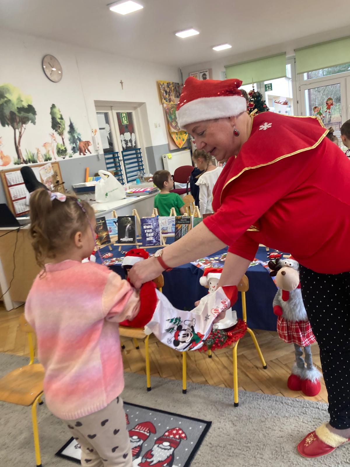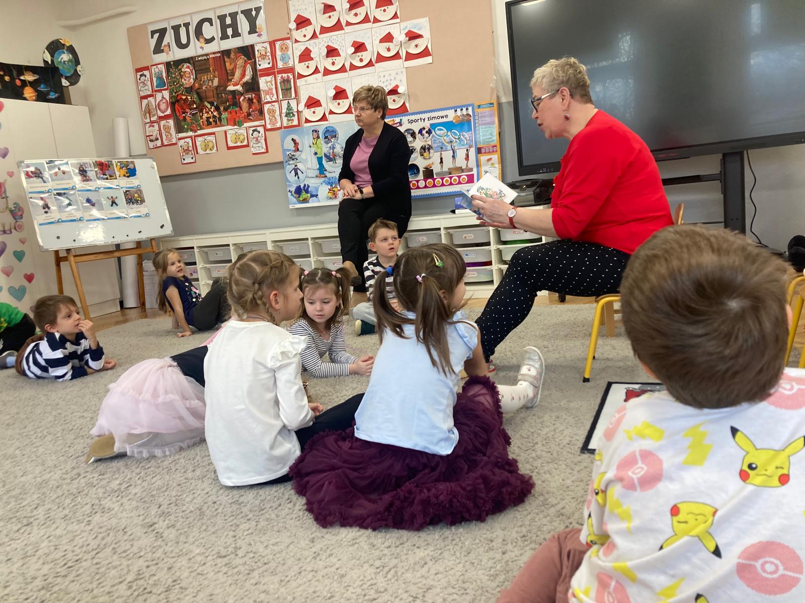 W tym tygodniu dzieci wzięły udział w spotkaniu z twórcą literatury dziecięcej Panią Heleną Gleń.Pisarka przedstawiła dziecion swoją historię tworzenia wierszy i opowiadań dla dzieci .Dzieciaki mogły obejrzeć napisane przez gościa książeczki a także miały okazję posłuchać wierszy i opowiadań.Spotkanie wzbudzilo w dzieciach radość i z zaciekawienuem słuchały zabawnych i ciekawych utworów Pani Heleny.Spotkanie autorskie przsbiegło w sympatycznym,mikołajkowym klimacie.