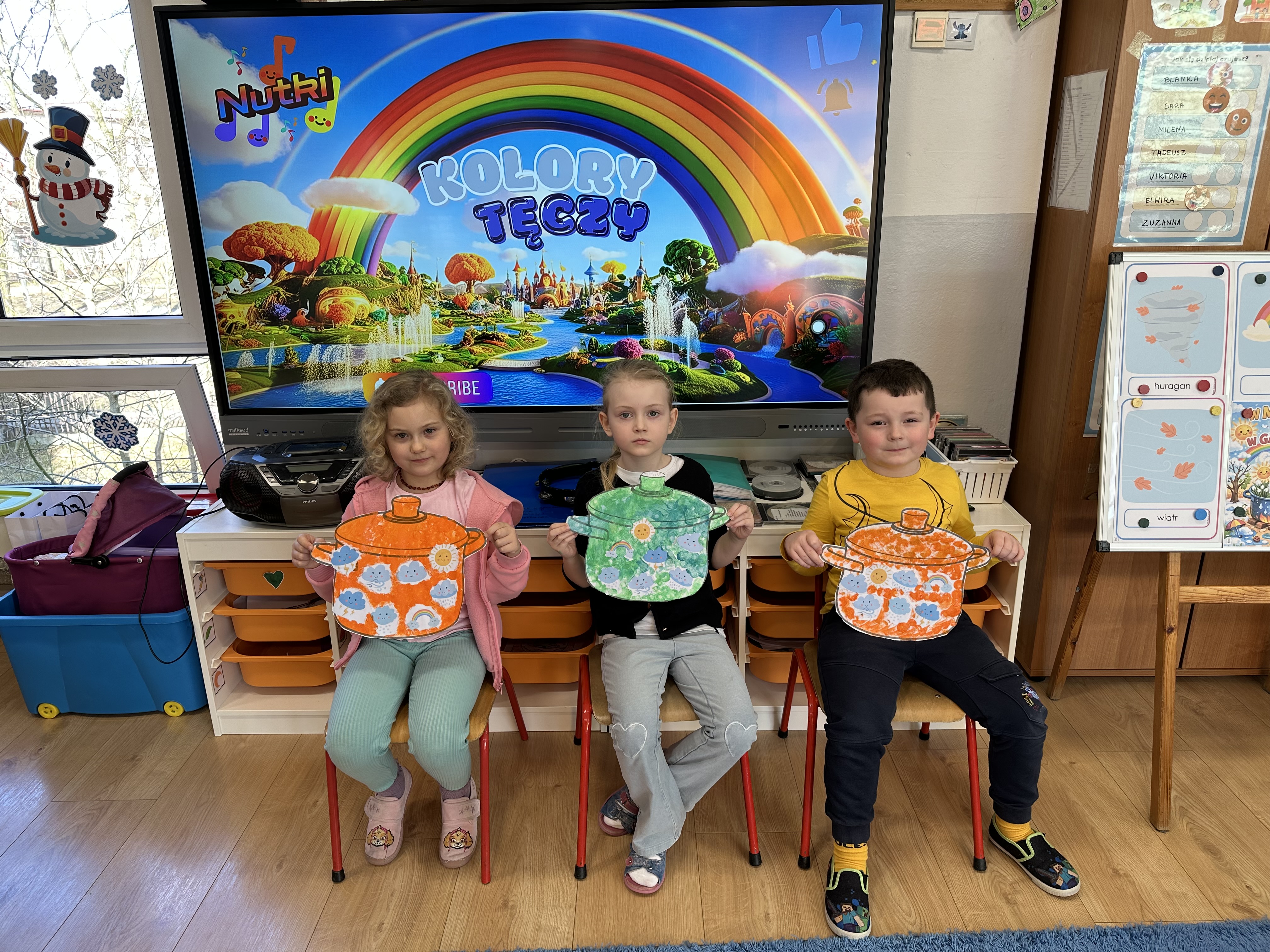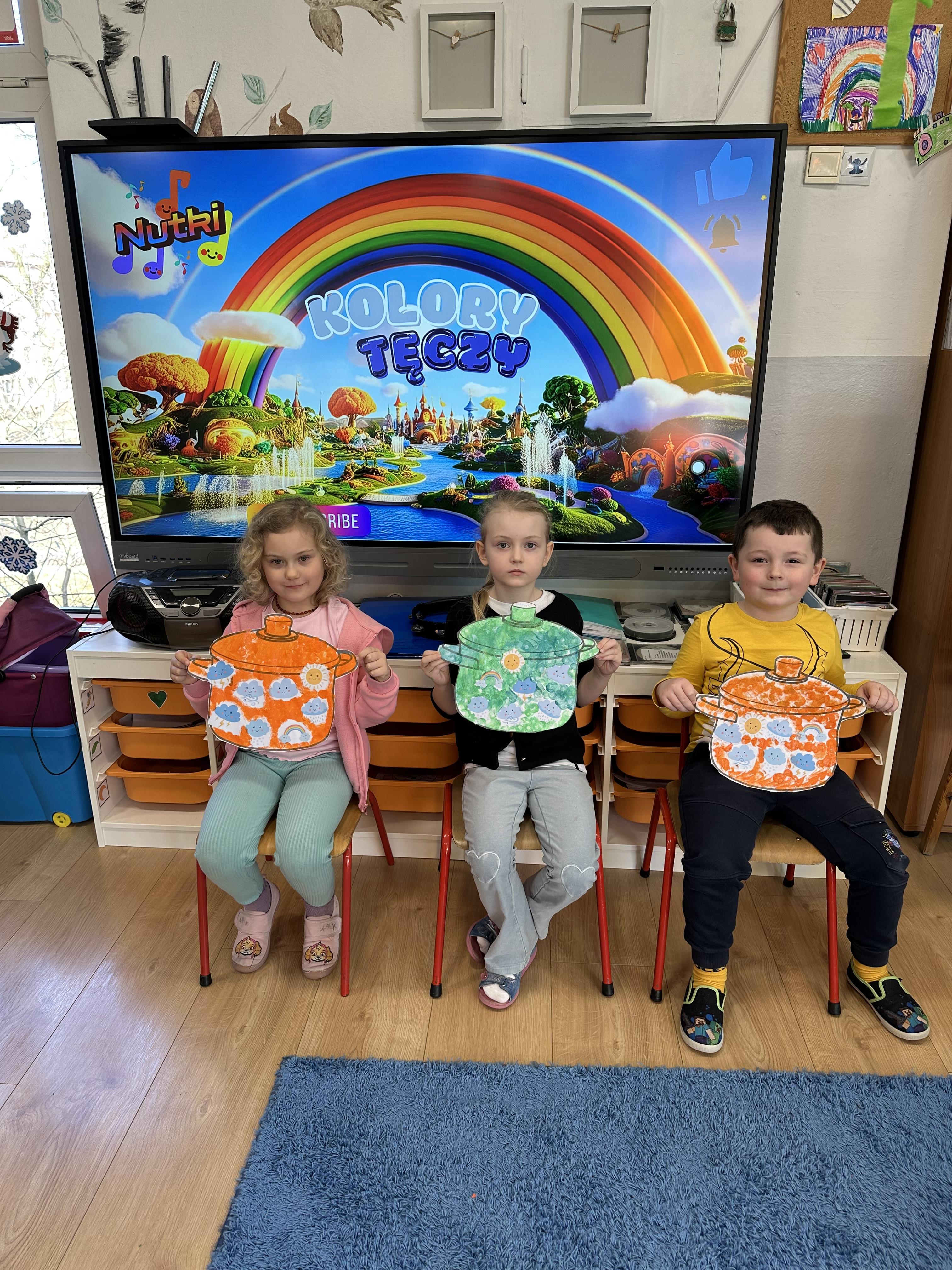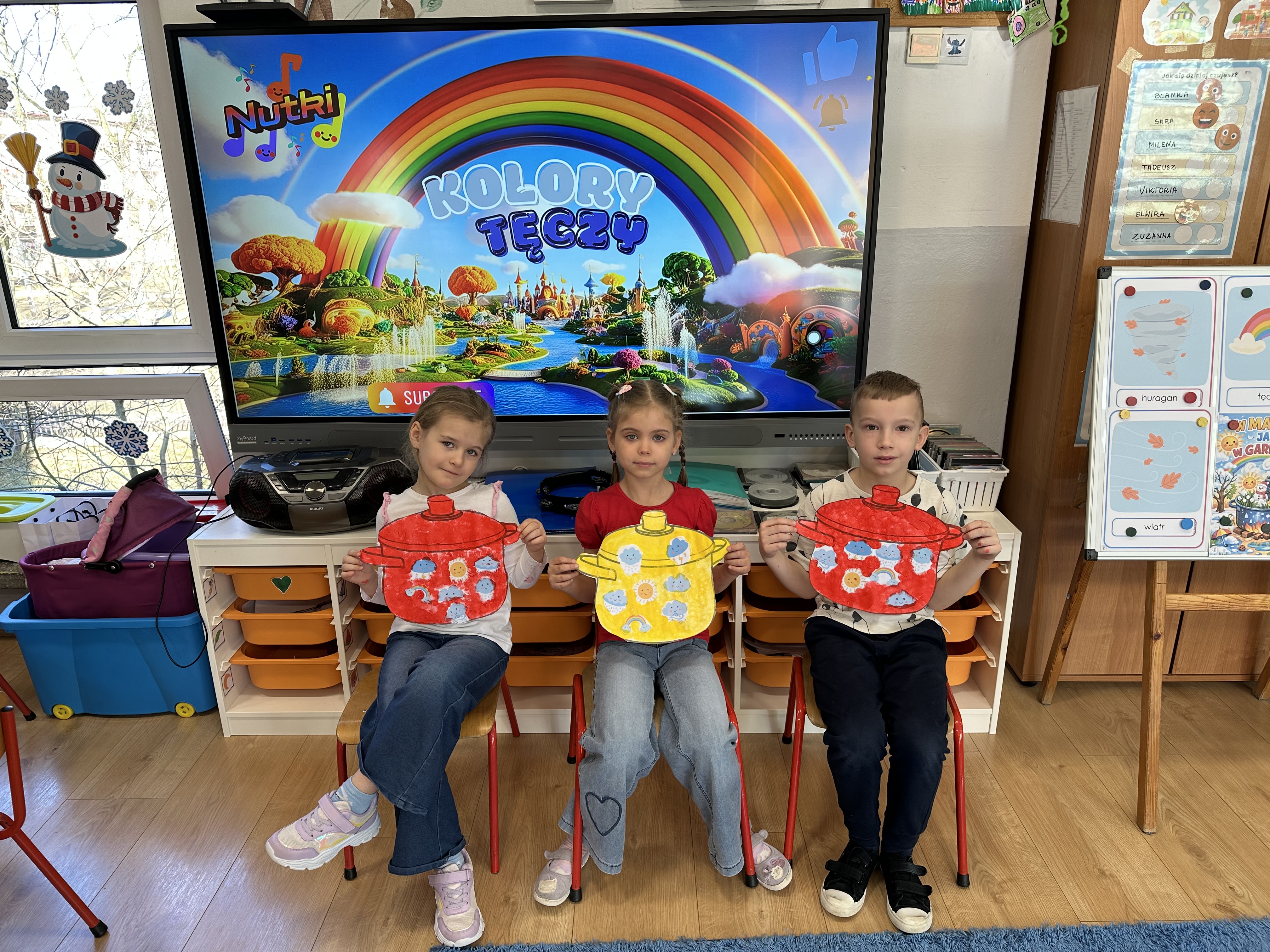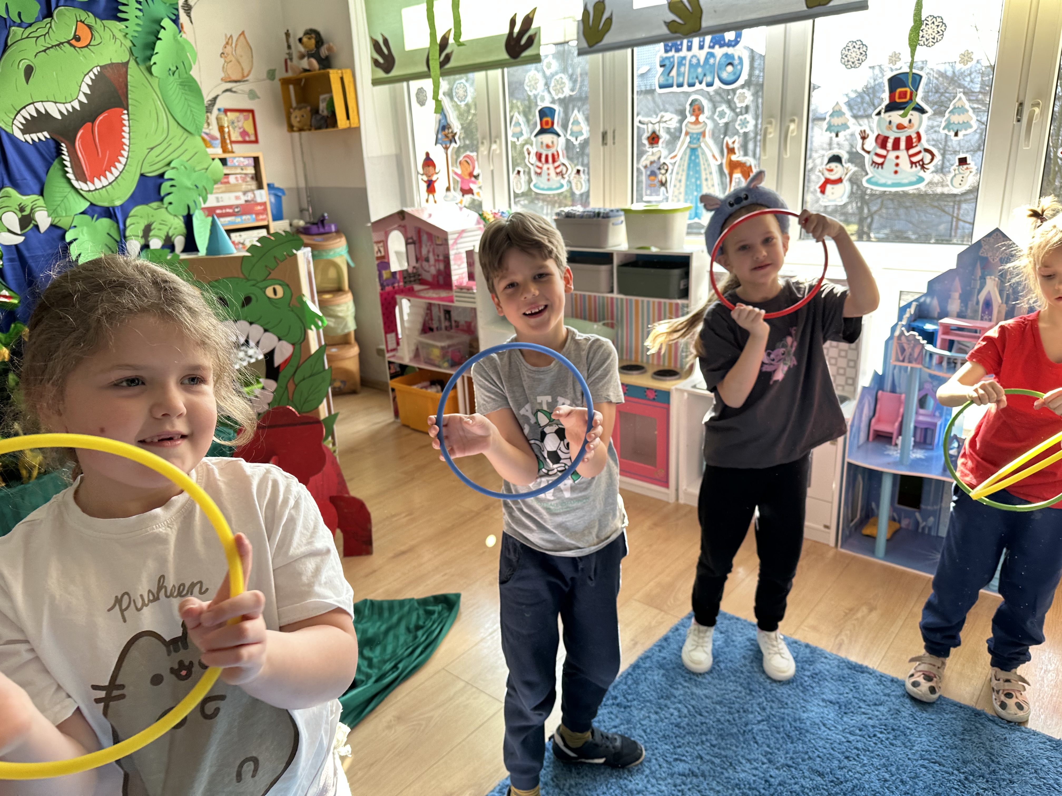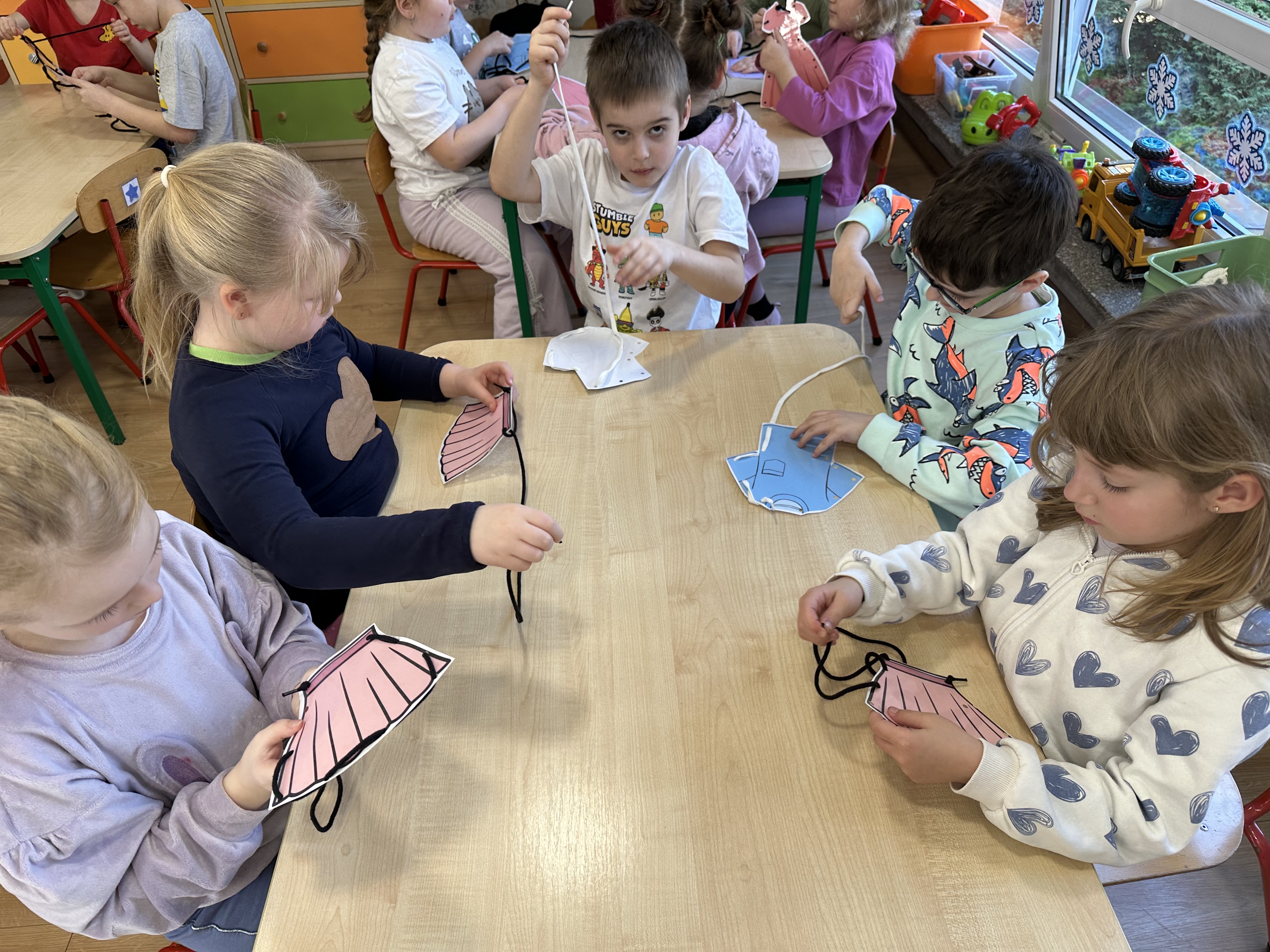 z ciekawostkami na temat budzenia się zwierząt ze snu zimowego. Nauczyły się rymowanki ,,Koncert dzięcioła”, a pod koniec dnia brały udział w „Kwiatowej zakrywajce” – grze matematycznej, podczas której rozwijały umiejętności przeliczania elementów i rozpoznawania obrazu graficznego liczb. W piątek dzieci utrwaliły nazwy i kolejność miesięcy oraz dni tygodnia. Dodatkowo przedszkolaki rozwijały również ekspresję taneczną w trakcie zabawy ,,Taniec Pani Wiosny”, a także doskonaliły analizę głoskową podczas zabawy językowej „Psotny wiatr”. Dzień zakończyły pracą plastyczną, tzn. wykonały witraż według instrukcji.