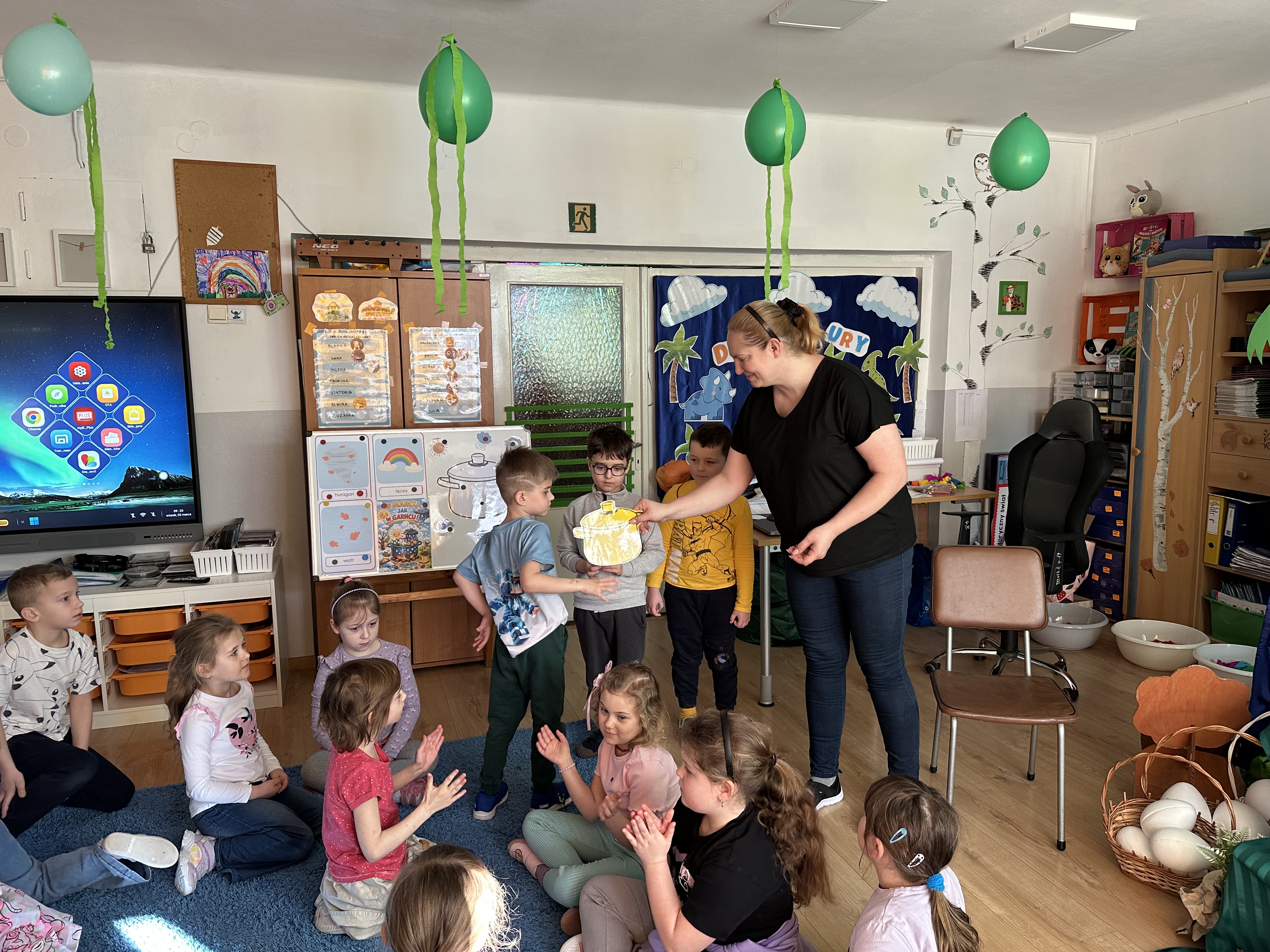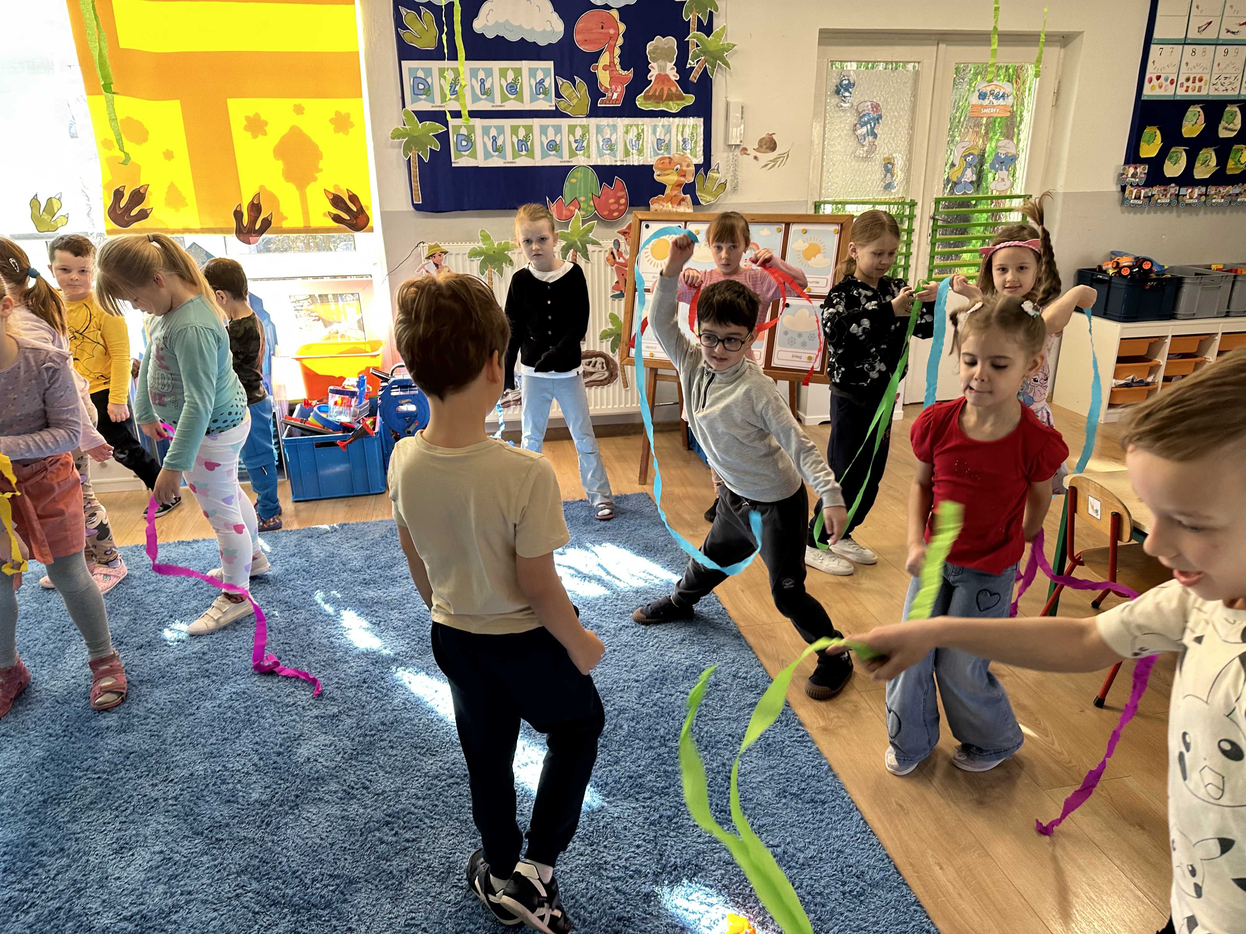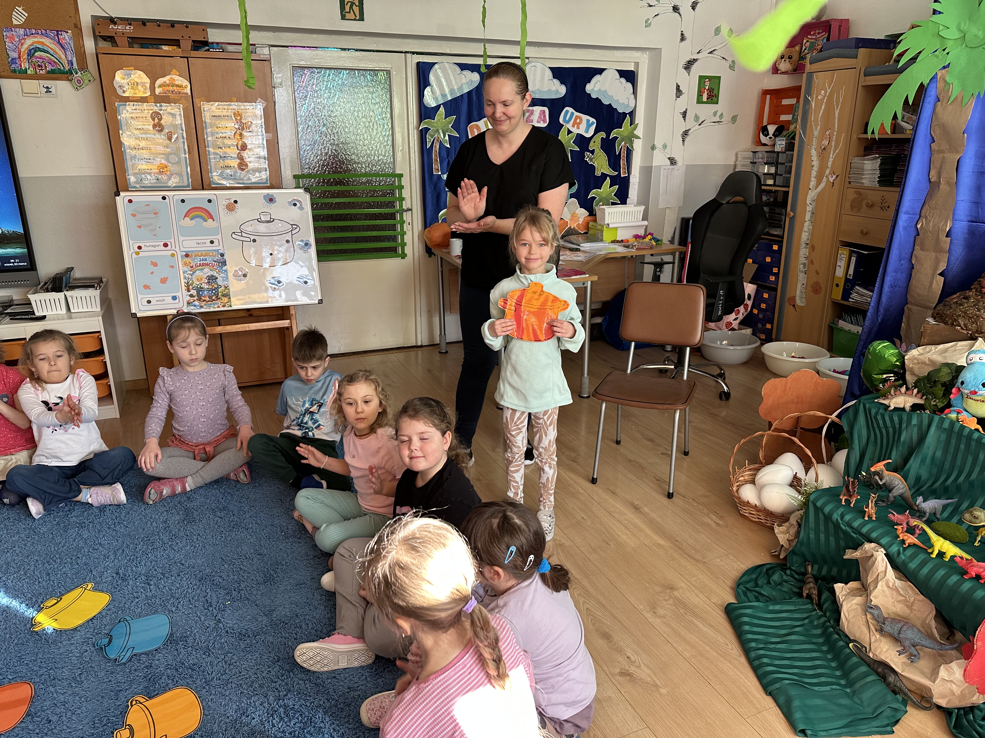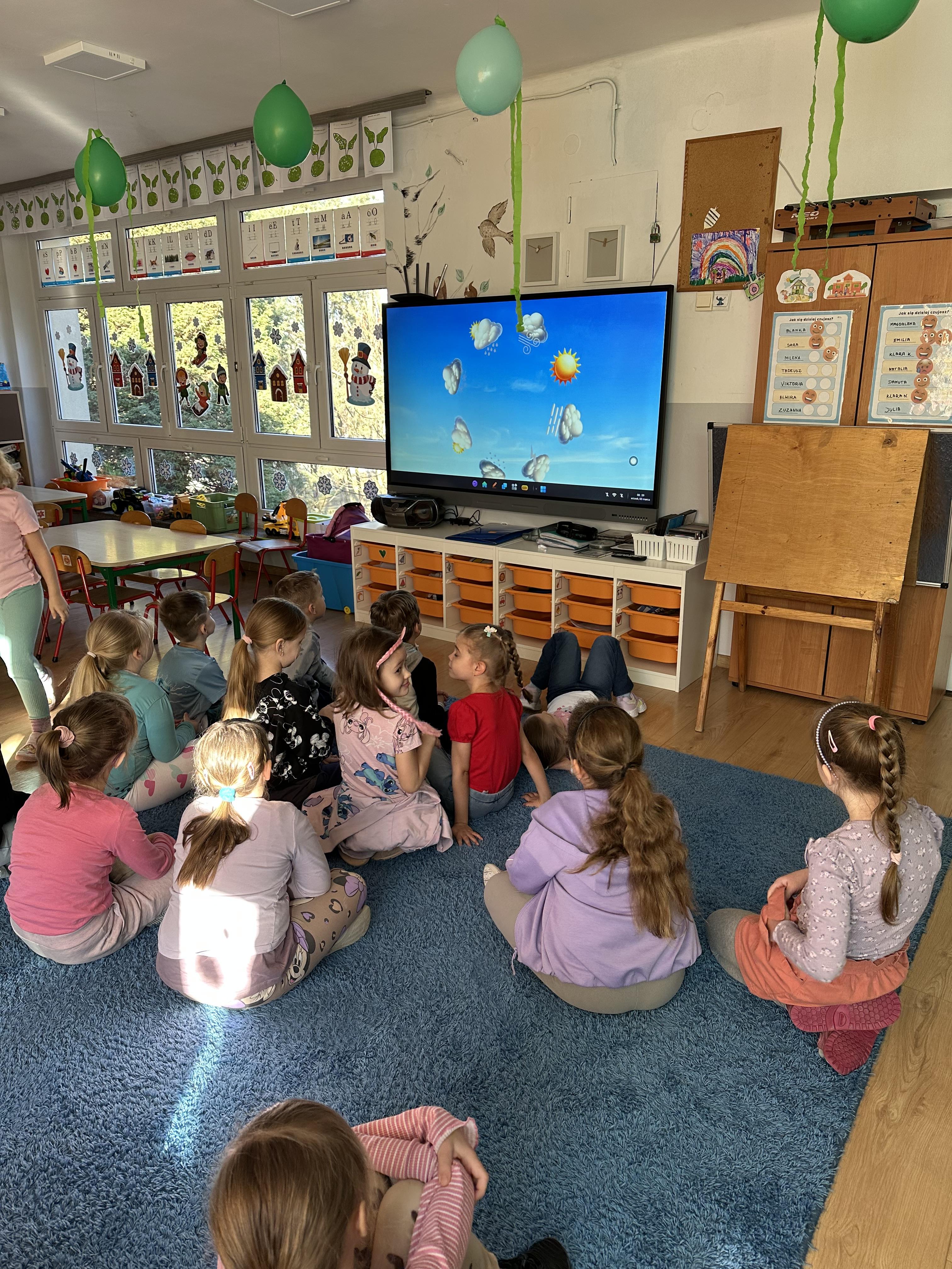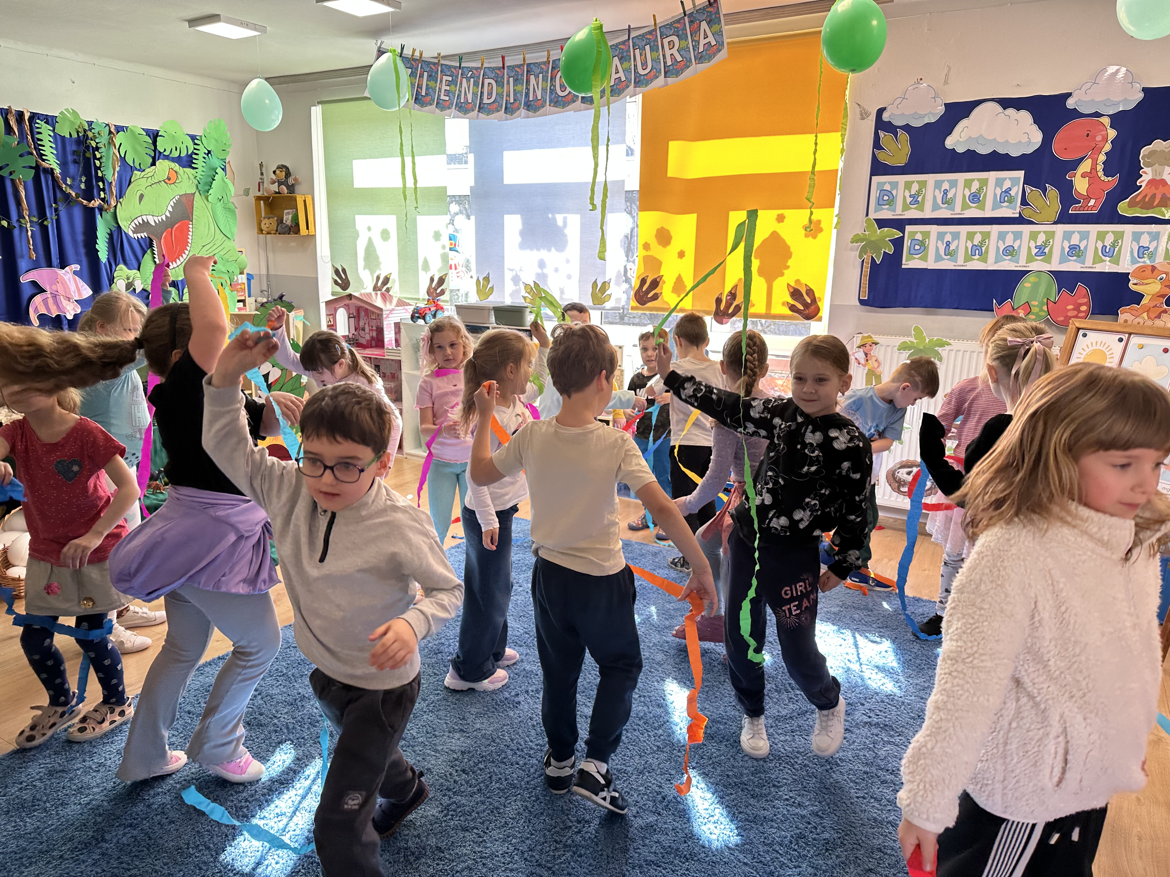 z ciekawostkami na temat budzenia się zwierząt ze snu zimowego. Nauczyły się rymowanki ,,Koncert dzięcioła”, a pod koniec dnia brały udział w „Kwiatowej zakrywajce” – grze matematycznej, podczas której rozwijały umiejętności przeliczania elementów i rozpoznawania obrazu graficznego liczb. W piątek dzieci utrwaliły nazwy i kolejność miesięcy oraz dni tygodnia. Dodatkowo przedszkolaki rozwijały również ekspresję taneczną w trakcie zabawy ,,Taniec Pani Wiosny”, a także doskonaliły analizę głoskową podczas zabawy językowej „Psotny wiatr”. Dzień zakończyły pracą plastyczną, tzn. wykonały witraż według instrukcji.