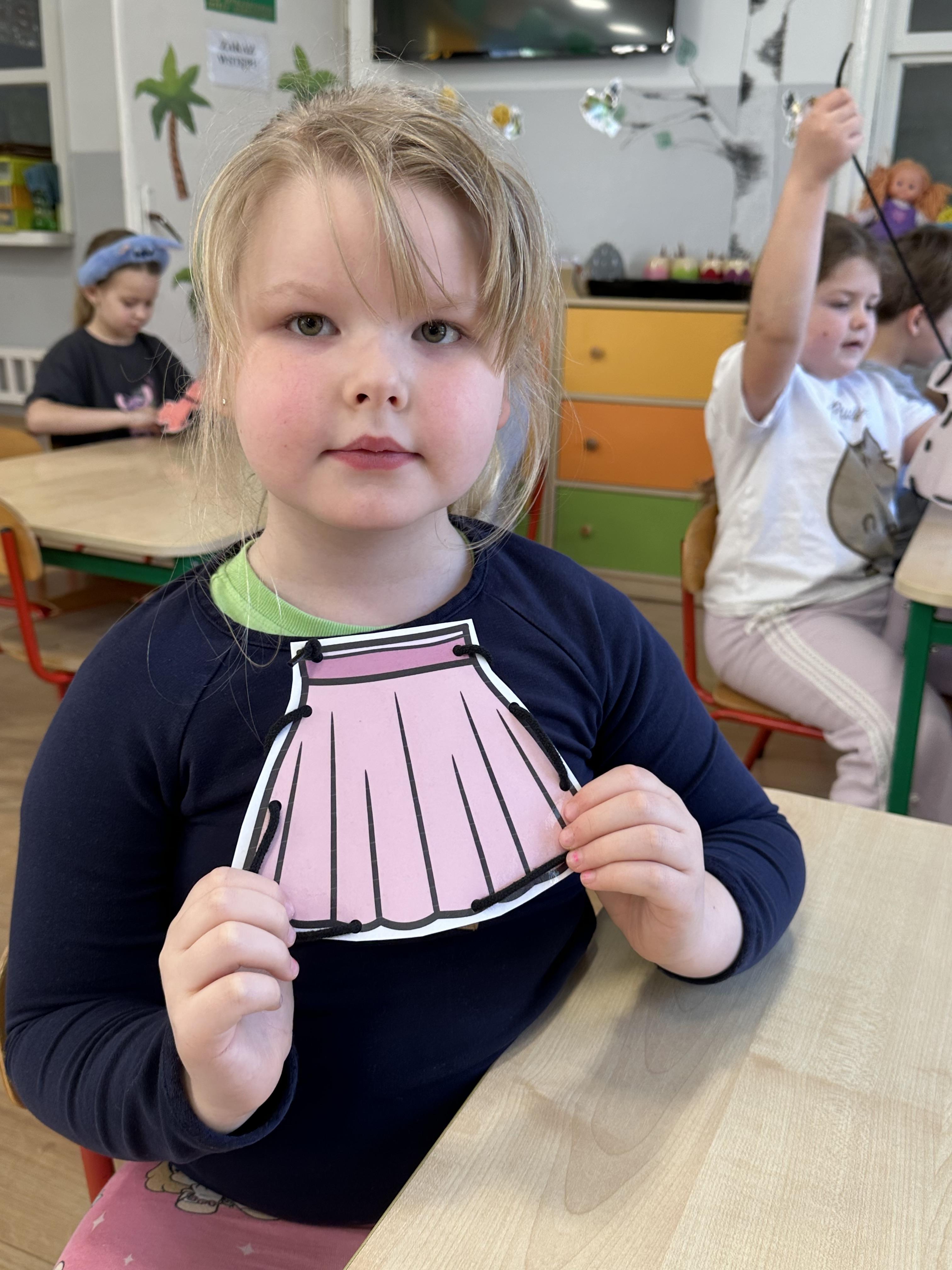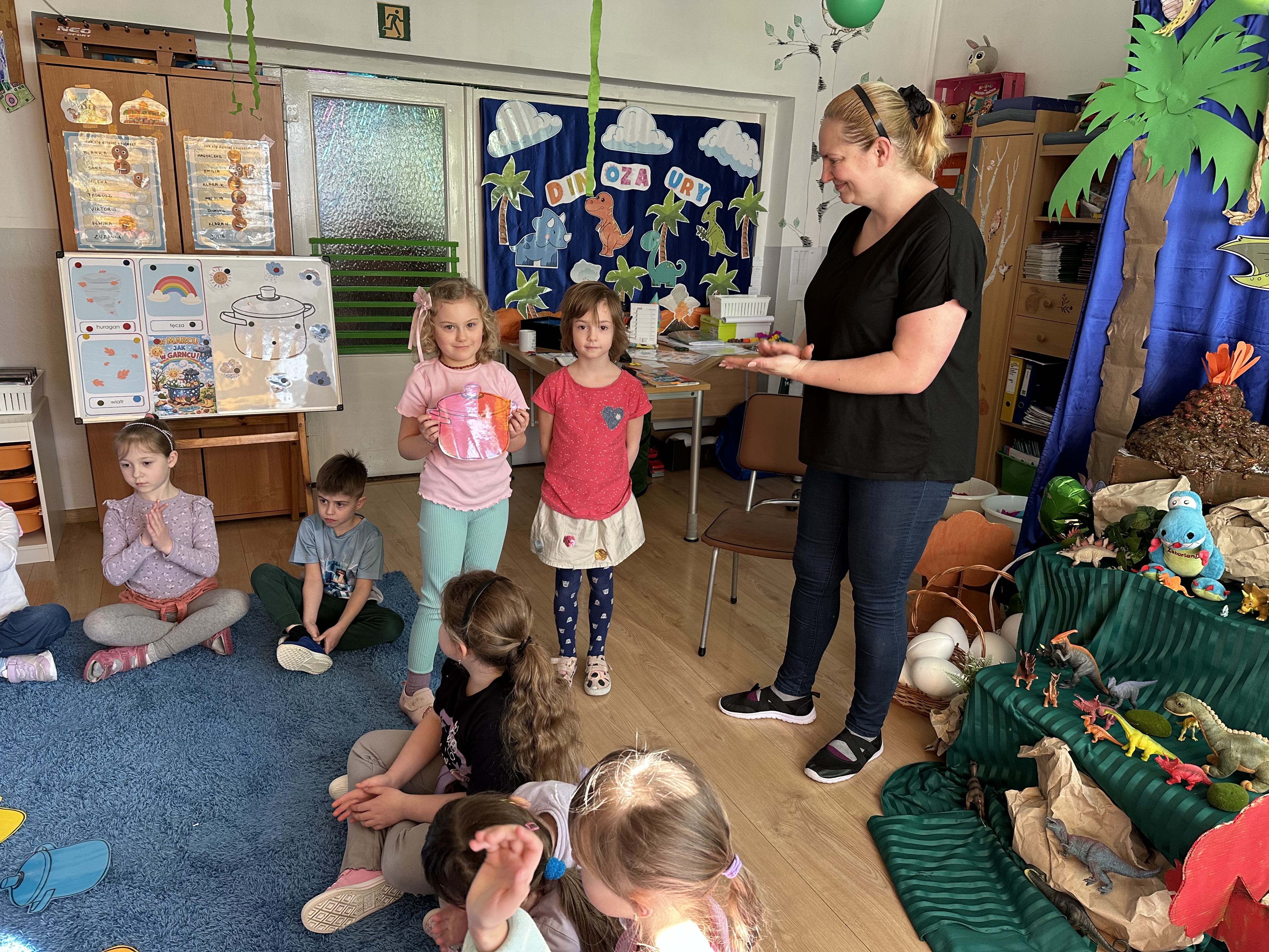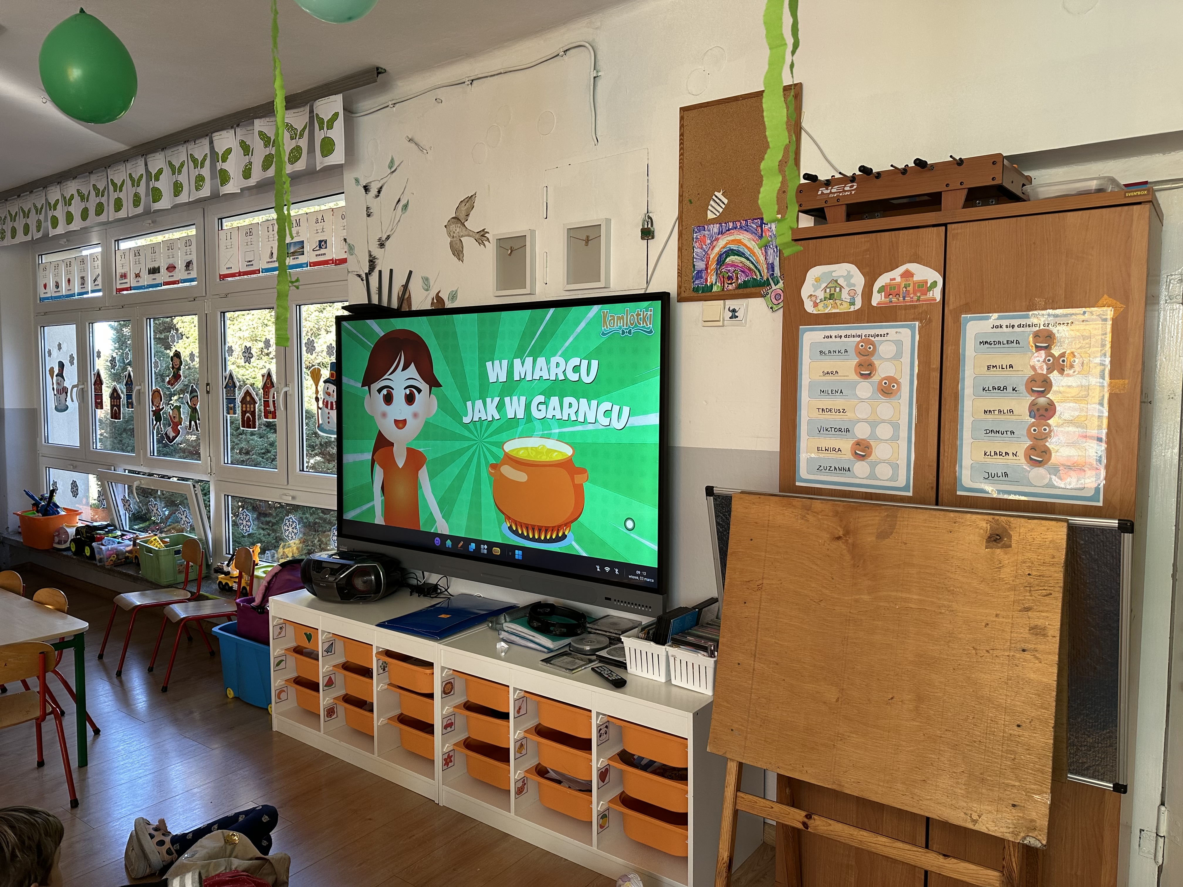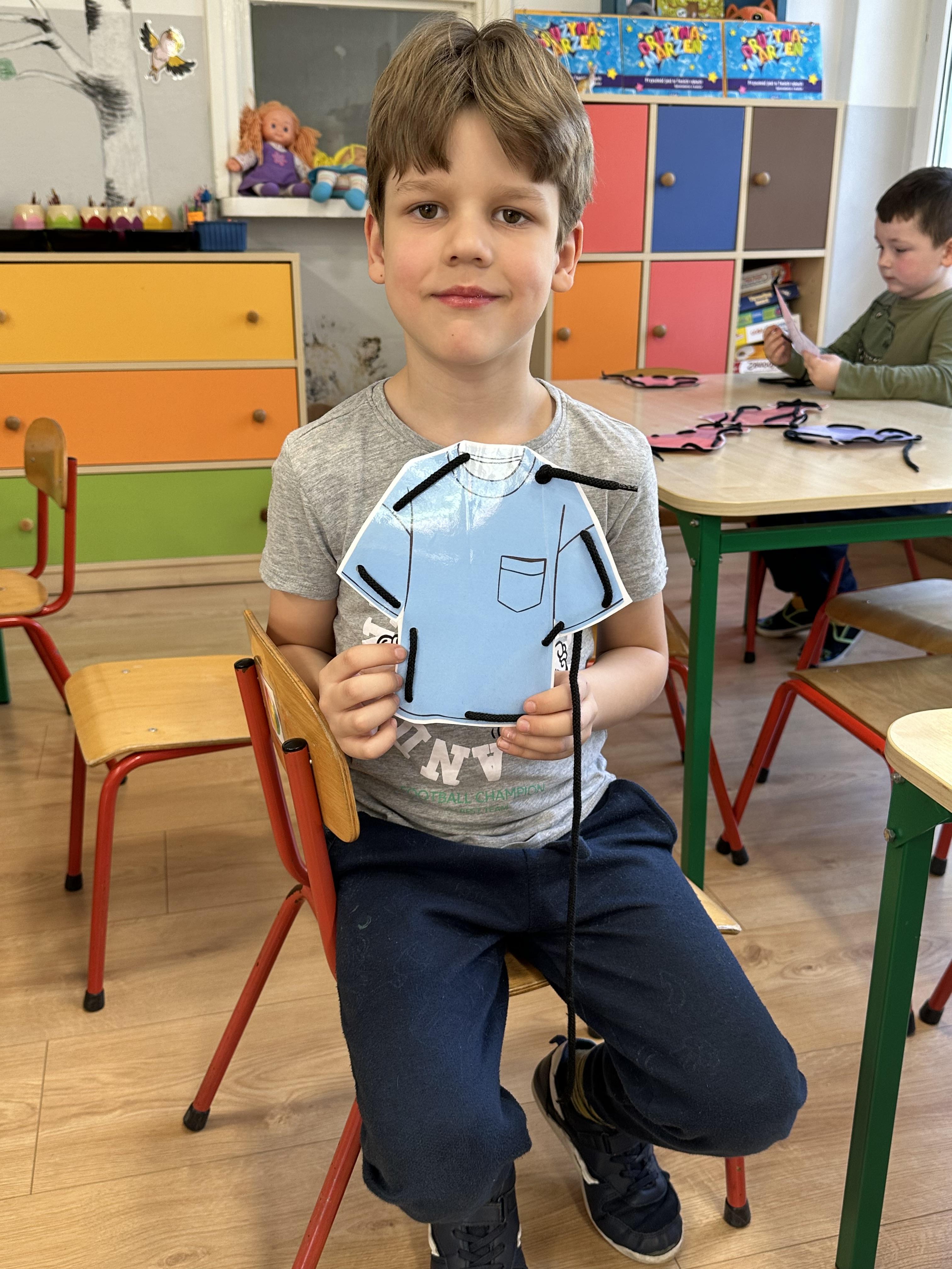 W poniedziałek sześciolatki wyjaśniały, co to jest prognoza pogody. Zastanawiały się, po co ludzie ją oglądają, odczytywały symbole pogodowe i poznały pojęcia związane ze zjawiskami atmosferycznymi. Dodatkowo przedszkolaki zapoznały się z opowiadaniem Marii Pawlisz „W marcu jak w garncu” i omawiały jego treść. Tego dnia dzieci próbowały wyjaśnić własnymi słowami pojęcie ,,nieprzejednana”. Wspólnie dzieliły się pomysłami, jak dbać o swoje zdrowie. Śpiewały i tańczyły do piosenki ,,Mam chusteczkę haftowaną” oraz poznały nowe słowa w języku angielskim: sun „słońce”, rain „deszcz”, wind „wiatr”, storm „burza”, snow „śnieg”, które wykorzystały później do prezentowania pogody w kraju. Co więcej, rysowały płaszcz przeciwdeszczowy i ozdabiały go figurami geometrycznymi zgodnie z instrukcją. Przy stolikach opowiadały, co znajduje się na ilustracjach, samodzielnie lub z pomocą nauczyciela czytały tekst, a także rysowały obrazek, który powinien pasować do przedstawionego kontekstu. Co ciekawe, słuchały utworu literackiego i starały się zapamiętać jak najwięcej szczegółów. We wtorek dzieci poznały przysłowie ,,W marcu, jak w garncu” oraz zapoznały się z literą „g” małą i wielką, drukowaną i pisaną. Rozwijały słuch fonemowy podczas analizy i syntezy głoskowej wyrazu ,,garnek”. Przedszkolaki segregowały różne naczynia kuchenne według cech charakterystycznych, wymieniały nazwy potraw i imion rozpoczynających się głoską g, układały schemat głoskowy z białych kartoników, a także dużą literę „g” z guzików, następnie kreśliły palcem na tacy z kaszą nowo poznaną głoskę. Zdobyte wcześniej umiejętności dzieci wykorzystały podczas zabaw przy stolikach. Wtorkowy dzień sześciolatki zakończyły ćwiczeniami grafomotorycznymi. W środę rozwijały umiejętności logicznego myślenia w trakcie rozwiązywania sudoku. Wysłuchanie wiersza Małgorzaty Strzałkowskiej ,,Wiosenny zawrót głowy” był wprowadzeniem do rozmowy o zwiastunach wiosny. Dodatkowo podczas zabaw ruchowych przypominały sobie nazwy zjawisk atmosferycznych. A w trakcie zabawy „Porządki w szafie” rozwijały umiejętność odczytywania kodu oraz układania przedmiotów w przestrzeni. Przedszkolaki wspólnie odczytywały ceny poszczególnych części garderoby i klasyfikowały, które z nich są tańsze, a które droższe, rozwijały tym samym kompetencje matematyczne. W kolejnej części dnia dzieci brały aktywny udział w zabawie językowej „Szafa pełna ubrań”, w której rozwijały umiejętność czytania i pisania, tj. odczytywały samodzielnie podpisy i próbowały samodzielnie napisać nazwy ubrań na kartce. W czwartek sześciolatki rozwijały wiedzę o oznakach wiosny, usłyszały wiersz Władysława Broniewskiego pt. „Pierwiosnek”. Dodatkowo poznały wszystkie wiosenne kwiaty. Podczas zabawy „Ptaki wracają z ciepłych krajów” poszerzały wiedzę przyrodniczą o ptakach zimujących w Polsce oraz wracających z ciepłych krajów, utrwalały przy okazji nazwy kontynentów i wskazywały je na mapie. W kolejnej części dnia zapoznały się