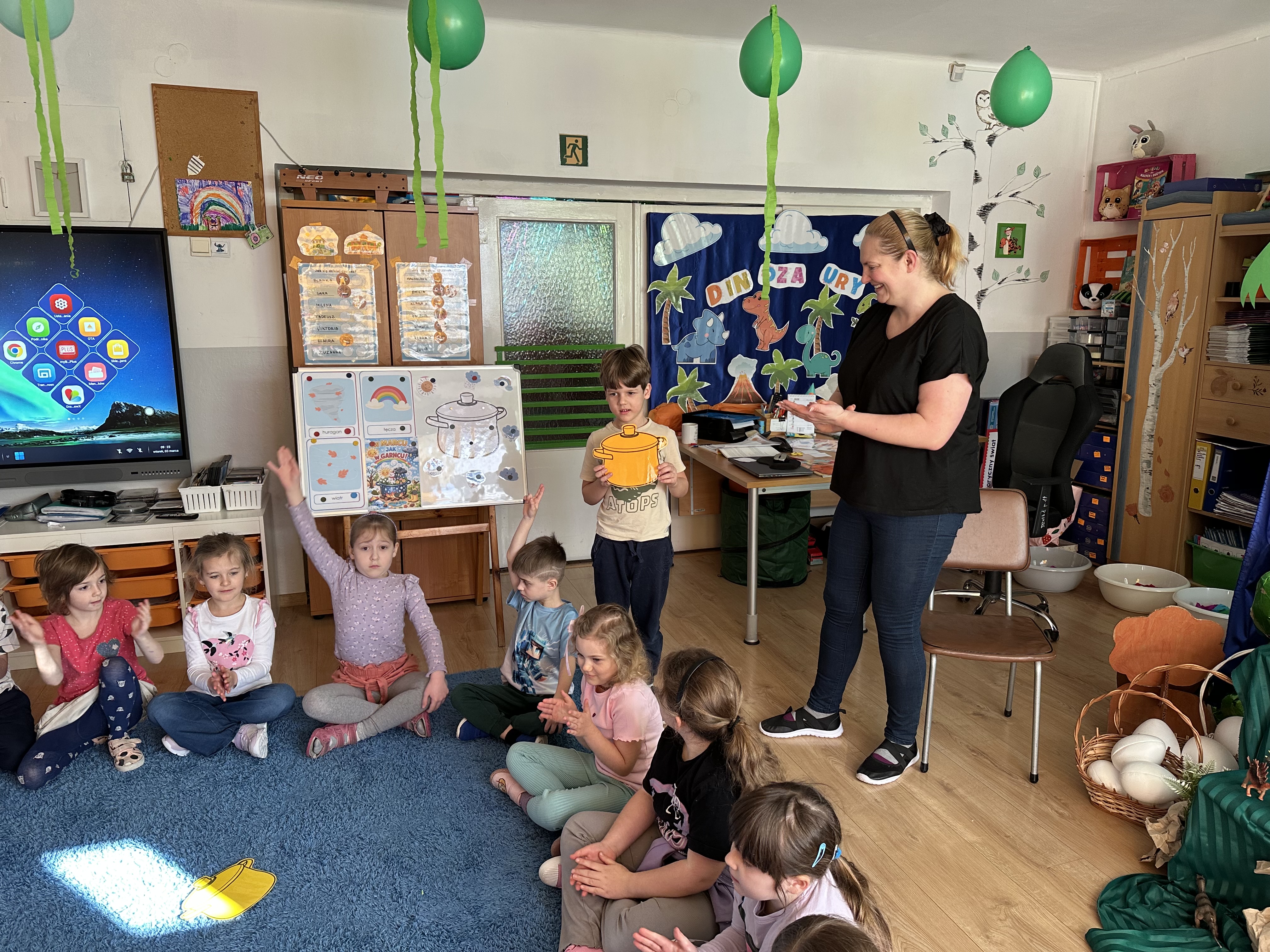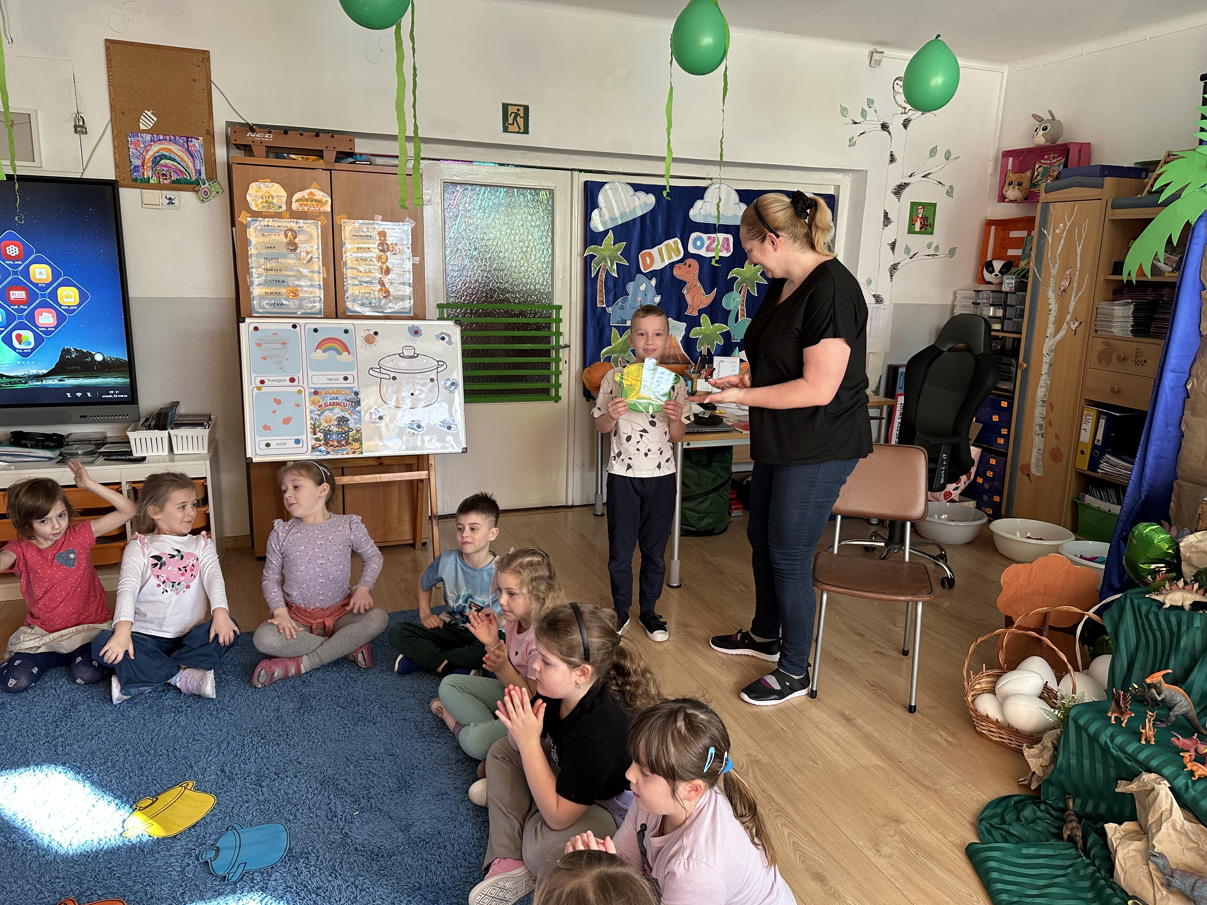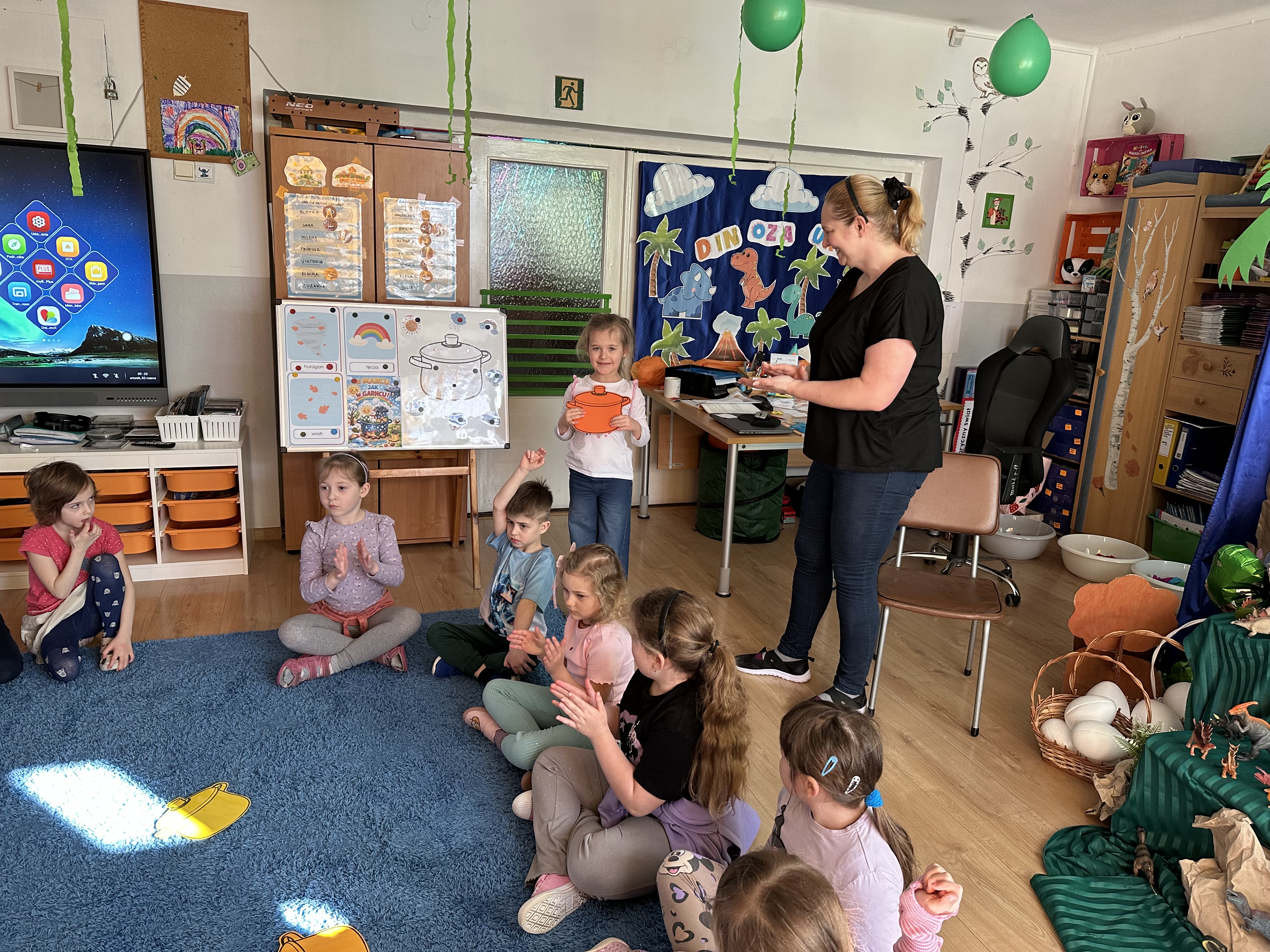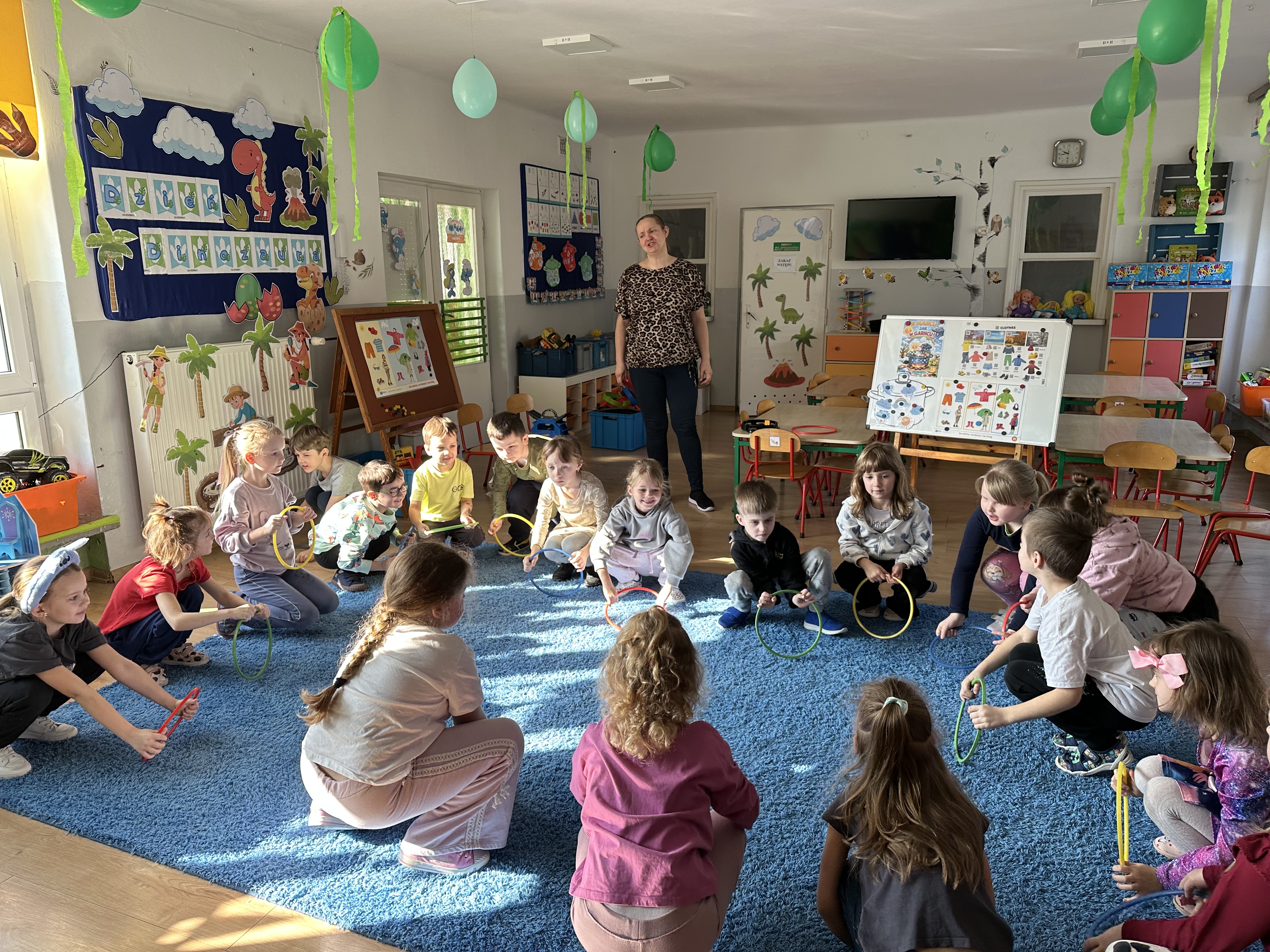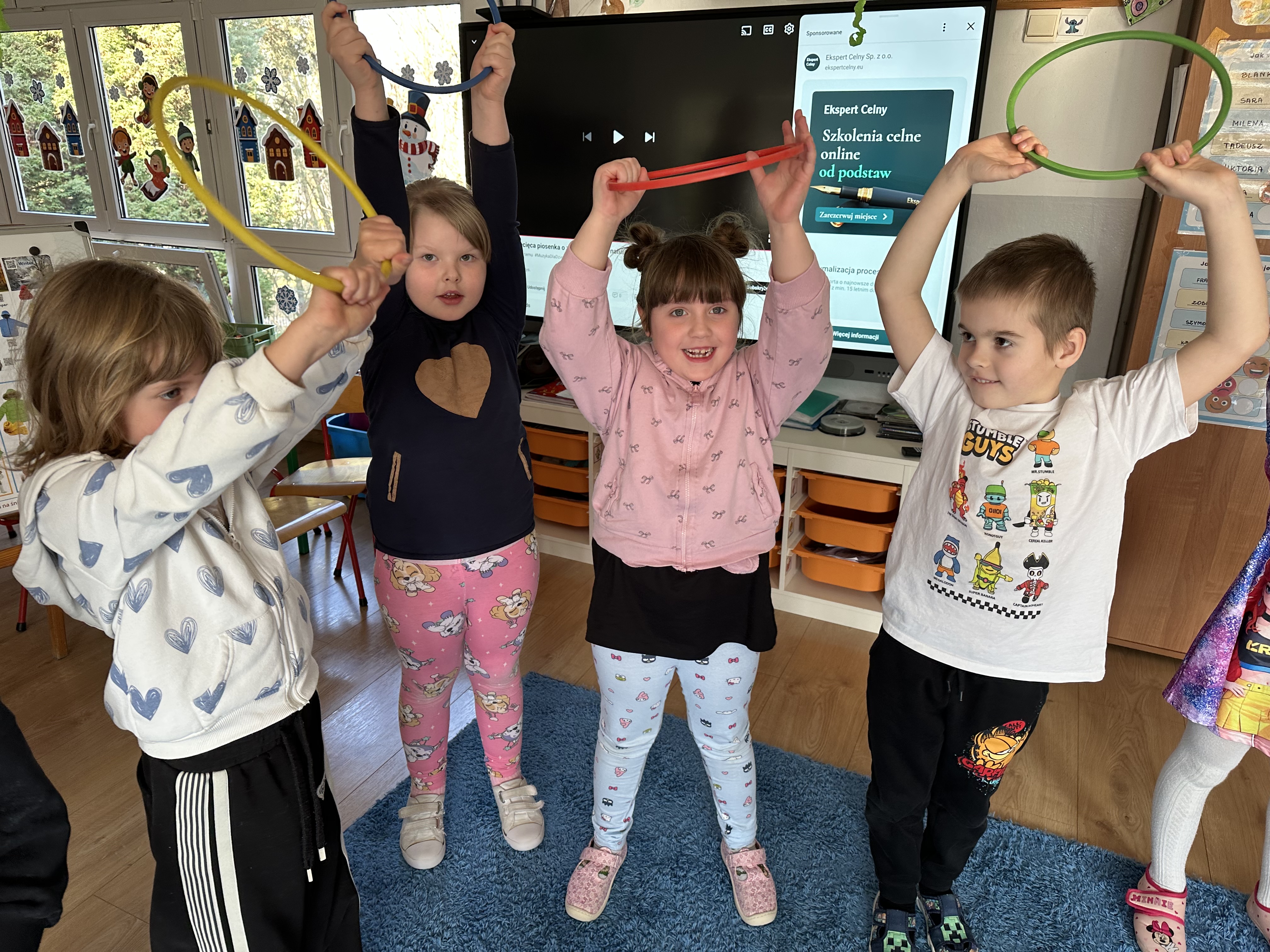 W poniedziałek sześciolatki wyjaśniały, co to jest prognoza pogody. Zastanawiały się, po co ludzie ją oglądają, odczytywały symbole pogodowe i poznały pojęcia związane ze zjawiskami atmosferycznymi. Dodatkowo przedszkolaki zapoznały się z opowiadaniem Marii Pawlisz „W marcu jak w garncu” i omawiały jego treść. Tego dnia dzieci próbowały wyjaśnić własnymi słowami pojęcie ,,nieprzejednana”. Wspólnie dzieliły się pomysłami, jak dbać o swoje zdrowie. Śpiewały i tańczyły do piosenki ,,Mam chusteczkę haftowaną” oraz poznały nowe słowa w języku angielskim: sun „słońce”, rain „deszcz”, wind „wiatr”, storm „burza”, snow „śnieg”, które wykorzystały później do prezentowania pogody w kraju. Co więcej, rysowały płaszcz przeciwdeszczowy i ozdabiały go figurami geometrycznymi zgodnie z instrukcją. Przy stolikach opowiadały, co znajduje się na ilustracjach, samodzielnie lub z pomocą nauczyciela czytały tekst, a także rysowały obrazek, który powinien pasować do przedstawionego kontekstu. Co ciekawe, słuchały utworu literackiego i starały się zapamiętać jak najwięcej szczegółów. We wtorek dzieci poznały przysłowie ,,W marcu, jak w garncu” oraz zapoznały się z literą „g” małą i wielką, drukowaną i pisaną. Rozwijały słuch fonemowy podczas analizy i syntezy głoskowej wyrazu ,,garnek”. Przedszkolaki segregowały różne naczynia kuchenne według cech charakterystycznych, wymieniały nazwy potraw i imion rozpoczynających się głoską g, układały schemat głoskowy z białych kartoników, a także dużą literę „g” z guzików, następnie kreśliły palcem na tacy z kaszą nowo poznaną głoskę. Zdobyte wcześniej umiejętności dzieci wykorzystały podczas zabaw przy stolikach. Wtorkowy dzień sześciolatki zakończyły ćwiczeniami grafomotorycznymi. W środę rozwijały umiejętności logicznego myślenia w trakcie rozwiązywania sudoku. Wysłuchanie wiersza Małgorzaty Strzałkowskiej ,,Wiosenny zawrót głowy” był wprowadzeniem do rozmowy o zwiastunach wiosny. Dodatkowo podczas zabaw ruchowych przypominały sobie nazwy zjawisk atmosferycznych. A w trakcie zabawy „Porządki w szafie” rozwijały umiejętność odczytywania kodu oraz układania przedmiotów w przestrzeni. Przedszkolaki wspólnie odczytywały ceny poszczególnych części garderoby i klasyfikowały, które z nich są tańsze, a które droższe, rozwijały tym samym kompetencje matematyczne. W kolejnej części dnia dzieci brały aktywny udział w zabawie językowej „Szafa pełna ubrań”, w której rozwijały umiejętność czytania i pisania, tj. odczytywały samodzielnie podpisy i próbowały samodzielnie napisać nazwy ubrań na kartce. W czwartek sześciolatki rozwijały wiedzę o oznakach wiosny, usłyszały wiersz Władysława Broniewskiego pt. „Pierwiosnek”. Dodatkowo poznały wszystkie wiosenne kwiaty. Podczas zabawy „Ptaki wracają z ciepłych krajów” poszerzały wiedzę przyrodniczą o ptakach zimujących w Polsce oraz wracających z ciepłych krajów, utrwalały przy okazji nazwy kontynentów i wskazywały je na mapie. W kolejnej części dnia zapoznały się
