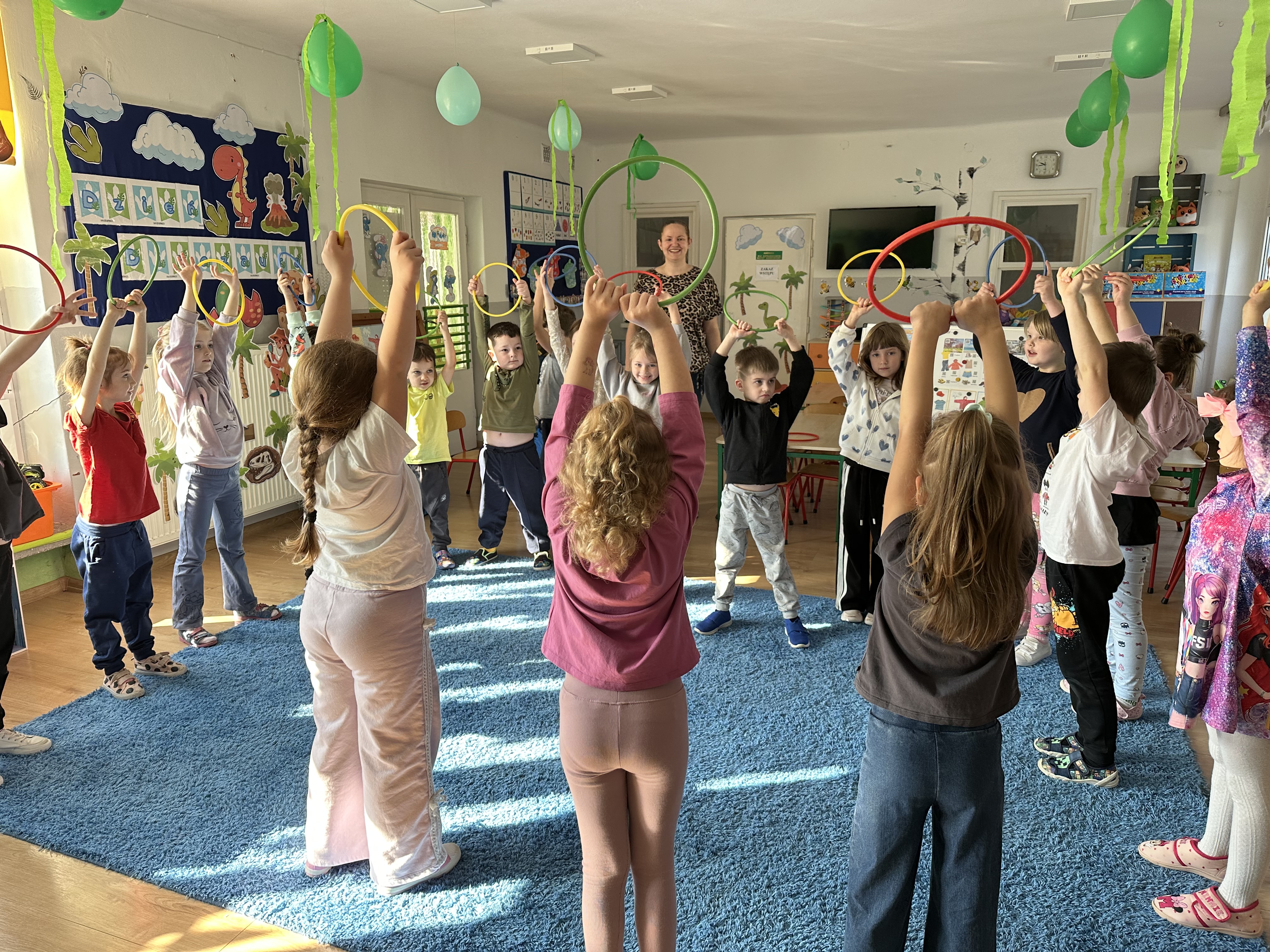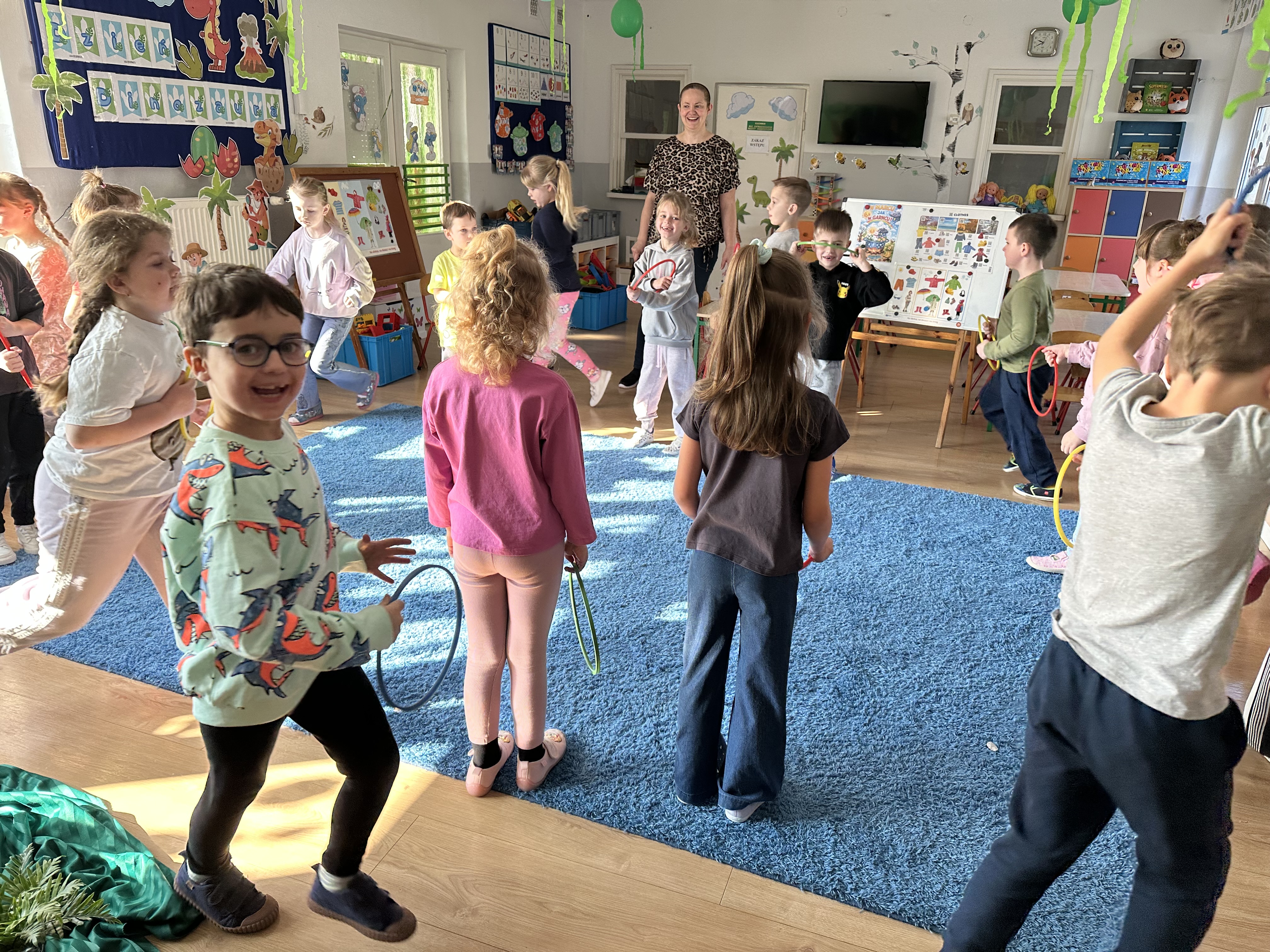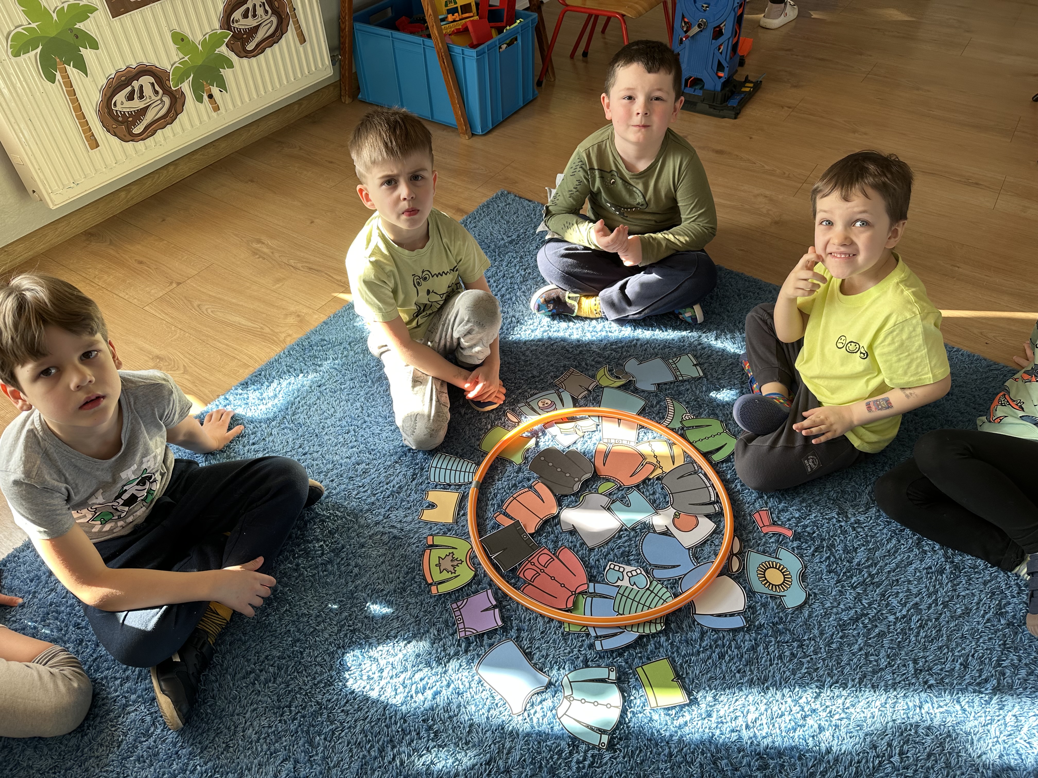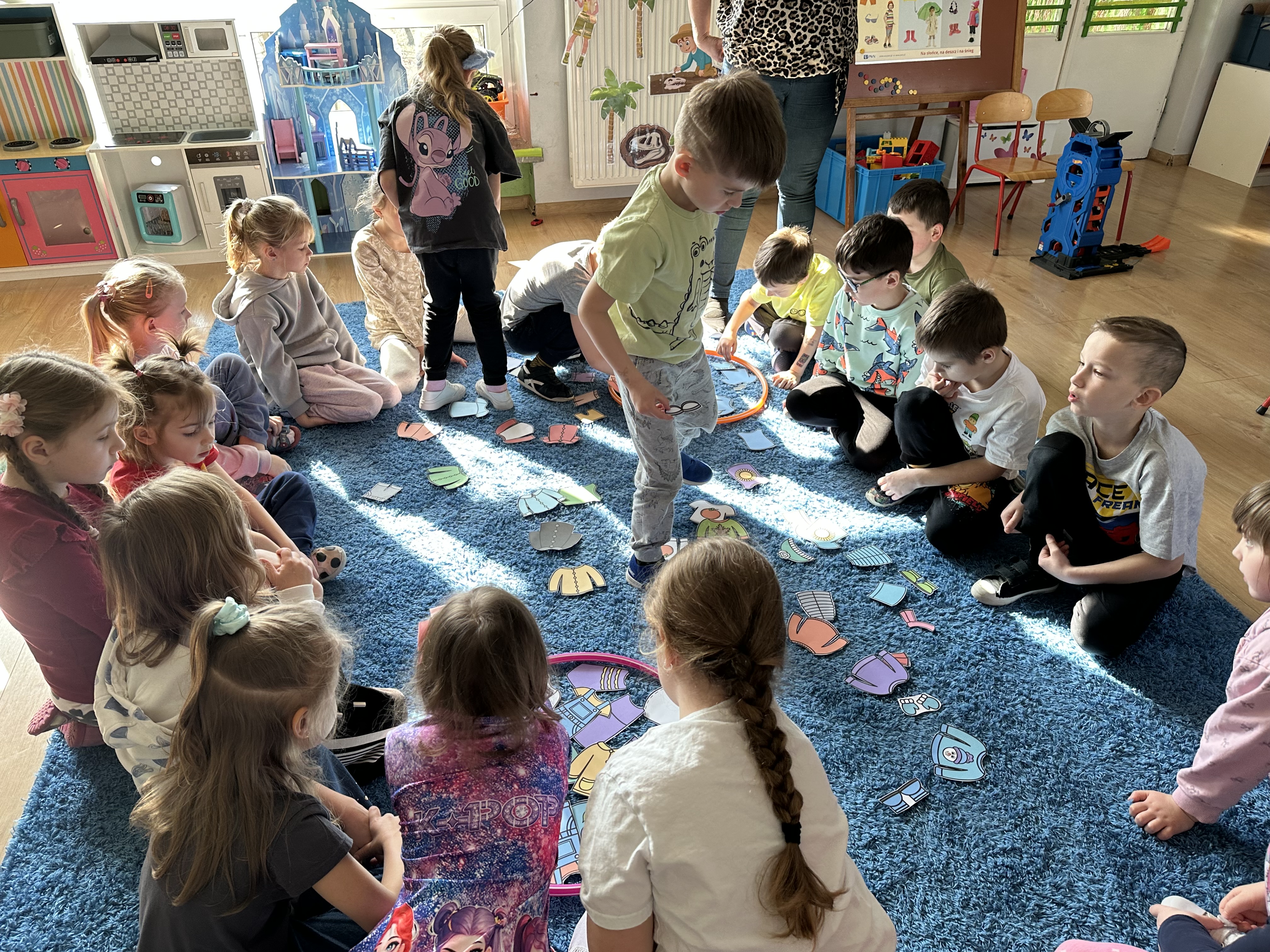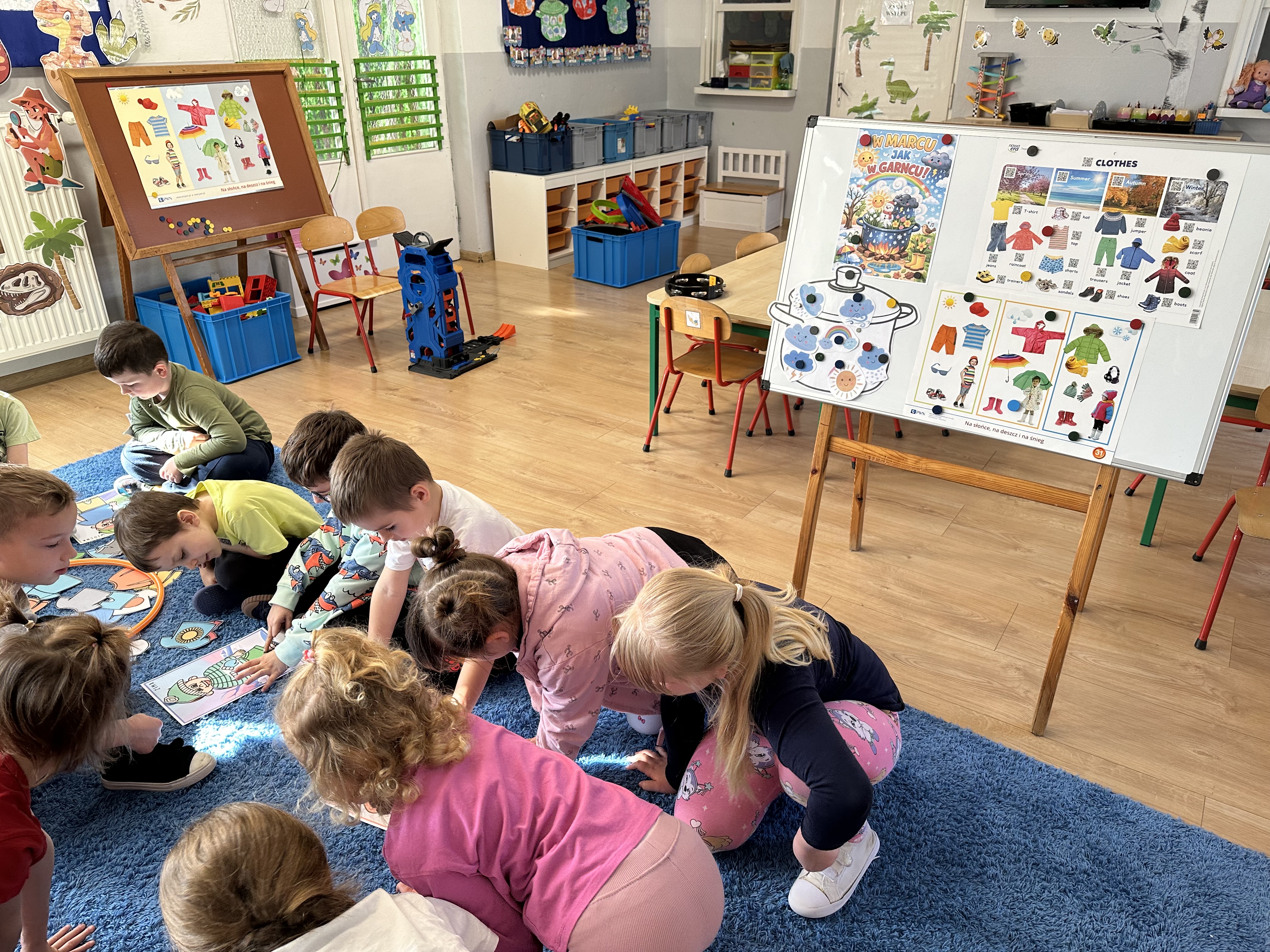 W trakcie minionego tygodnia nie zabrakło zabaw na świeżym powietrzu, podczas których dzieci uświadomiły sobie, jak ważny jest odpowiedni ubiór w zależności od pogody. Każdego dnia przy stolikach przedszkolaki powtarzały i utrwalały zdobytą wiedzę językową i matematyczną.