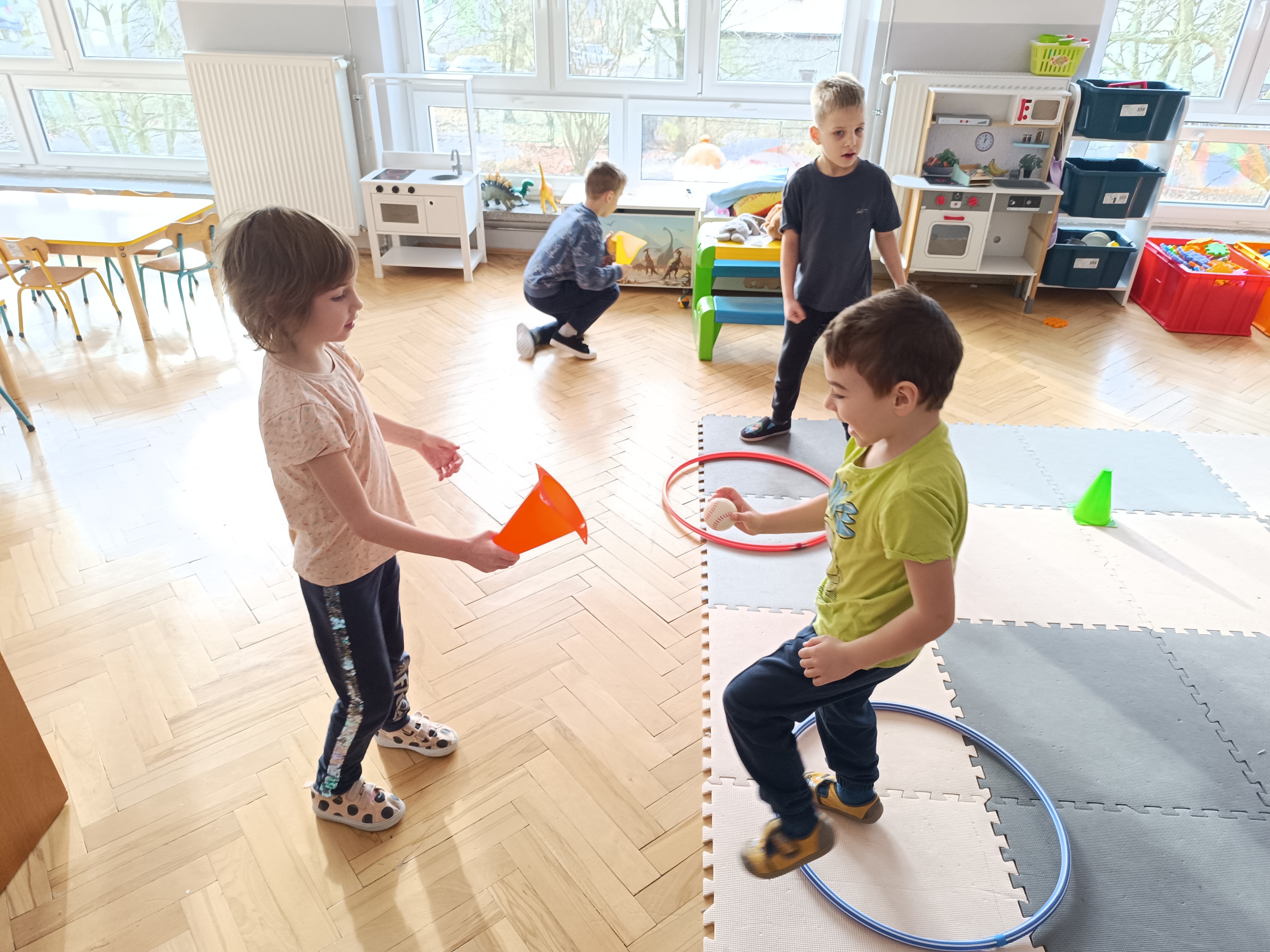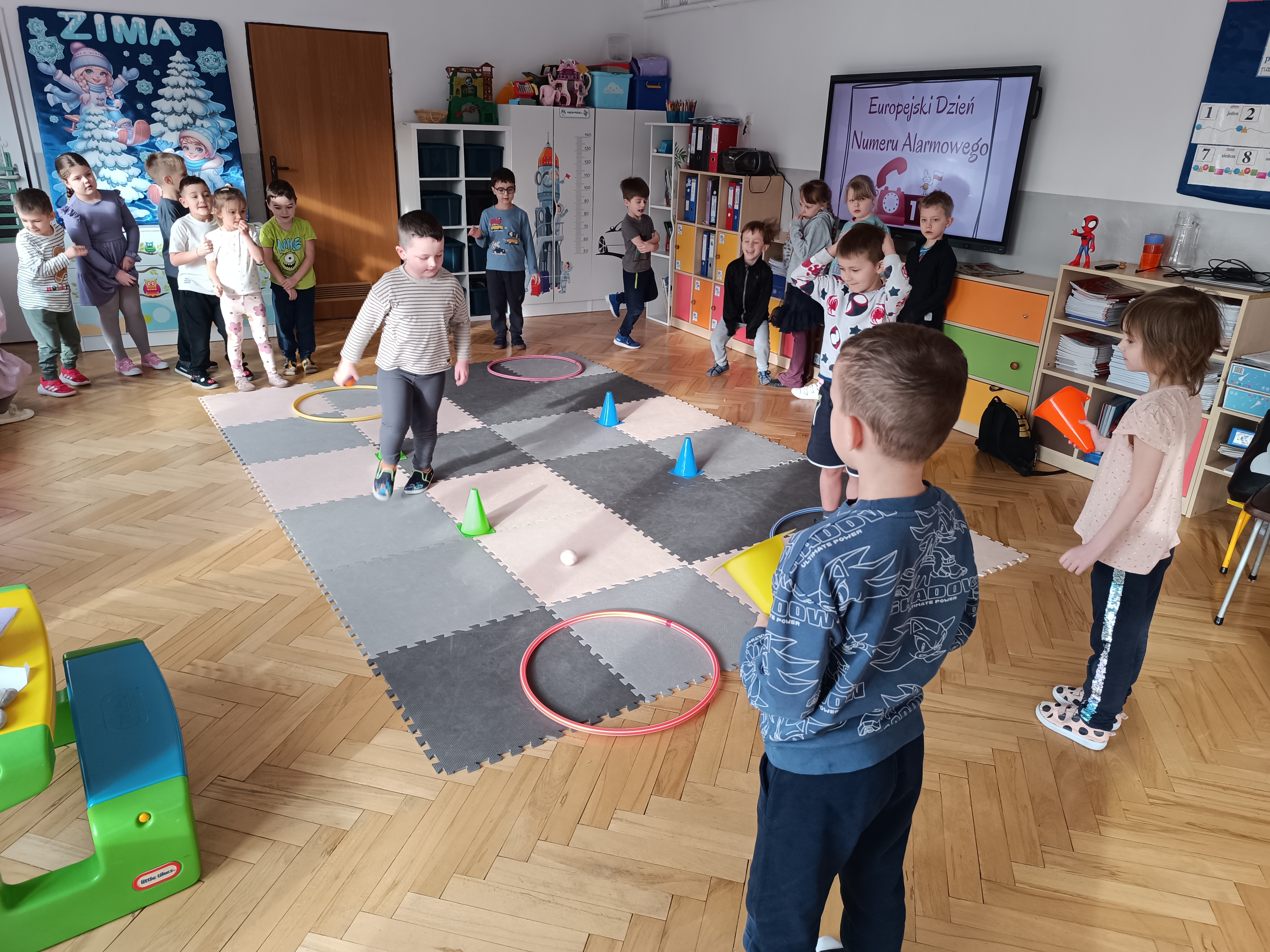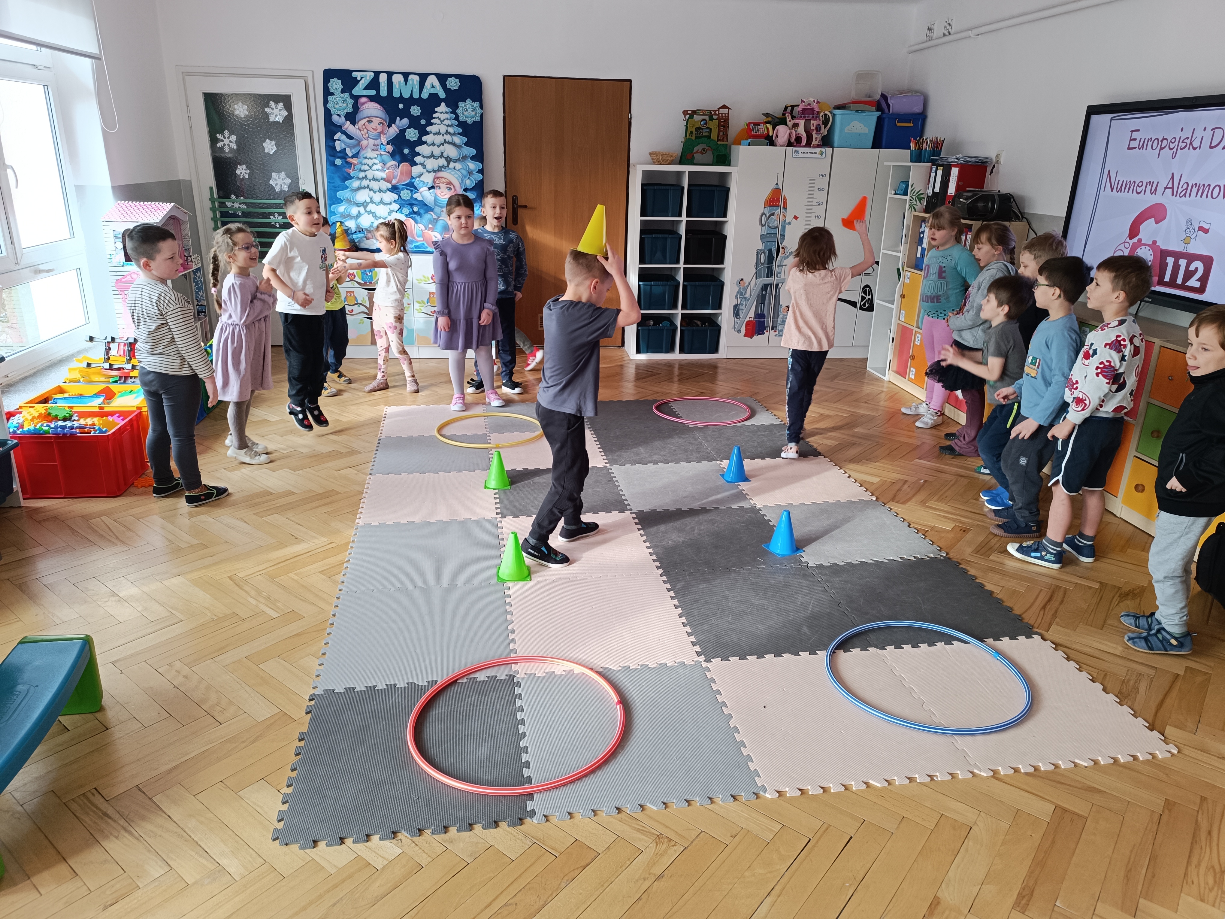 Podczas zajęć dzieci poznały numer alarmowy 112 oraz dowiedziały się, w jakich sytuacjach należy z niego korzystać. Rozmawialiśmy o tym, jakie informacje trzeba przekazać podczas rozmowy z dyspozytorem oraz dlaczego nie wolno wykonywać fałszywych zgłoszeń. Dzieci brały udział w zabawach edukacyjnych oraz ćwiczeniach utrwalających zasady bezpiecznego zachowania w sytuacjach zagrożenia.