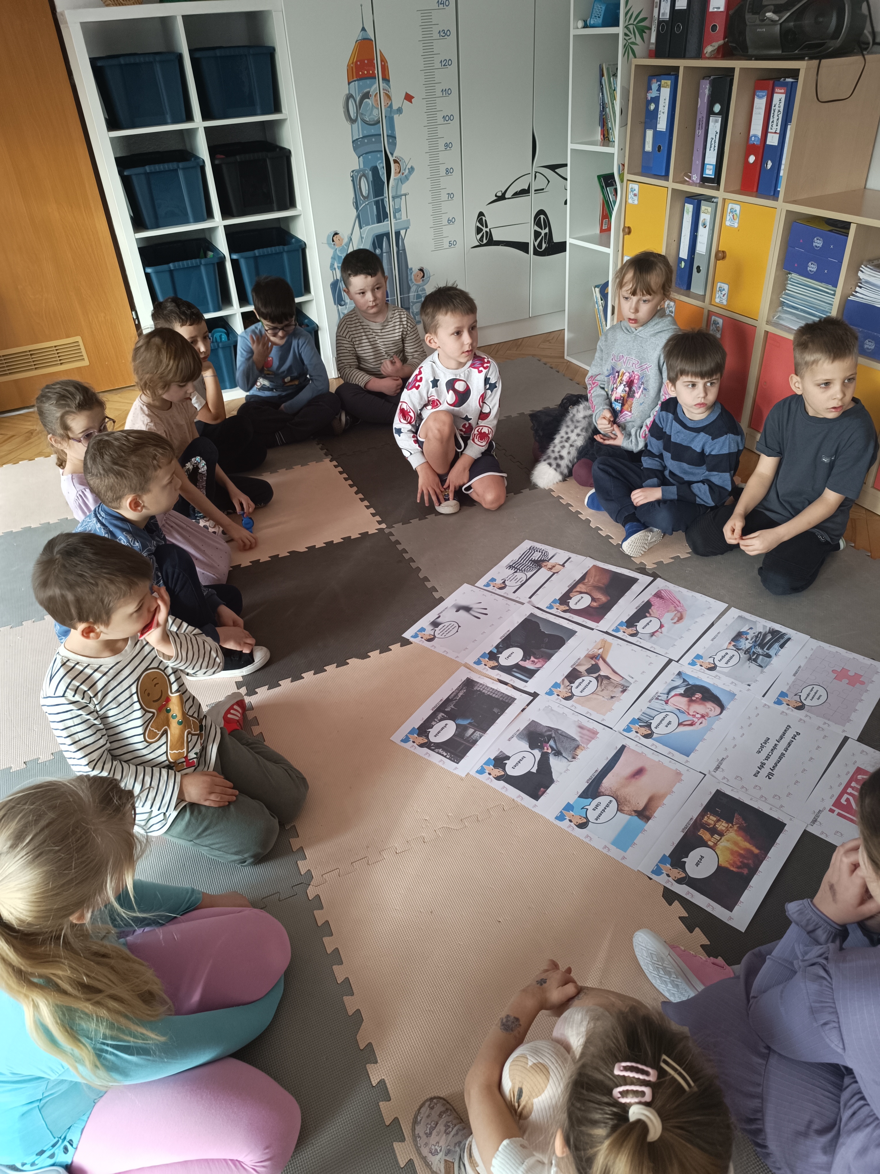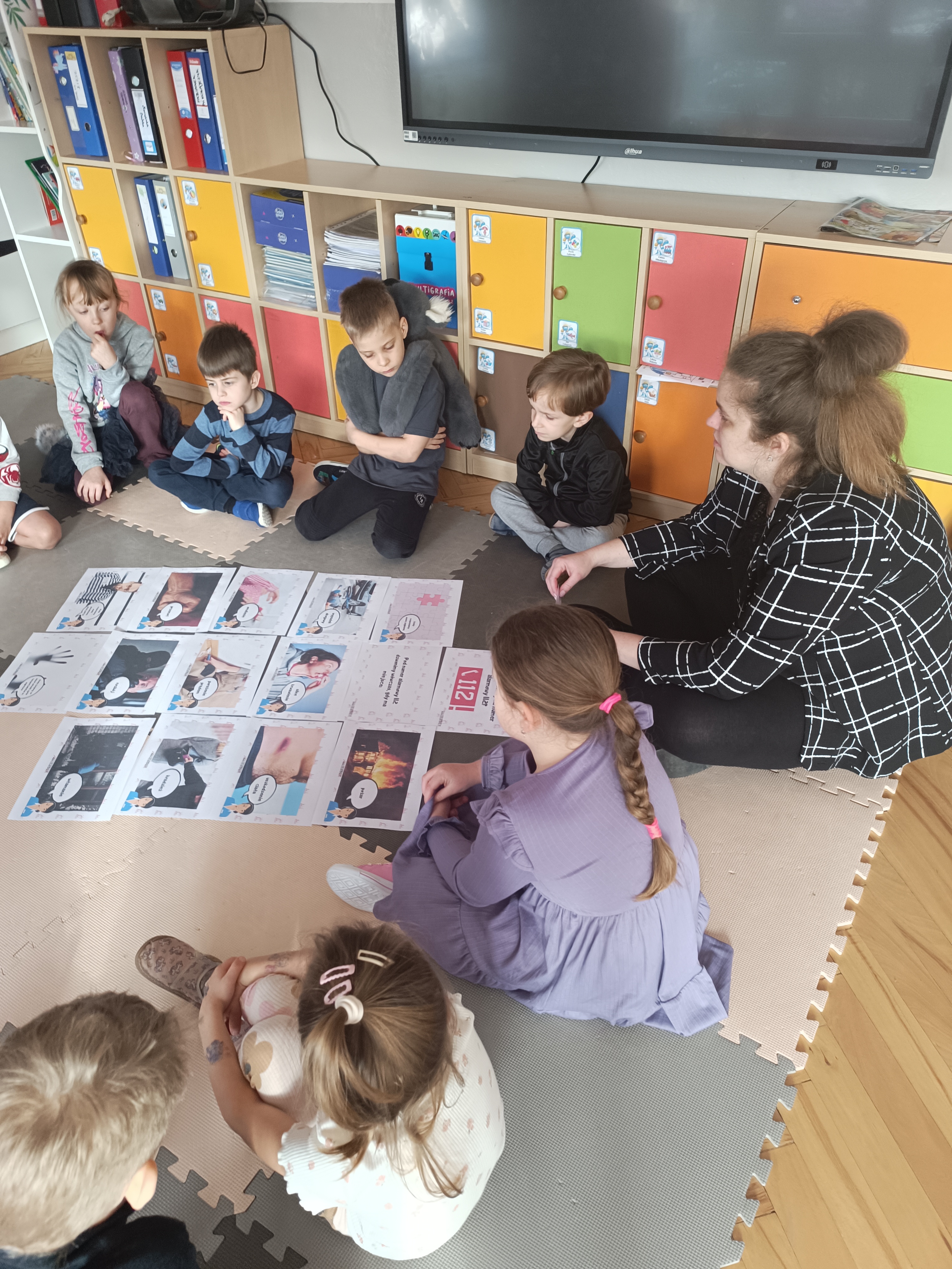 Celem zajęć było kształtowanie u dzieci odpowiedzialności oraz budowanie świadomości, jak ważne jest właściwe reagowanie w sytuacjach niebezpiecznych. Dzieci wykazały duże zaangażowanie i z zainteresowaniem uczestniczyły w proponowanych aktywnościach.