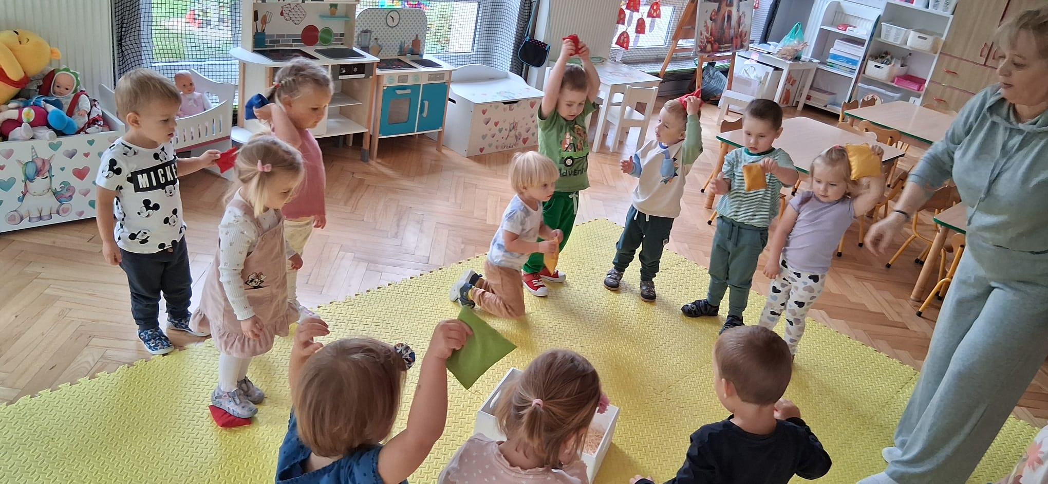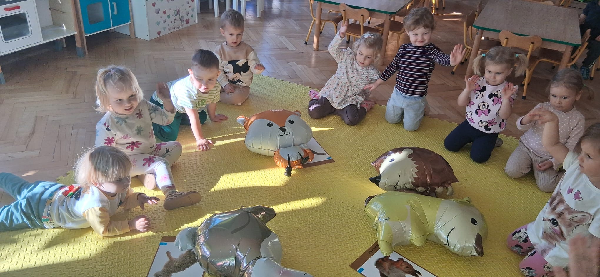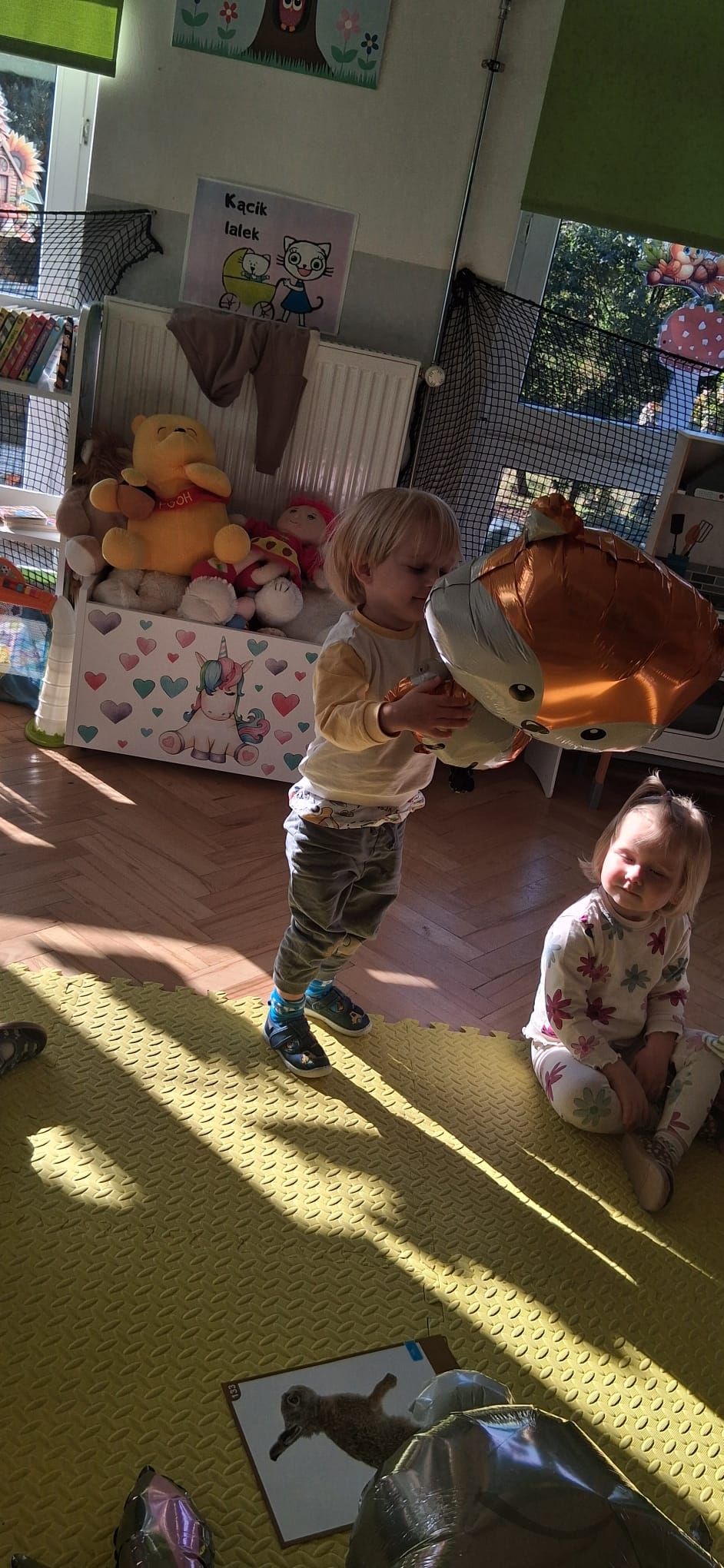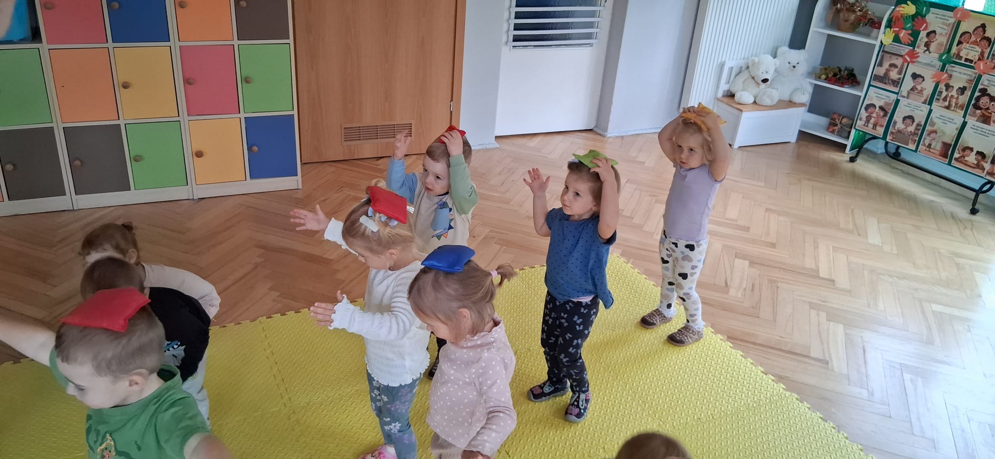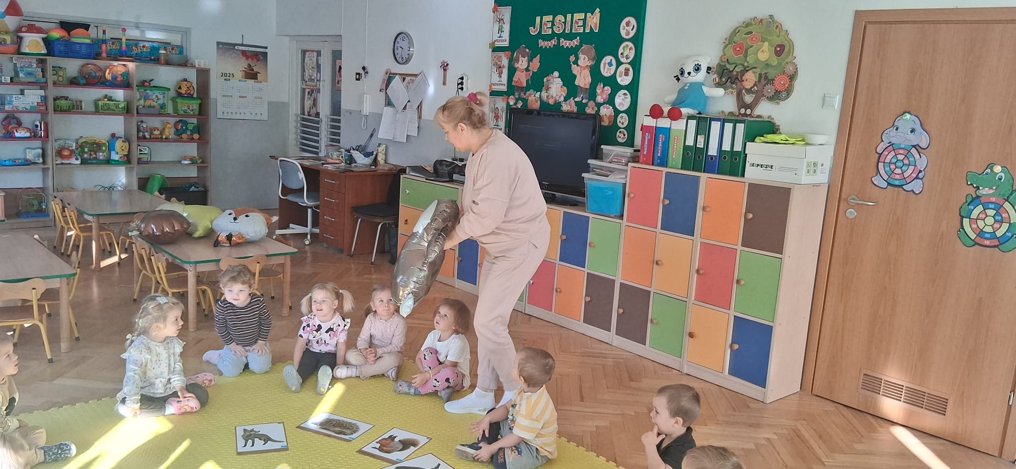 Za nami kolejny jesienny tydzień poświęcony przyrodzie. Tym razem rozmawialiśmy o zwierzętach mieszkających w lasach i parkach – dzieci zdobyły wiedzę na temat środowiska życia jeży, poznały ciekawostki na temat wyglądu, życia i odżywiania się dzików, słuchały ich głosów, oglądały ilustracje przedstawiające sarnę, wiewiórkę, lisa, jelenia, niedźwiedzia, wilka. Cały tydzień towarzyszyła nam wesoła piosenka „Kto mieszka w lesie”, której tekst dzieci ilustrowały ruchem.