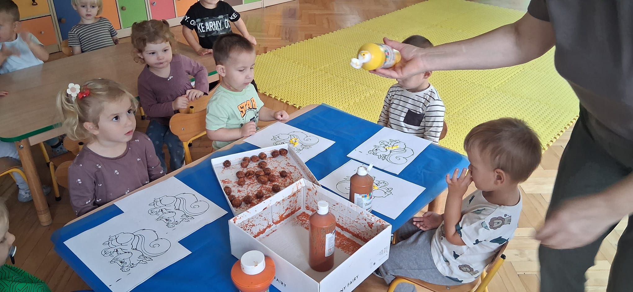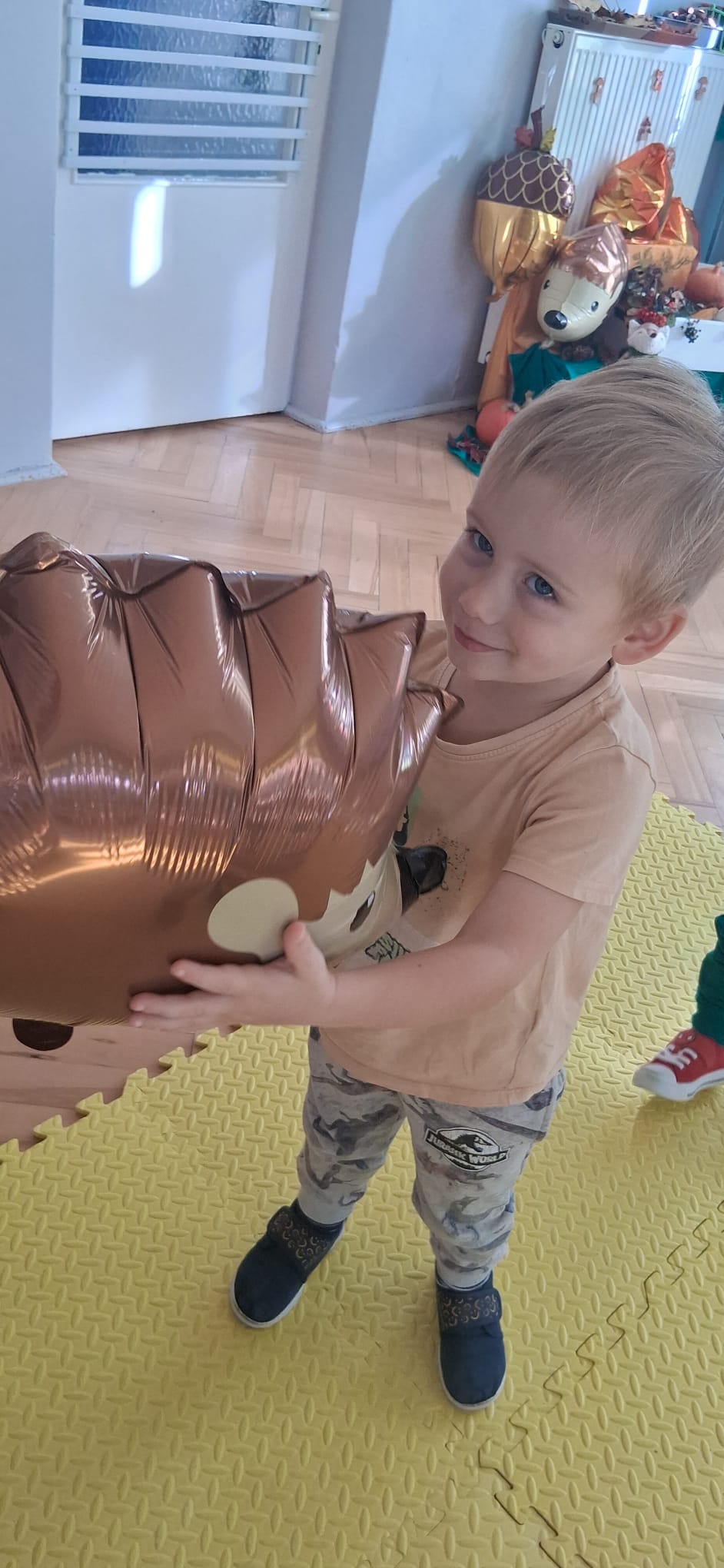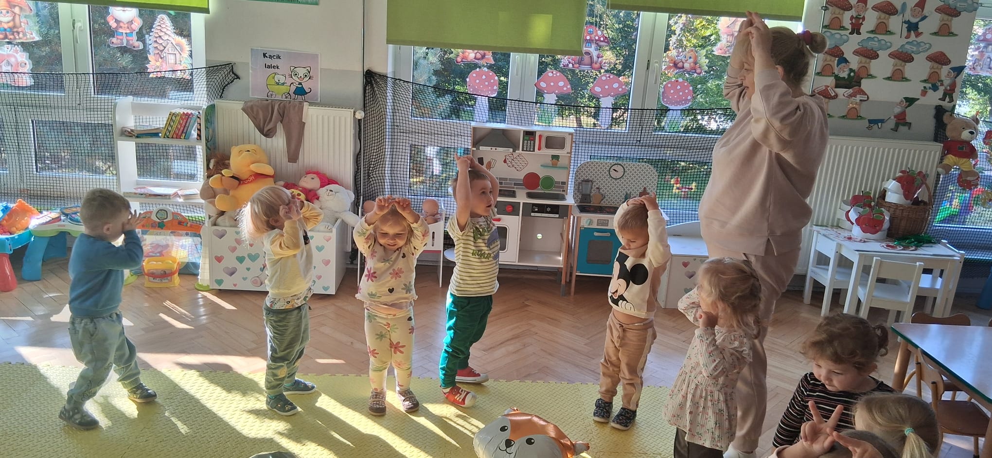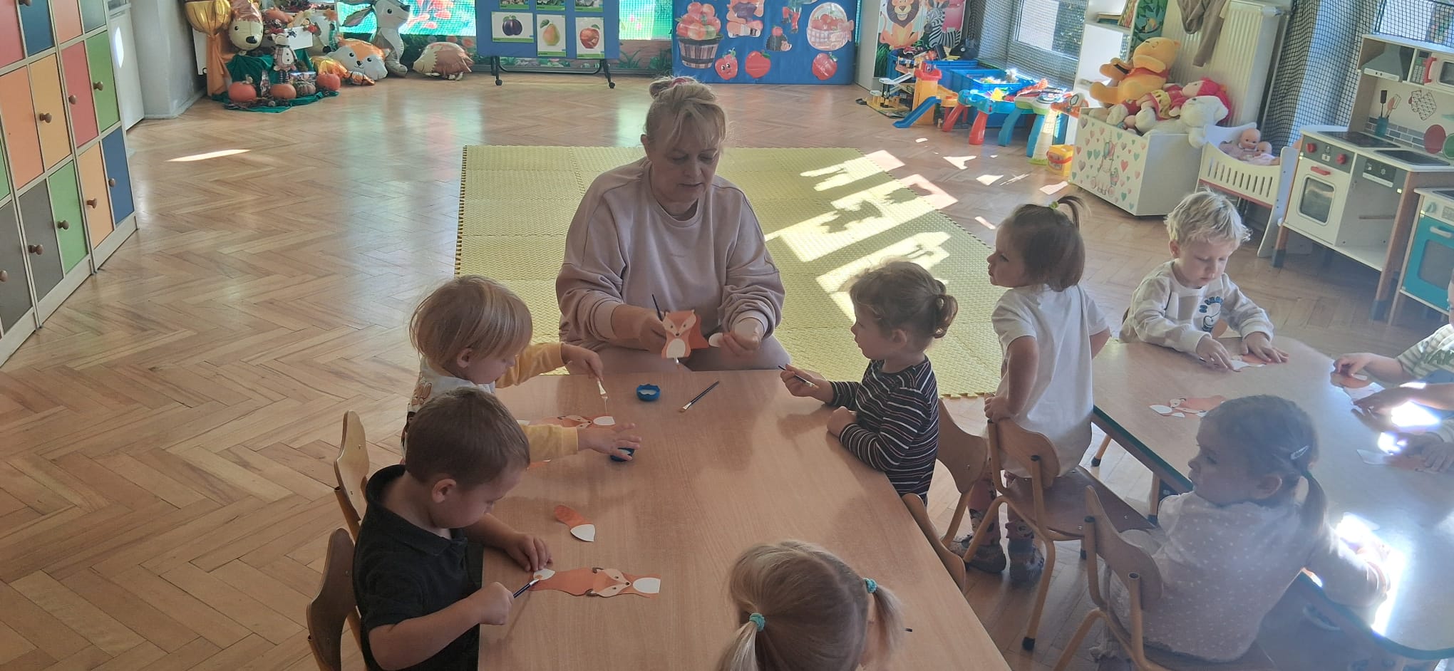 Za nami kolejny jesienny tydzień poświęcony przyrodzie. Tym razem rozmawialiśmy o zwierzętach mieszkających w lasach i parkach – dzieci zdobyły wiedzę na temat środowiska życia jeży, poznały ciekawostki na temat wyglądu, życia i odżywiania się dzików, słuchały ich głosów, oglądały ilustracje przedstawiające sarnę, wiewiórkę, lisa, jelenia, niedźwiedzia, wilka. Cały tydzień towarzyszyła nam wesoła piosenka „Kto mieszka w lesie”, której tekst dzieci ilustrowały ruchem.