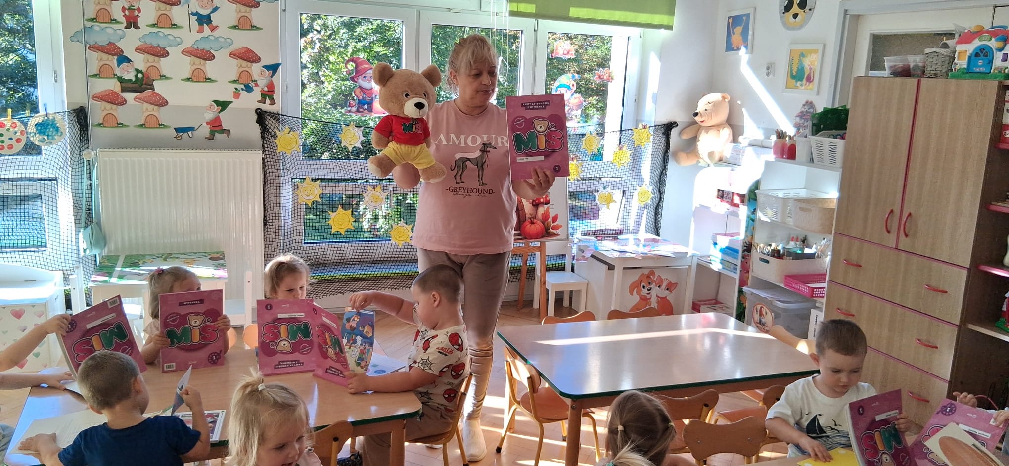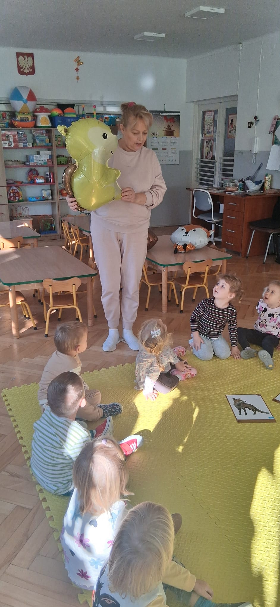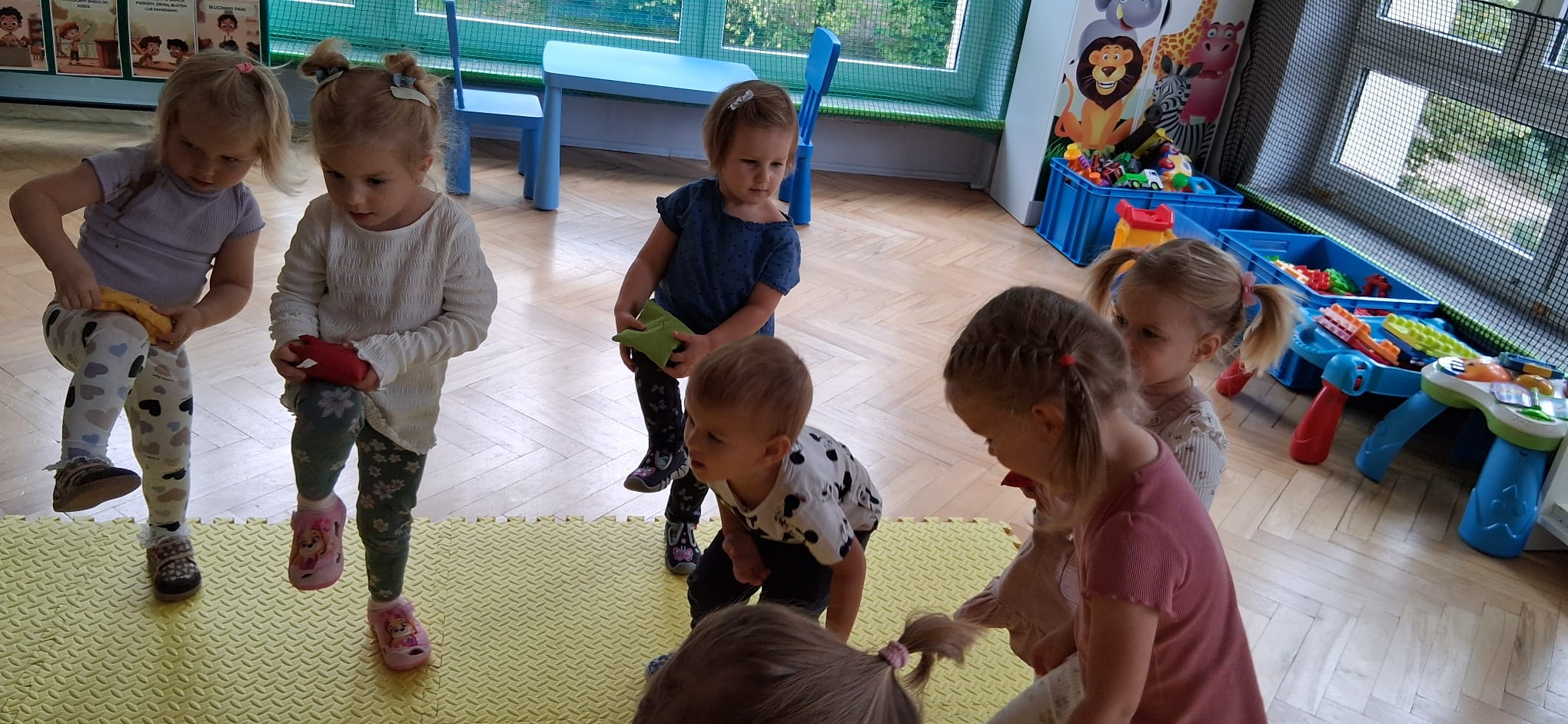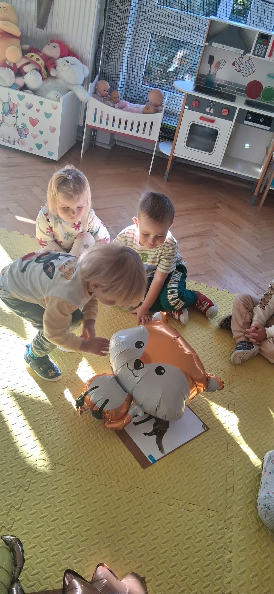 Za nami kolejny jesienny tydzień poświęcony przyrodzie. Tym razem rozmawialiśmy o zwierzętach mieszkających w lasach i parkach – dzieci zdobyły wiedzę na temat środowiska życia jeży, poznały ciekawostki na temat wyglądu, życia i odżywiania się dzików, słuchały ich głosów, oglądały ilustracje przedstawiające sarnę, wiewiórkę, lisa, jelenia, niedźwiedzia, wilka. Cały tydzień towarzyszyła nam wesoła piosenka „Kto mieszka w lesie”, której tekst dzieci ilustrowały ruchem.