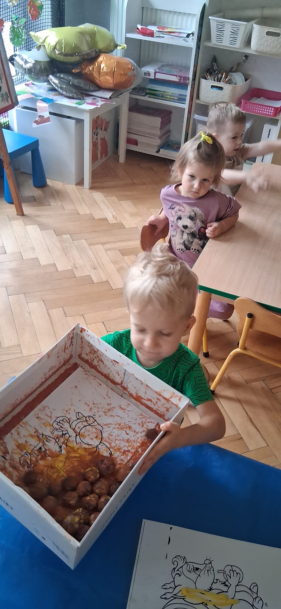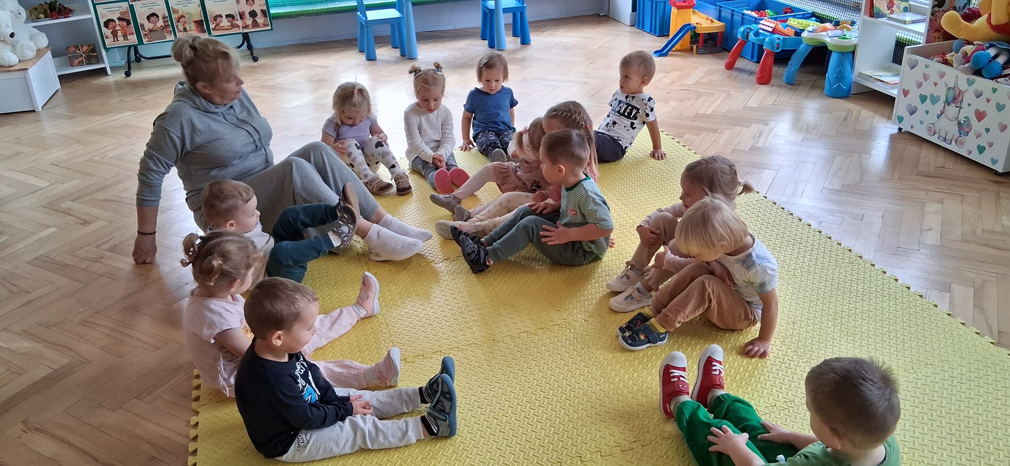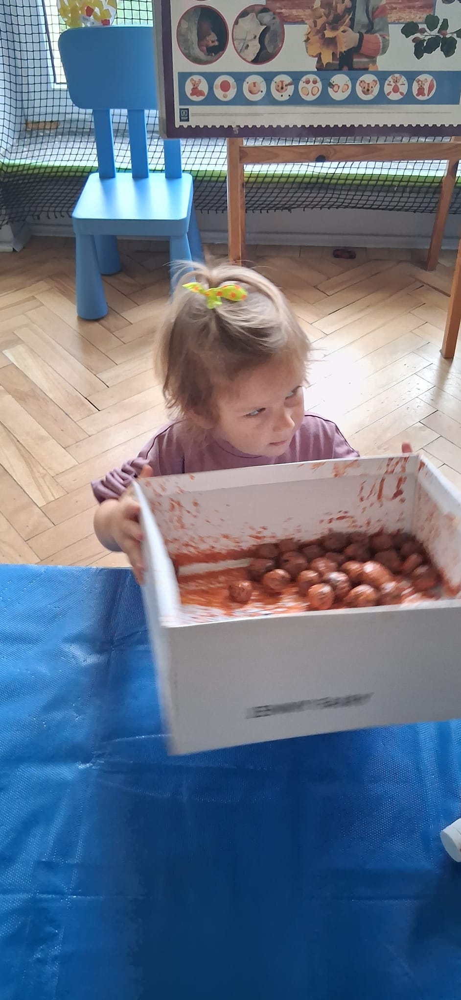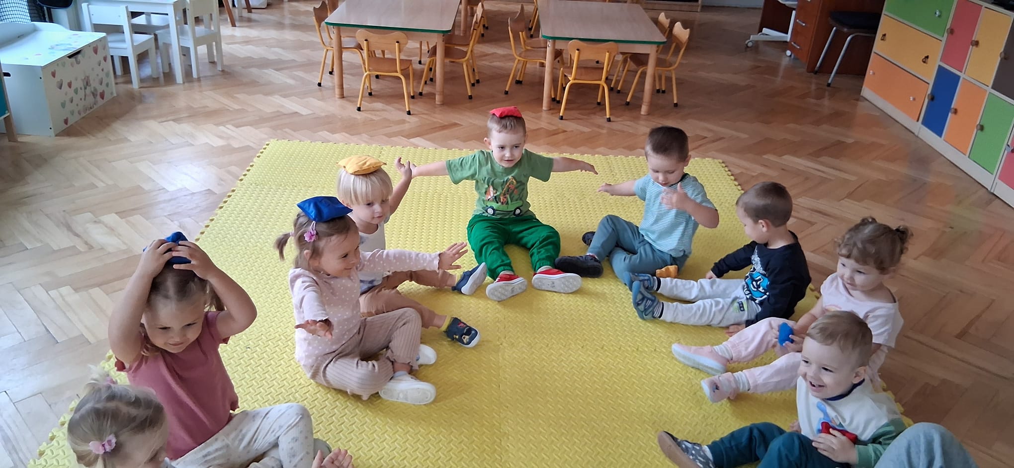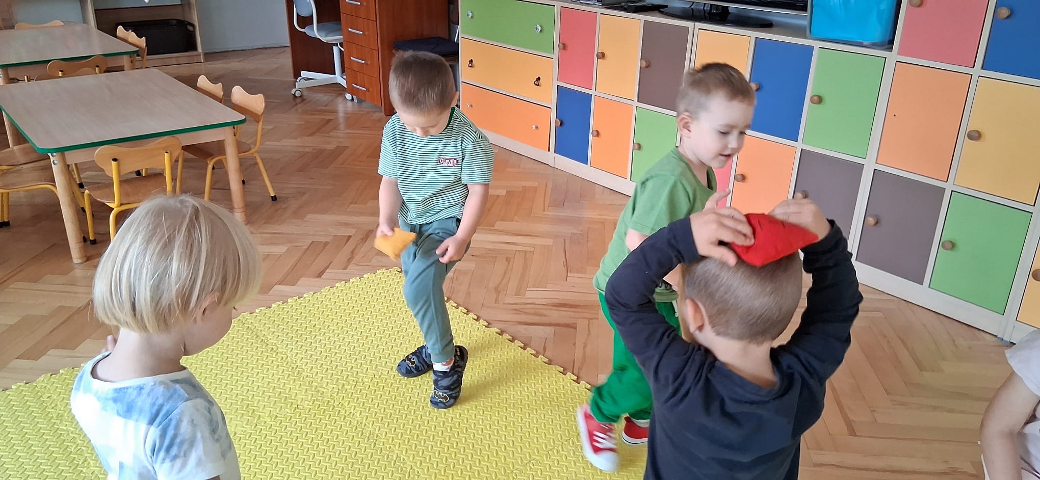 Nowy tydzień rozpoczęliśmy od opowiadania Wojciecha Widłaka „Spotkanie” z książki „Pan Kuleczka” i rozmowy na temat jeży – tego, jak wyglądają, gdzie lubią się chować, co jedzą. Dzieci poszerzały swoją wiedzę przyrodniczą podczas zabawy klasyfikacyjnej „Kto mieszka w naszym lesie?”, zabawy ruchowej „Jeże pod liśćmi”, zagadek obrazkowych „Kto ukrył się w liściach?”, zdobywały umiejętności matematyczne (zabawa „Ile nóg mają te zwierzęta?’, „W którym stosiku liści zagrzebał się jeż?’, „Ile zwierząt jest przy paśniku?”), uczyły się rymowanek „Jesień, jesień” oraz „Berek z Panią Jesienią”.