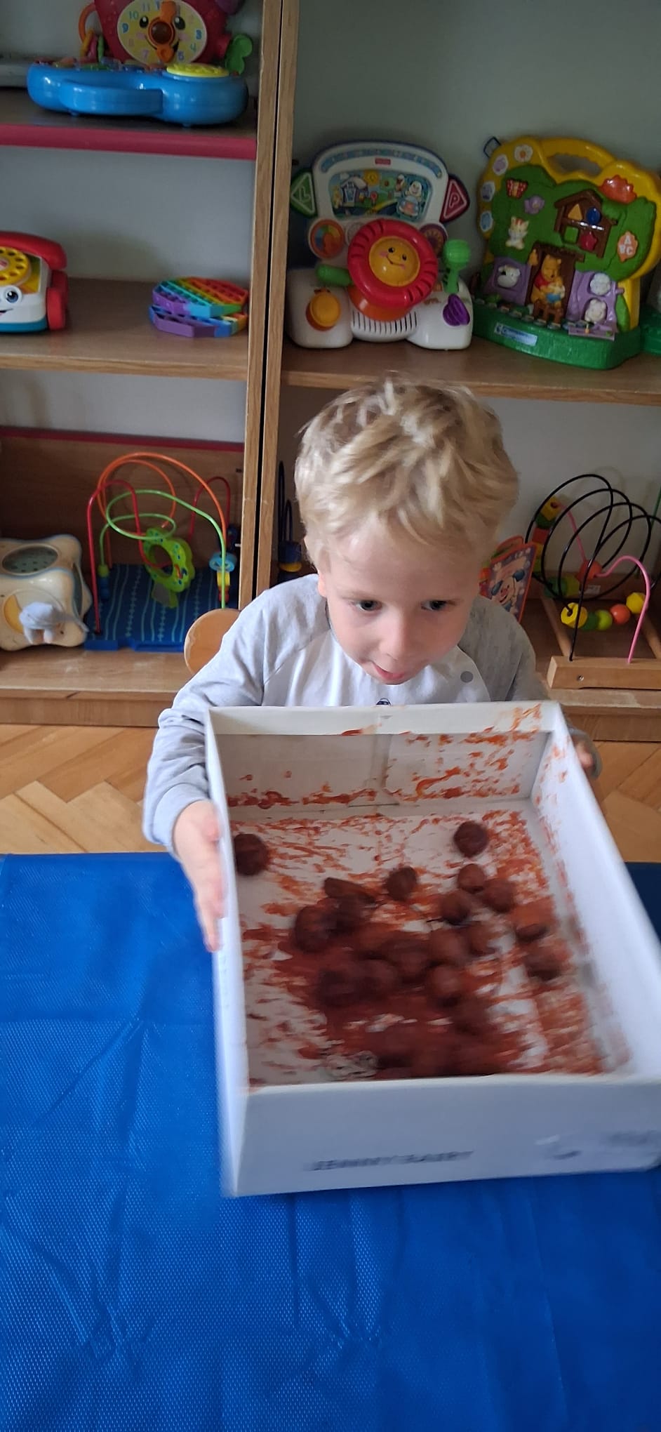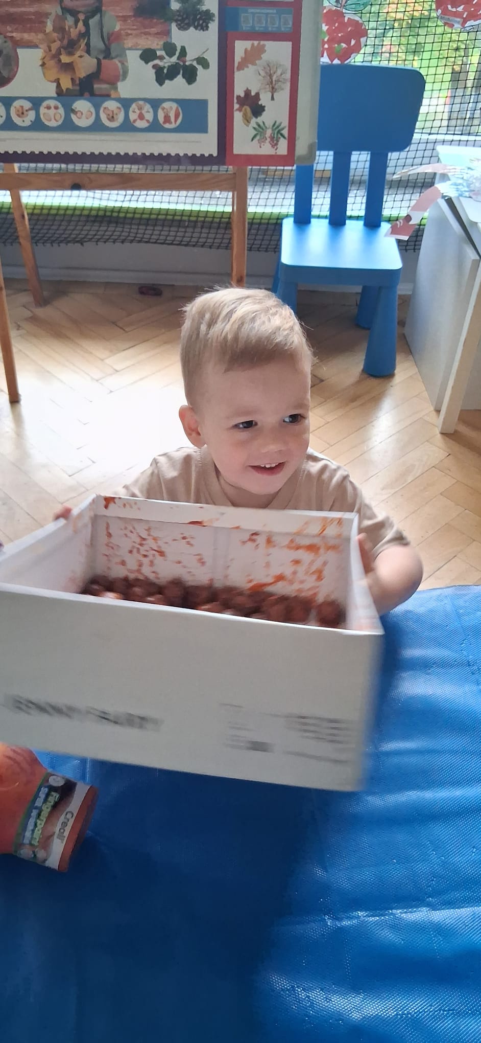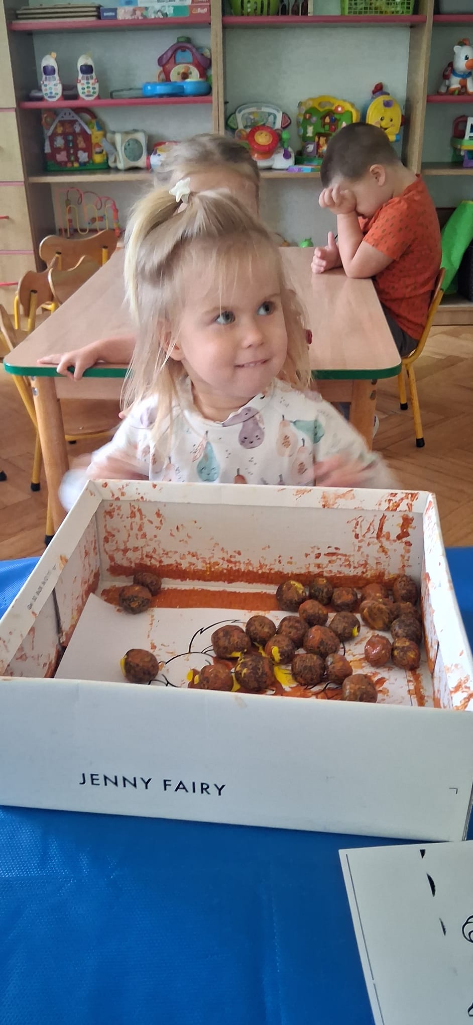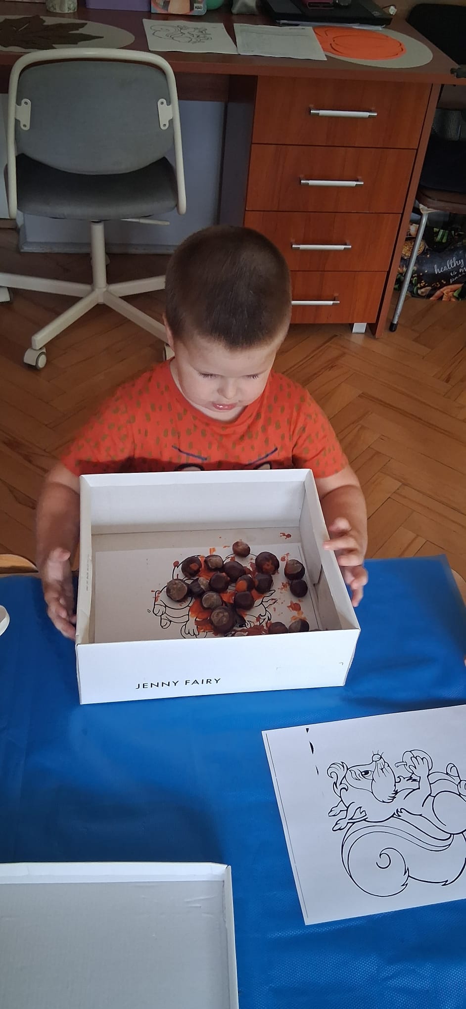 Nowy tydzień rozpoczęliśmy od opowiadania Wojciecha Widłaka „Spotkanie” z książki „Pan Kuleczka” i rozmowy na temat jeży – tego, jak wyglądają, gdzie lubią się chować, co jedzą. Dzieci poszerzały swoją wiedzę przyrodniczą podczas zabawy klasyfikacyjnej „Kto mieszka w naszym lesie?”, zabawy ruchowej „Jeże pod liśćmi”, zagadek obrazkowych „Kto ukrył się w liściach?”, zdobywały umiejętności matematyczne (zabawa „Ile nóg mają te zwierzęta?’, „W którym stosiku liści zagrzebał się jeż?’, „Ile zwierząt jest przy paśniku?”), uczyły się rymowanek „Jesień, jesień” oraz „Berek z Panią Jesienią”.