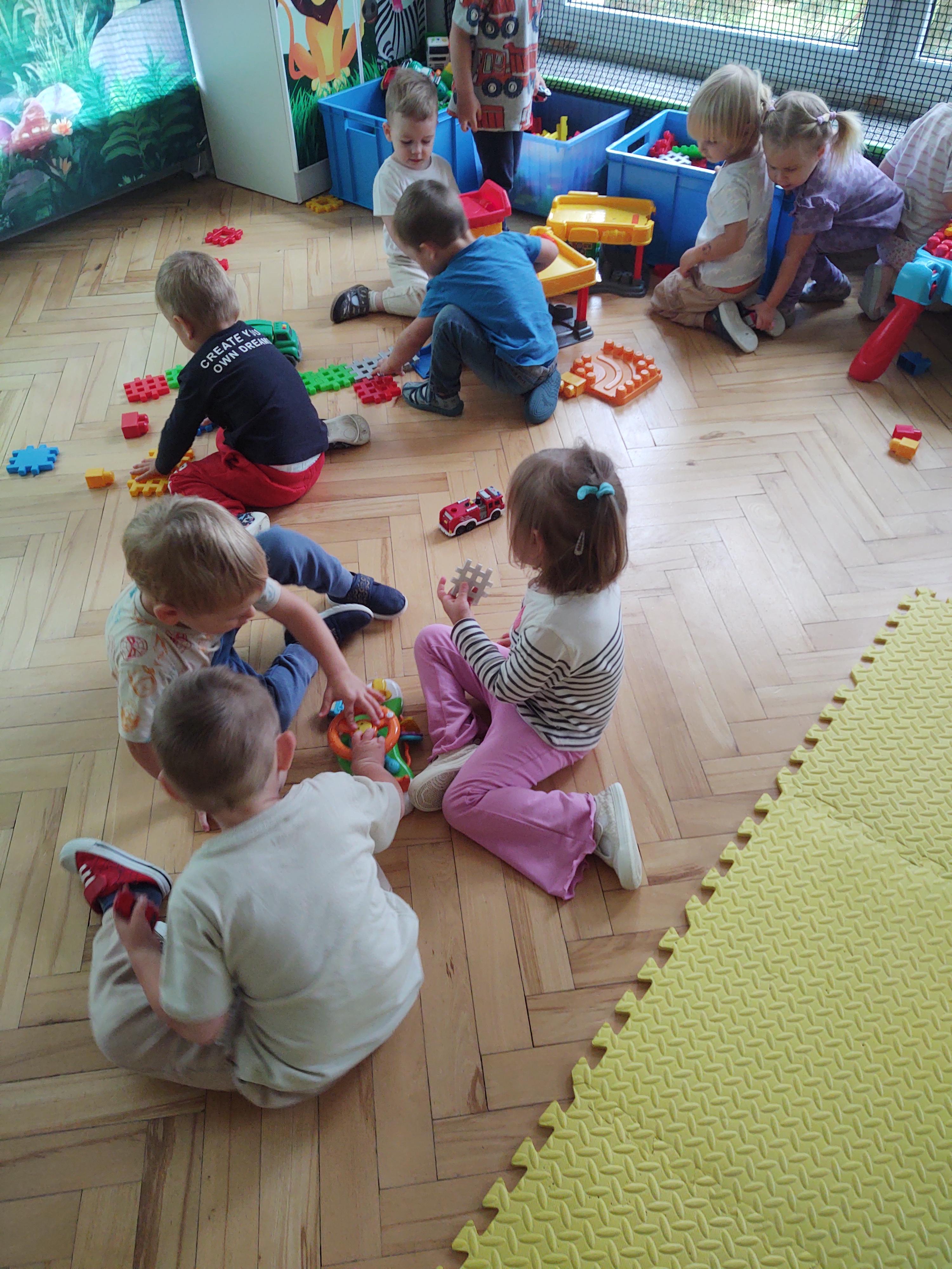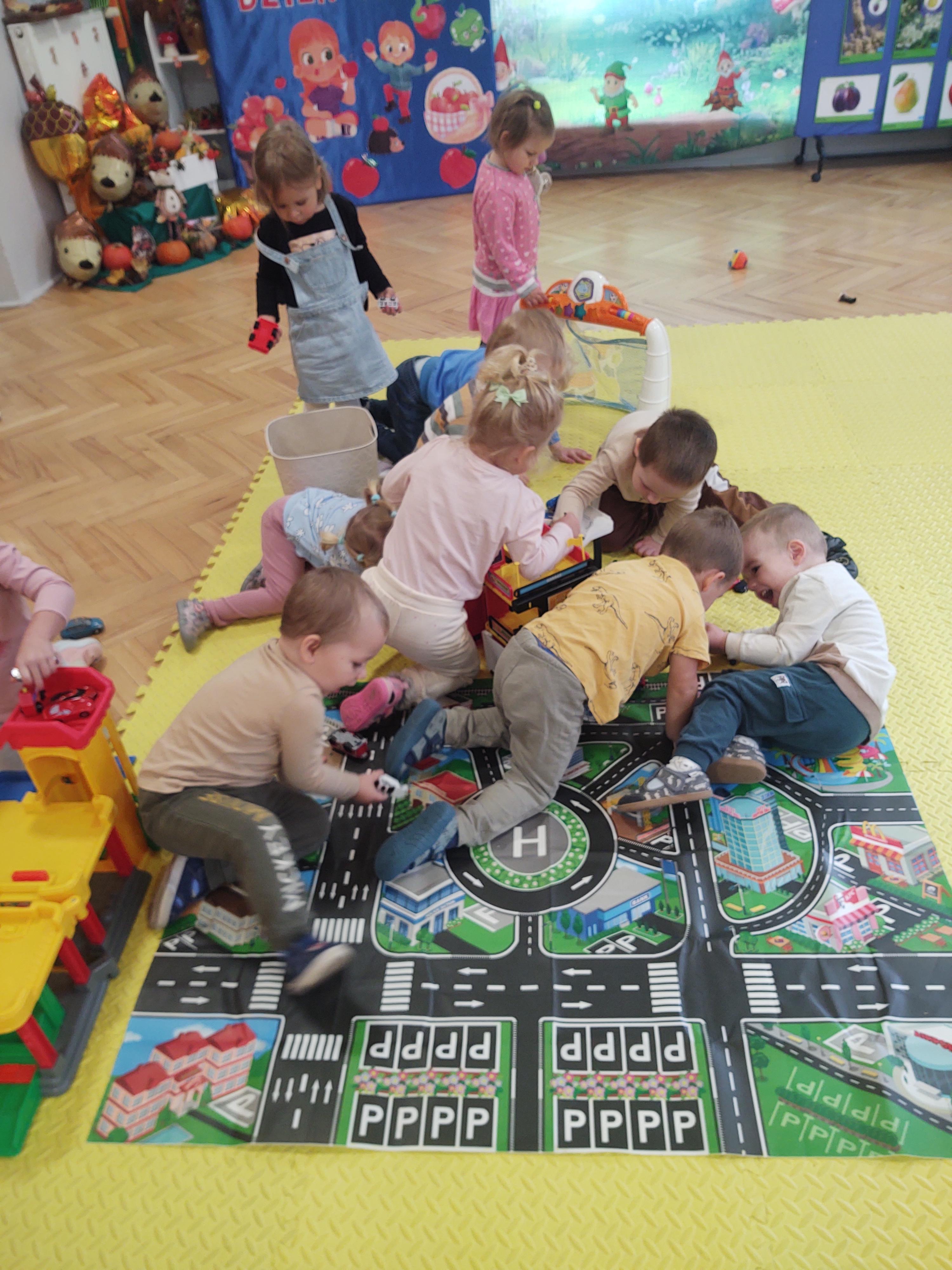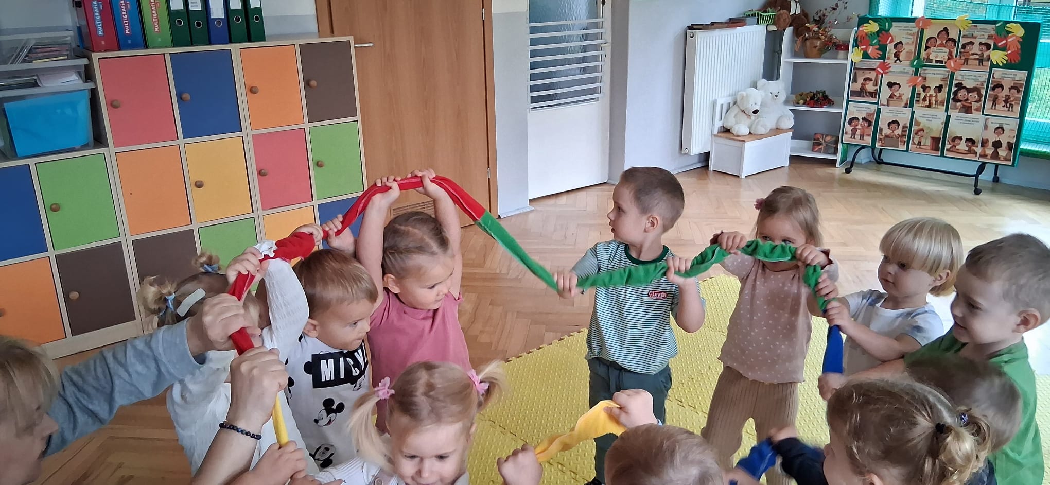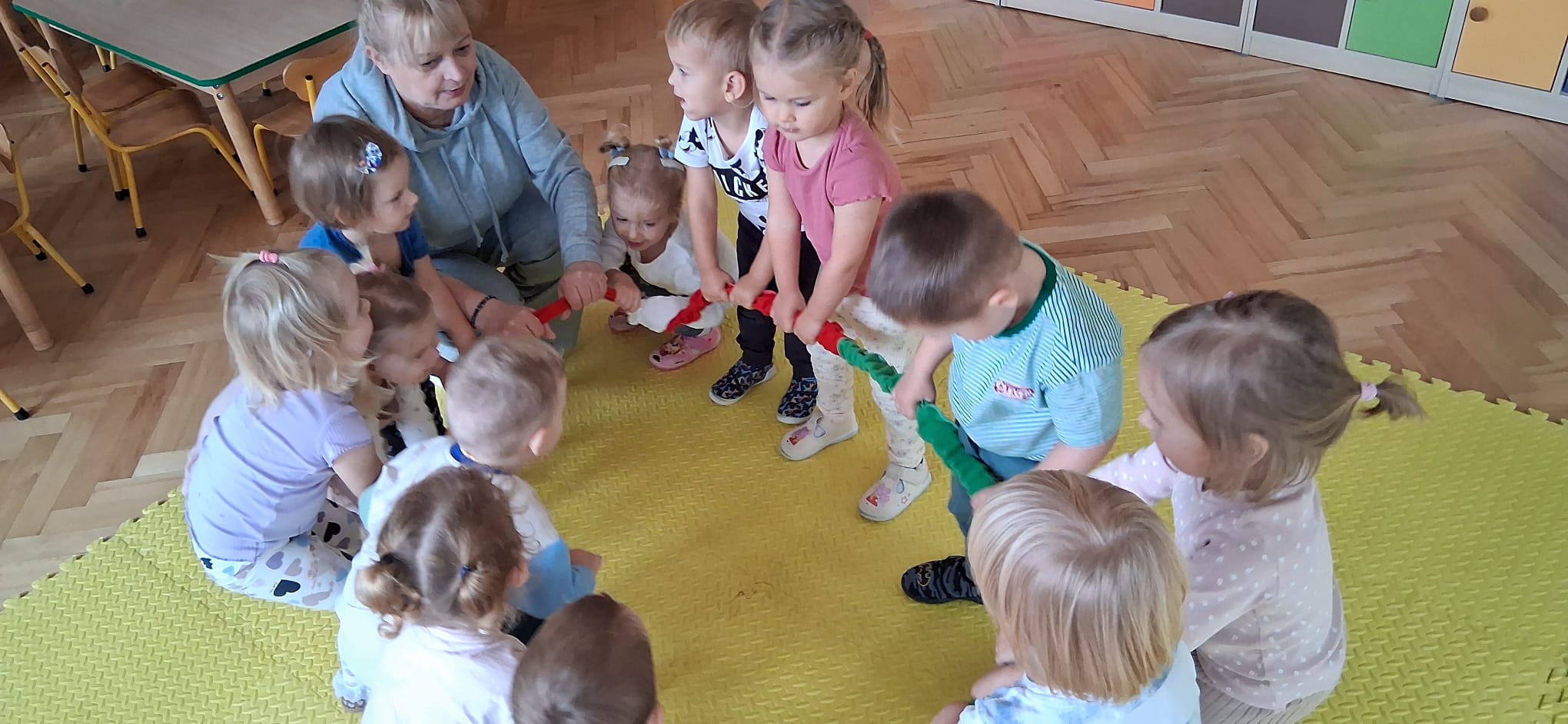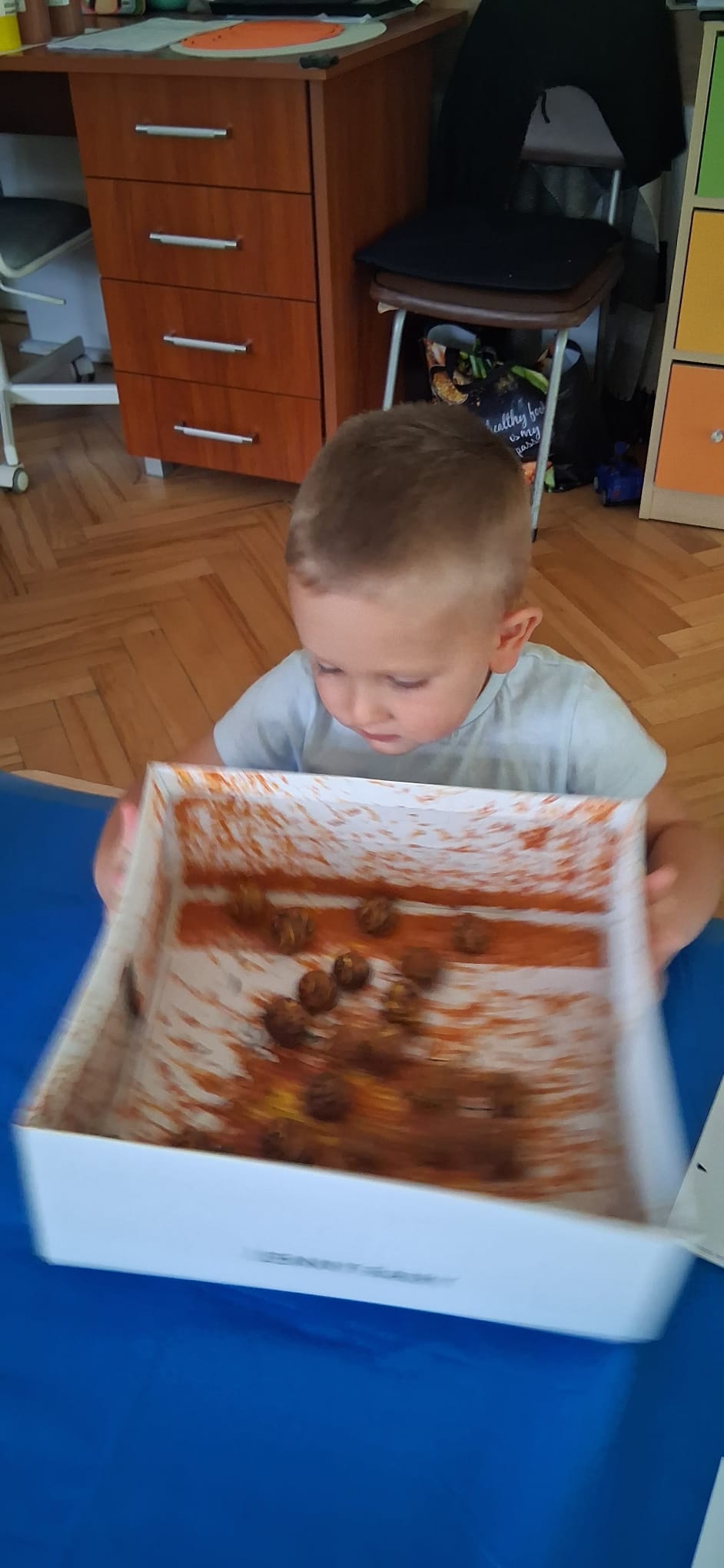 Nowy tydzień rozpoczęliśmy od opowiadania Wojciecha Widłaka „Spotkanie” z książki „Pan Kuleczka” i rozmowy na temat jeży – tego, jak wyglądają, gdzie lubią się chować, co jedzą. Dzieci poszerzały swoją wiedzę przyrodniczą podczas zabawy klasyfikacyjnej „Kto mieszka w naszym lesie?”, zabawy ruchowej „Jeże pod liśćmi”, zagadek obrazkowych „Kto ukrył się w liściach?”, zdobywały umiejętności matematyczne (zabawa „Ile nóg mają te zwierzęta?’, „W którym stosiku liści zagrzebał się jeż?’, „Ile zwierząt jest przy paśniku?”), uczyły się rymowanek „Jesień, jesień” oraz „Berek z Panią Jesienią”.
