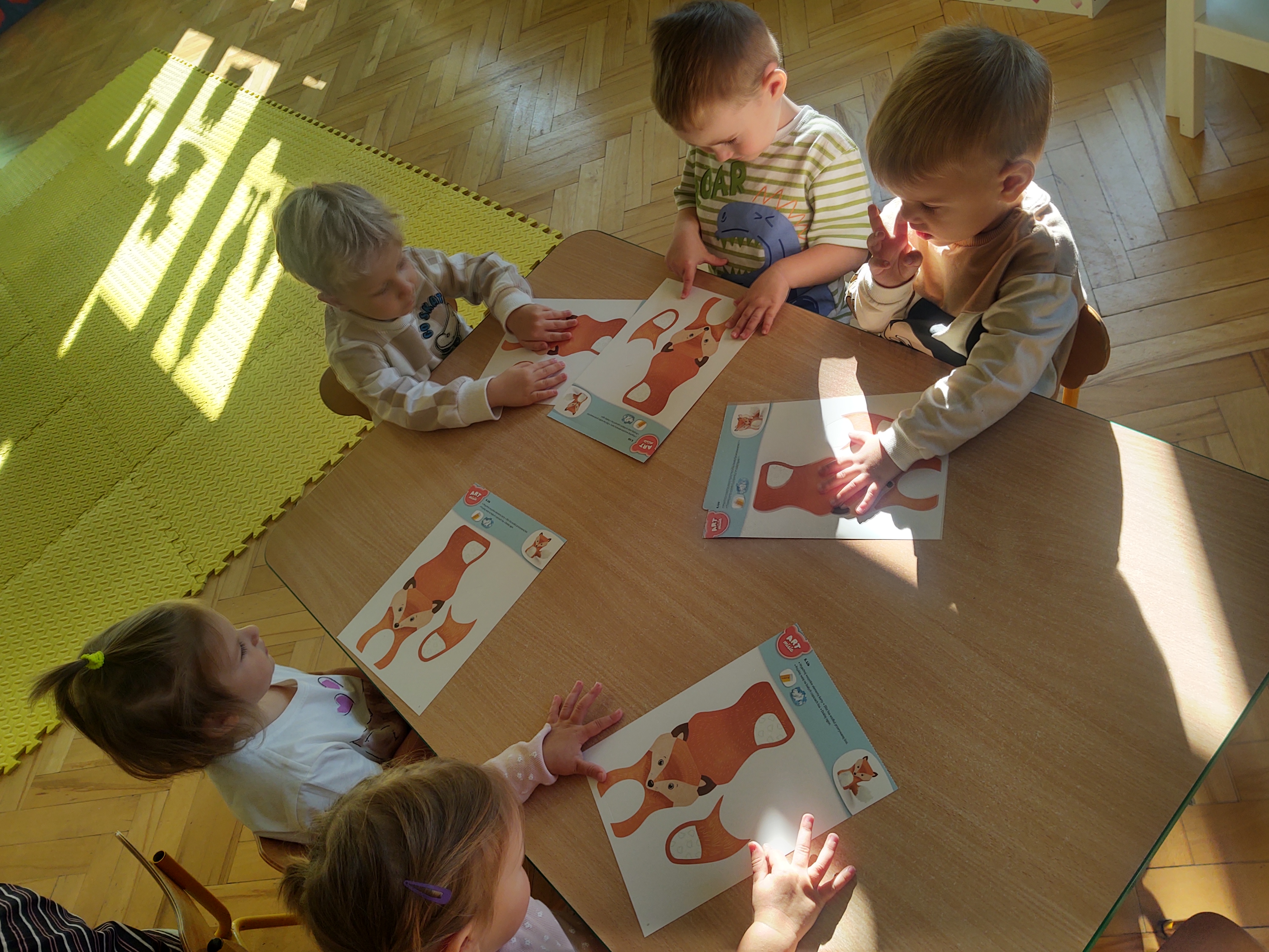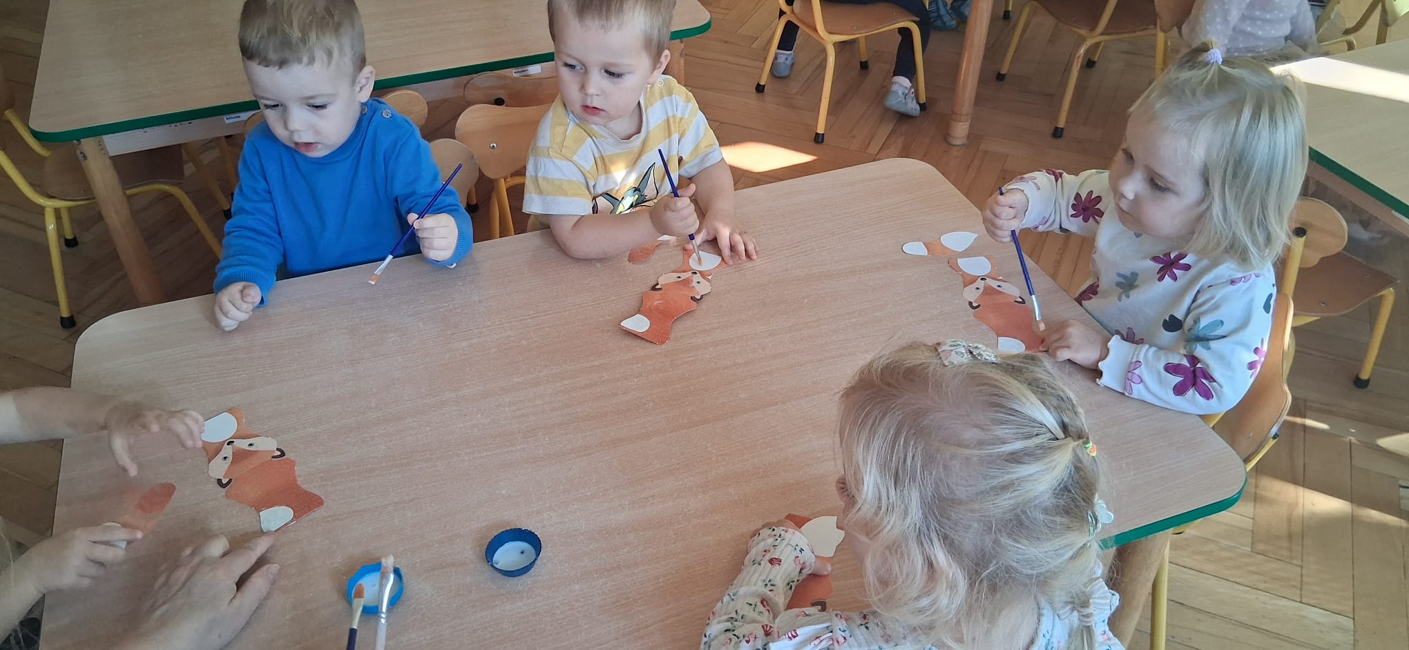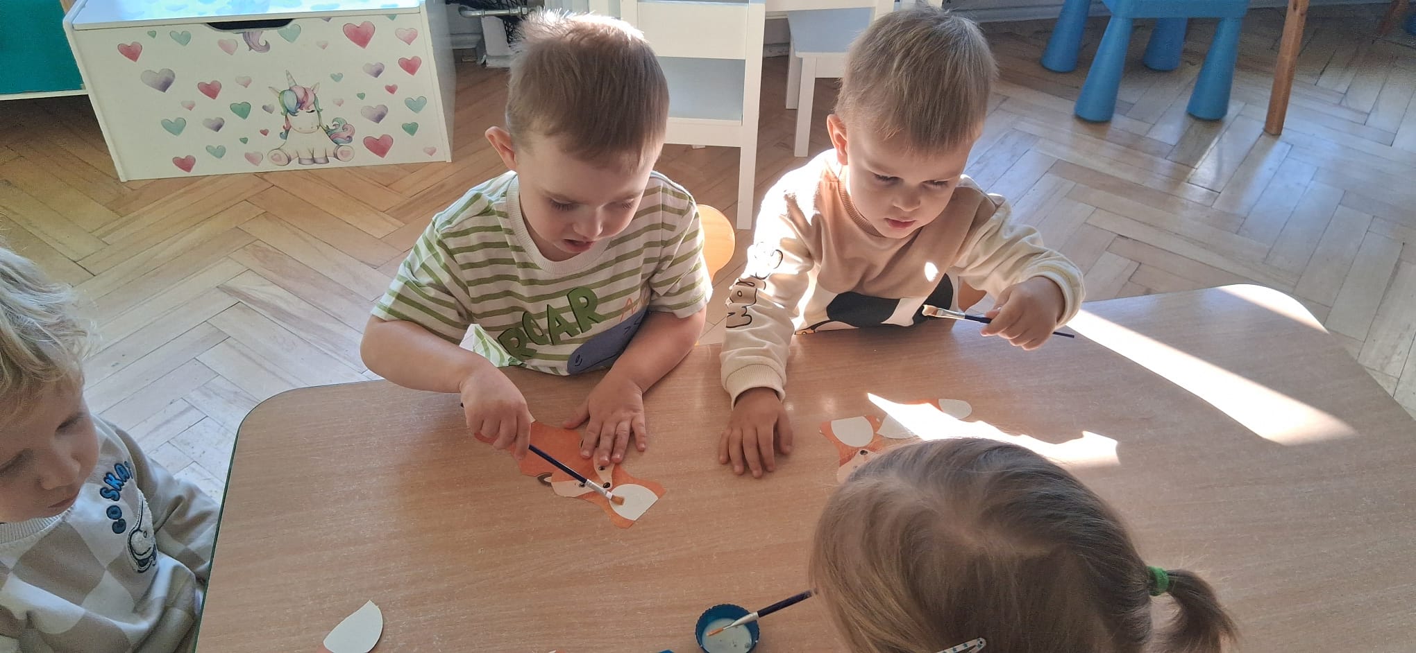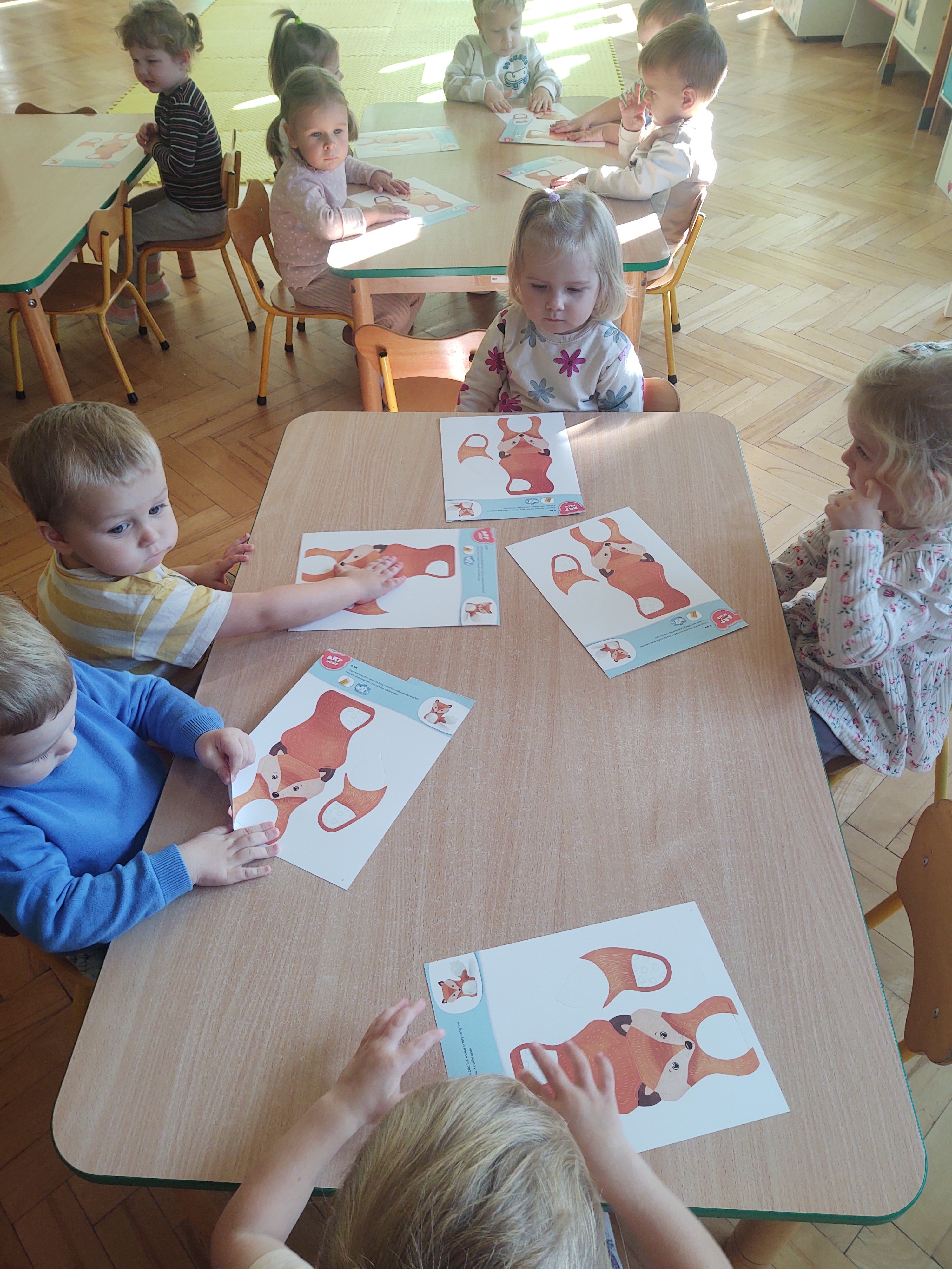Przez cały tydzień towarzyszyły nam zabawy ruchowe – „Fotografie z jesiennego spaceru”, „Dziki szukają pożywienia”, „Jesienna muzyka”, „Zające i lisy”, mieliśmy też czas na zabawy plastyczne z wykorzystaniem jesiennych skarbów przyrody (zabawa kreatywna „Zwierzęta z darów jesieni”, praca plastyczno-techniczna „Lis” i „Lornetka leśniczego”); poznaliśmy też zawód leśnika (zabawy „Leśniczy tropi zwierzęta”, „Leśniczy na ambonie”, „Leśniczy woła zwierzęta”).