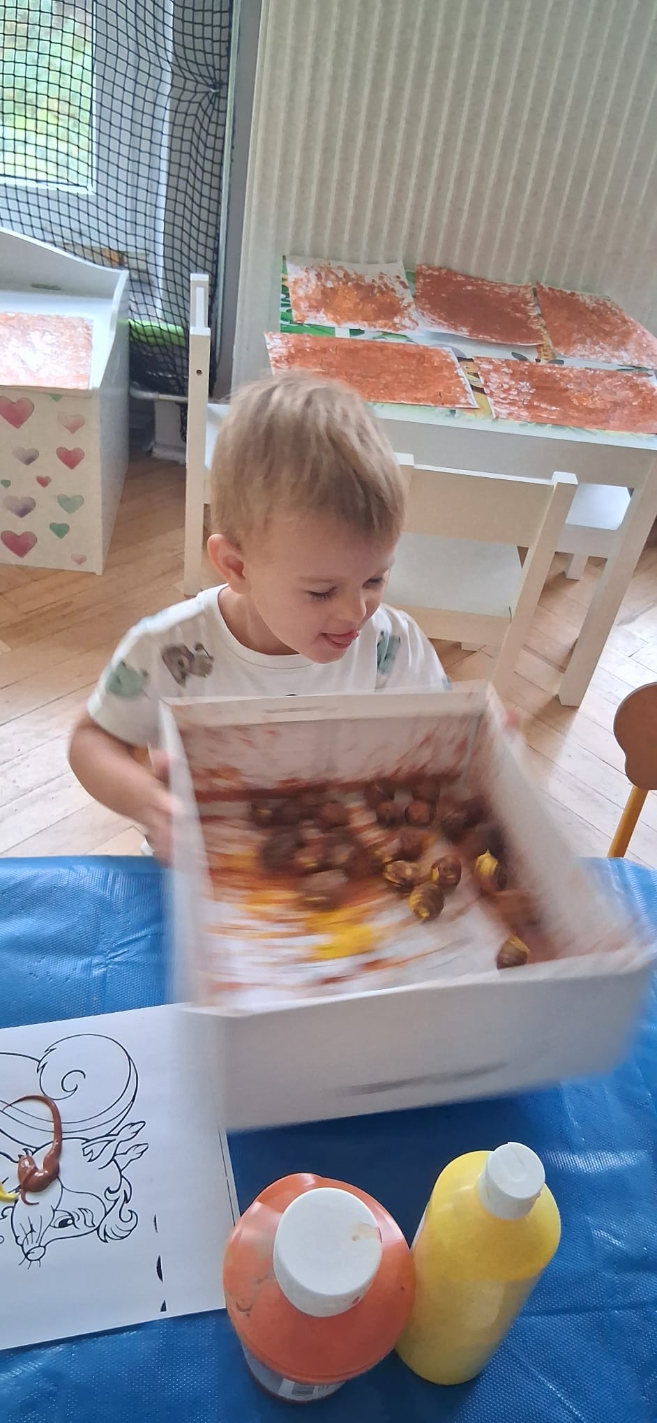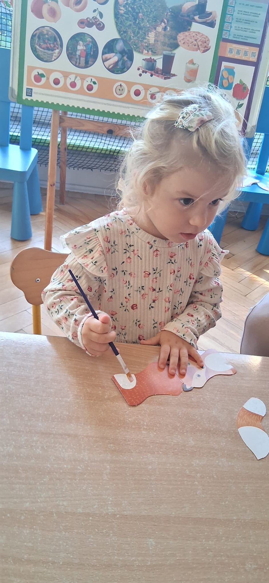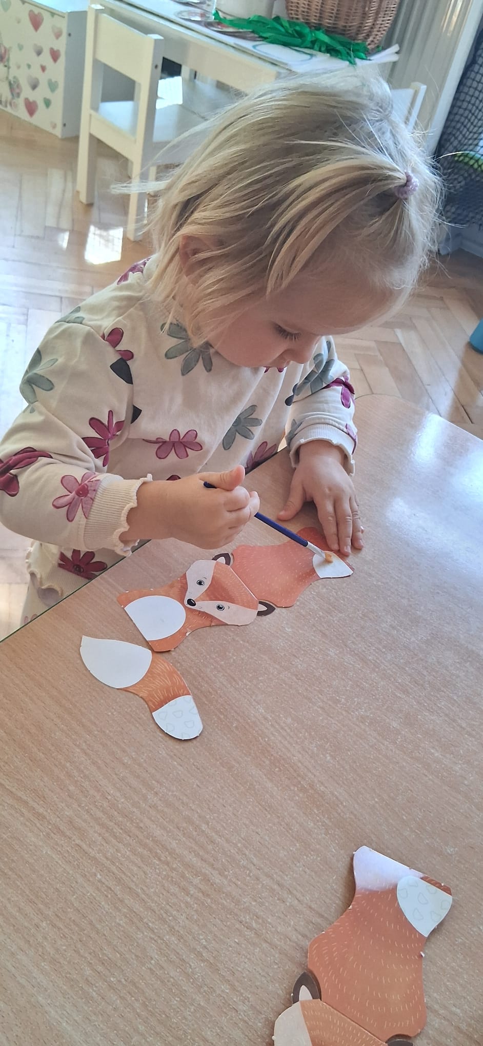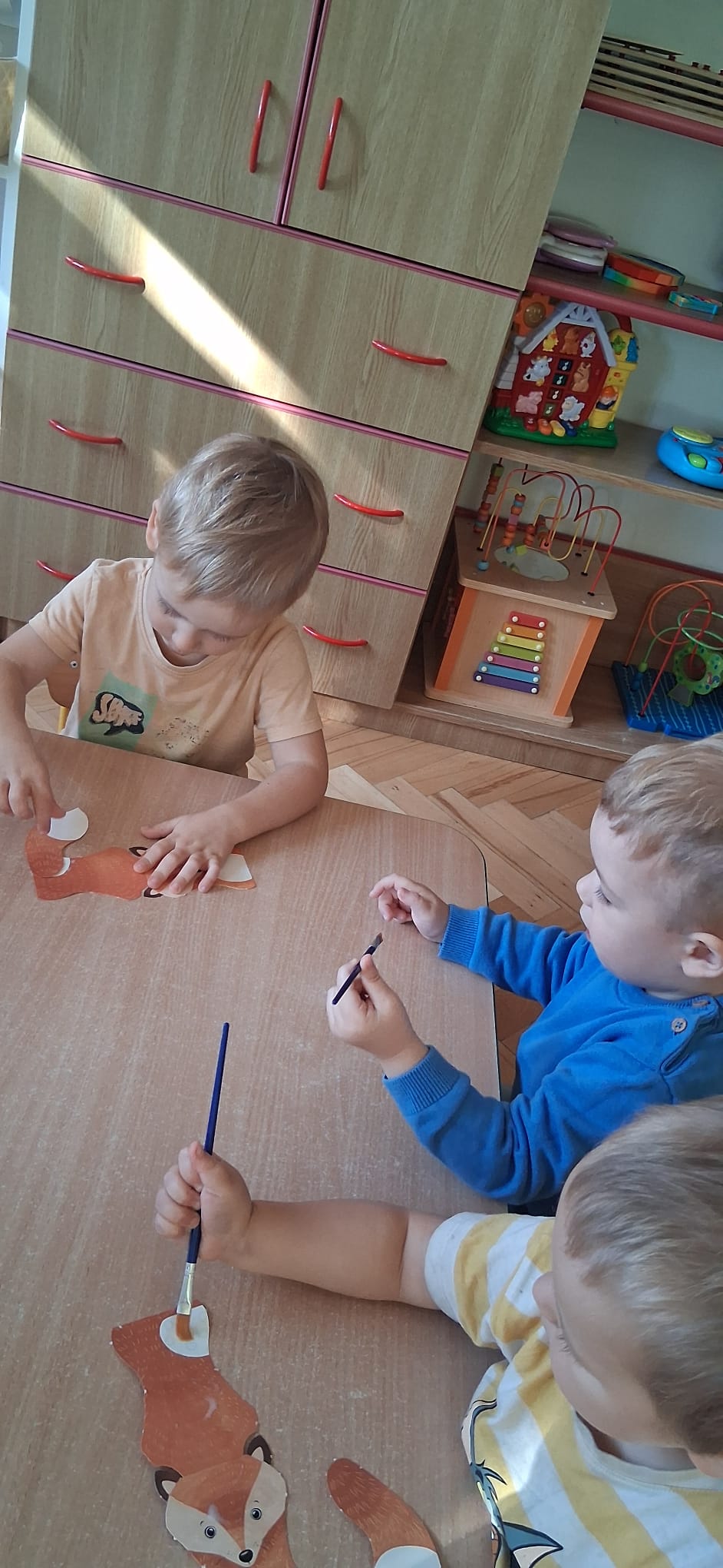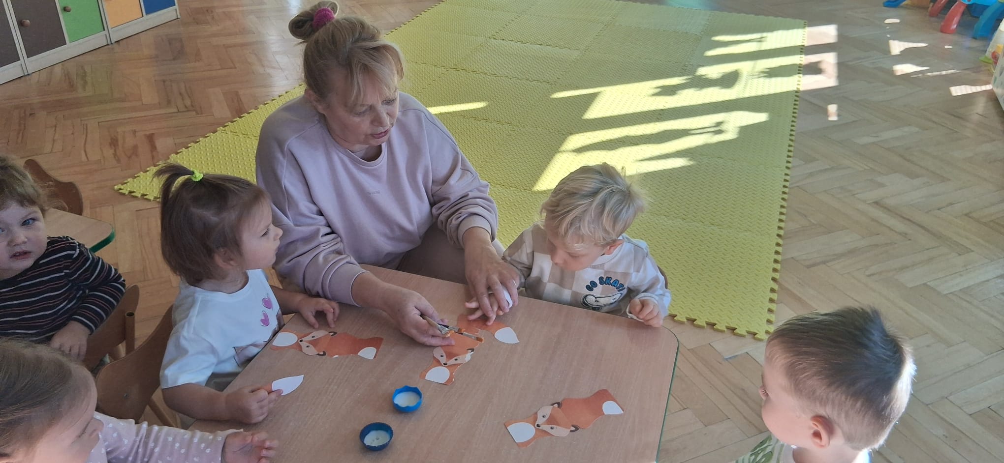 Przez cały tydzień towarzyszyły nam zabawy ruchowe – „Fotografie z jesiennego spaceru”, „Dziki szukają pożywienia”, „Jesienna muzyka”, „Zające i lisy”, mieliśmy też czas na zabawy plastyczne z wykorzystaniem jesiennych skarbów przyrody (zabawa kreatywna „Zwierzęta z darów jesieni”, praca plastyczno-techniczna „Lis” i „Lornetka leśniczego”); poznaliśmy też zawód leśnika (zabawy „Leśniczy tropi zwierzęta”, „Leśniczy na ambonie”, „Leśniczy woła zwierzęta”).