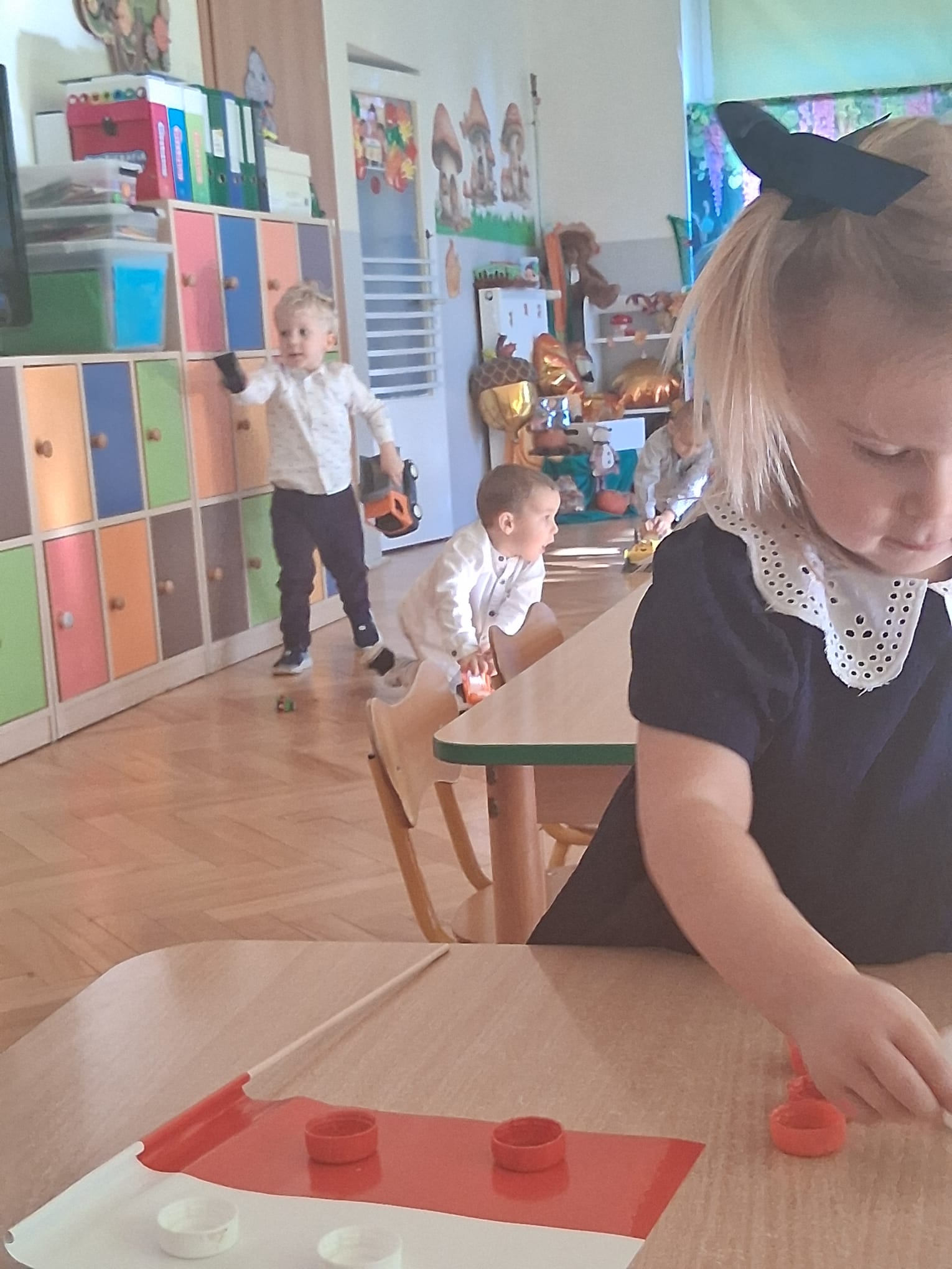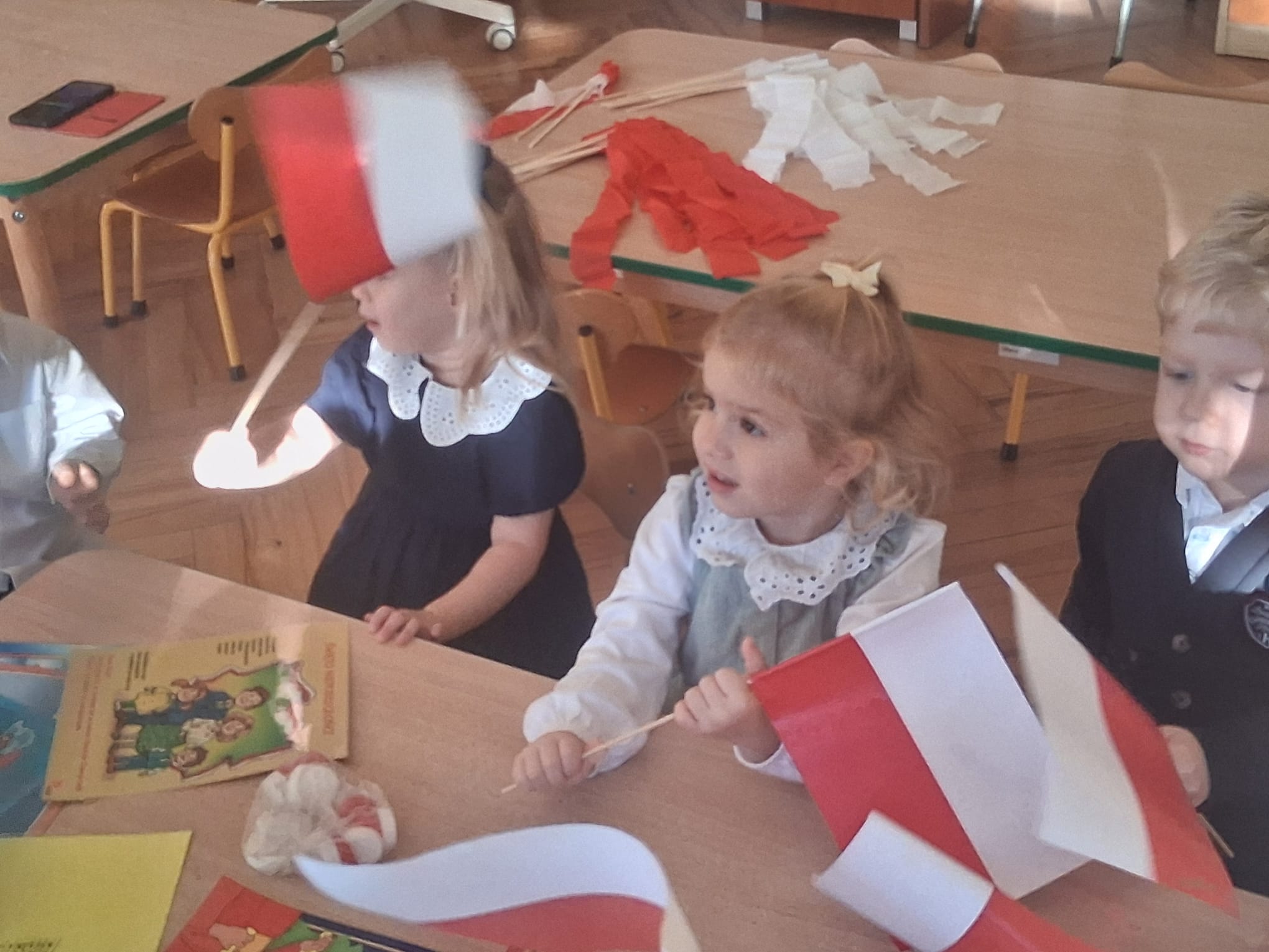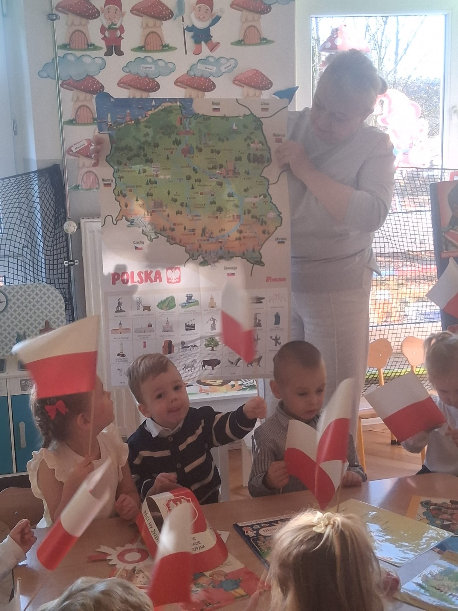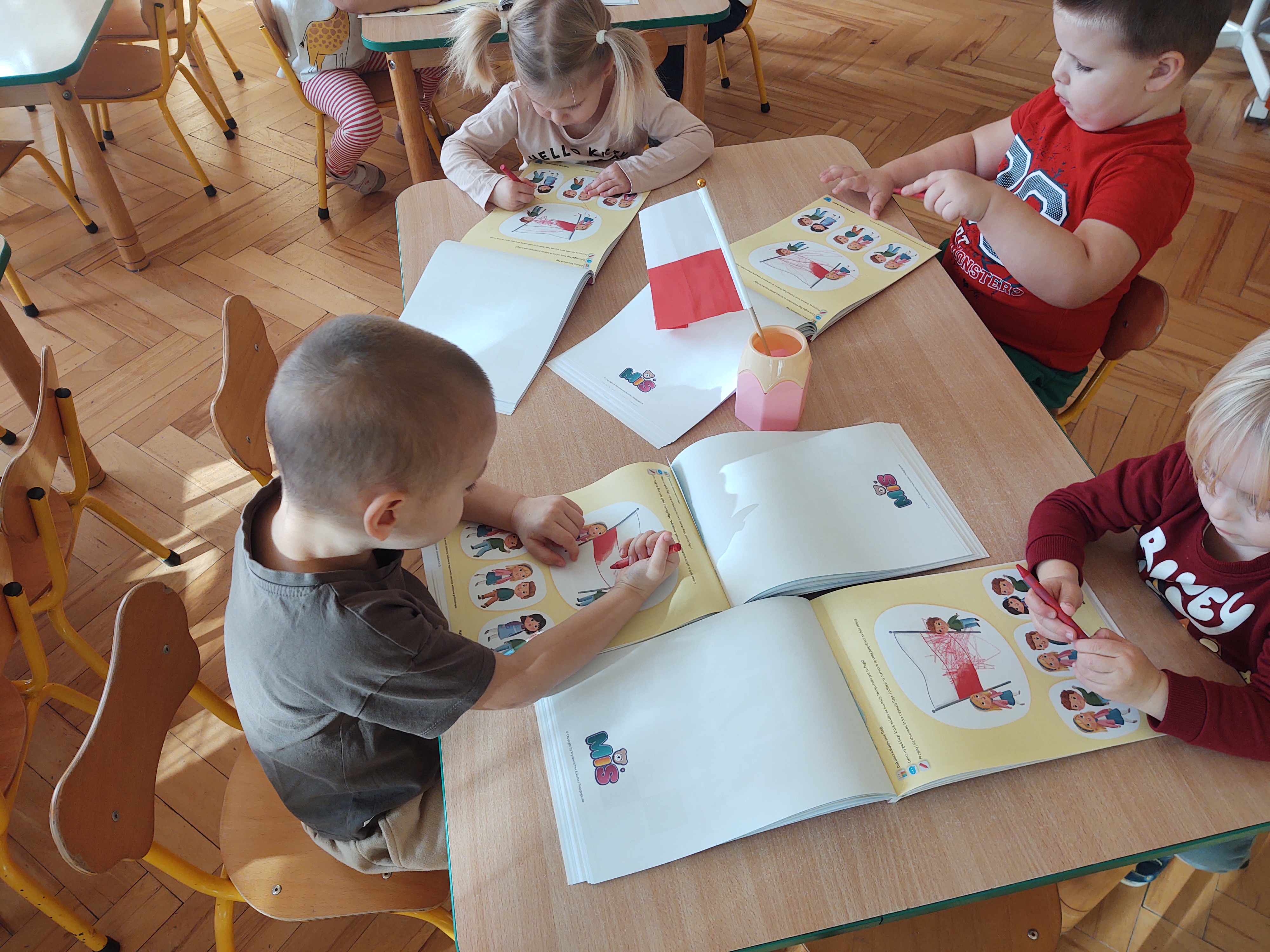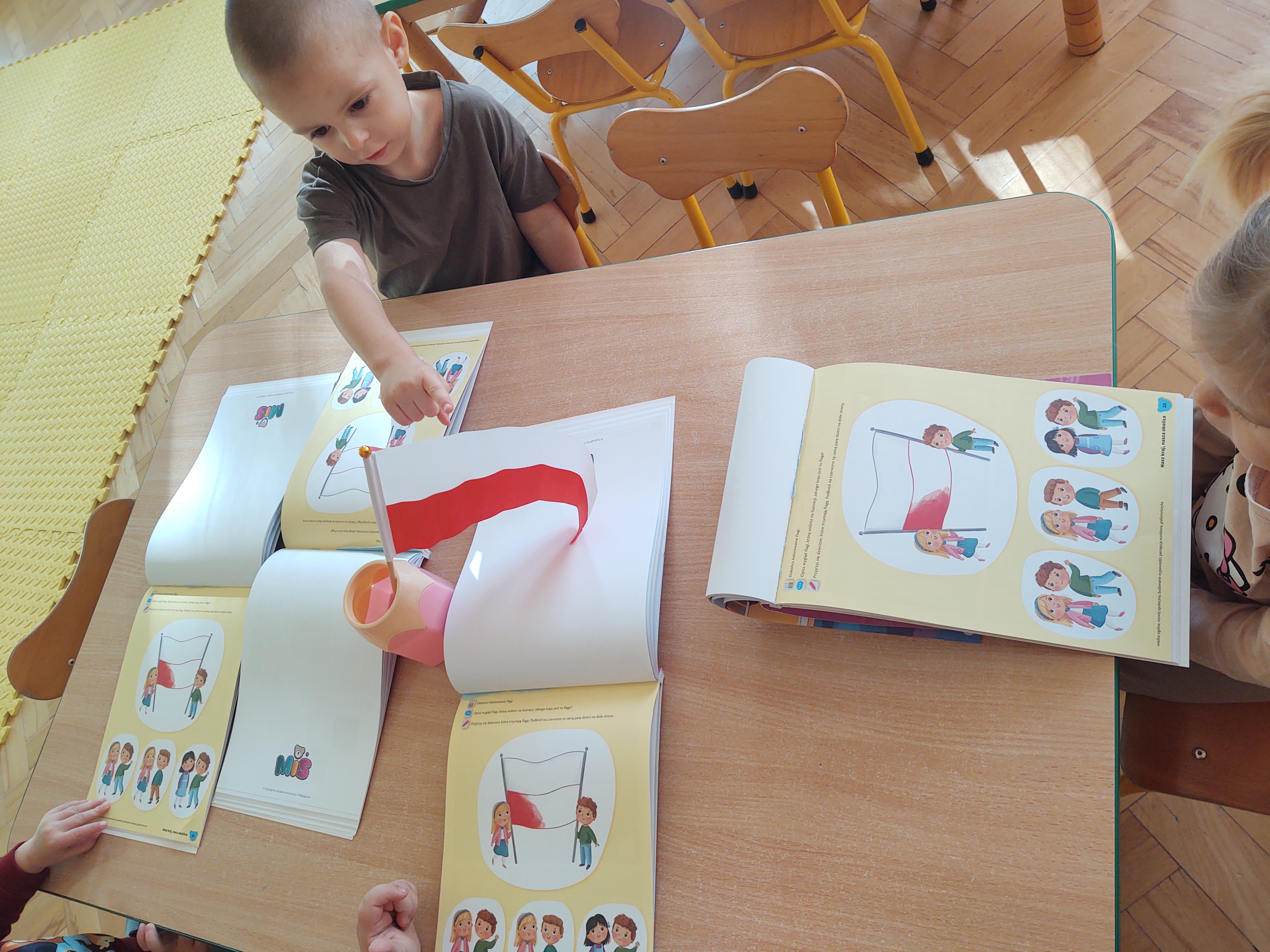 Dzieci poznały więc piosenkę „Mały Polak – przedszkolak”, która w przystępny sposób wprowadziła je w tematykę patriotyczną, brały udział w zabawie „Polska moim domem”, zastanawiały się „Co nazwiemy domem?”, słuchały wiersza „Co to jest Polska?”, a także poznały nasze barwy i symbole narodowe – hymn, flagę i godło Polski. Uczyliśmy się na pamięć wiersza ,,Kto ty jesteś, Polak mały...?.